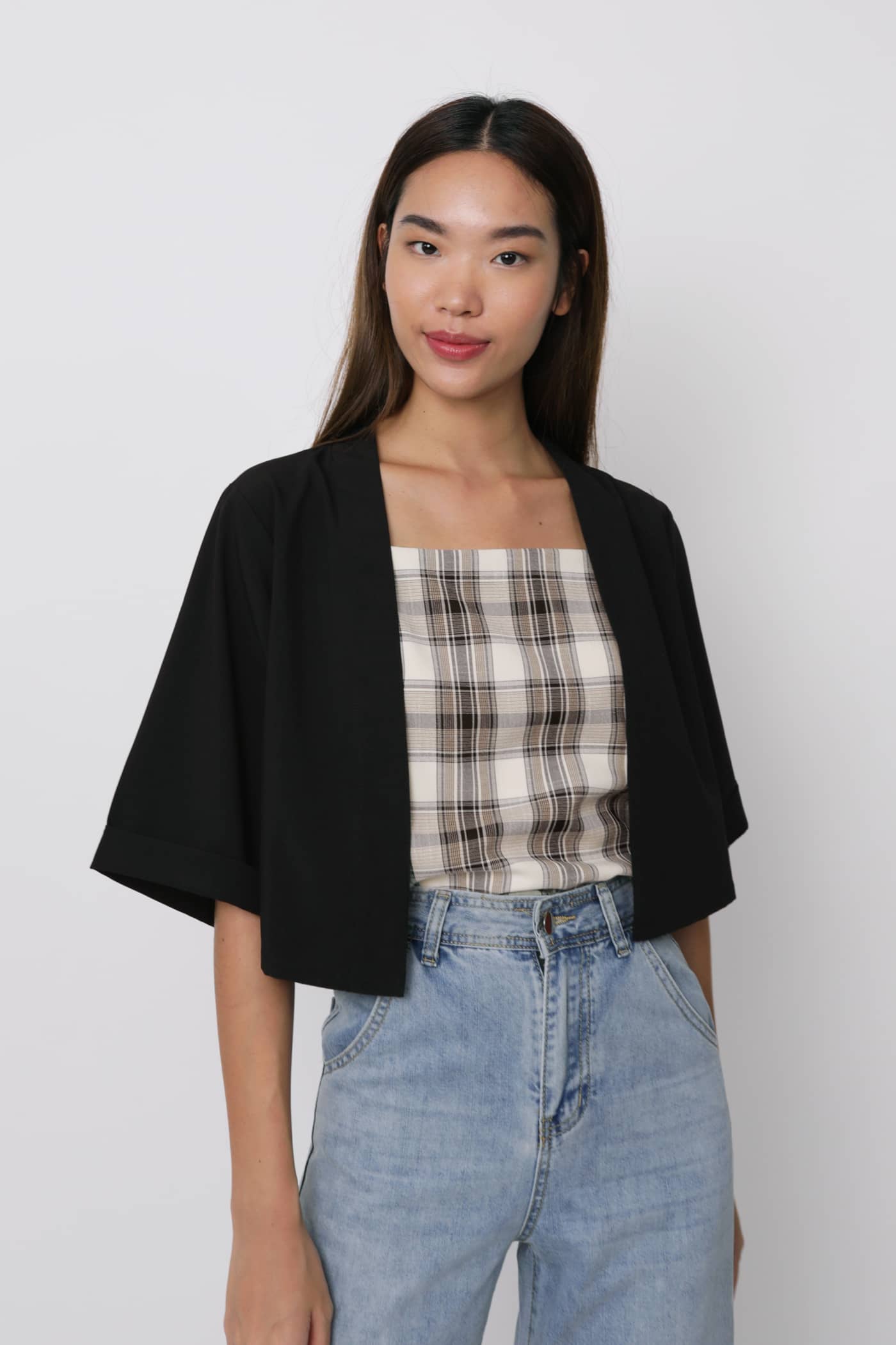 From day to night, Astra Crop Kimono is here to elevate your outfits. The crop length and wide sleeves create a classy silhouette that is simply irresistible.