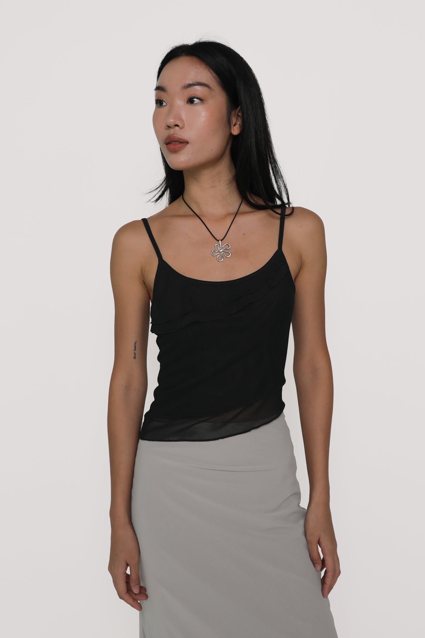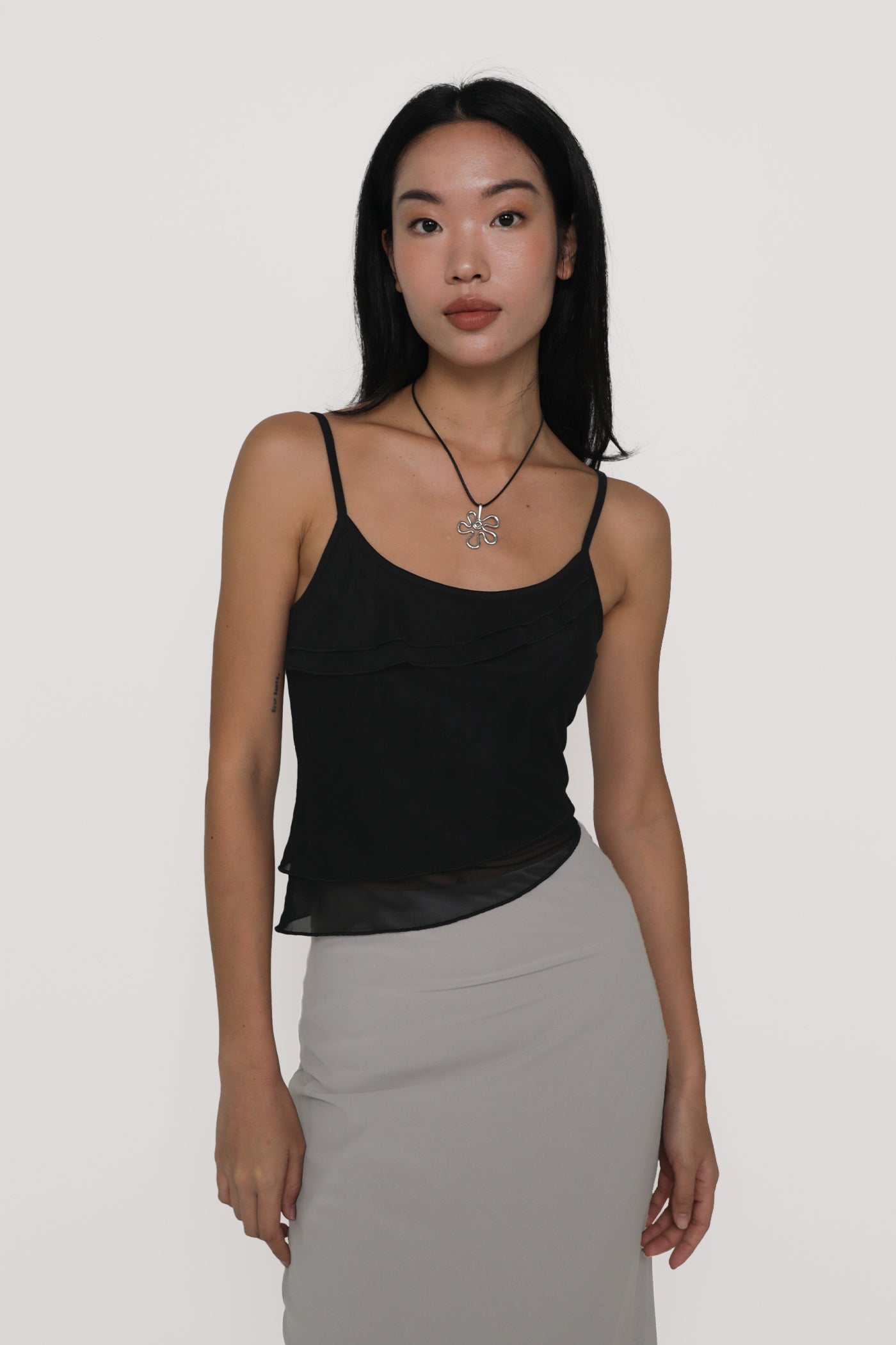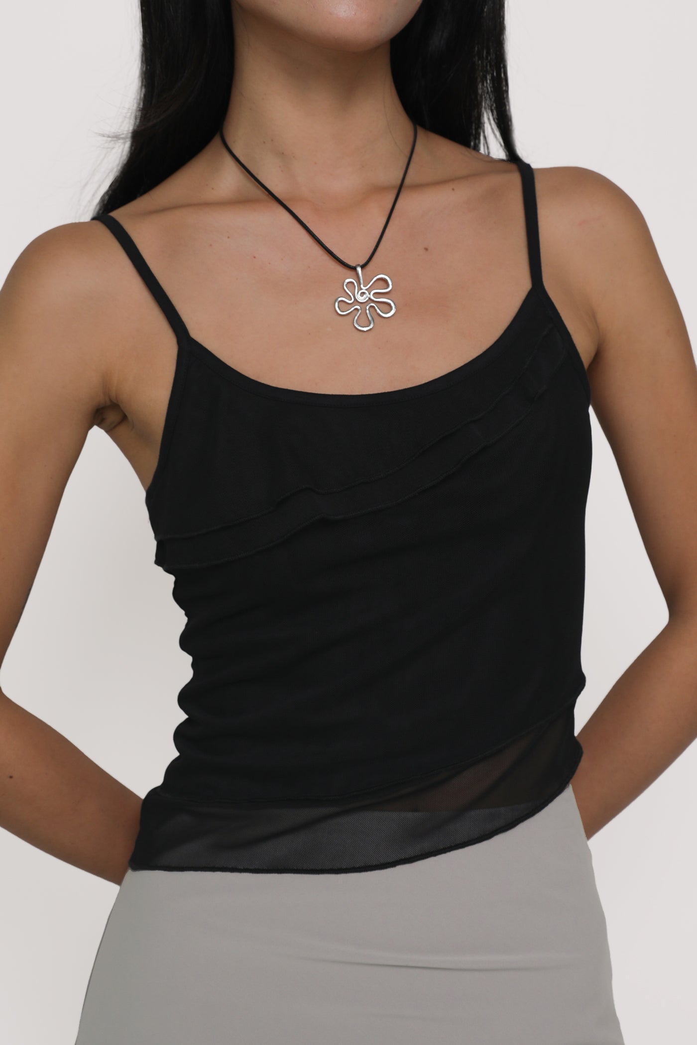 Step into your main character era with the Aubrey Mesh Ruffles Top. This mesh-layered tank brings all the Y2K feels with its playful asymmetrical hem and subtle ruffled details. Pair it with your fave cargos or a miniskirt and let your iconic outfits speak for themselves.