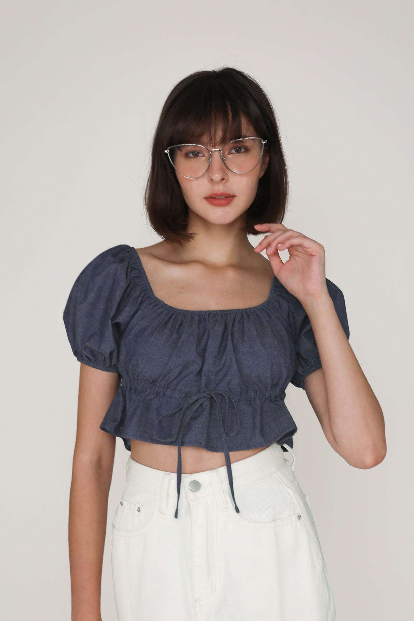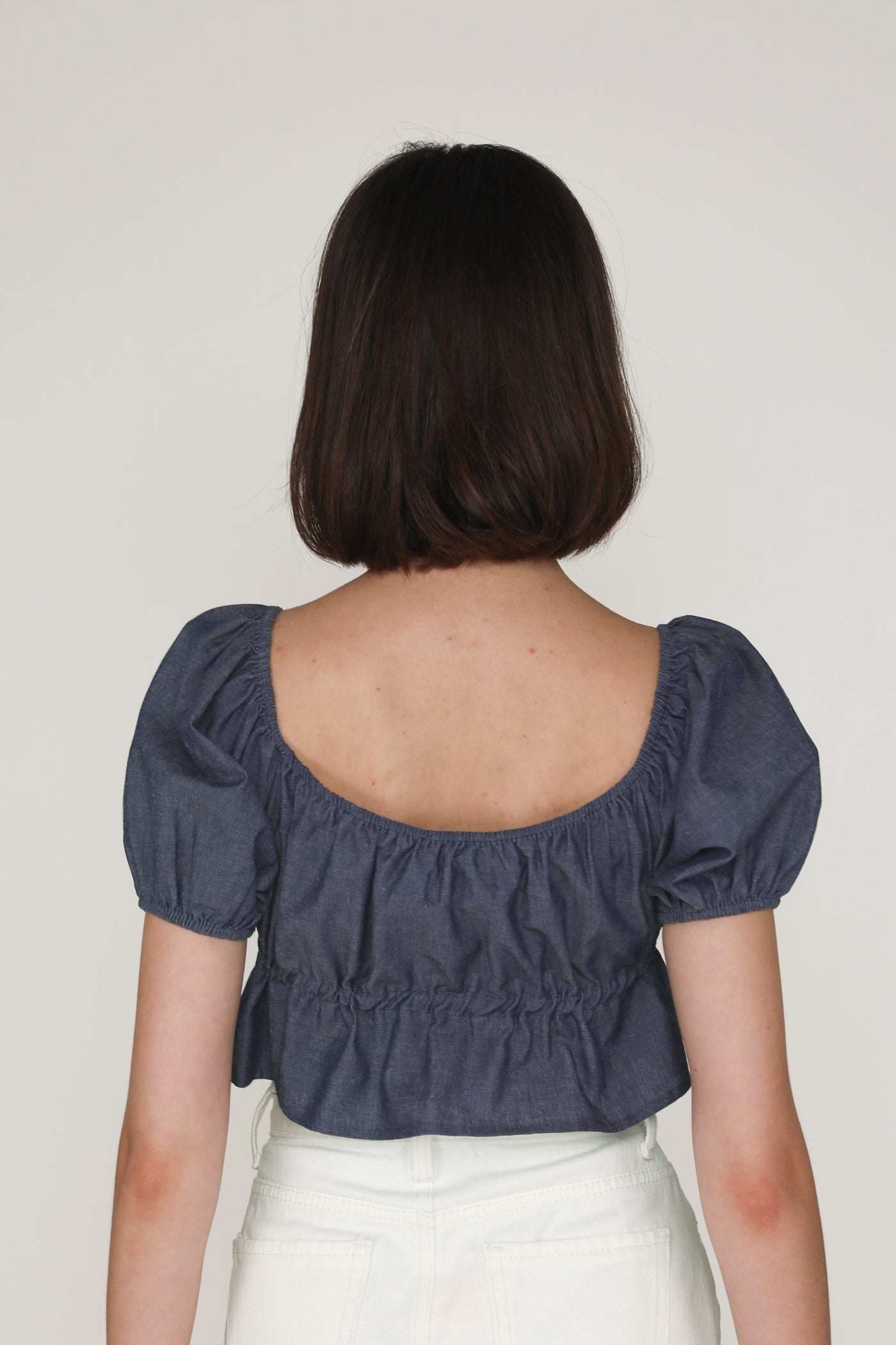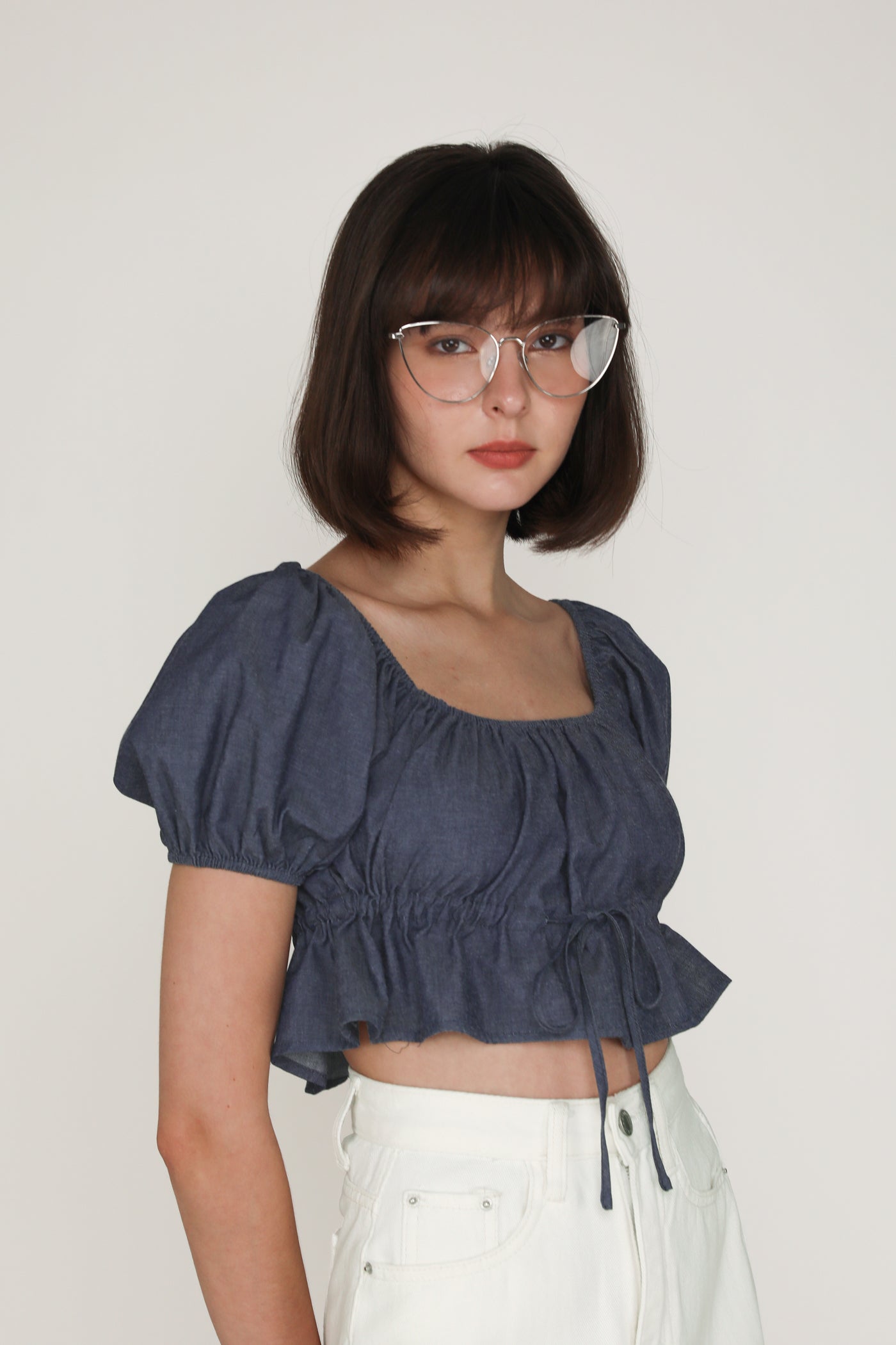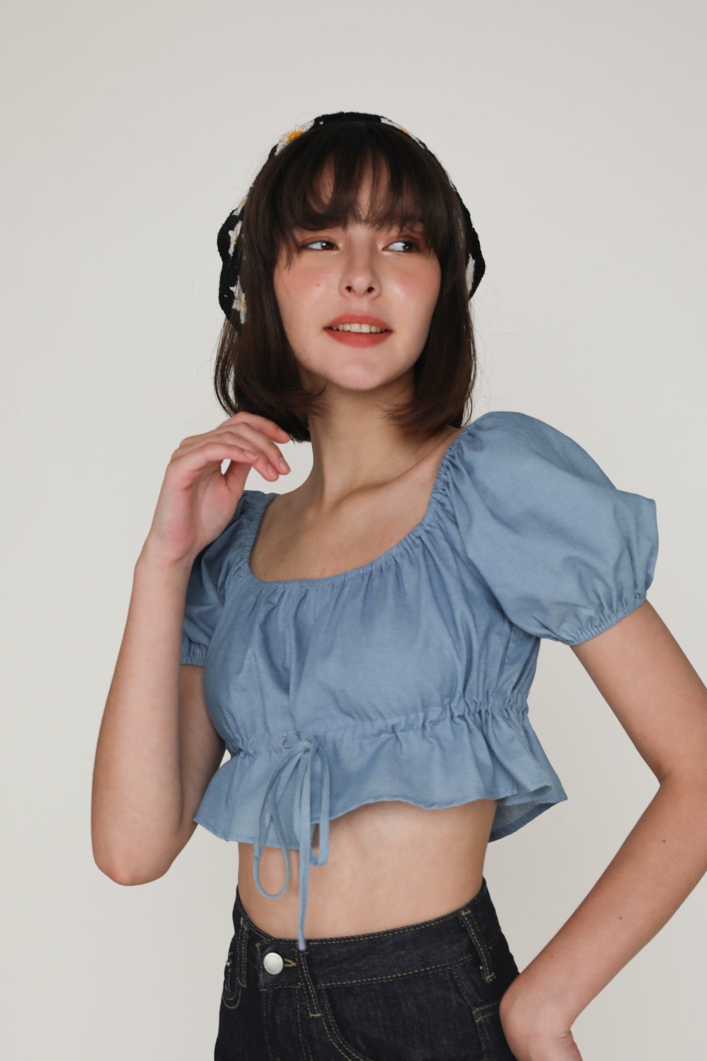 Sprinkle some sweetness into your week with Bert. Bert Chambray Puffy Drawstring Sleeve Top is a charming piece with a feminine flair. It has a flaterring crop fit with playful textures to elevate your casual outfits. From cafe dates to nights out, switch up your looks with this refreshing top.