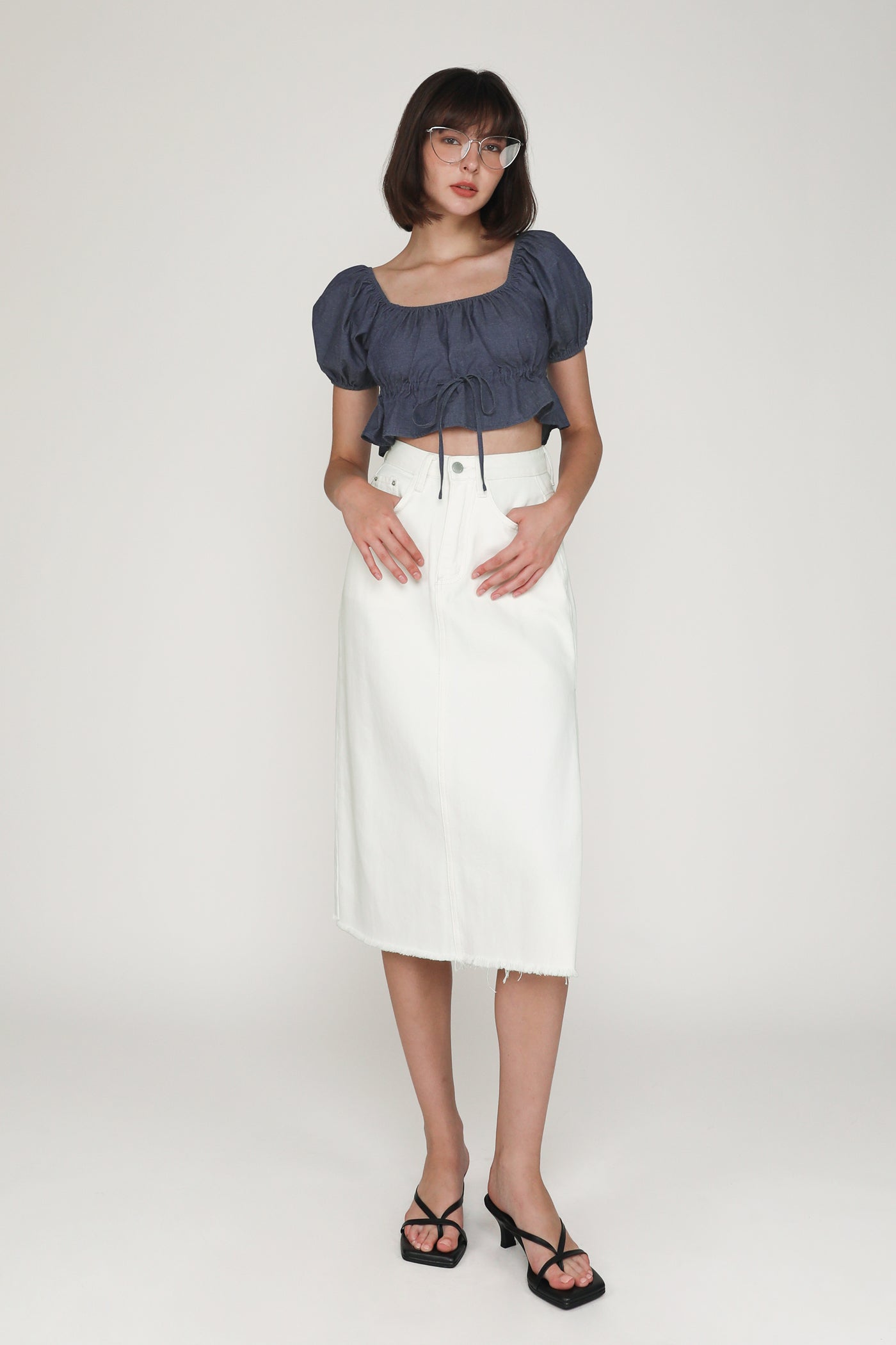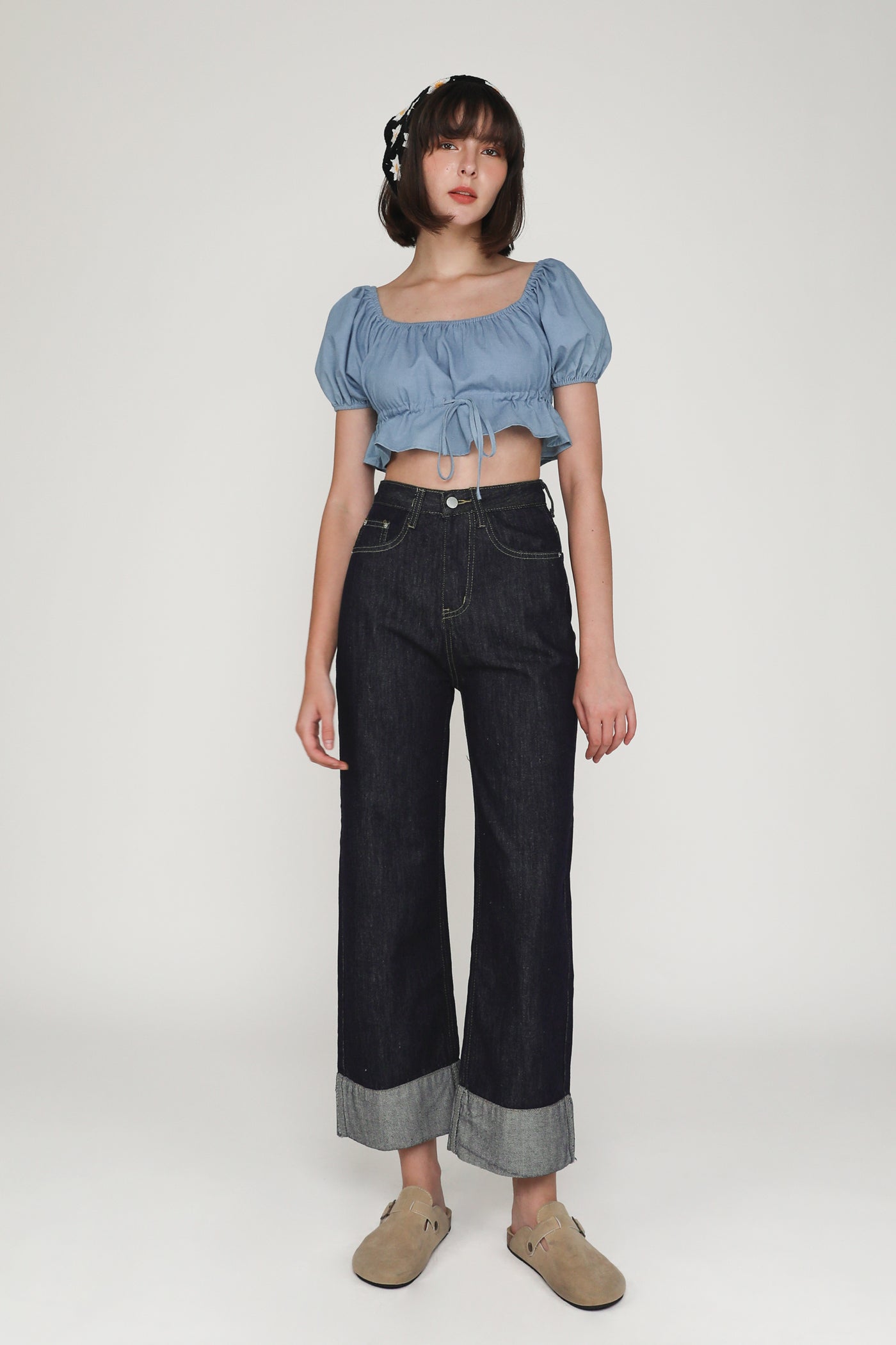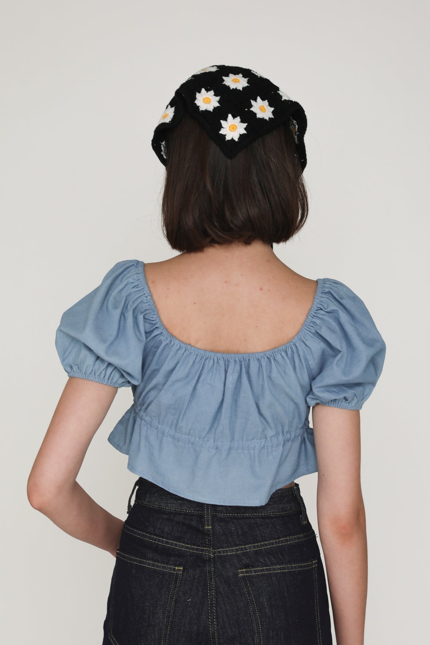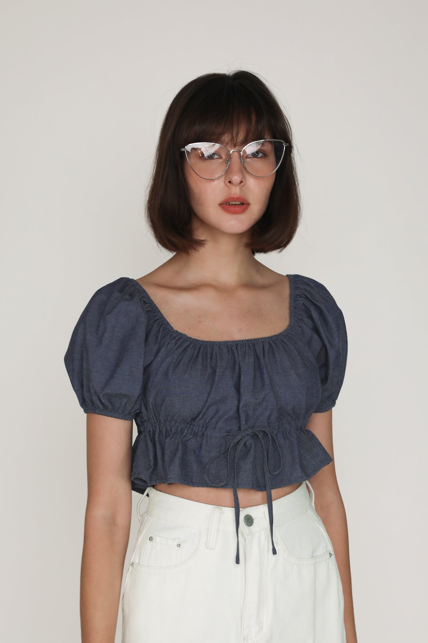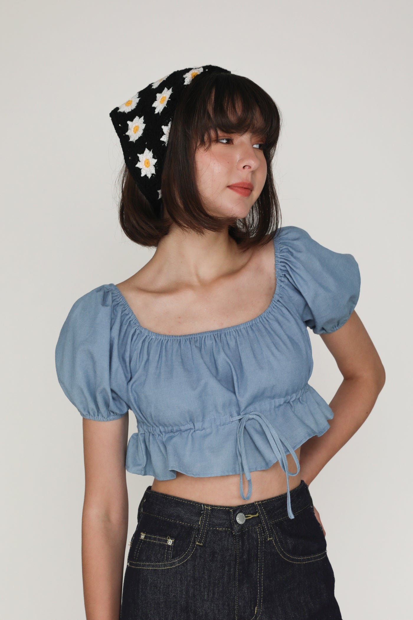 Sprinkle some sweetness into your week with Bert. Bert Chambray Puffy Drawstring Sleeve Top is a charming piece with a feminine flair. It has a flaterring crop fit with playful textures to elevate your casual outfits. From cafe dates to nights out, switch up your looks with this refreshing top.