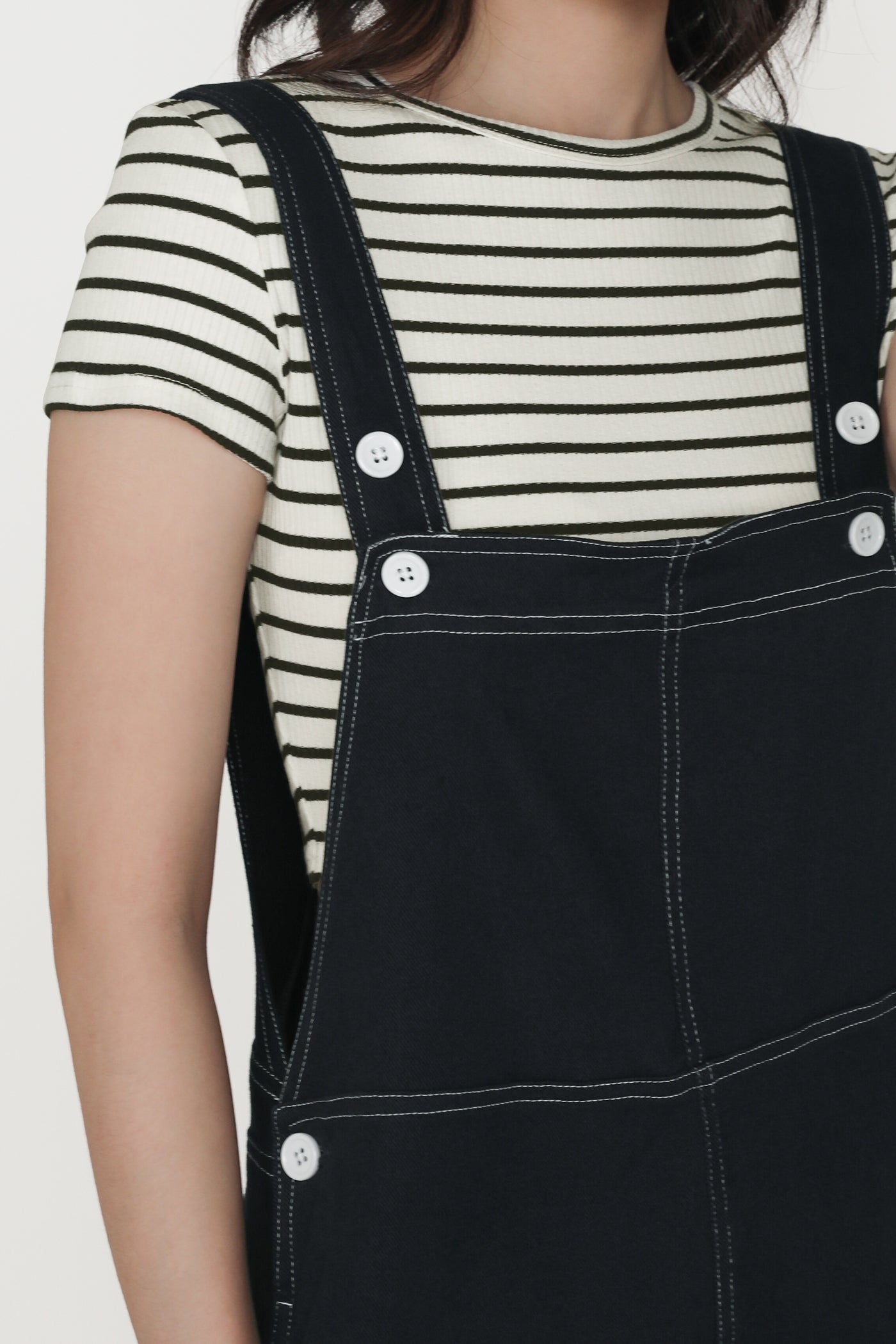 This pair of overalls are made of non lined cotton spandex polyester blend for a light and comfortable fit. They are complete with functional adjustable buttons at the straps, side buttons, and functional side pockets.