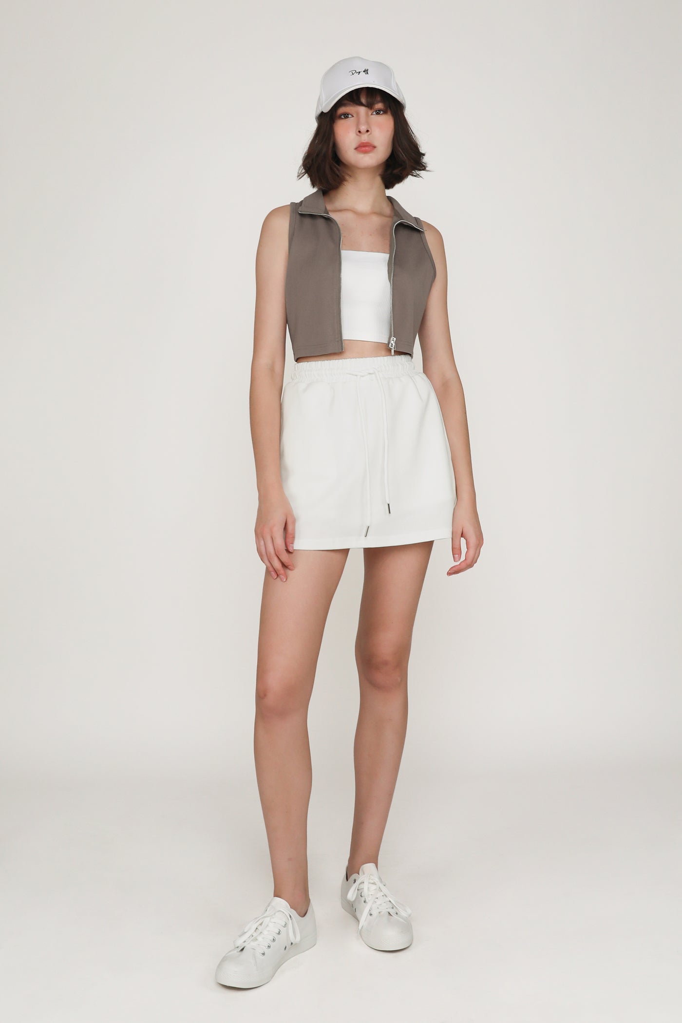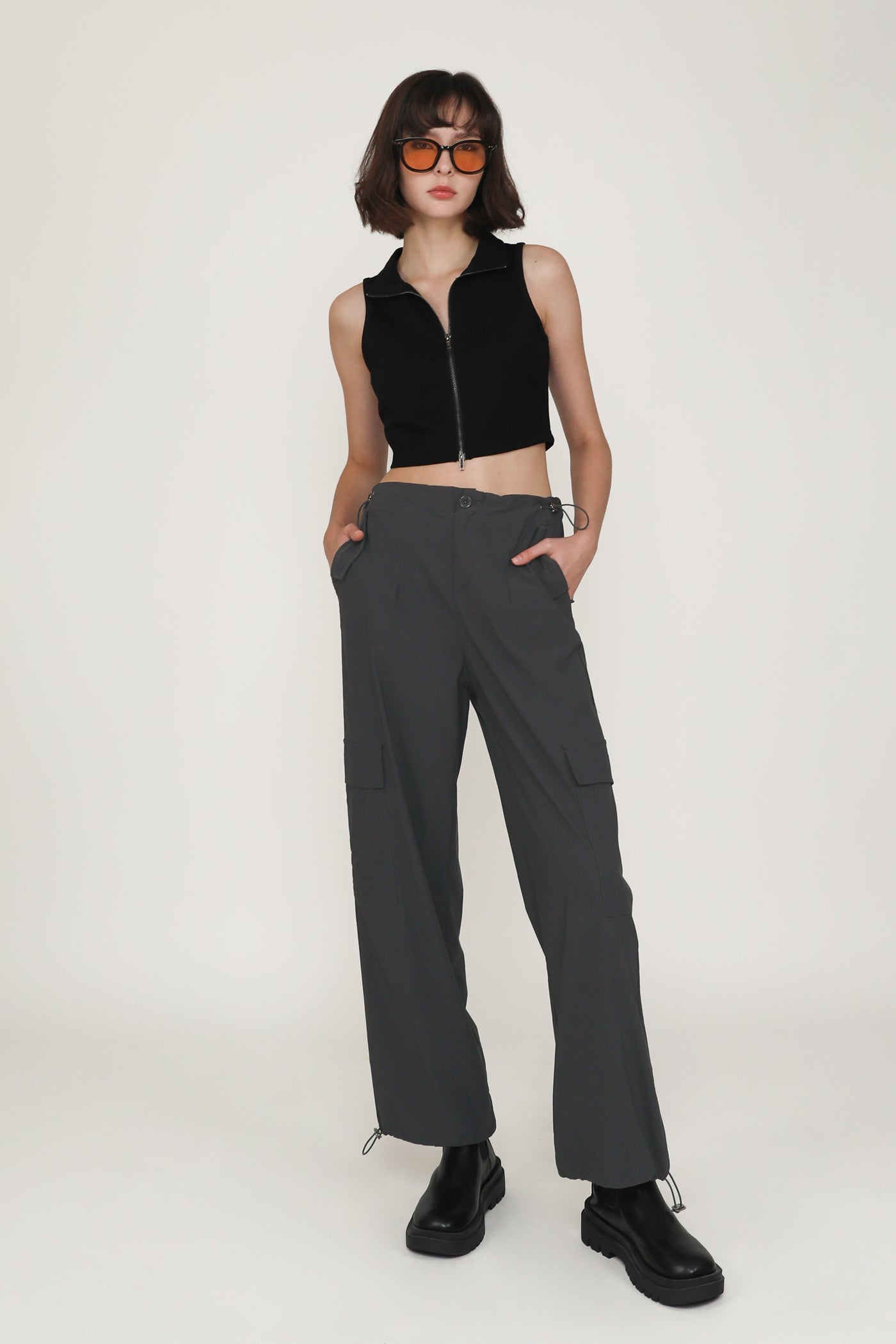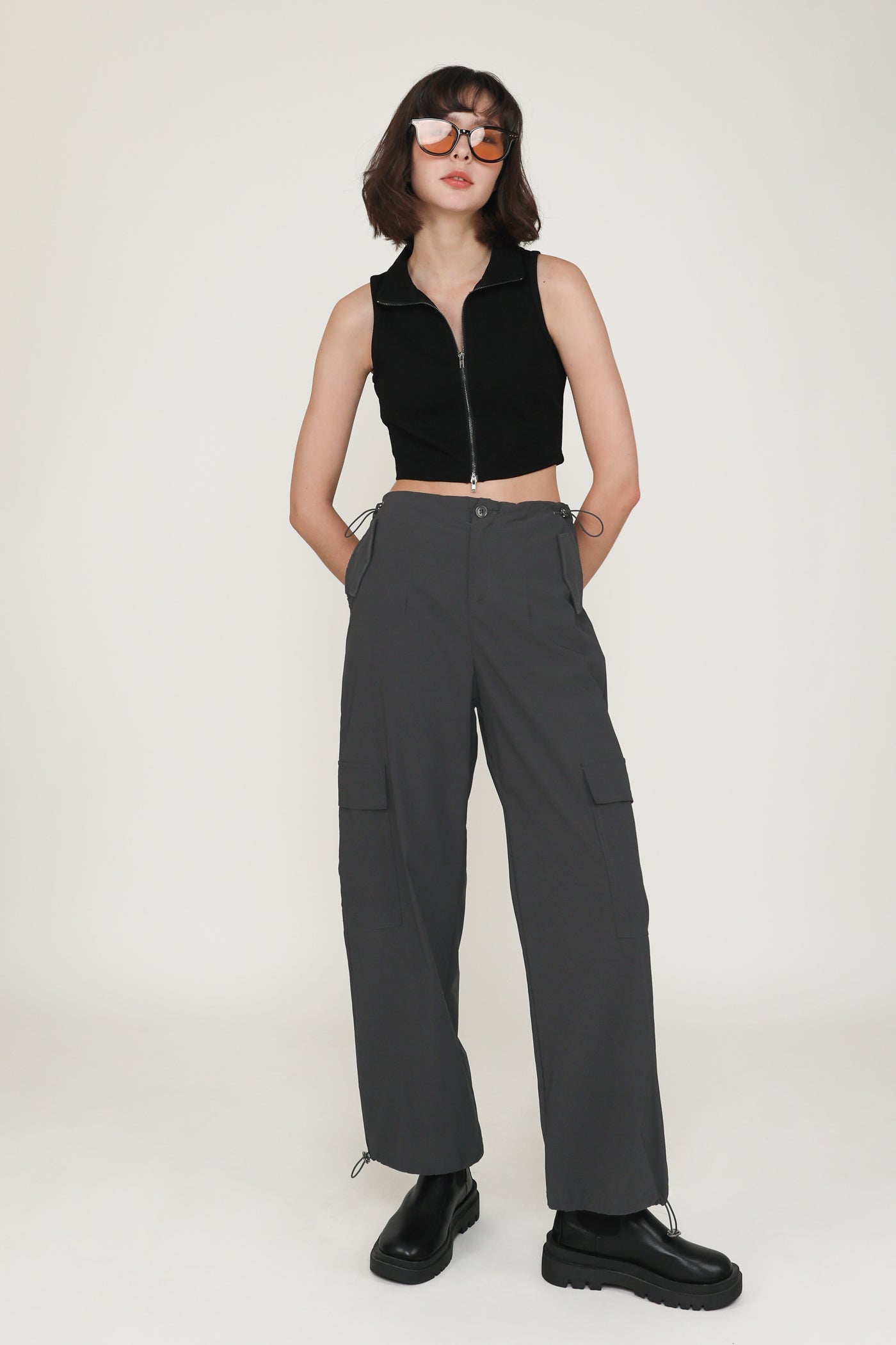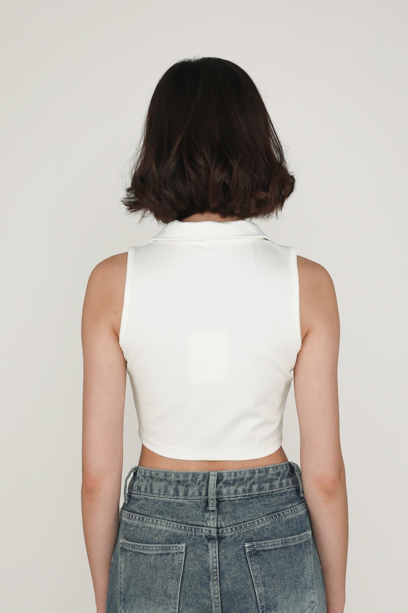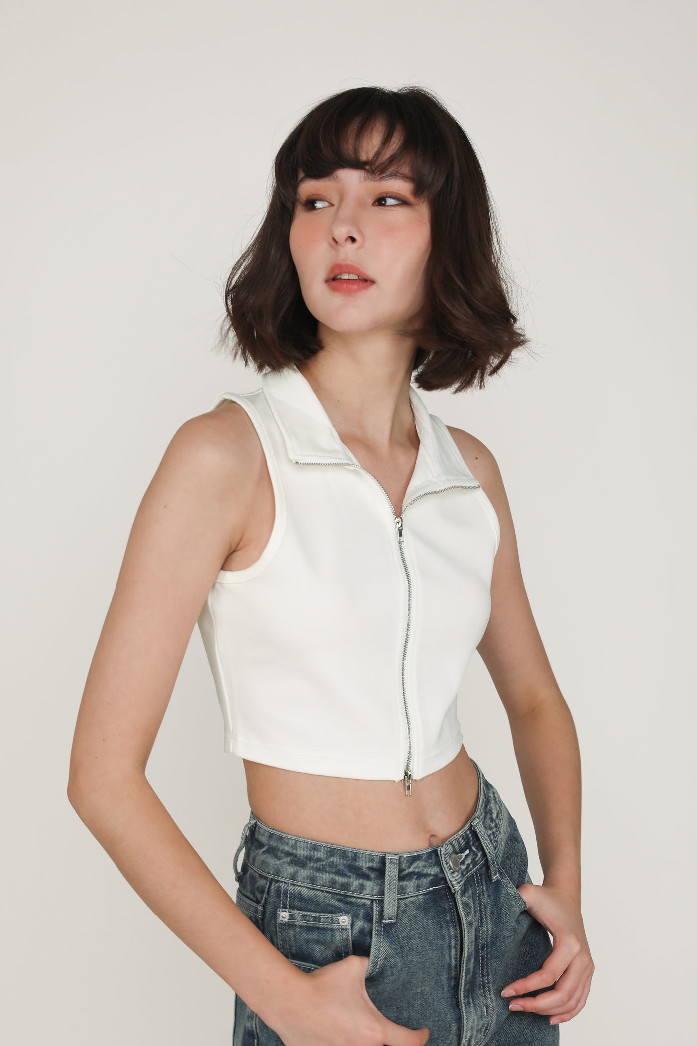 Spice up your weekend looks with Evon. This edgy crop top flaunts a simple collar and statement zip up detail on the front. It is a versatile yet cool top to elevate your casual wardrobe. Complete the outfit with a pair of denim shorts or parachute pants before you head out the door.