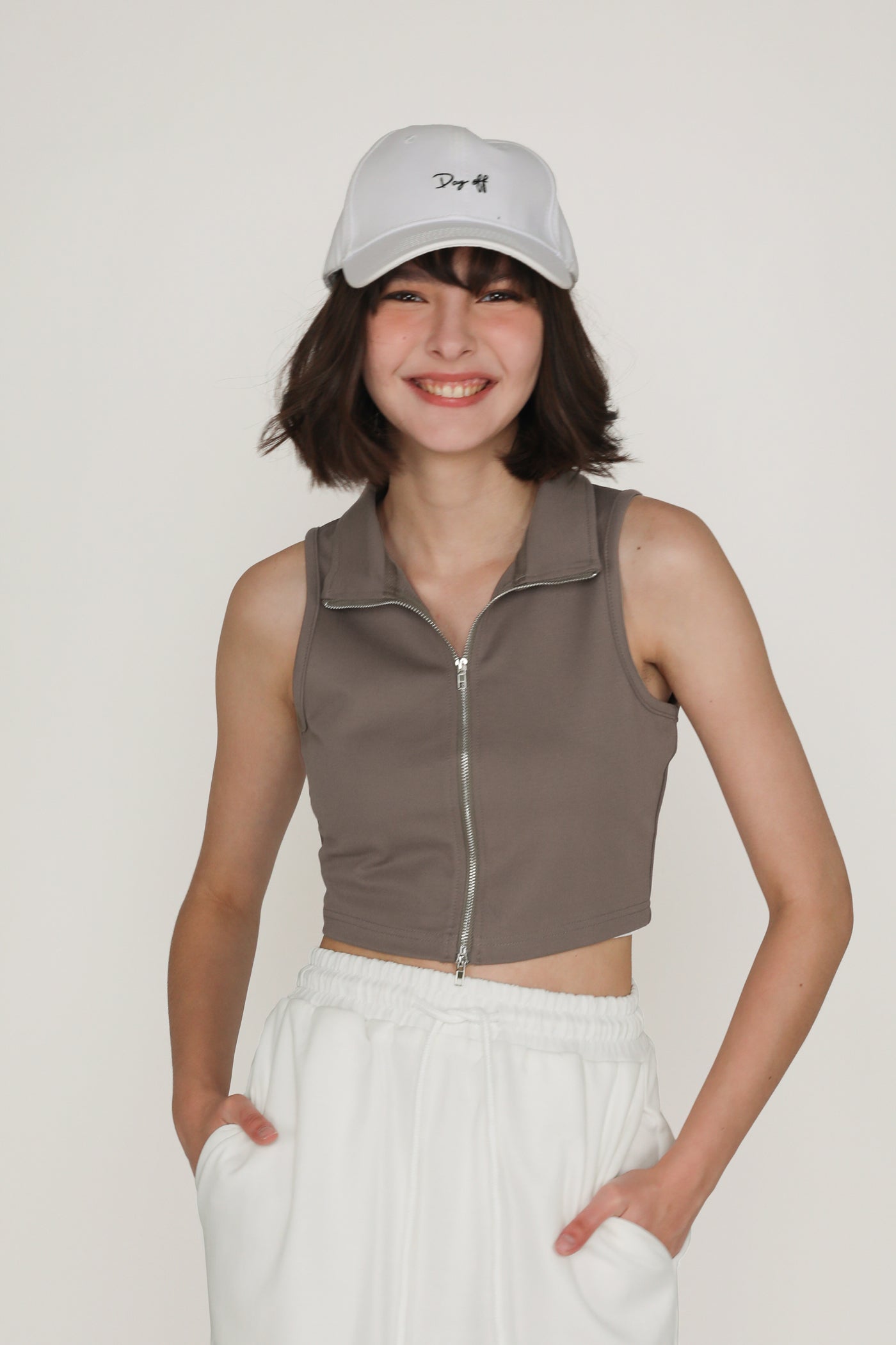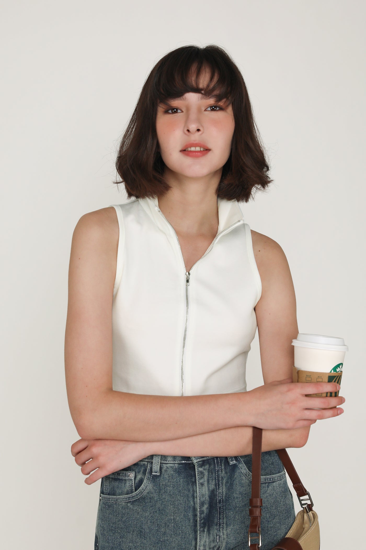 This top is made of non lined cotton nylon spandex for a light and comfortable fit. It is complete with a functional front exposed zip.