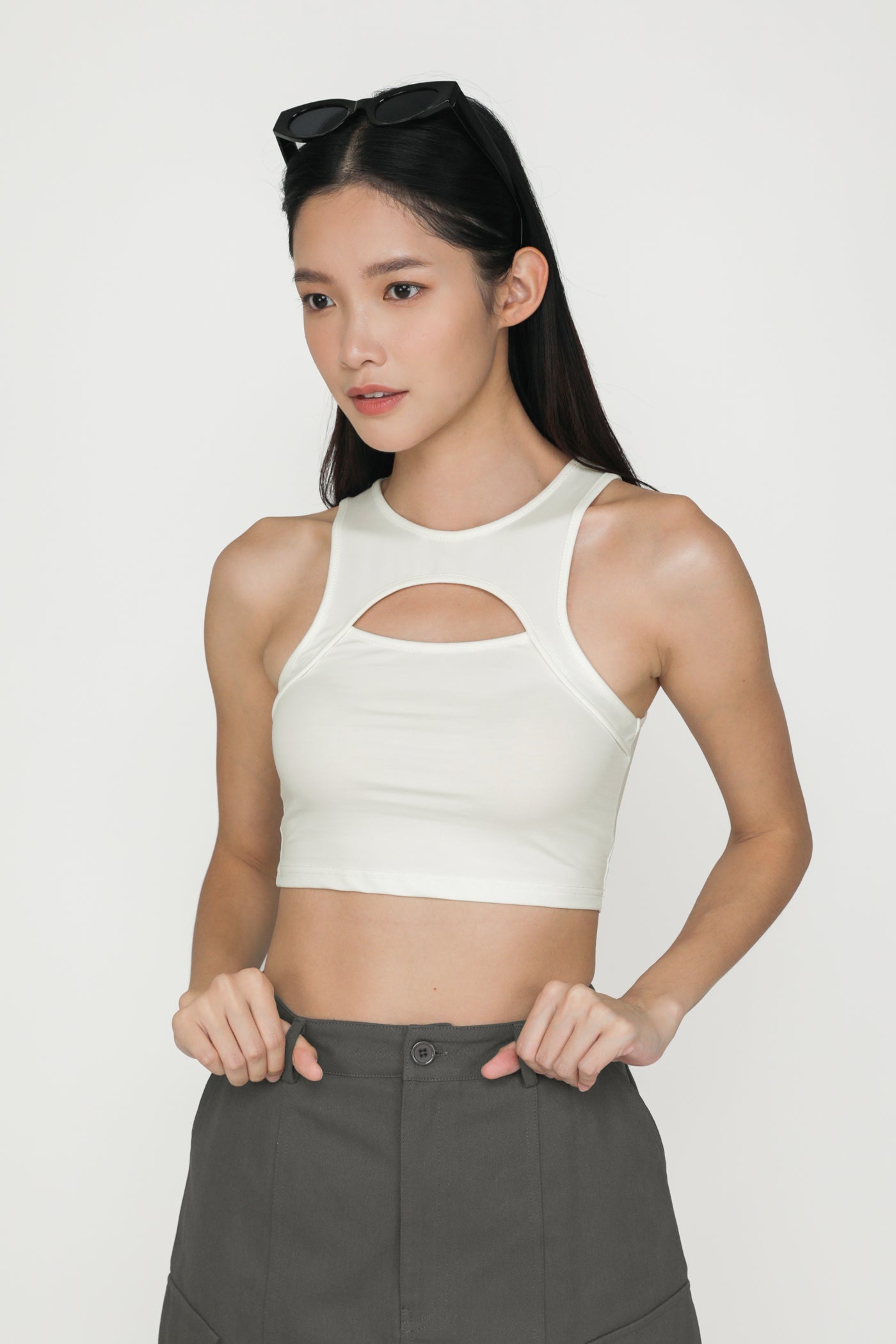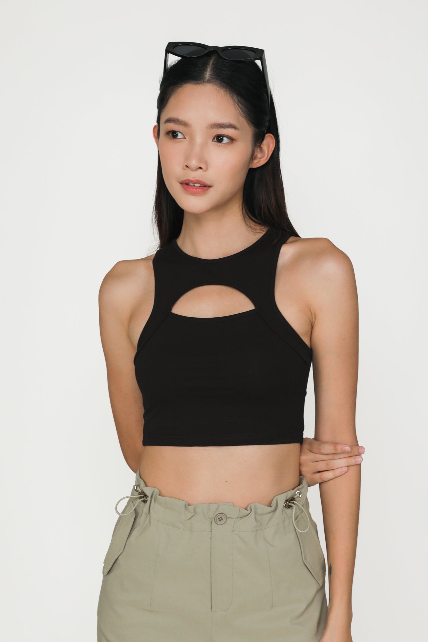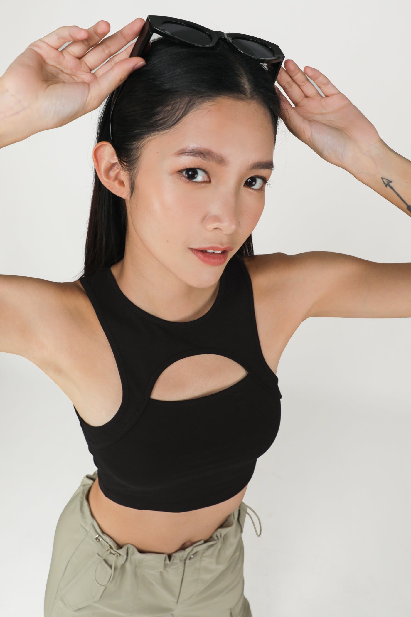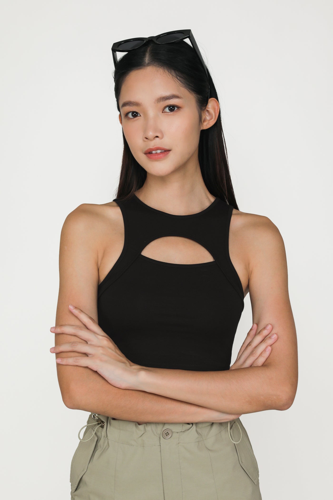 Gia Cut Out Racercut Top is made for adventure. This refreshing racercut top flaunts a flattering fit and a statement cut out design for an extra touch of playfulness. Paired with a pair of basic bottoms, Gia Cut Out Racercut Top is made to elevate every outfit with confident charm. Add this into your line-up for summer staples for an endless variety of classic looks.