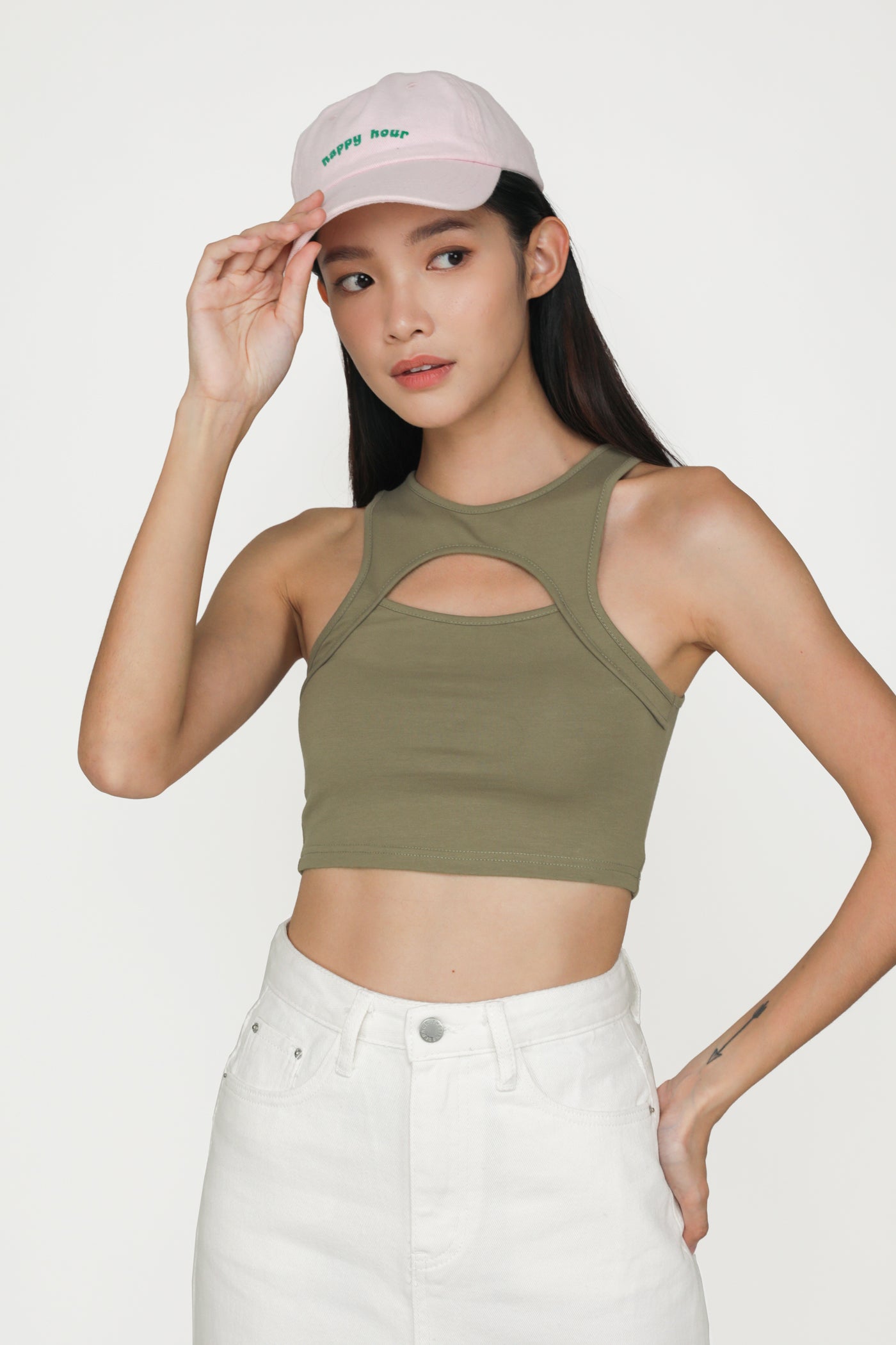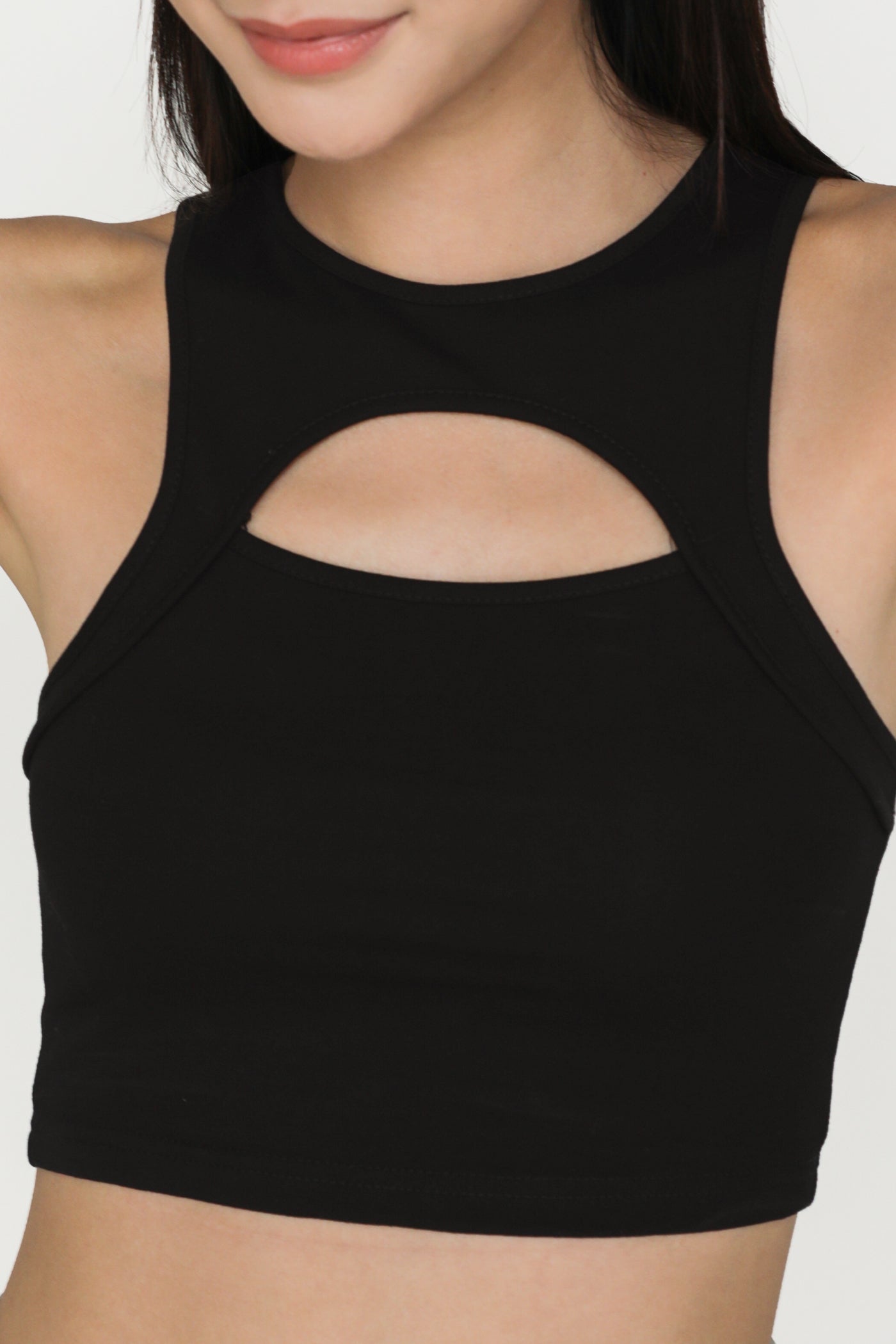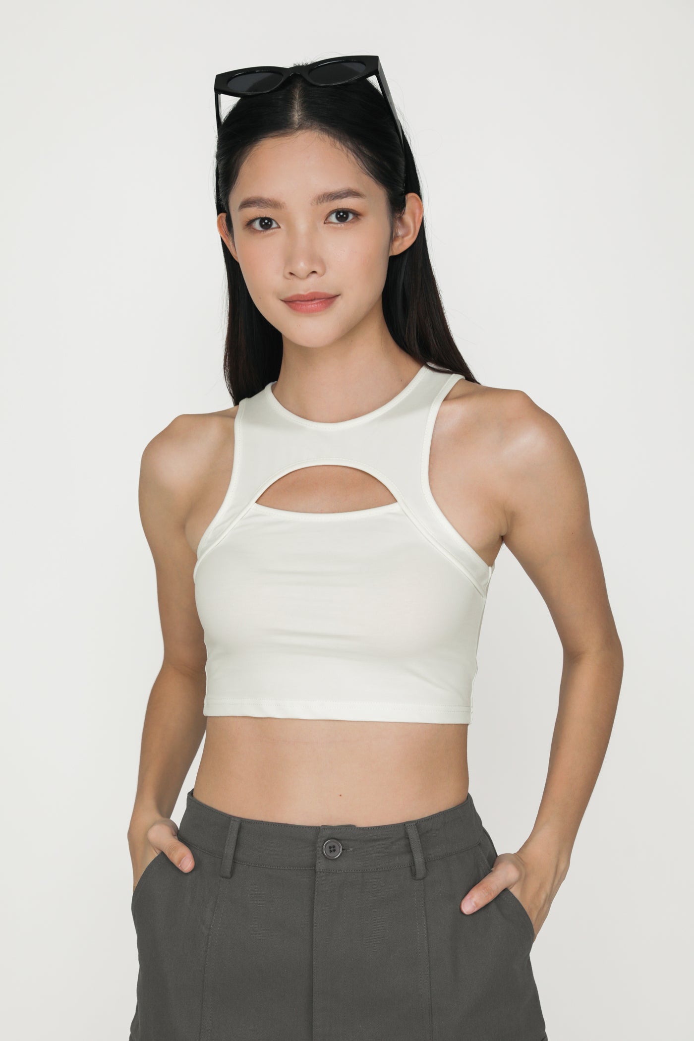 Gia Cut Out Racercut Top is made for adventure. This refreshing racercut top flaunts a flattering fit and a statement cut out design for an extra touch of playfulness. Paired with a pair of basic bottoms, Gia Cut Out Racercut Top is made to elevate every outfit with confident charm. Add this into your line-up for summer staples for an endless variety of classic looks.