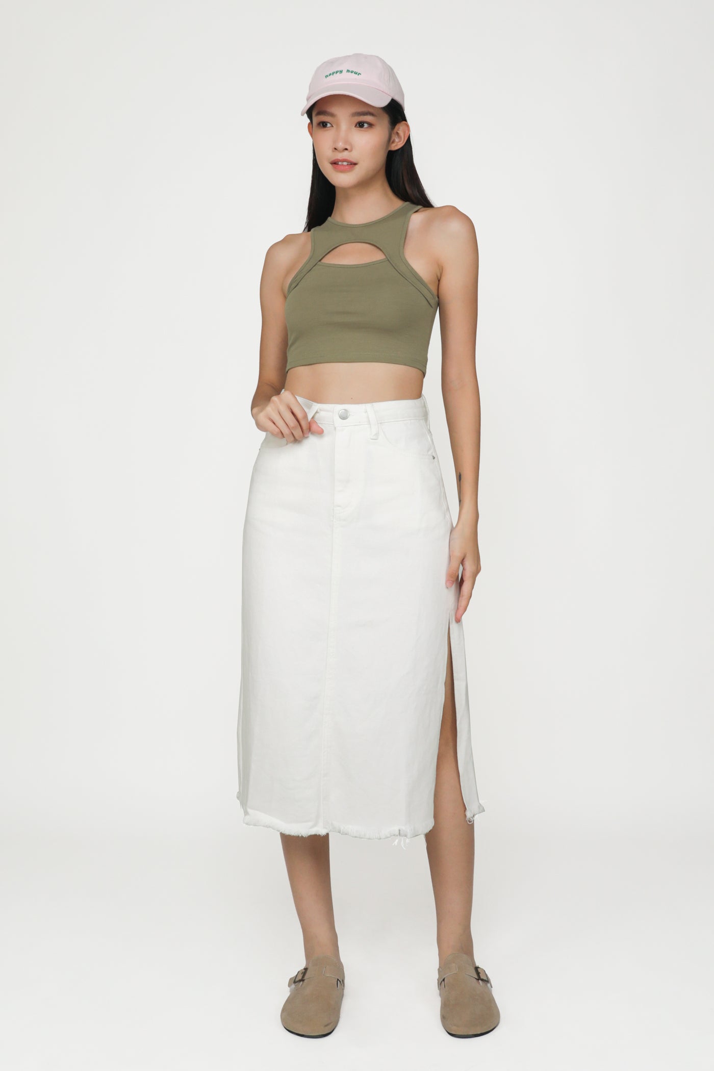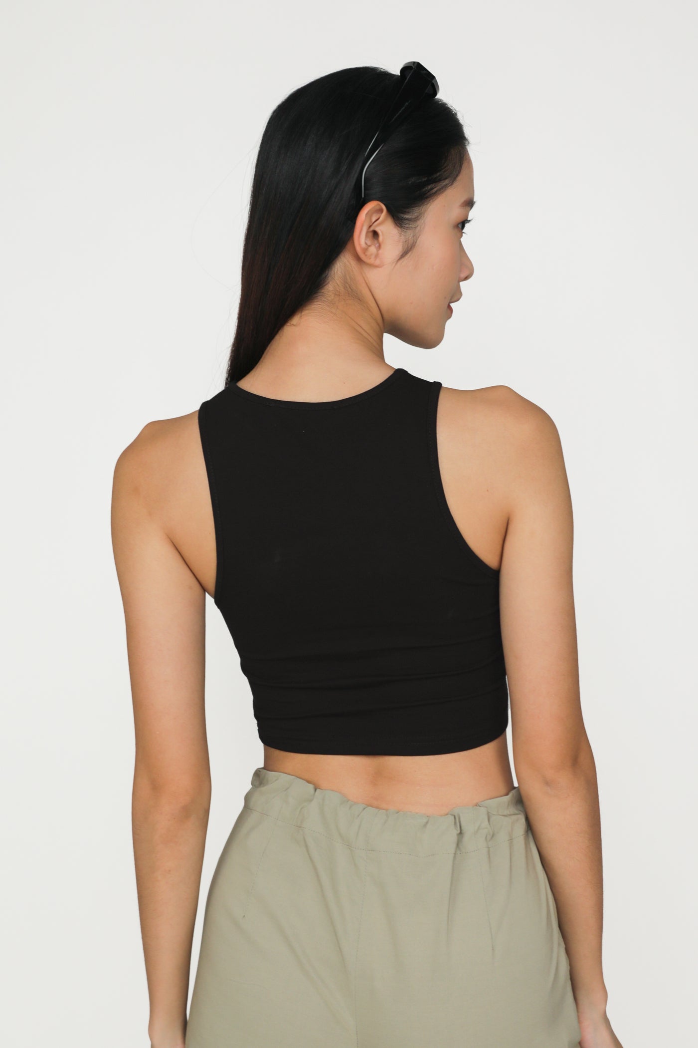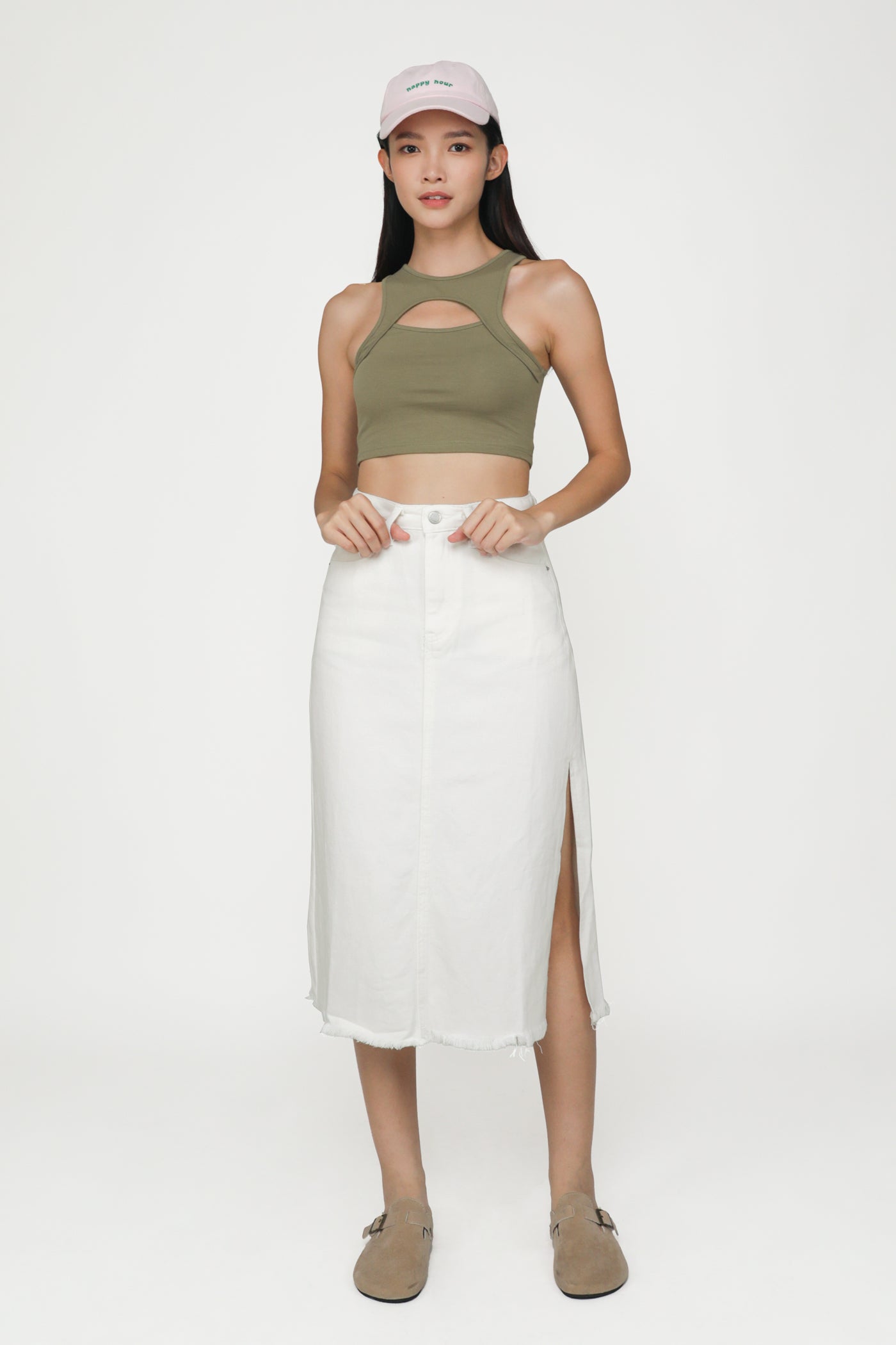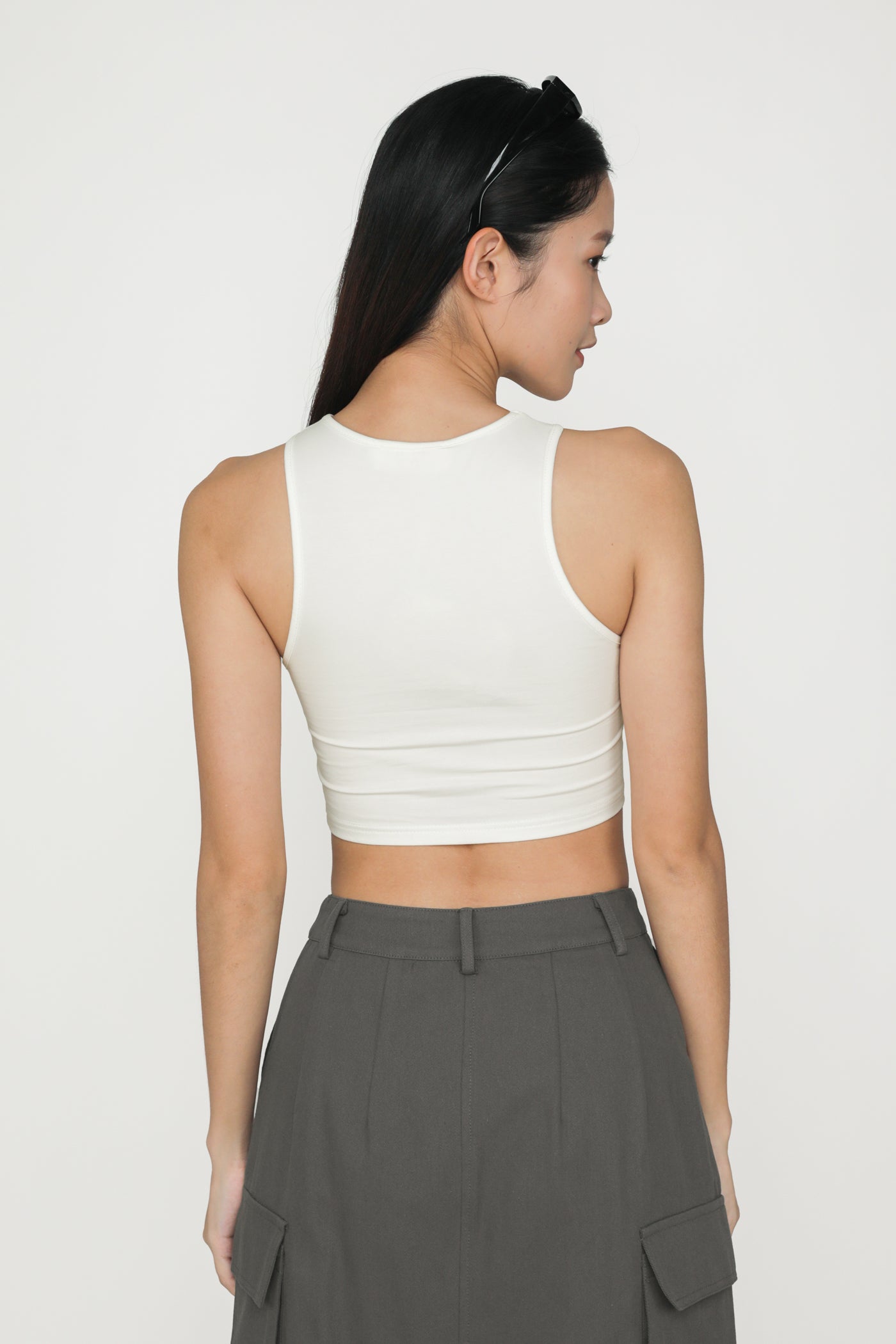 Gia Cut Out Racercut Top is made for adventure. This refreshing racercut top flaunts a flattering fit and a statement cut out design for an extra touch of playfulness. Paired with a pair of basic bottoms, Gia Cut Out Racercut Top is made to elevate every outfit with confident charm. Add this into your line-up for summer staples for an endless variety of classic looks.