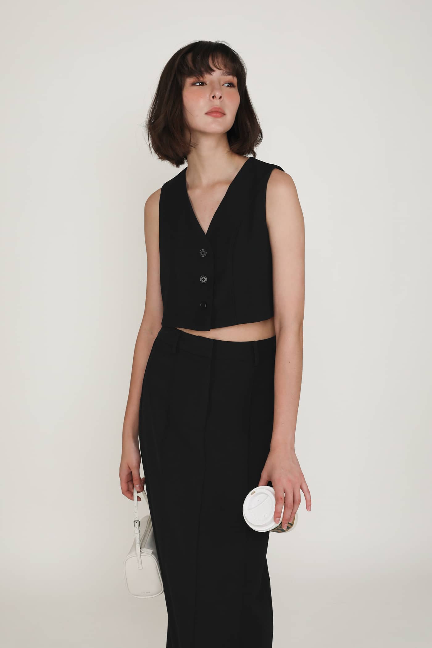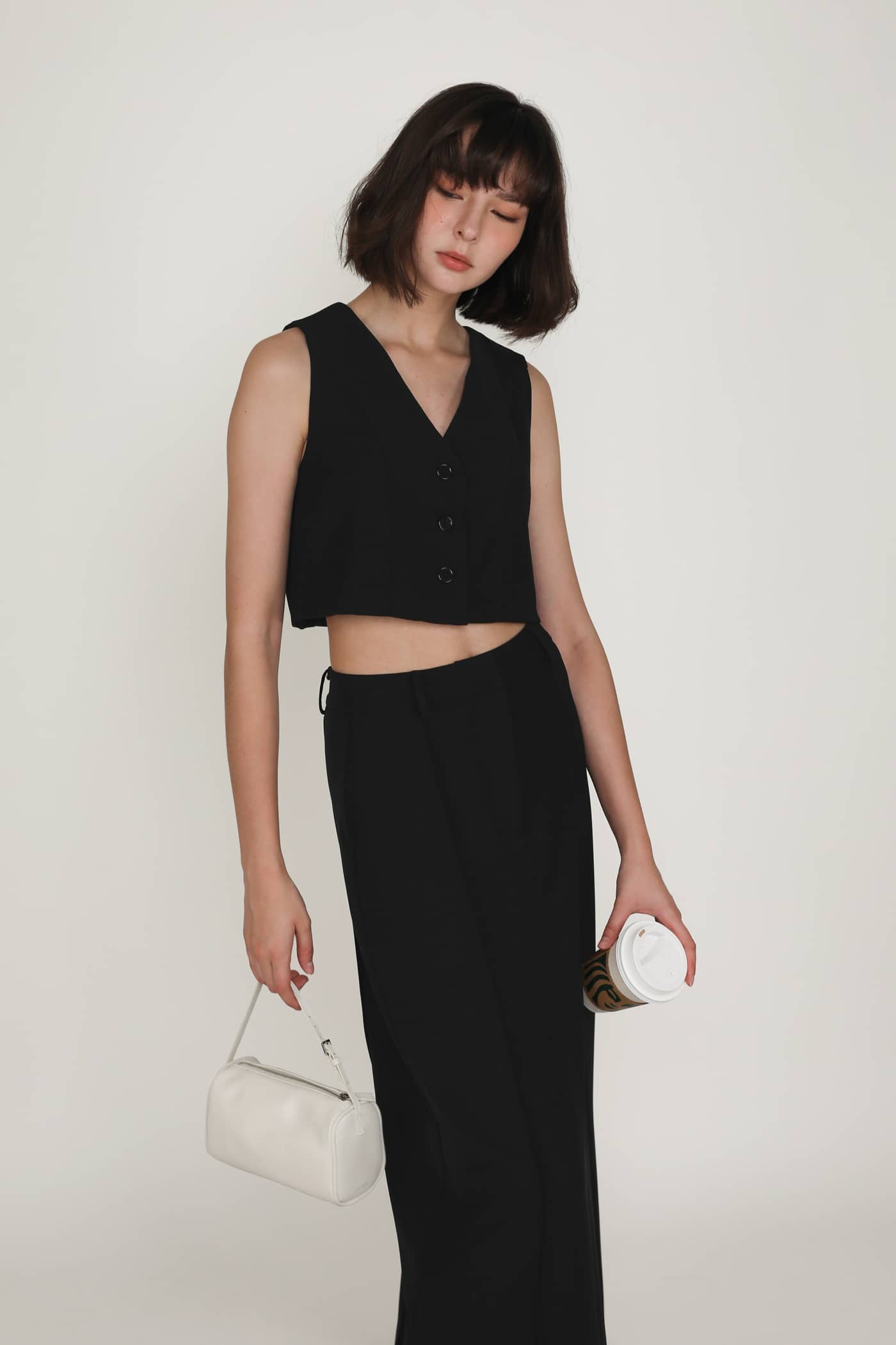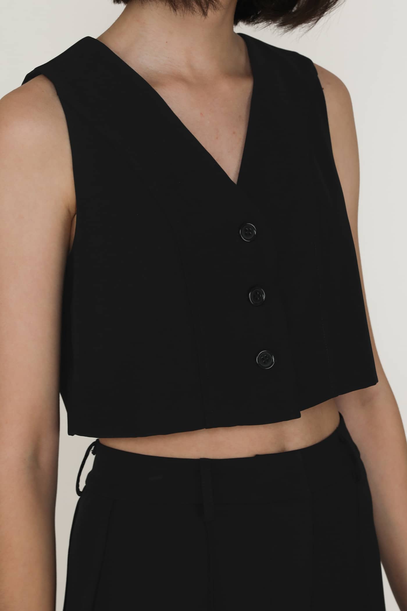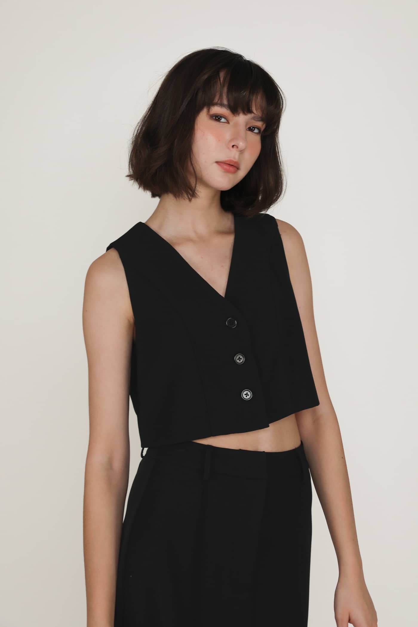 Suit up with a classic vest like Jaxon. Jaxon Button Down Vest Top is a style staple with its simple crop fit and boxy silhouette. From office hours to weekends out, this versatile top offers endless styling options. Give your outfits a dash of chic edge with Jaxon.