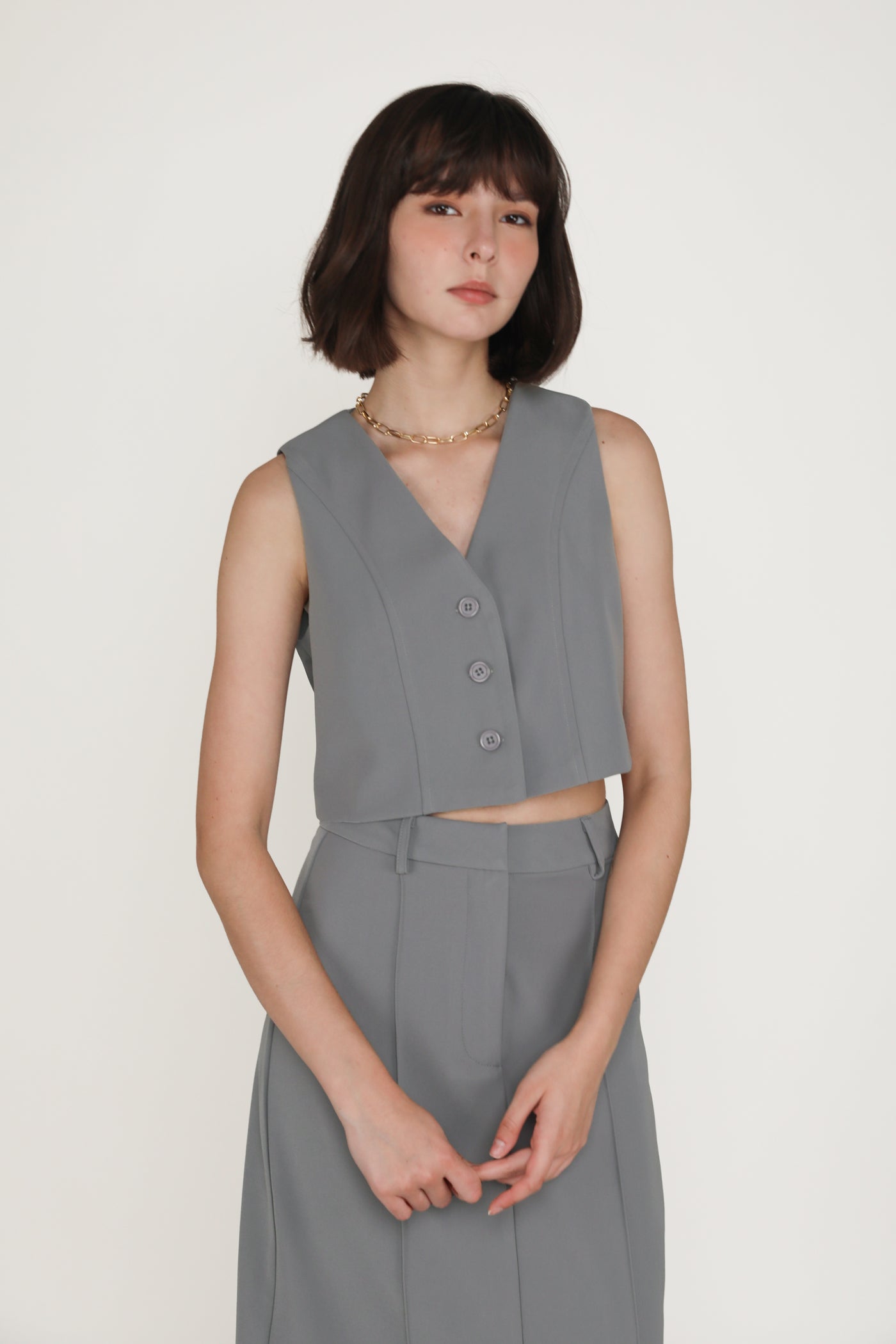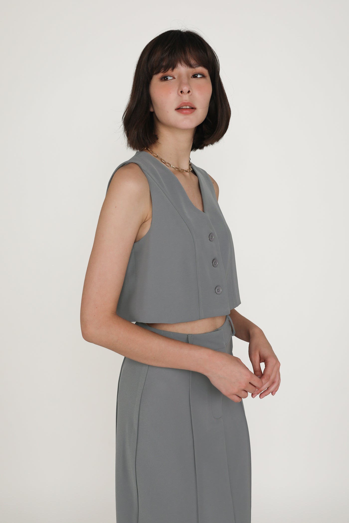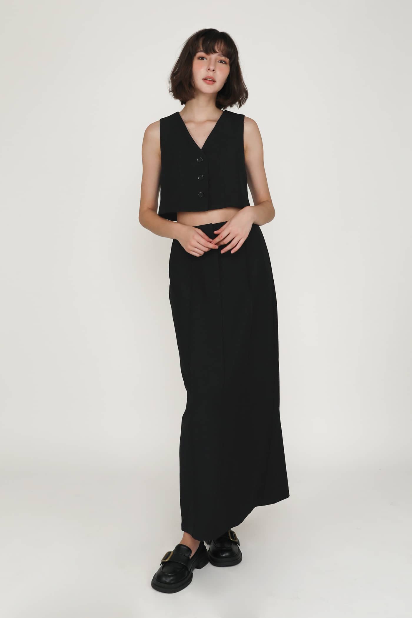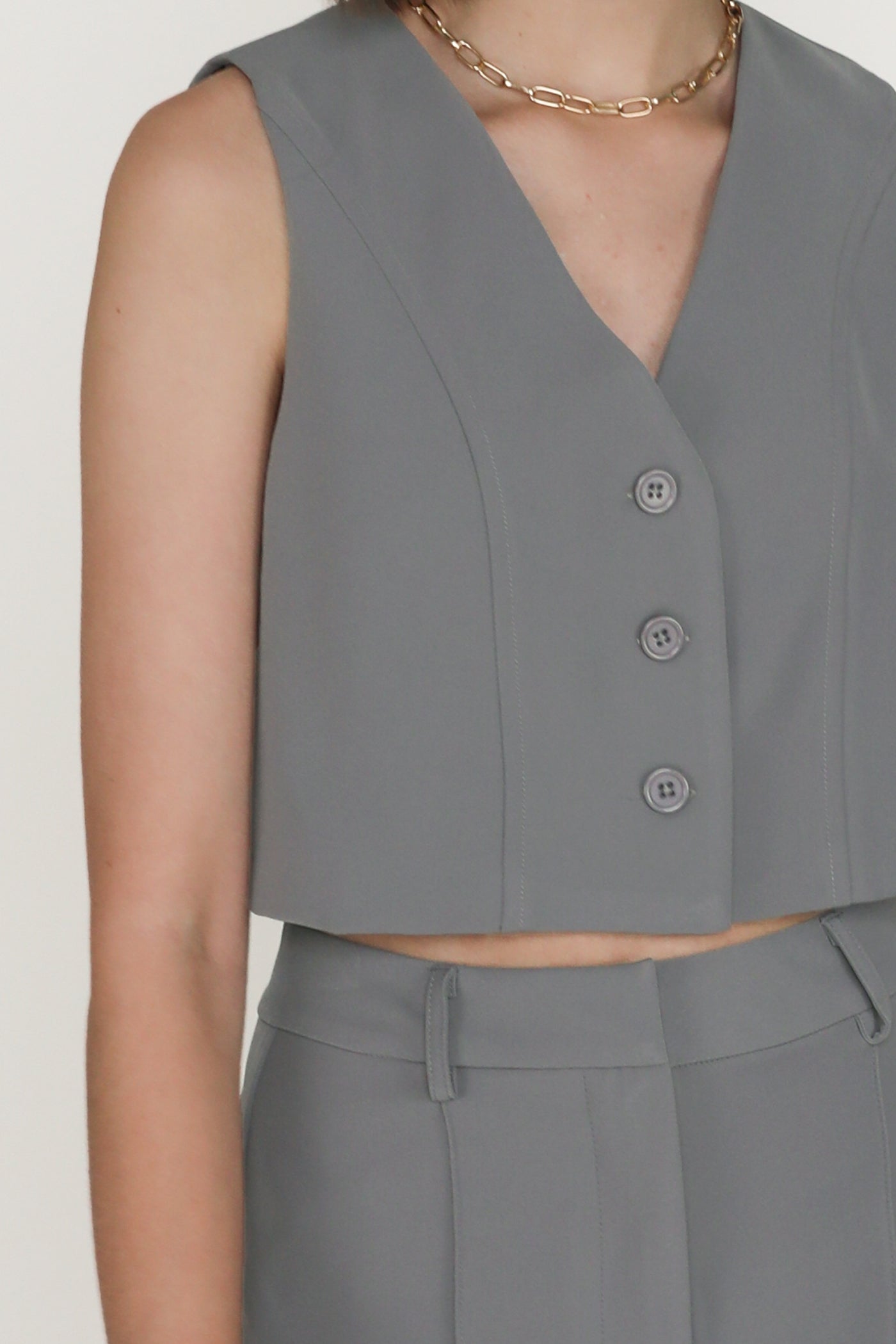 Suit up with a classic vest like Jaxon. Jaxon Button Down Vest Top is a style staple with its simple crop fit and boxy silhouette. From office hours to weekends out, this versatile top offers endless styling options. Give your outfits a dash of chic edge with Jaxon.