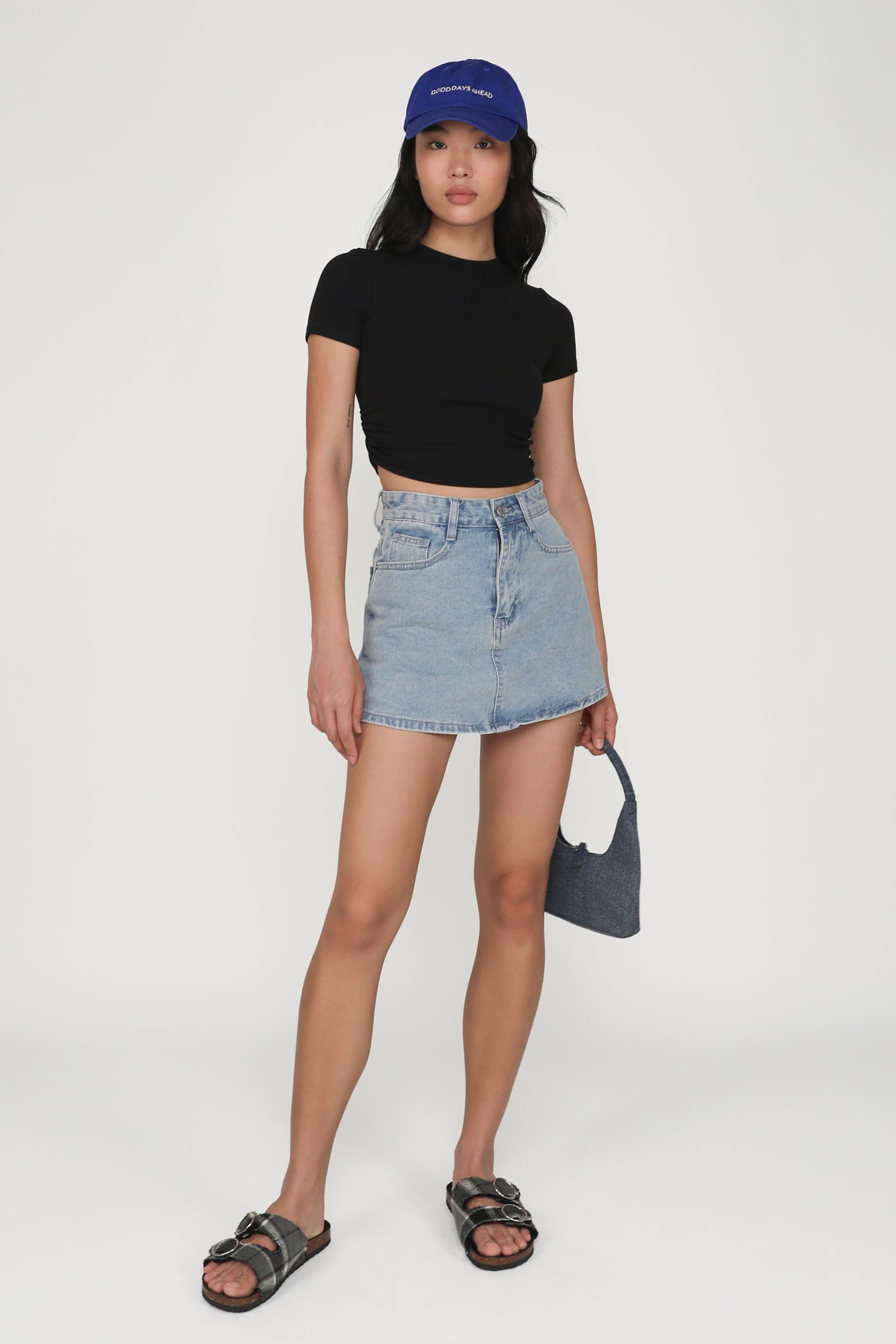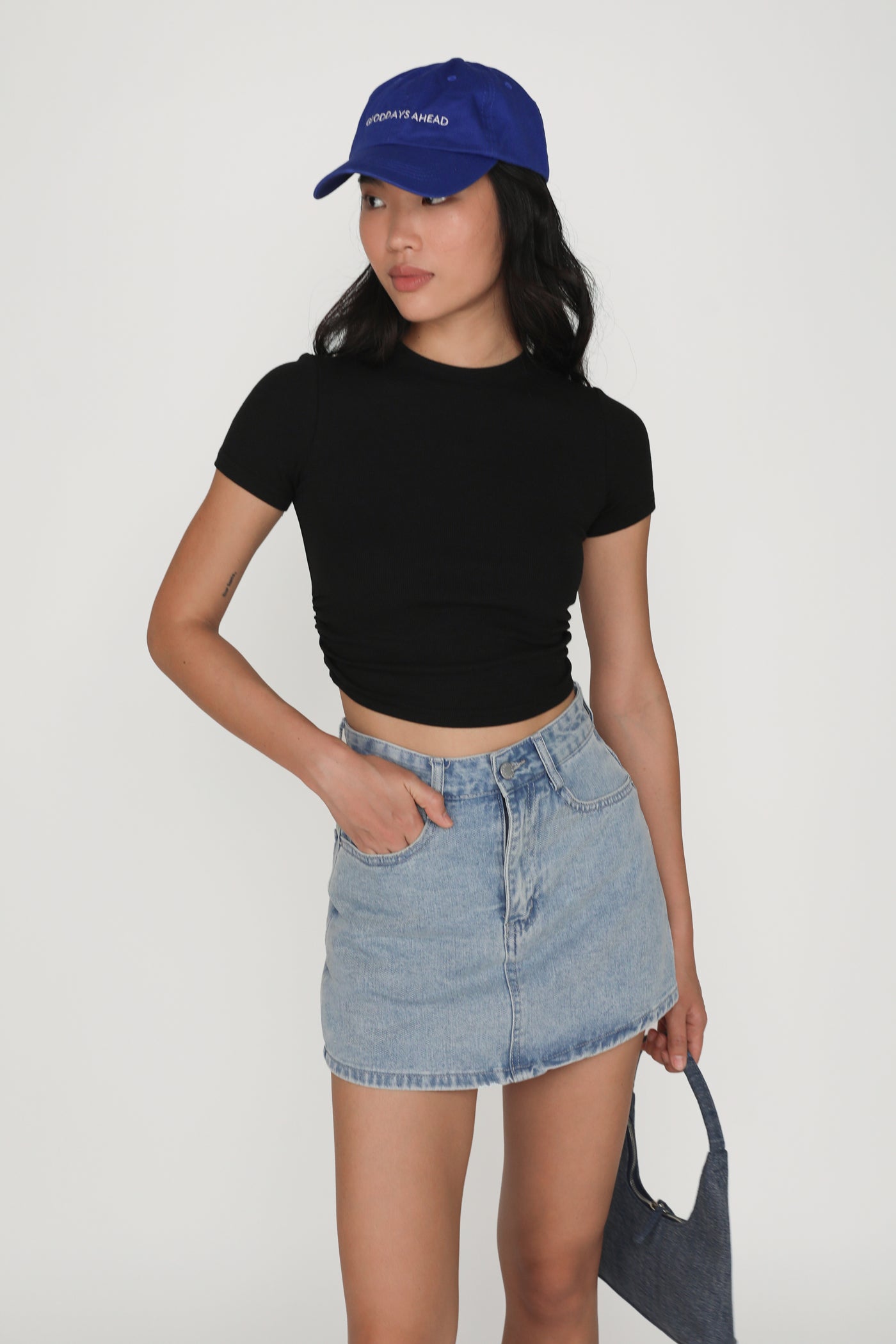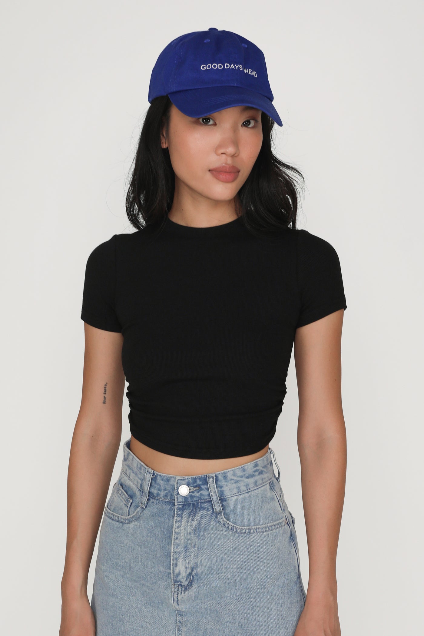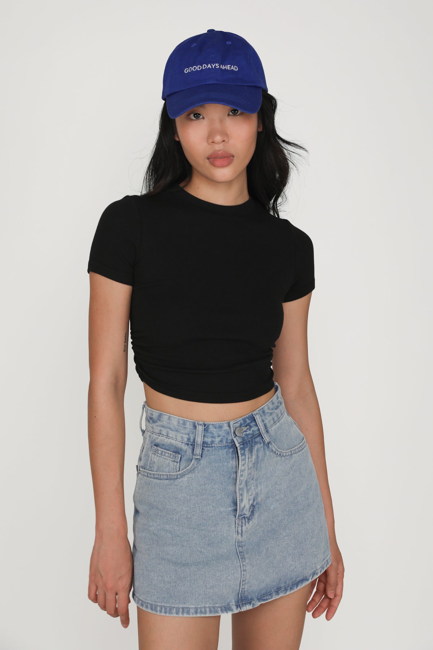 Level up your basics with Marcelo. Marcelo Side Ruched Basic Tee flaunts a classic baby tee silhouette that is simple and versatile. Peek the ruched details along the sides that give the piece a fresh and cool flair. Toss this on with your favourite pair of bottoms and you're ready to slay the day!