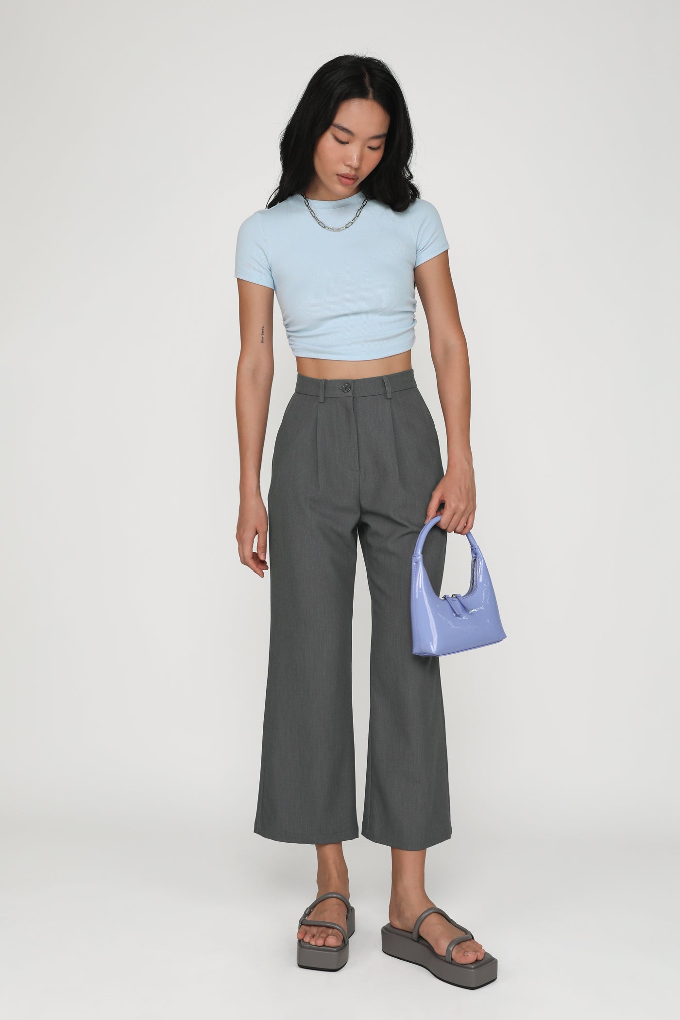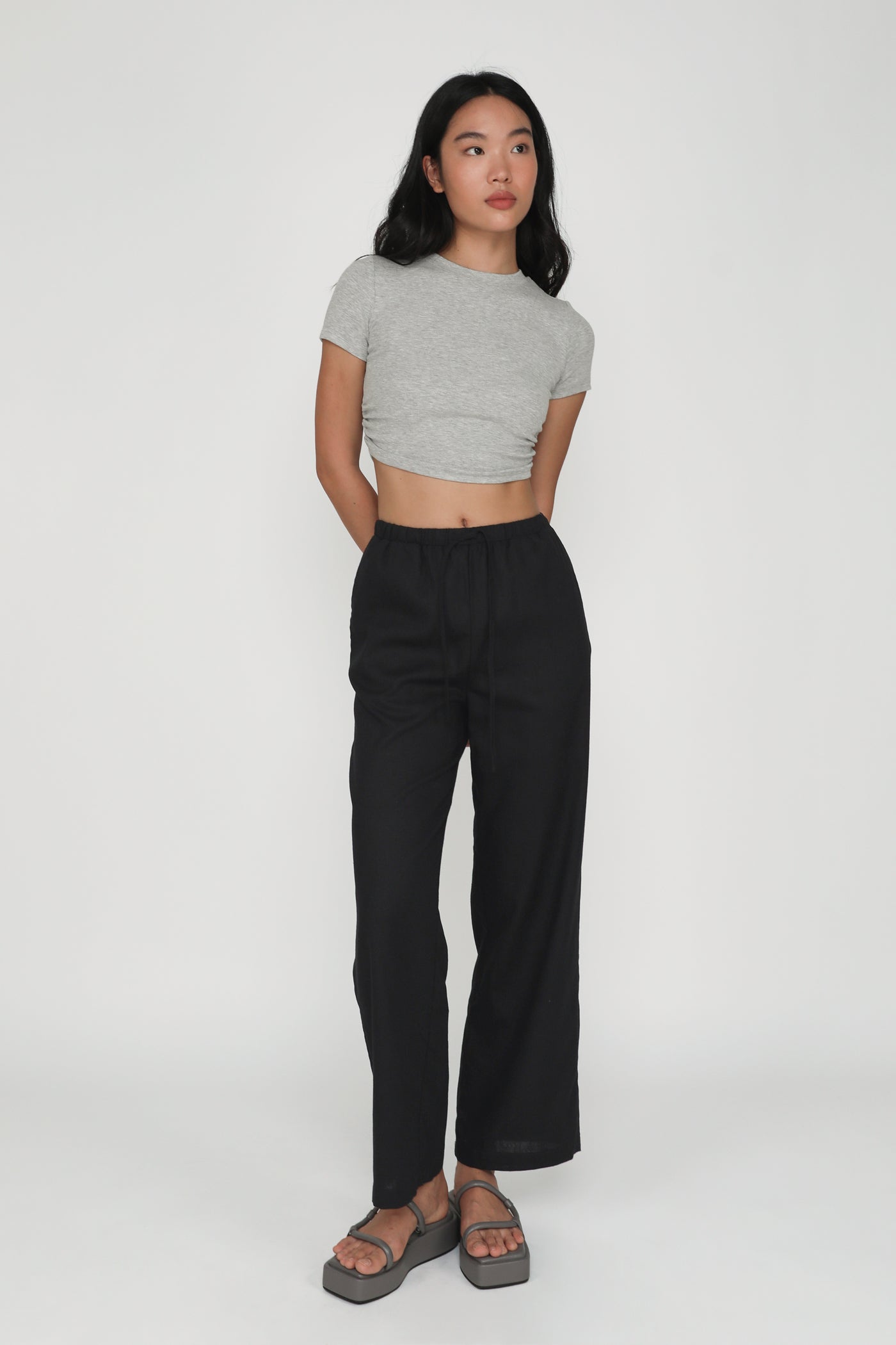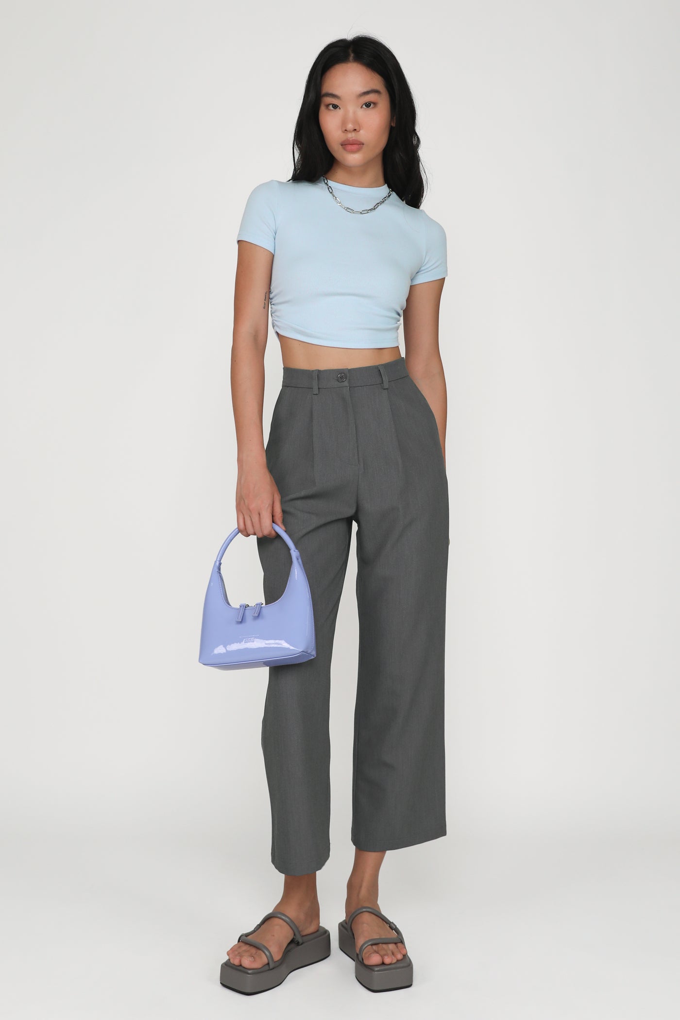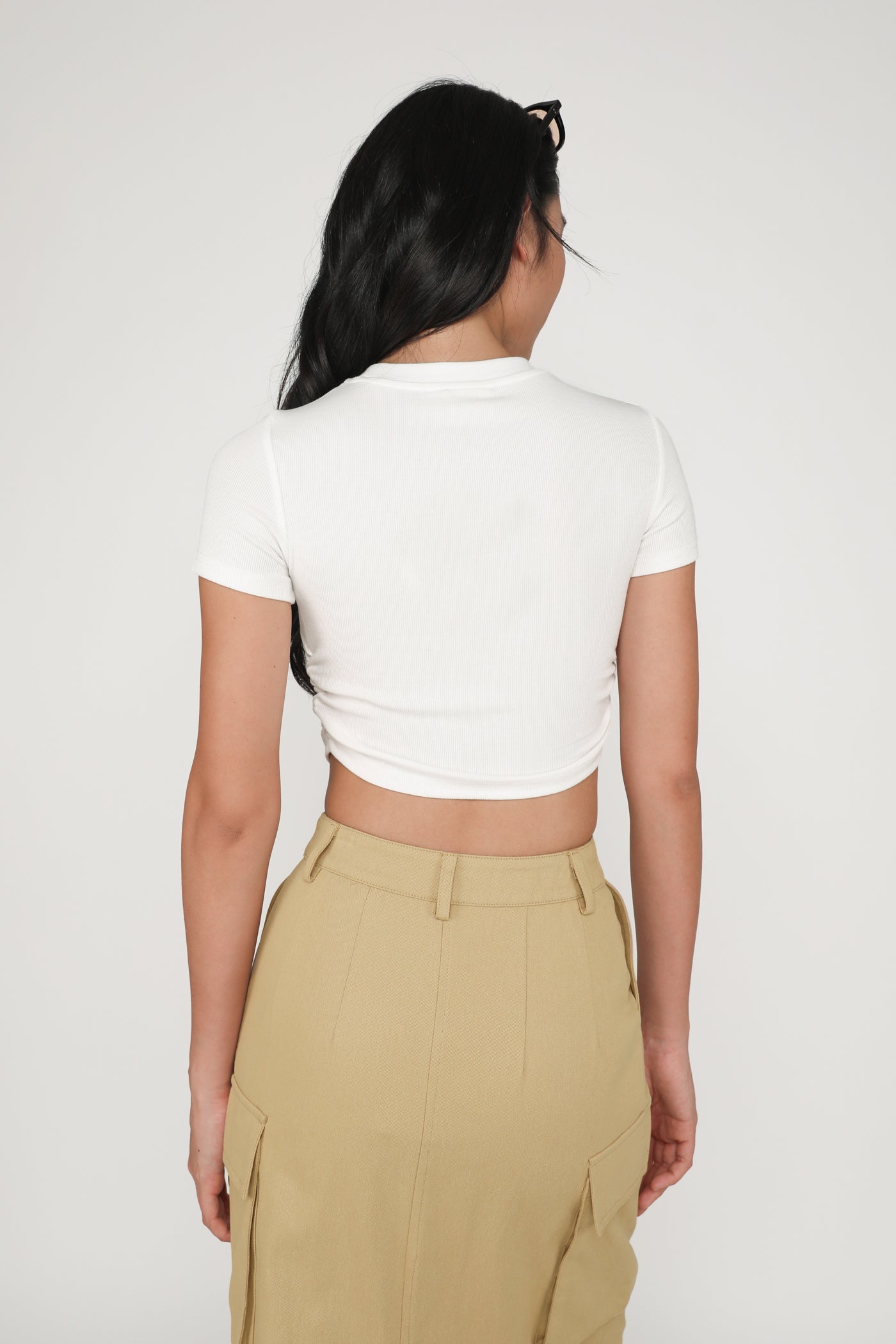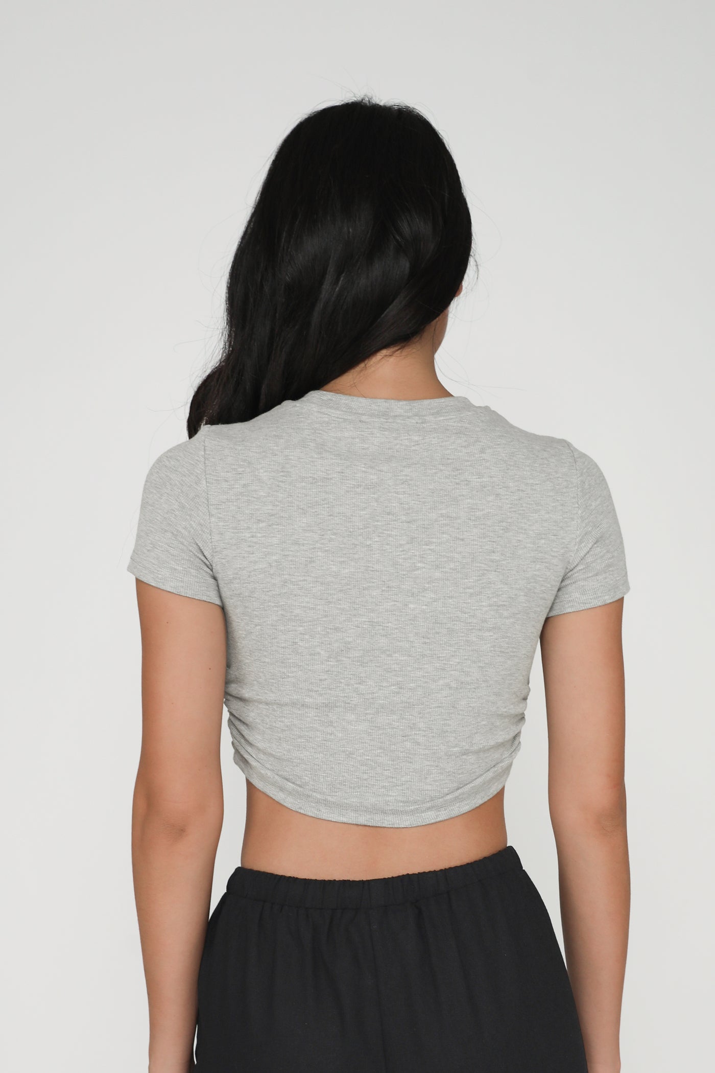 Level up your basics with Marcelo. Marcelo Side Ruched Basic Tee flaunts a classic baby tee silhouette that is simple and versatile. Peek the ruched details along the sides that give the piece a fresh and cool flair. Toss this on with your favourite pair of bottoms and you're ready to slay the day!