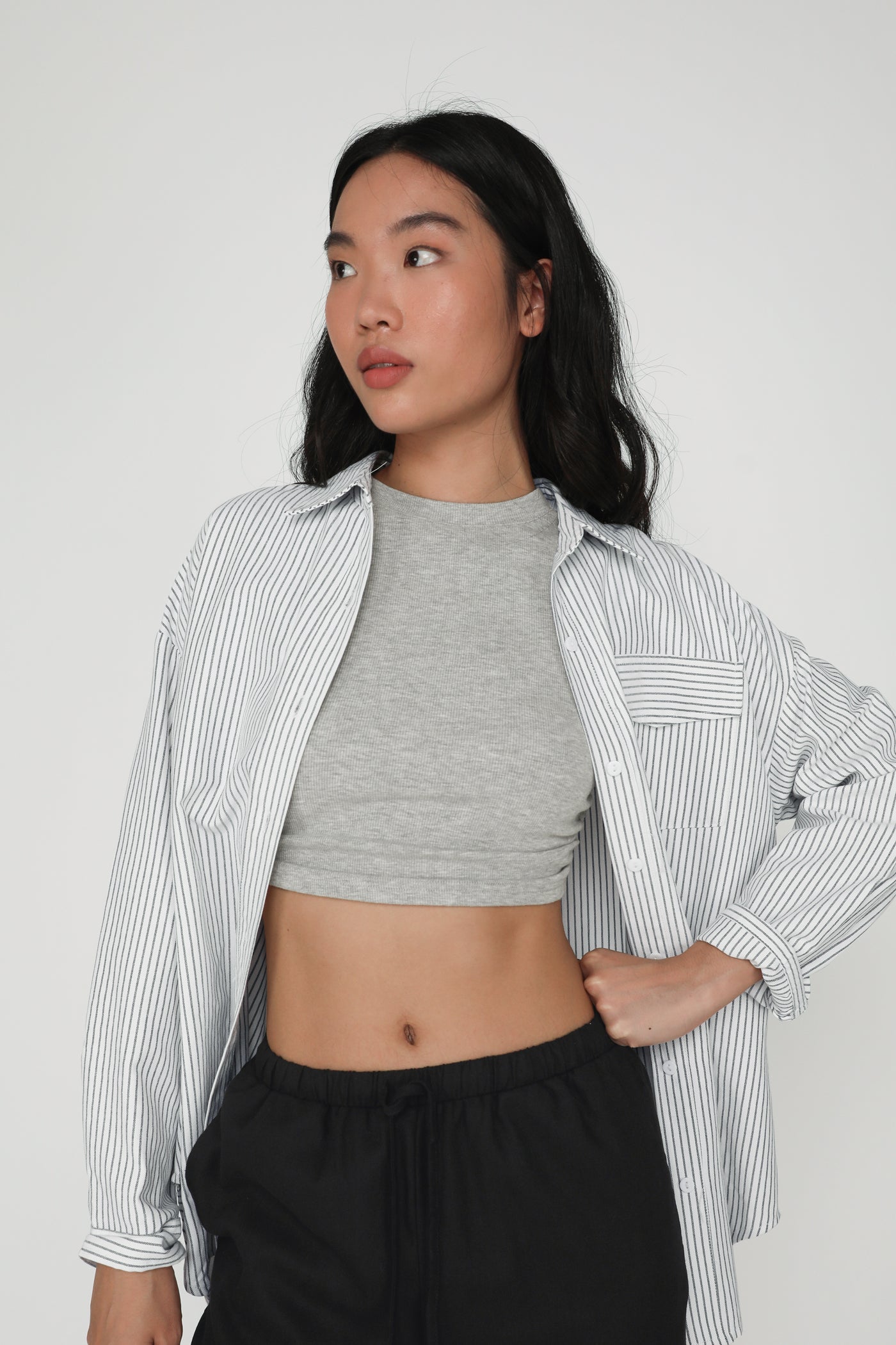 This top is made of non lined ribbed cotton jersey for a light and comfortable fit. It is complete with ruched details at the side.