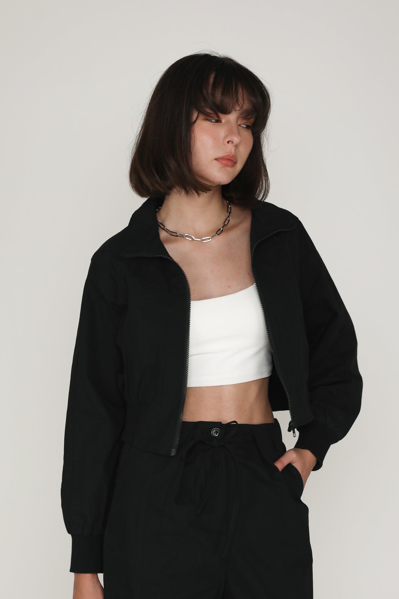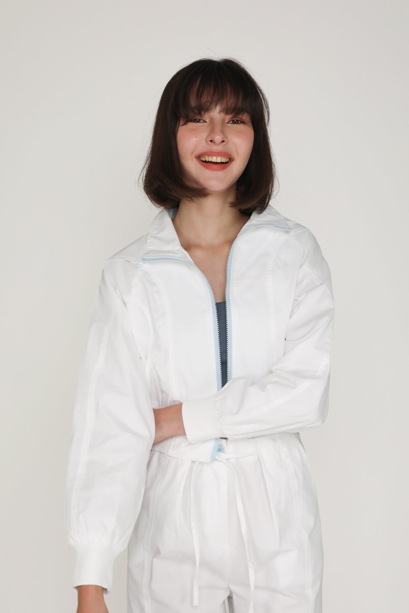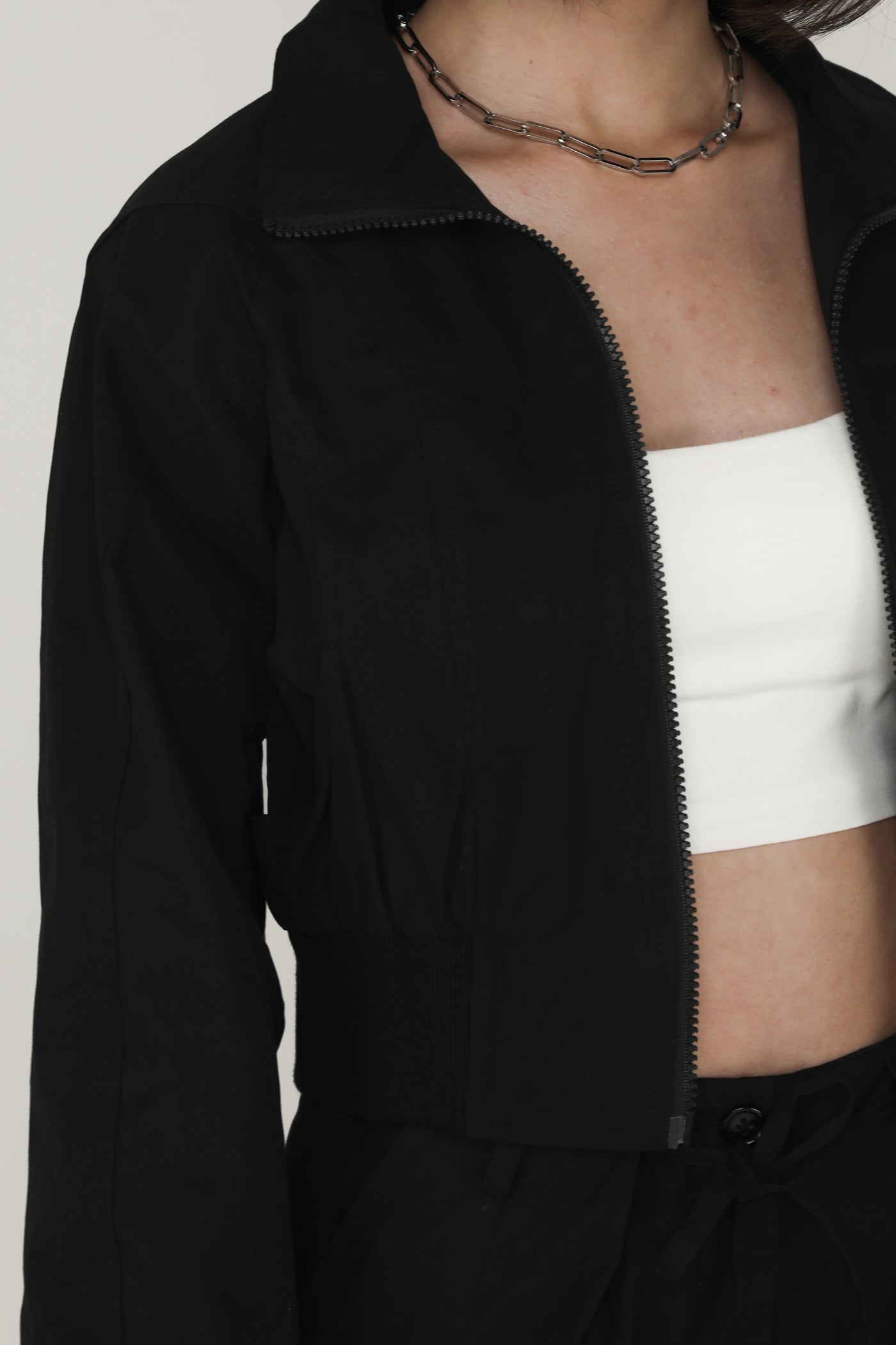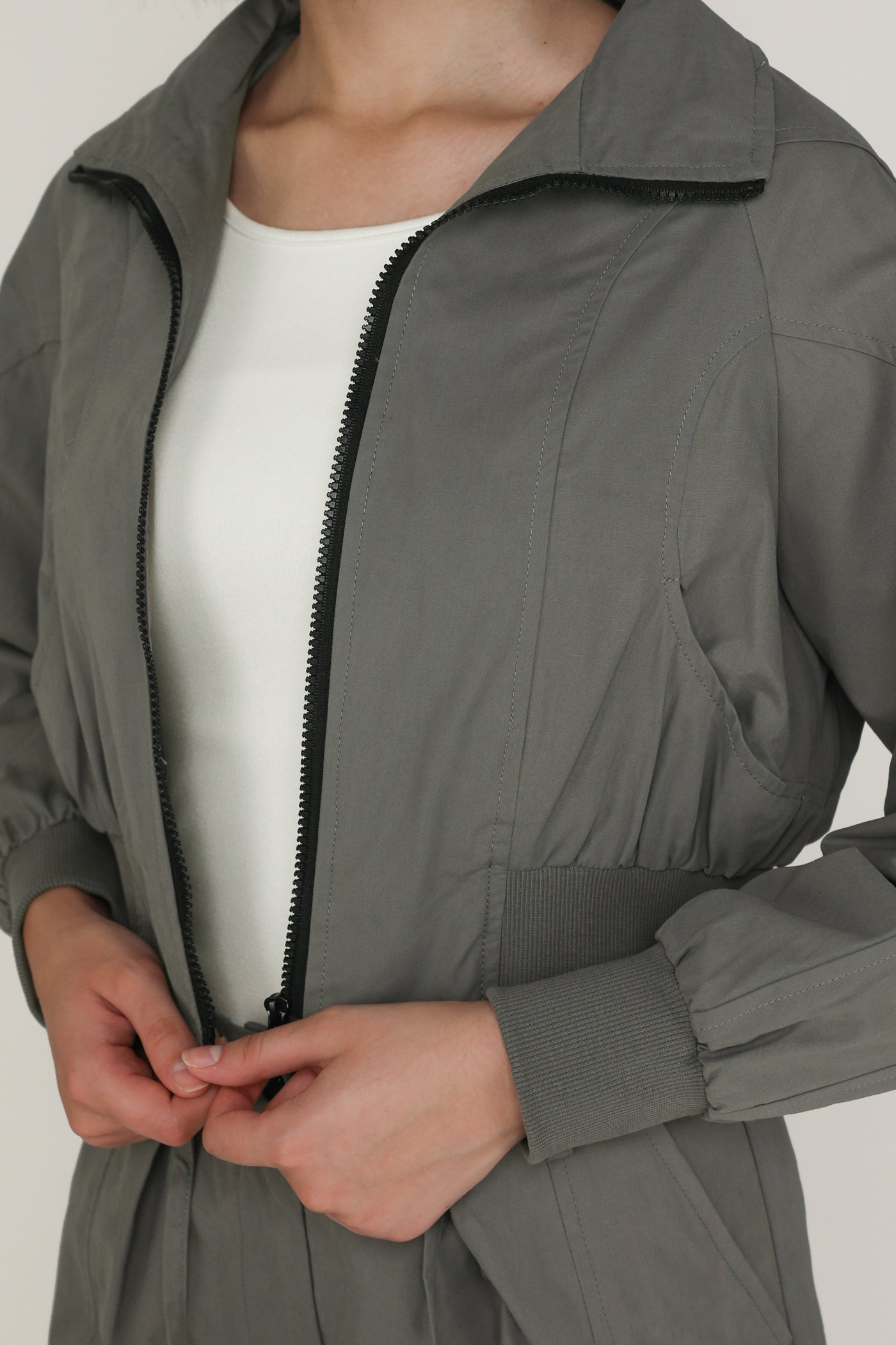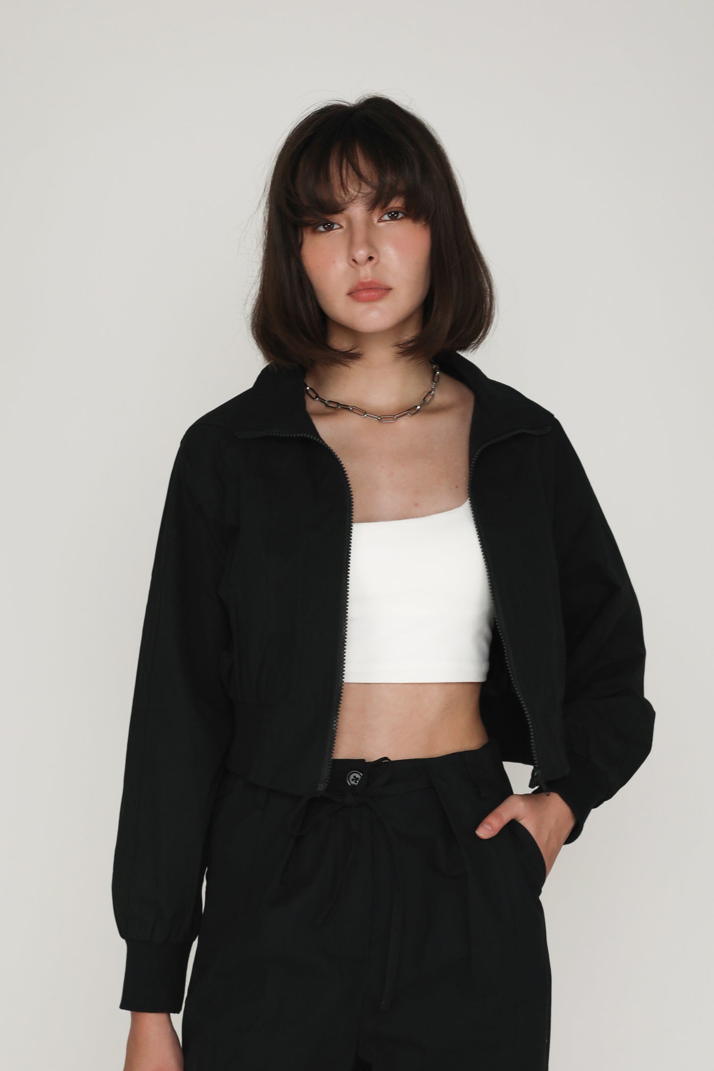 This jacket is made of inner lined cotton material for a light and breathable fit. it is complete with functional front pockets and an exposed front zip.