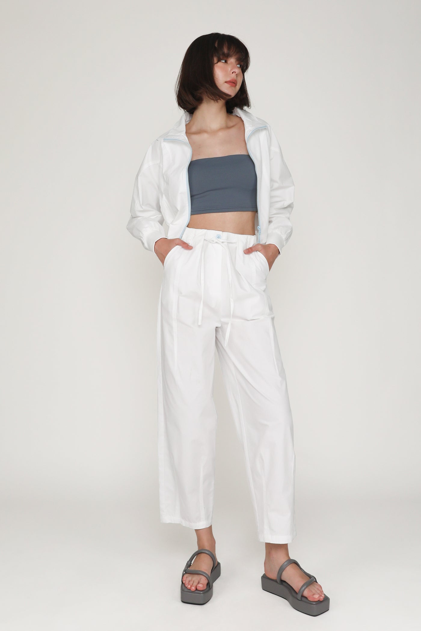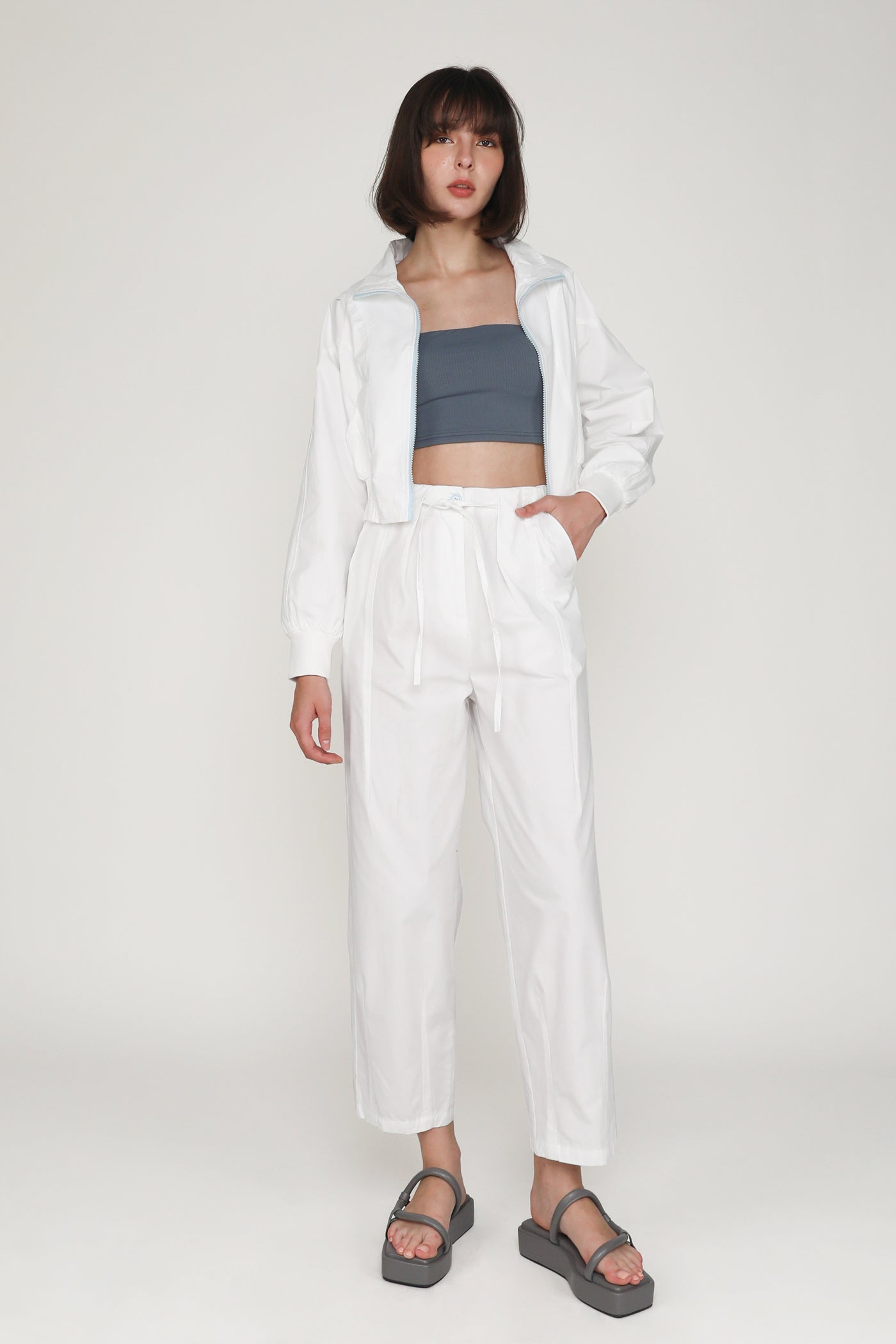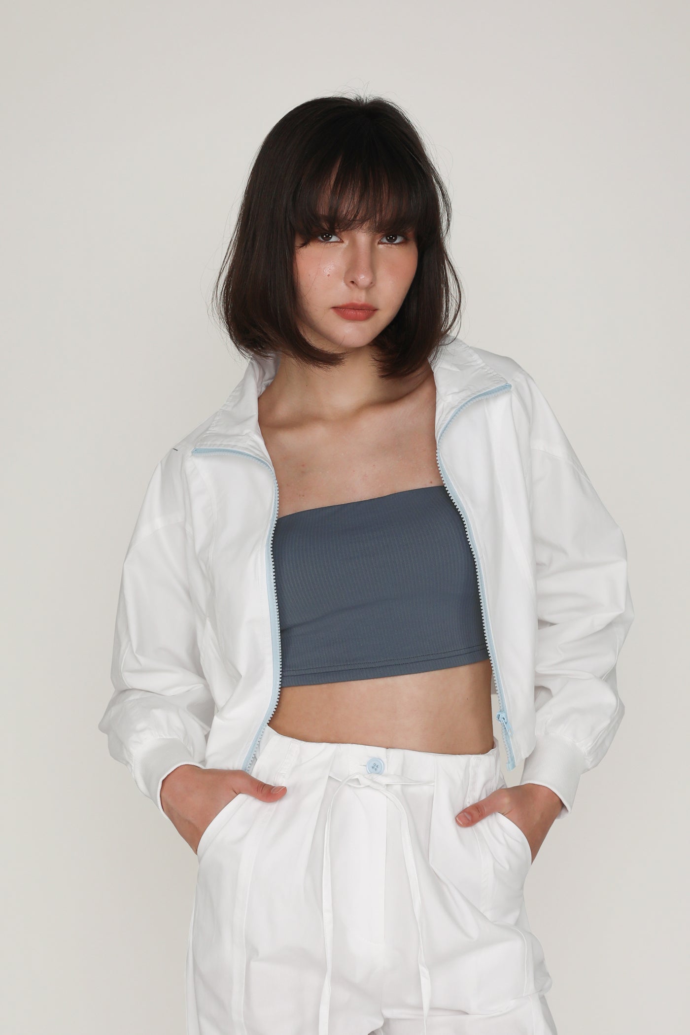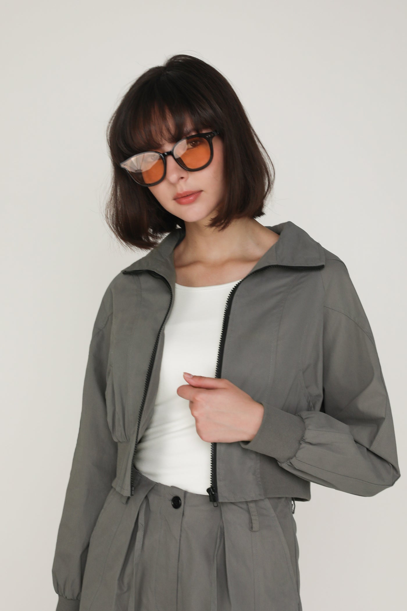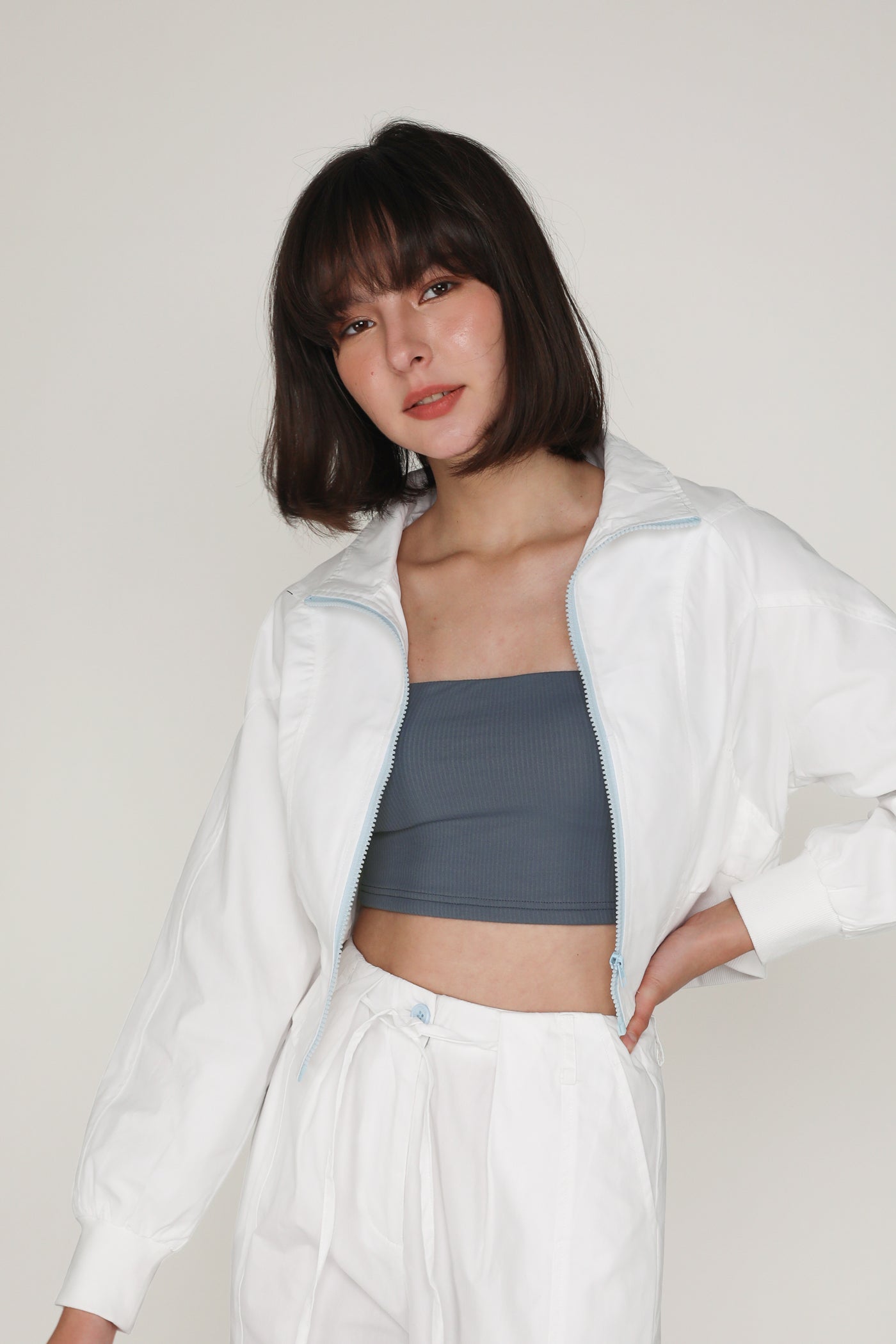 This jacket is made of inner lined cotton material for a light and breathable fit. it is complete with functional front pockets and an exposed front zip.