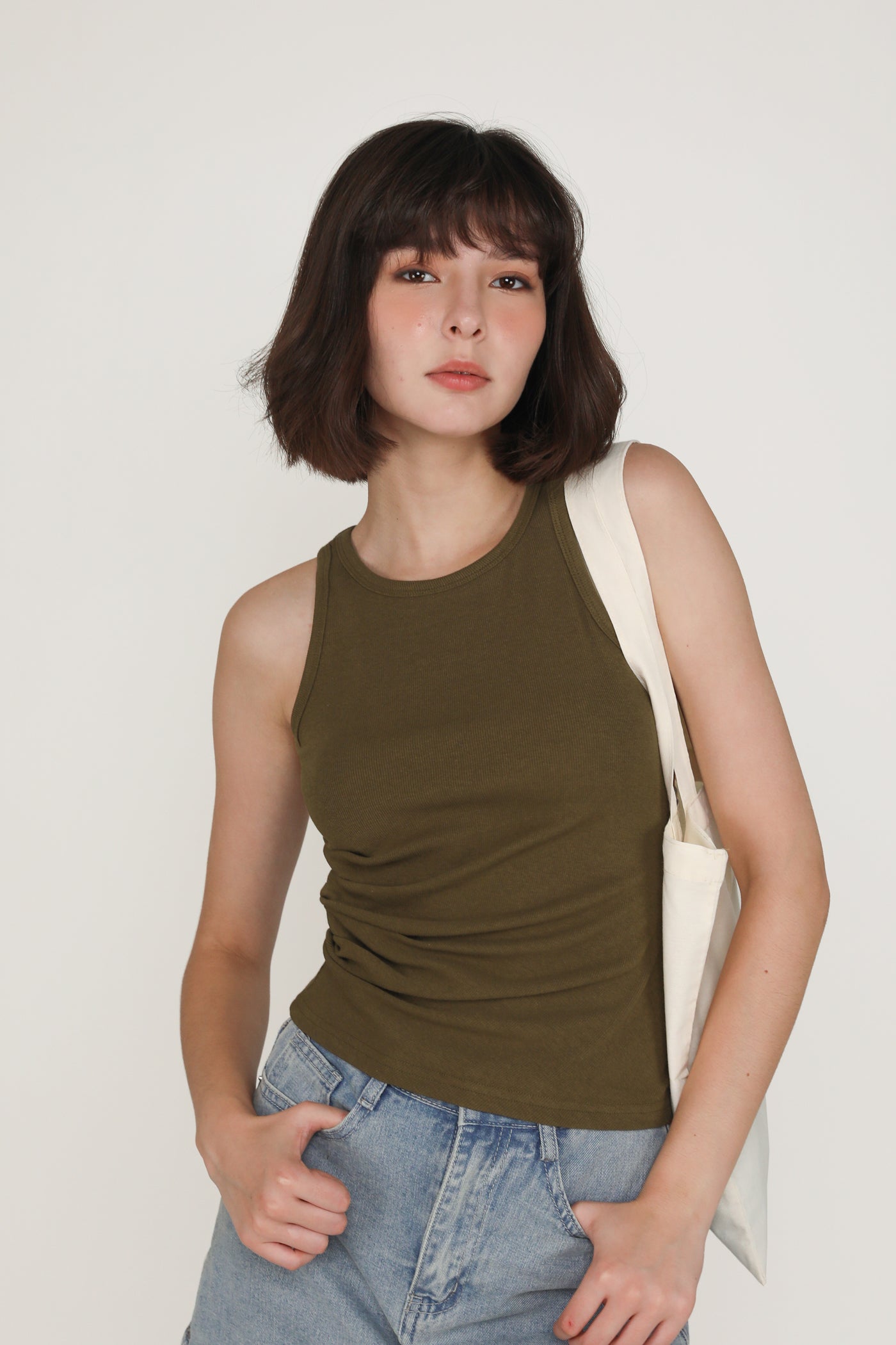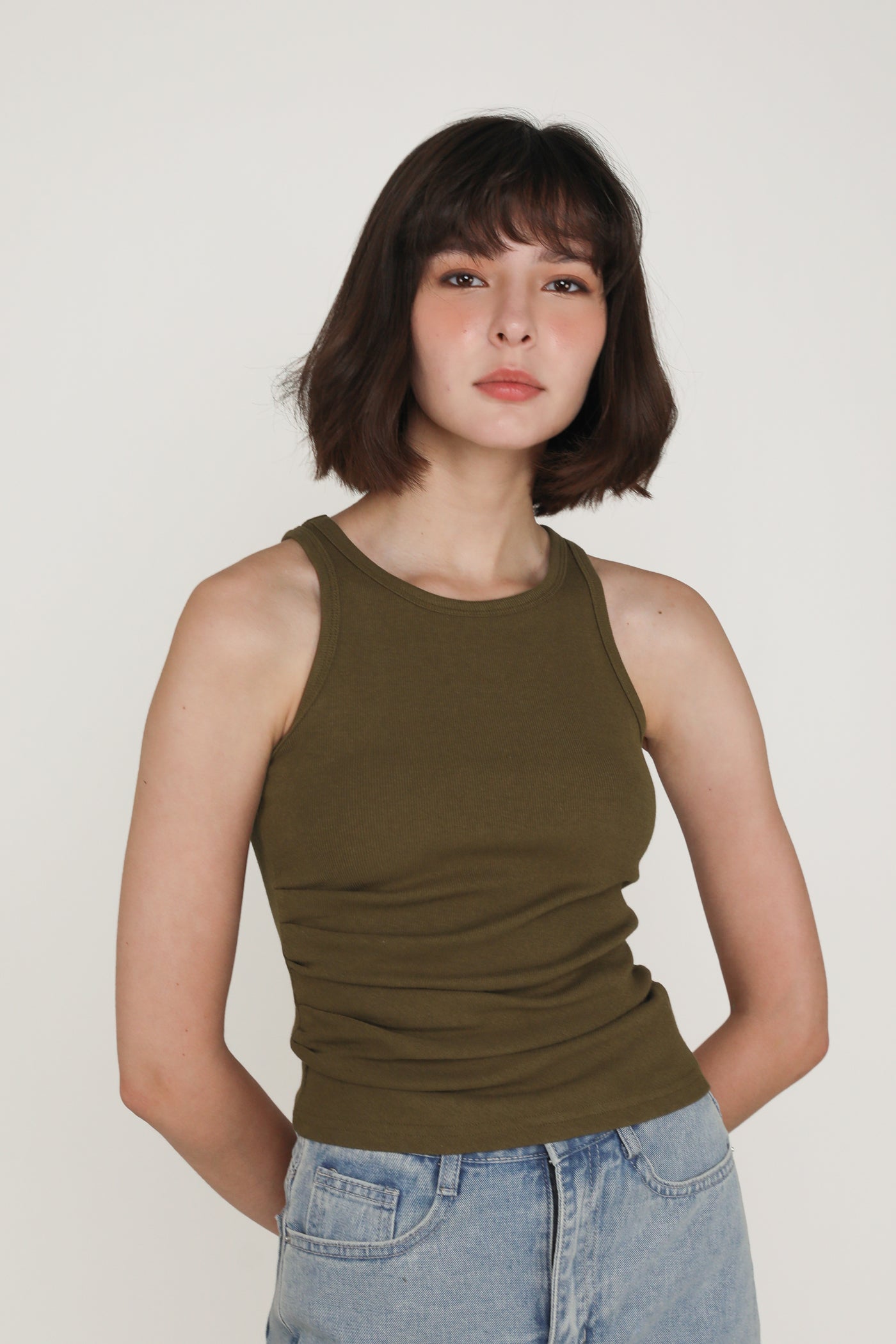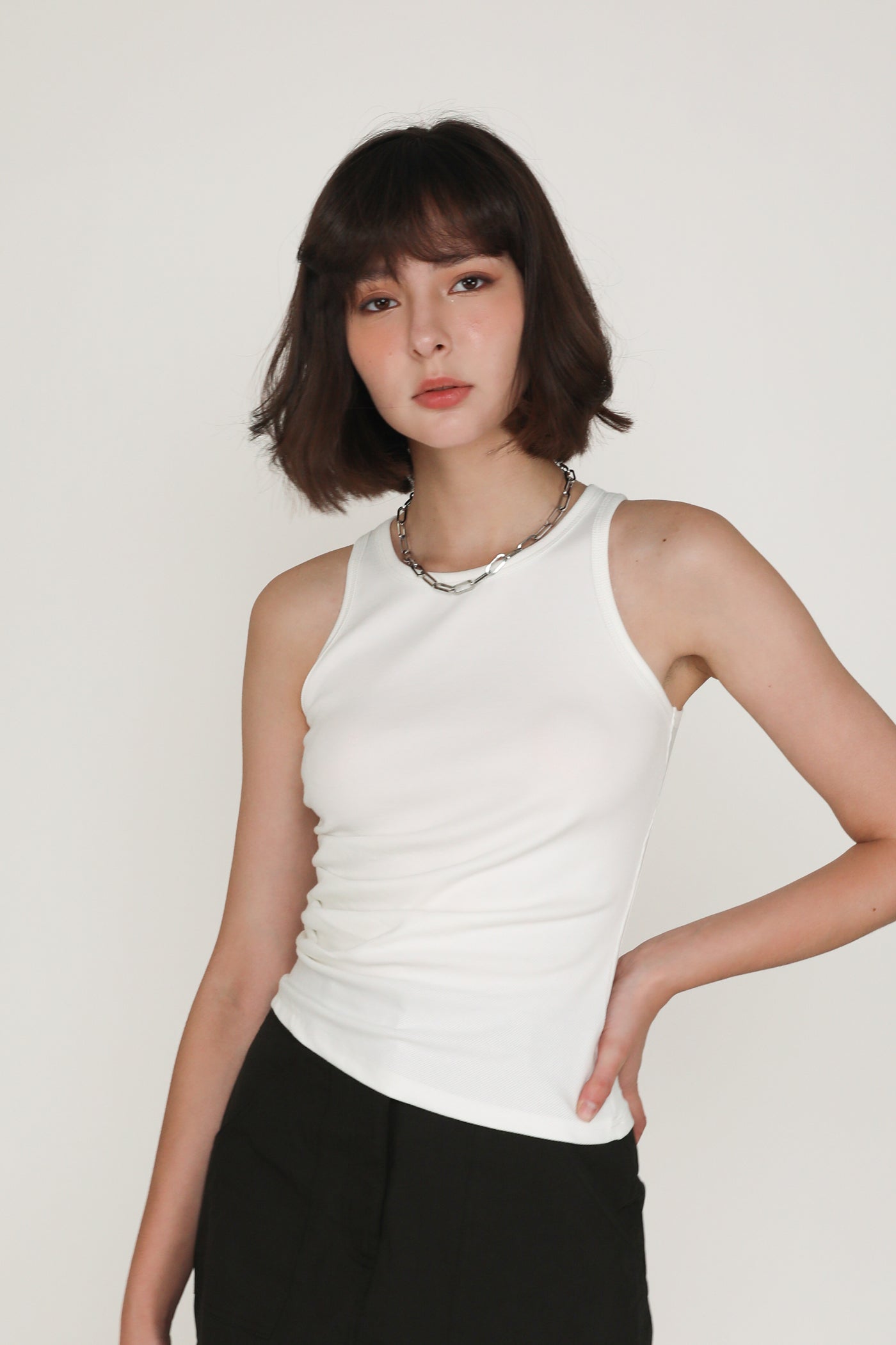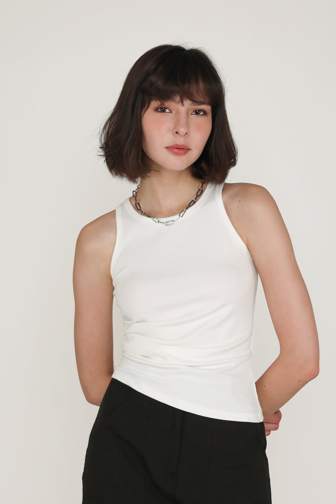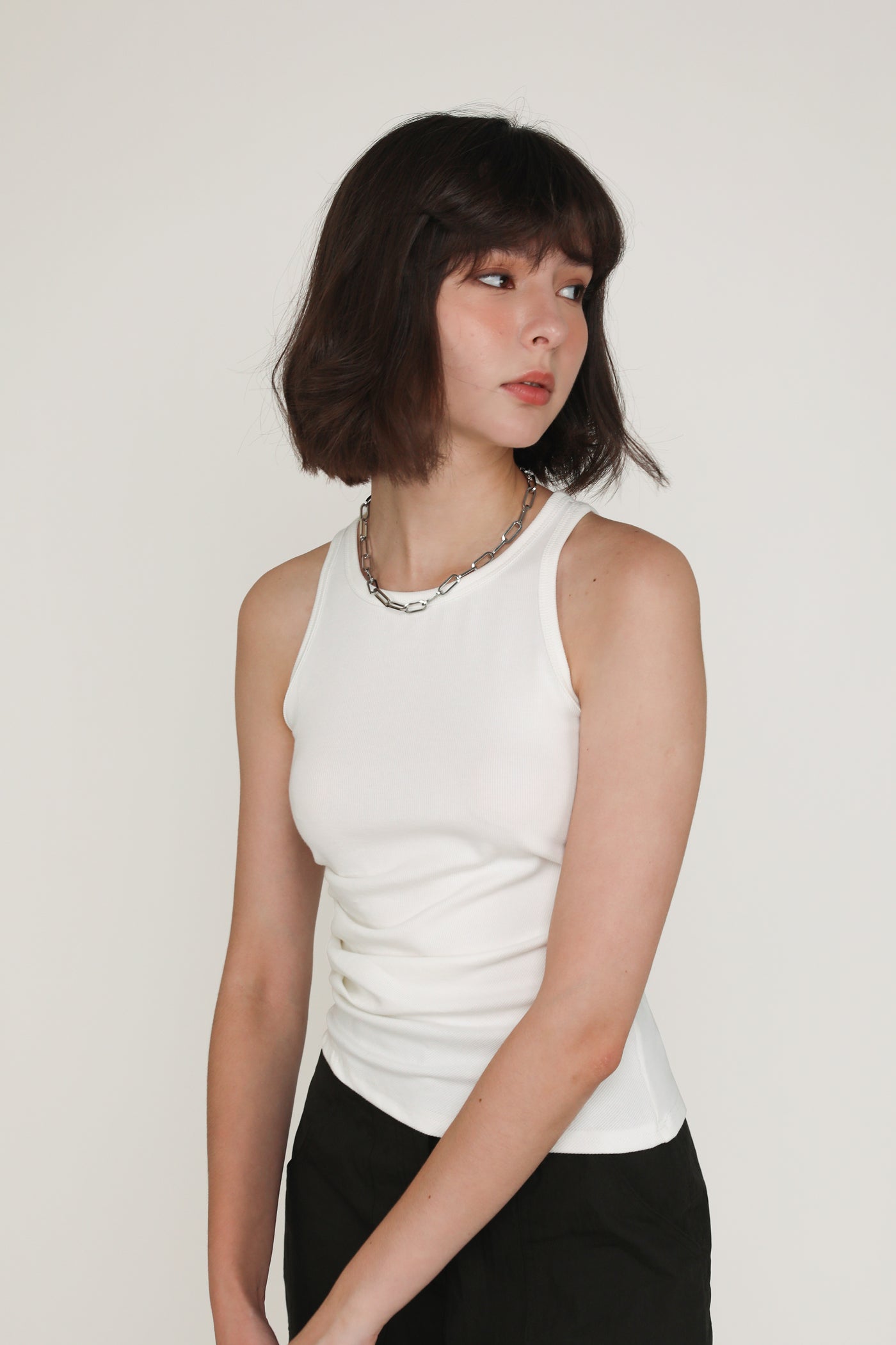 Style up your week with Nelle. This playful racercut top features chic ruched details and an asymmetrical cut. Bursting with charming details, Nelle is a unique yet versatile piece to style with your favourite bottoms. From Sunday brunch to date nights, it is an effortless way to elevate an outfit.