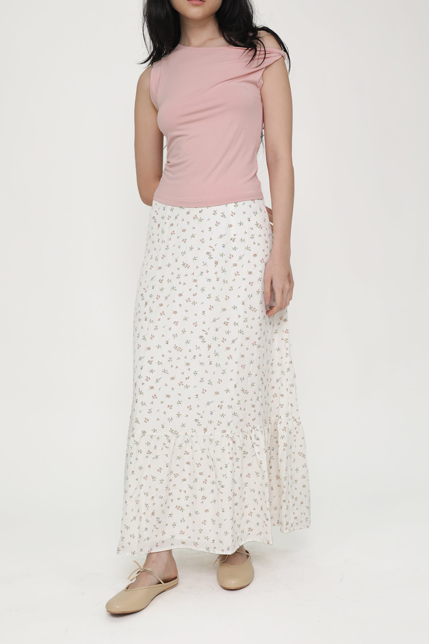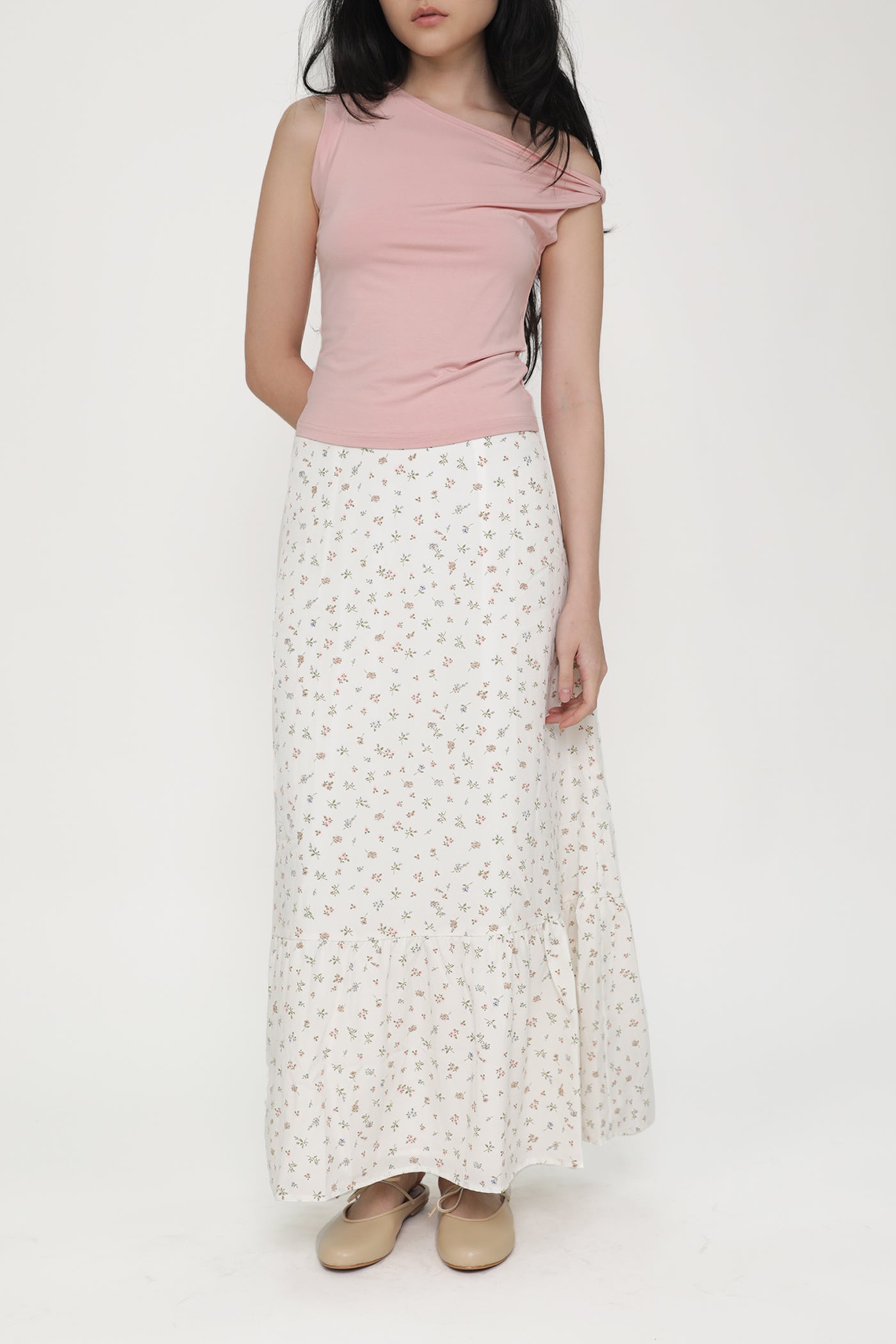Float through your days with Charlene. With its graceful tiered design and effortlessly flowy silhouette, Charlene Tiered Maxi Skirt is the epitome of feminine charm. Available in a timeless white colour or a sweet floral pattern, Charlene offers endless styling versatility for casual days or elevated evenings.