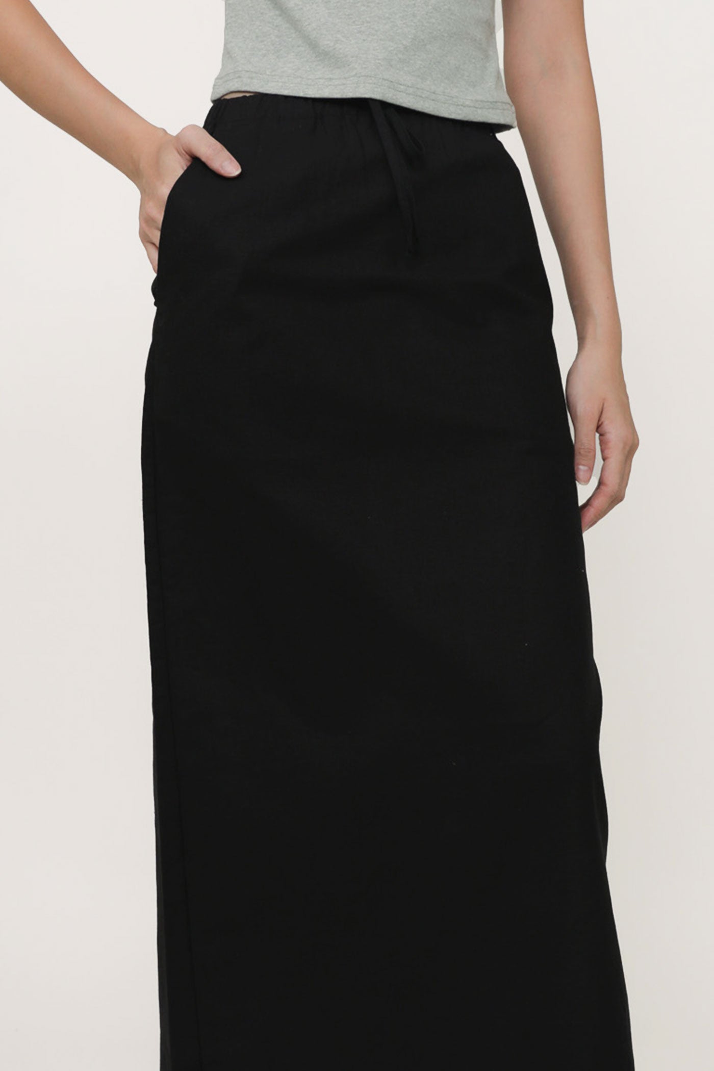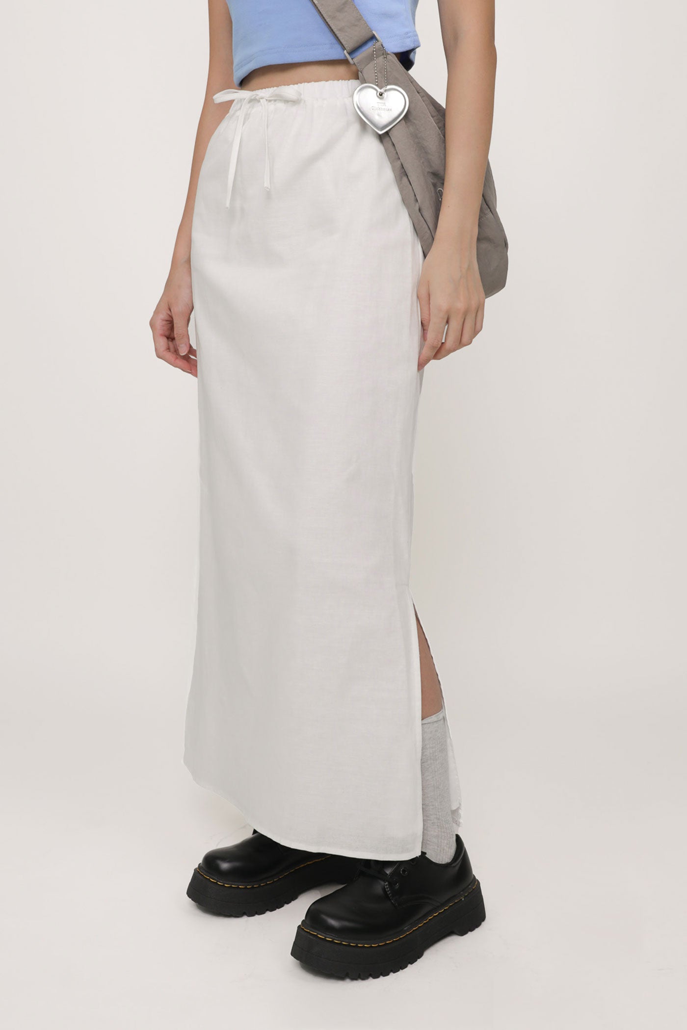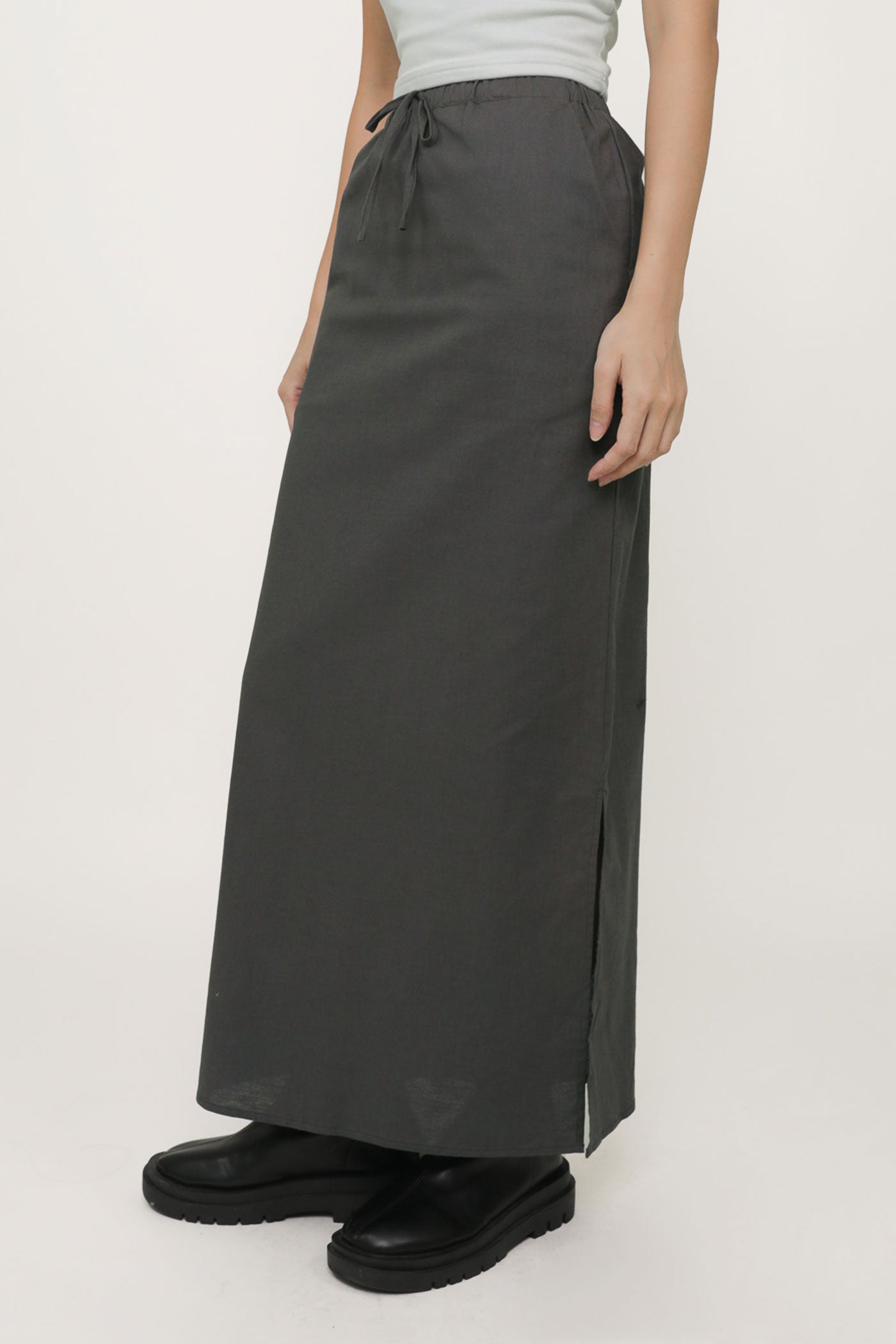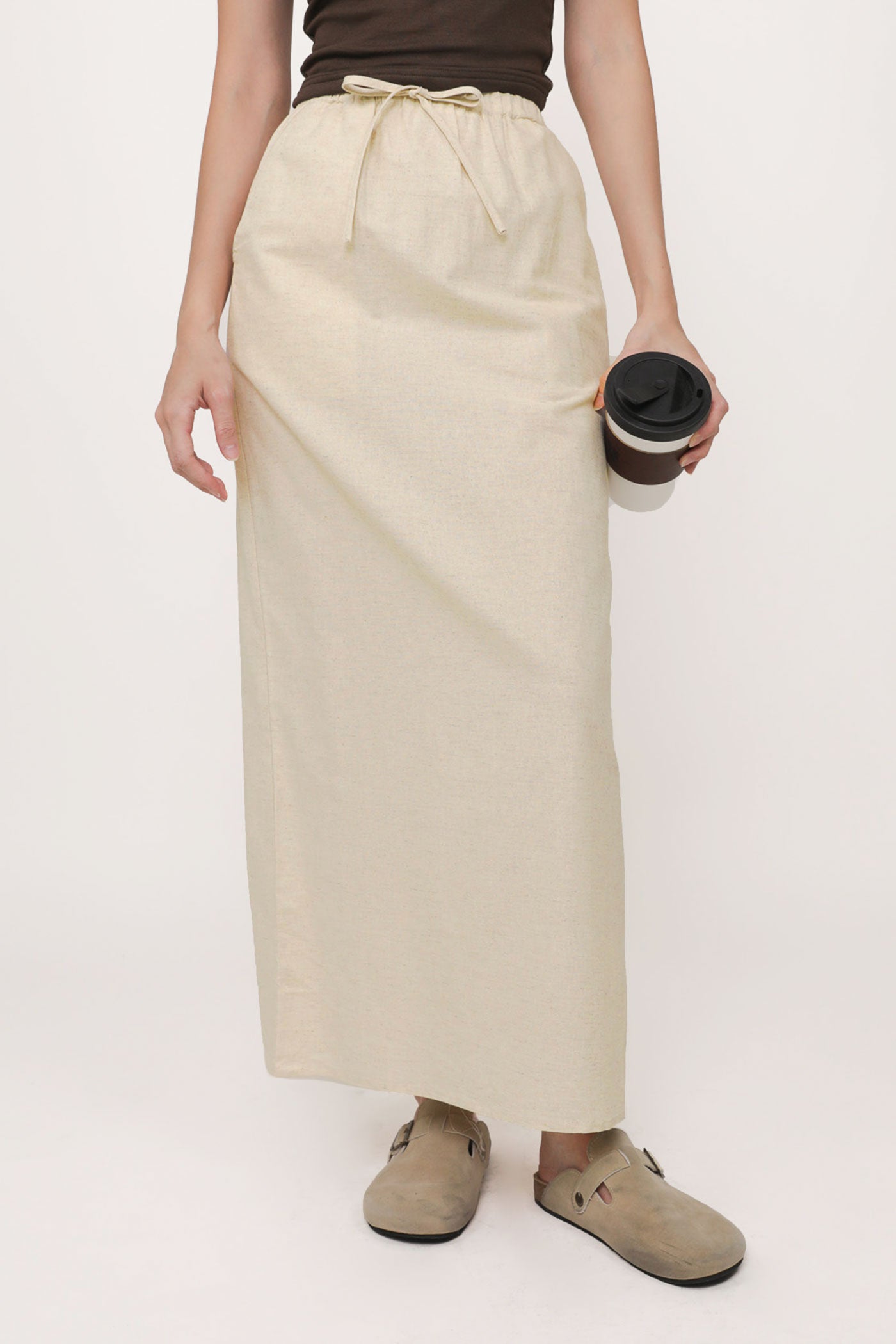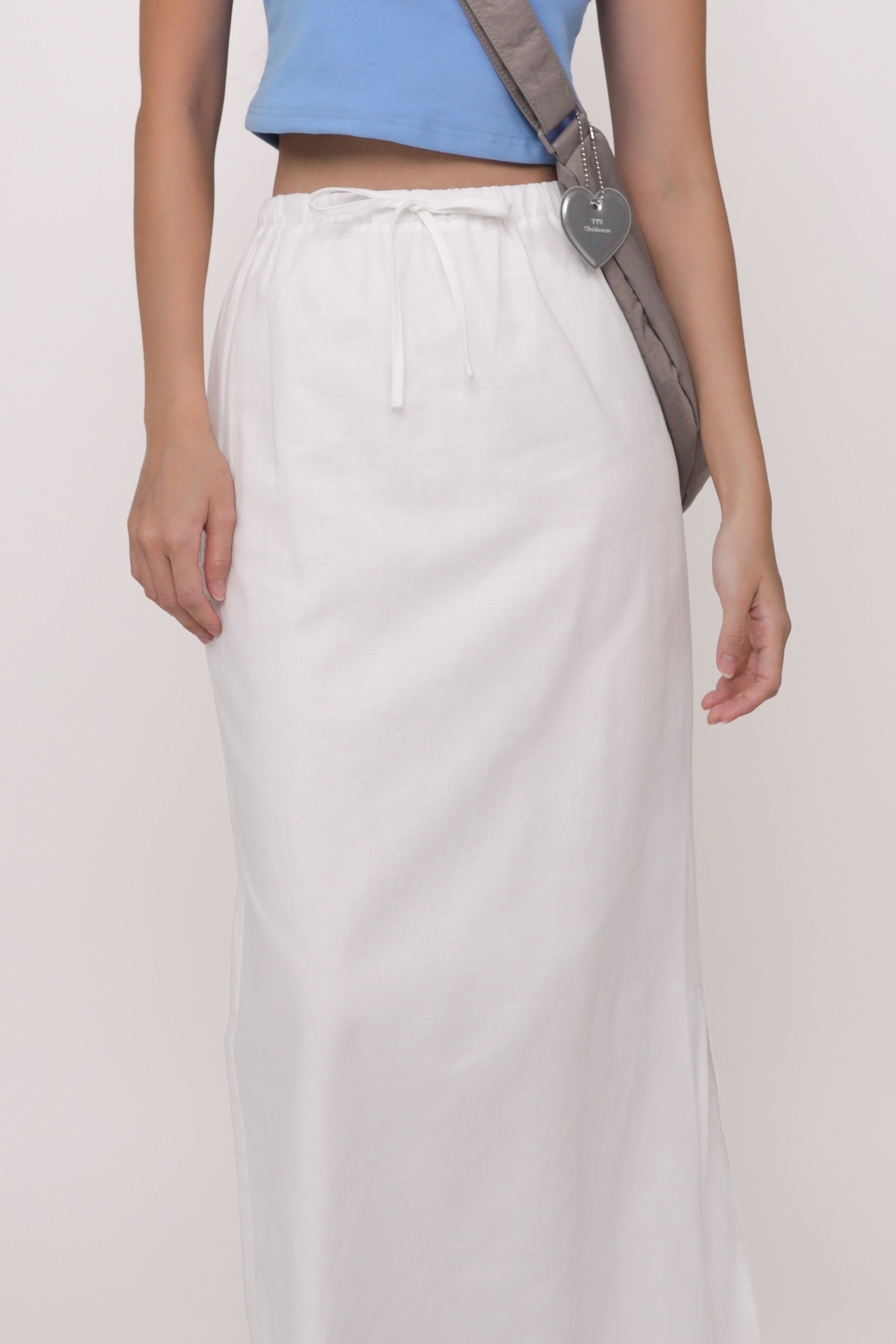 Draw in the spring chic mood with Jaden. Jaden Linen Drawstring Maxi Skirt is a simple, sleek piece that invites an elegant flair to a simple outfit. From breezy tees to feminine tops, Jaden complements your casual wardrobe easily. Create charming, comfy looks with Jaden.