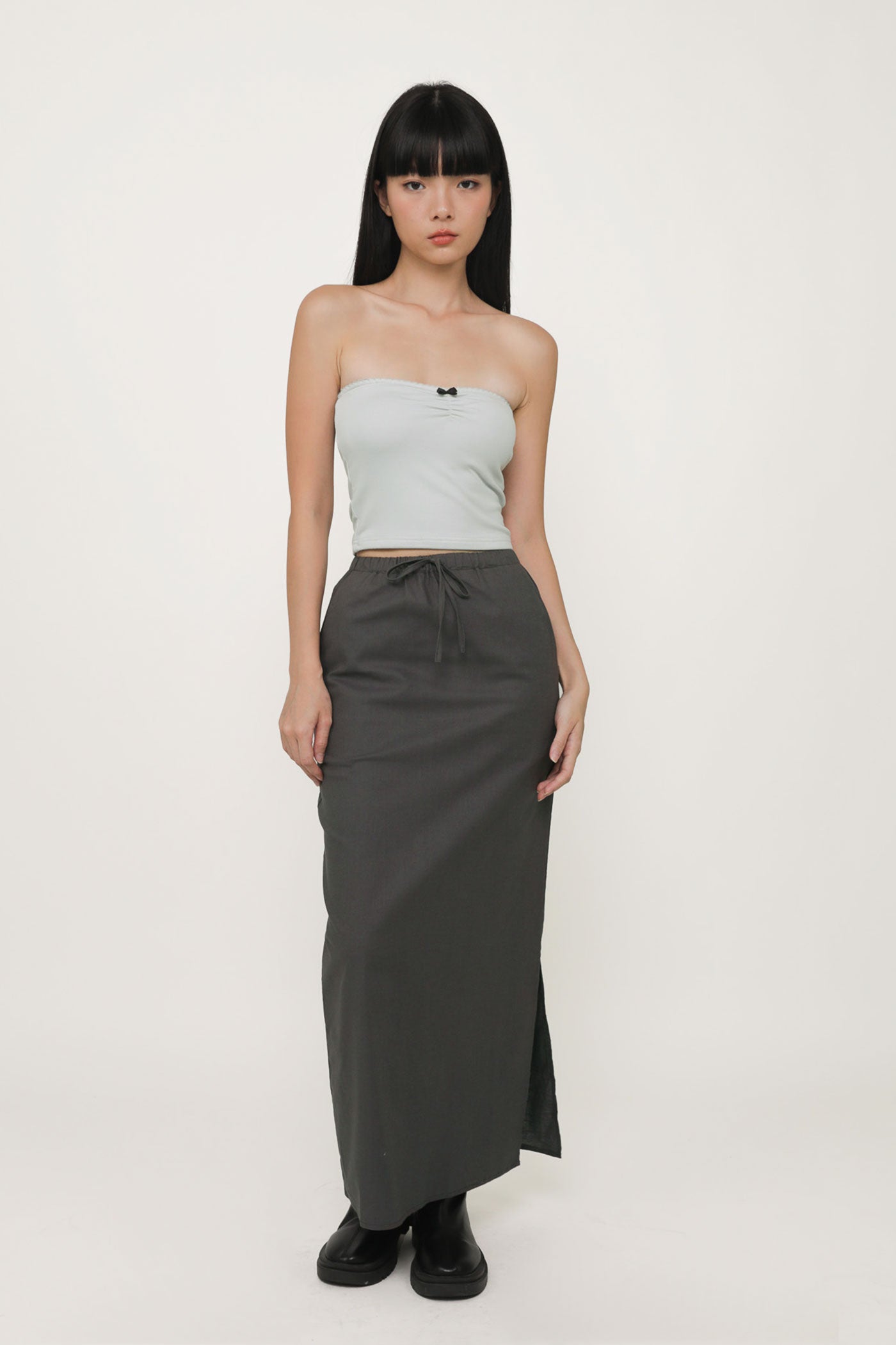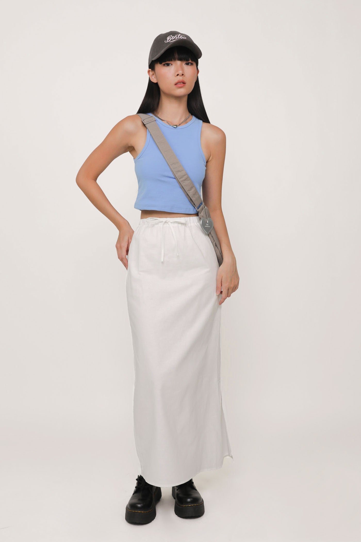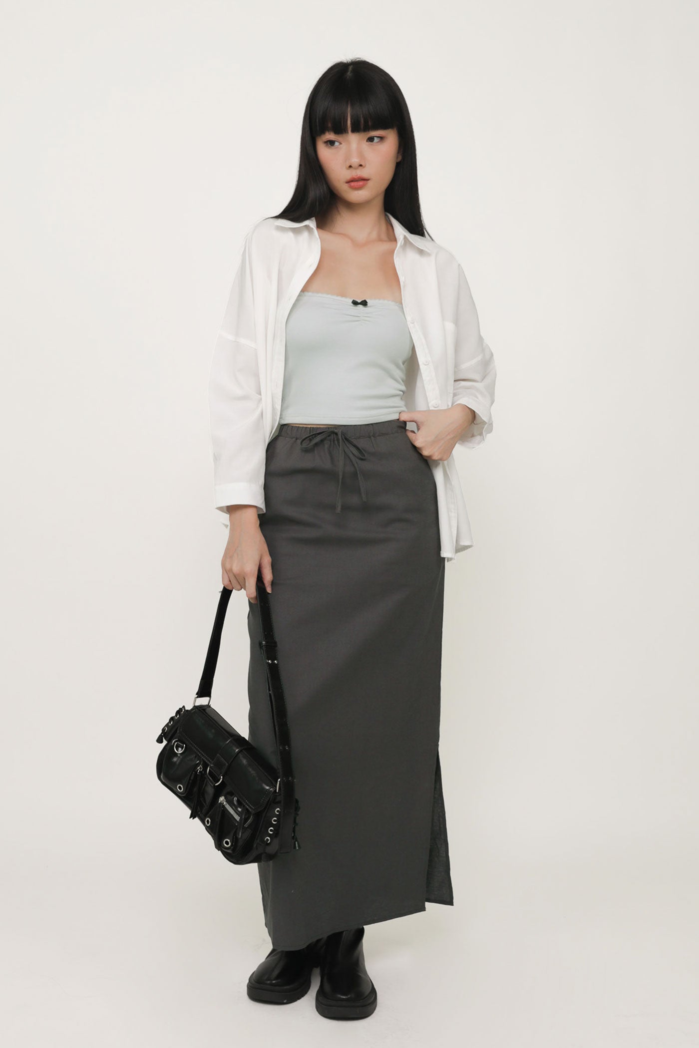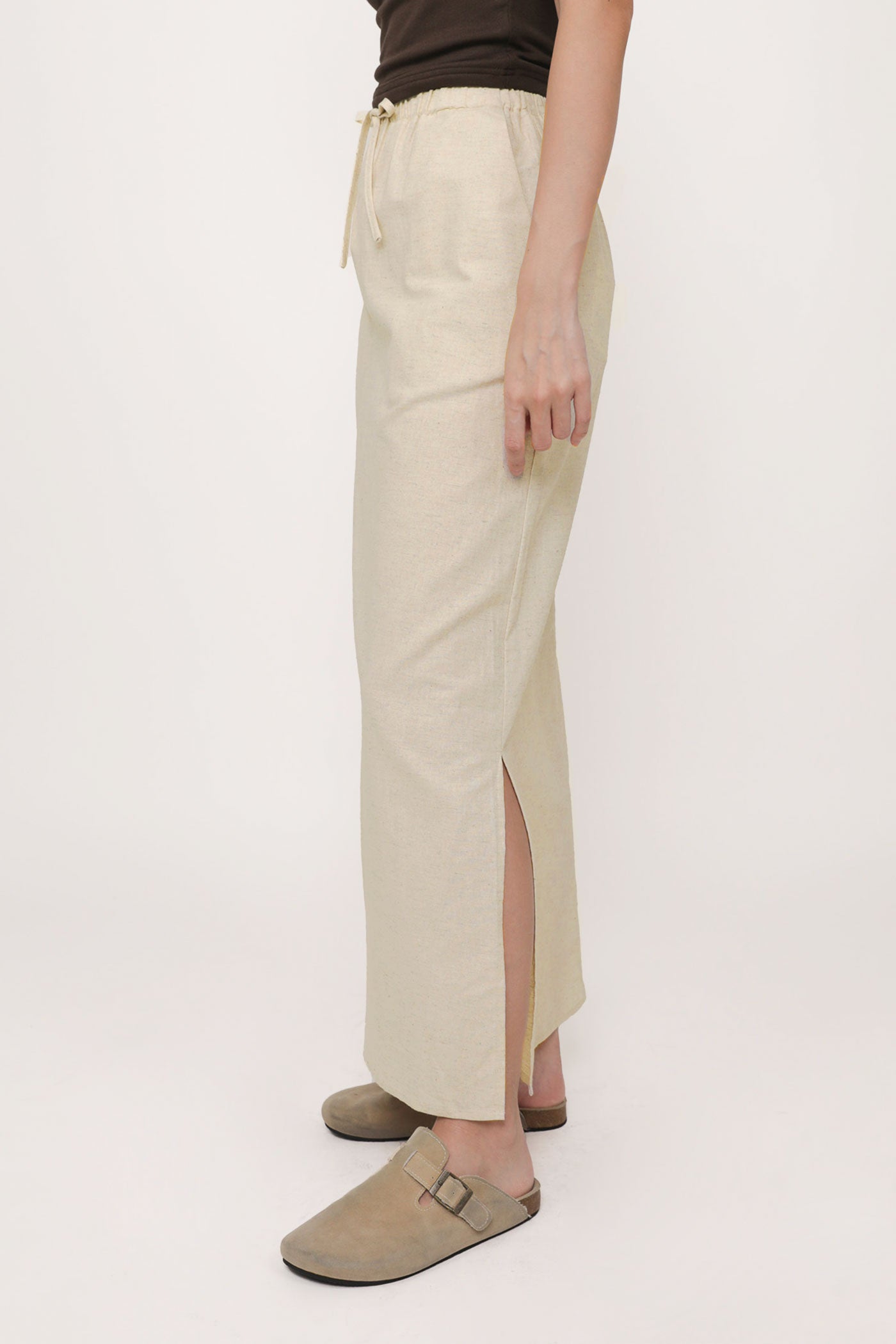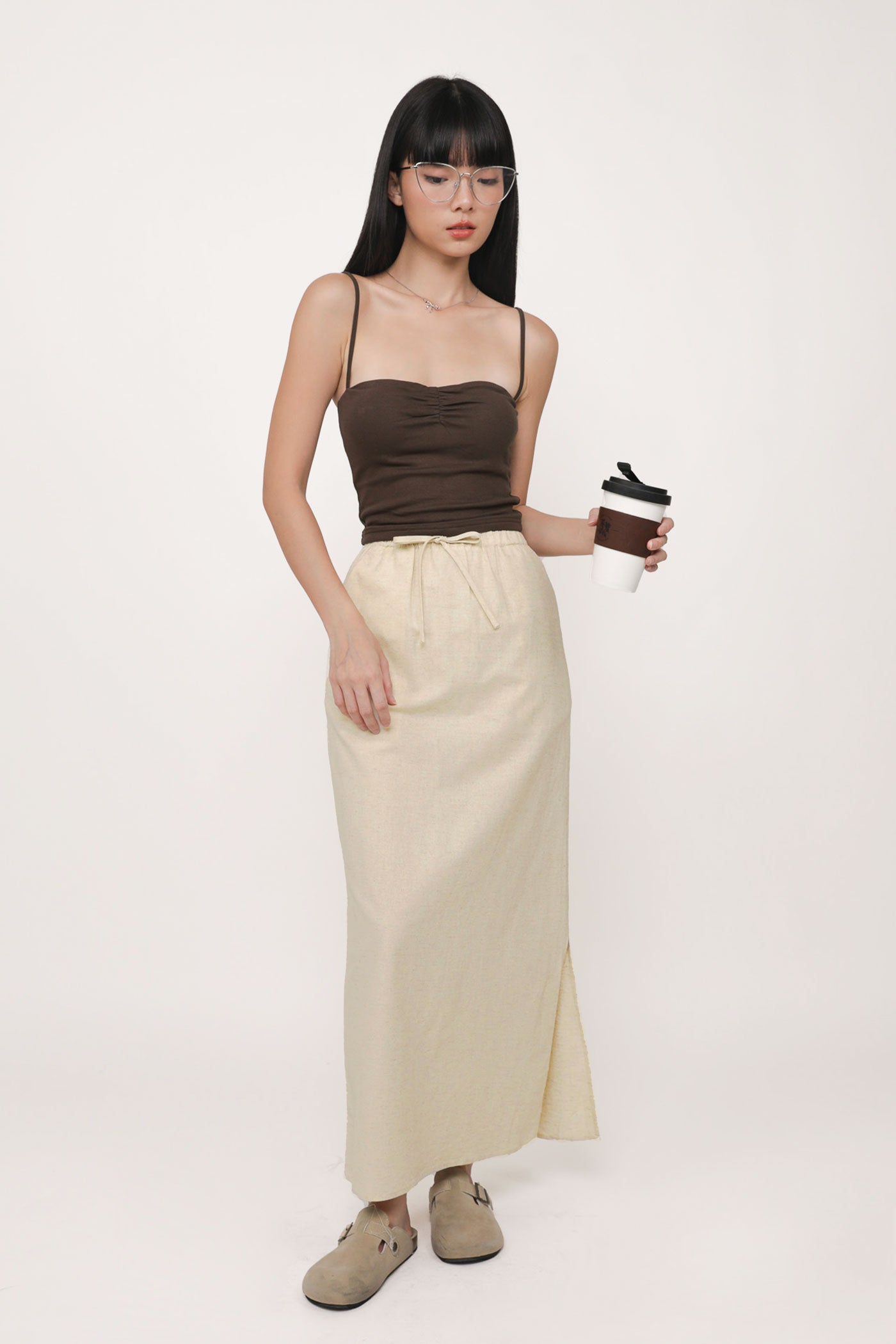 Draw in the spring chic mood with Jaden. Jaden Linen Drawstring Maxi Skirt is a simple, sleek piece that invites an elegant flair to a simple outfit. From breezy tees to feminine tops, Jaden complements your casual wardrobe easily. Create charming, comfy looks with Jaden.