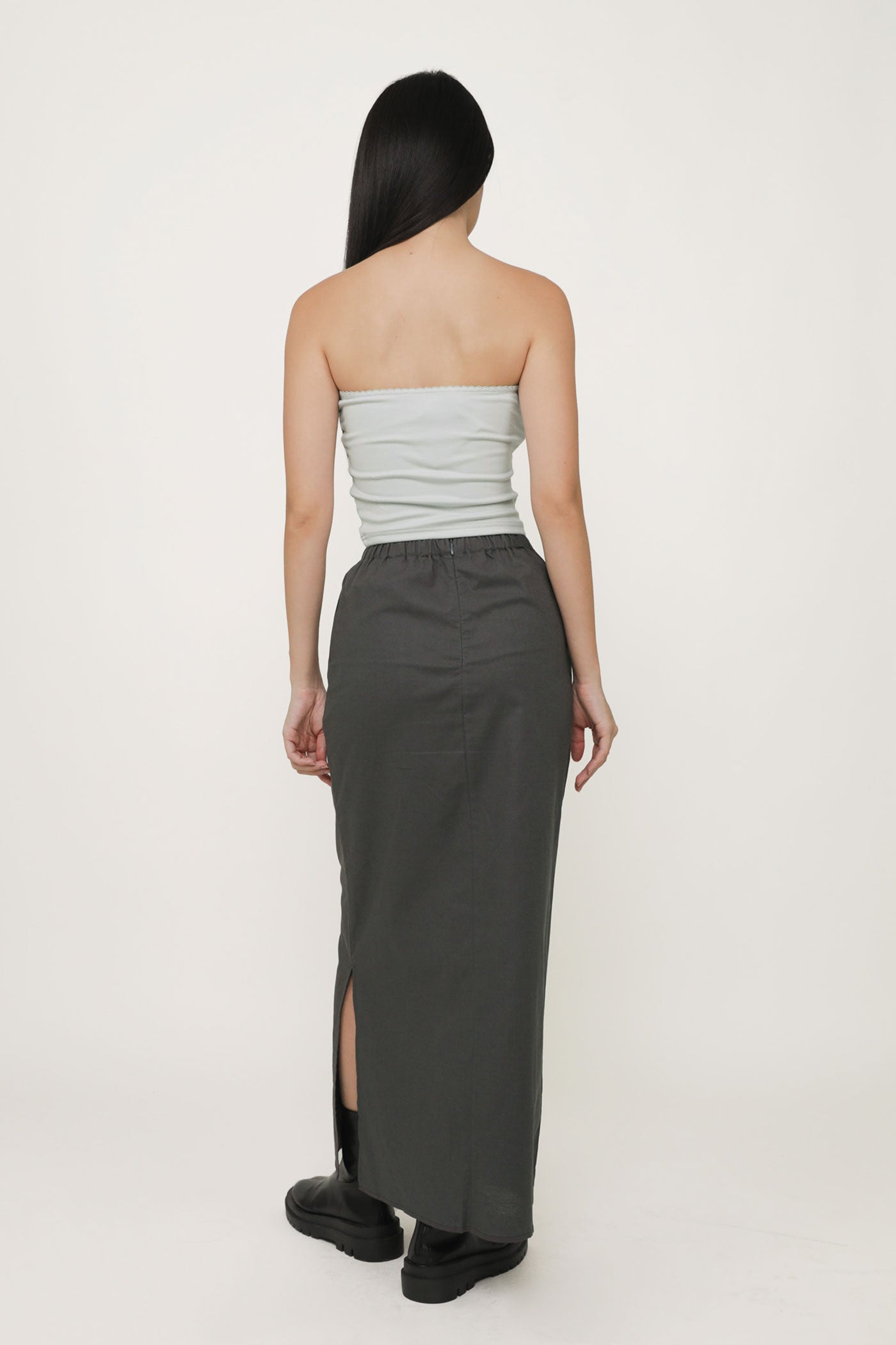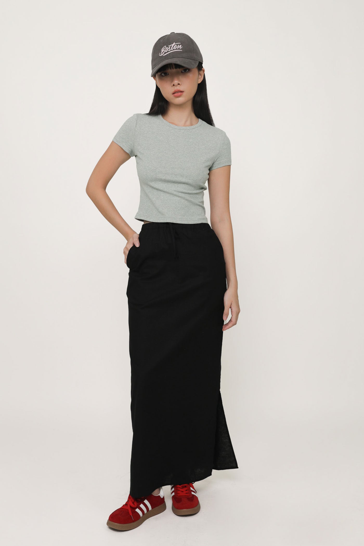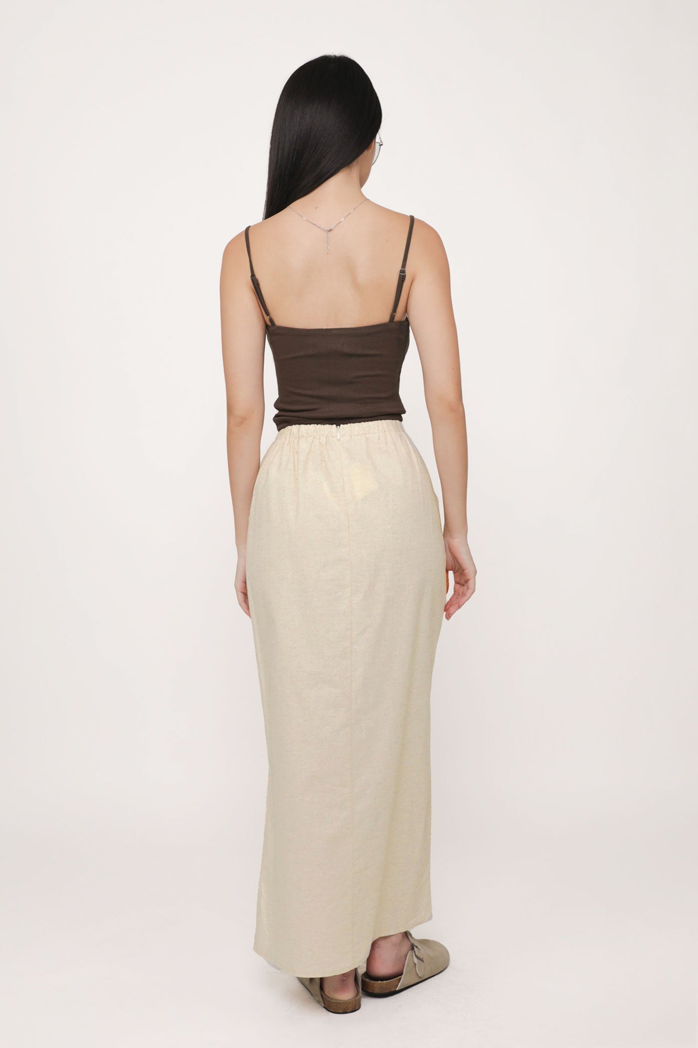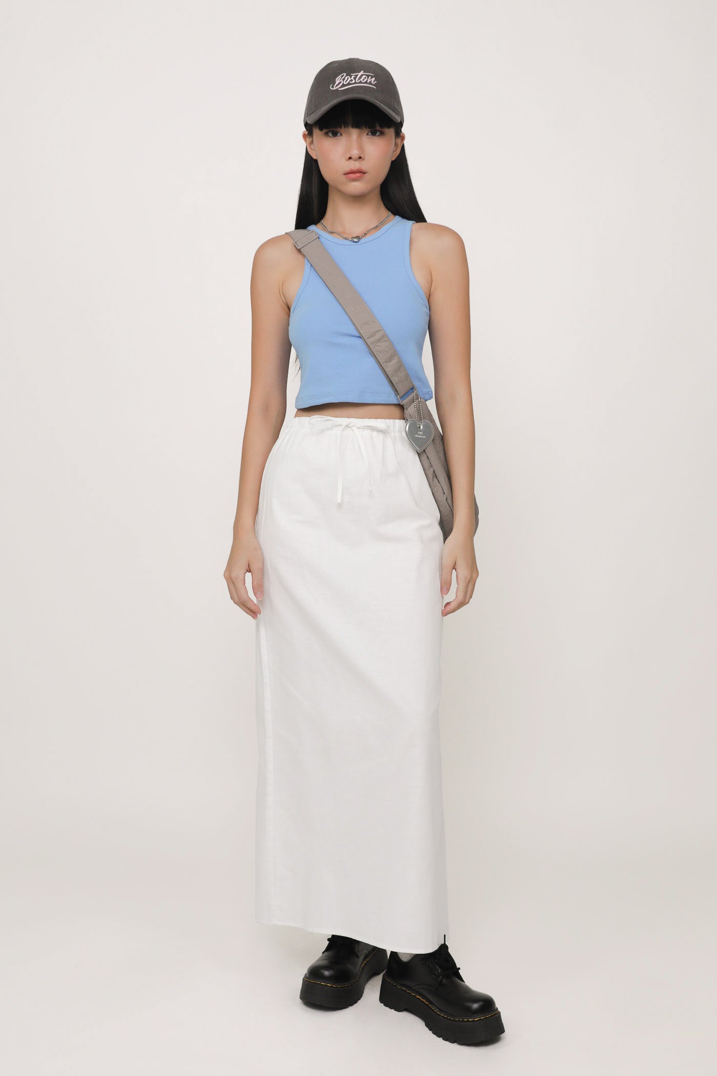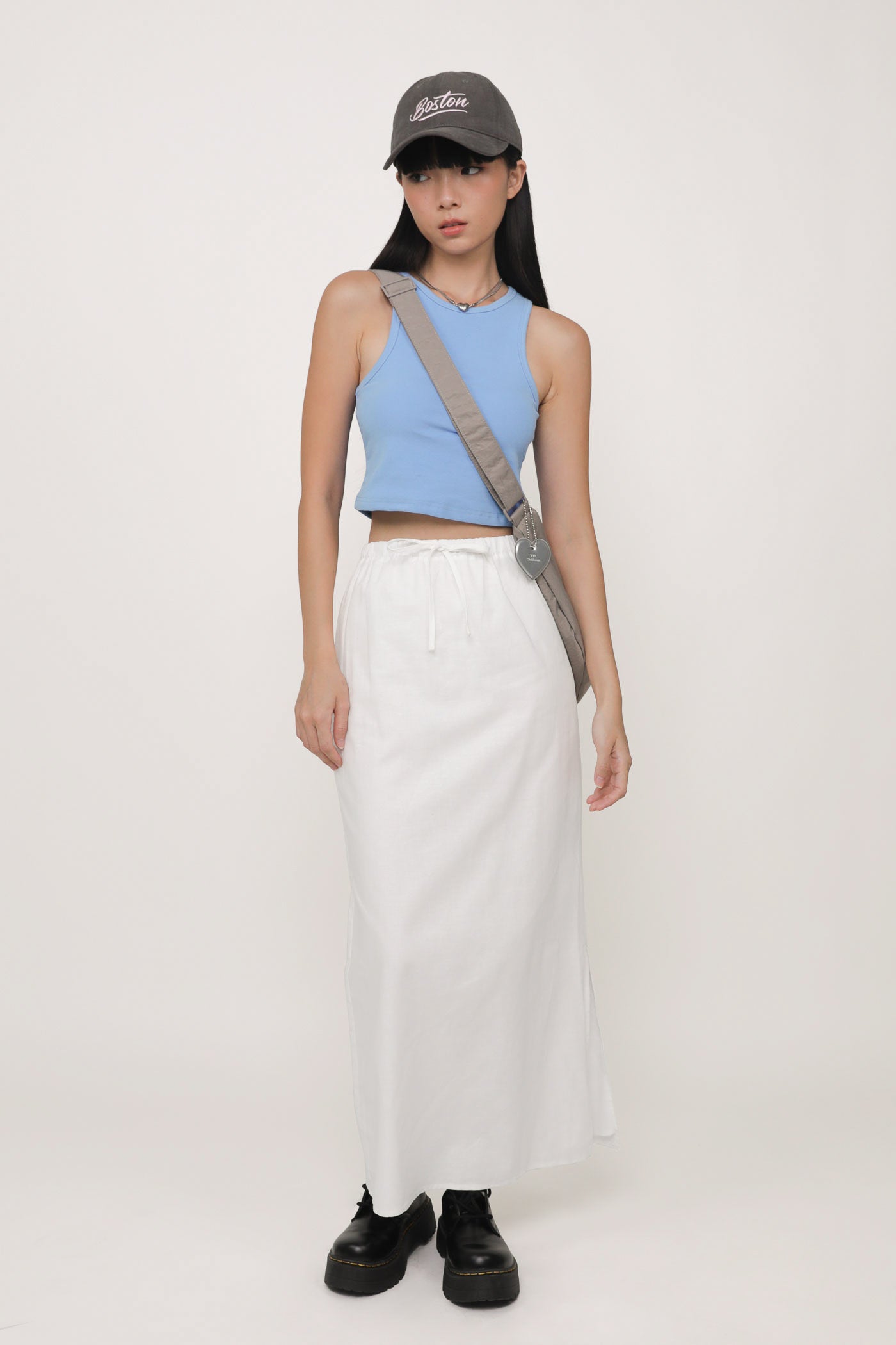 Draw in the spring chic mood with Jaden. Jaden Linen Drawstring Maxi Skirt is a simple, sleek piece that invites an elegant flair to a simple outfit. From breezy tees to feminine tops, Jaden complements your casual wardrobe easily. Create charming, comfy looks with Jaden.