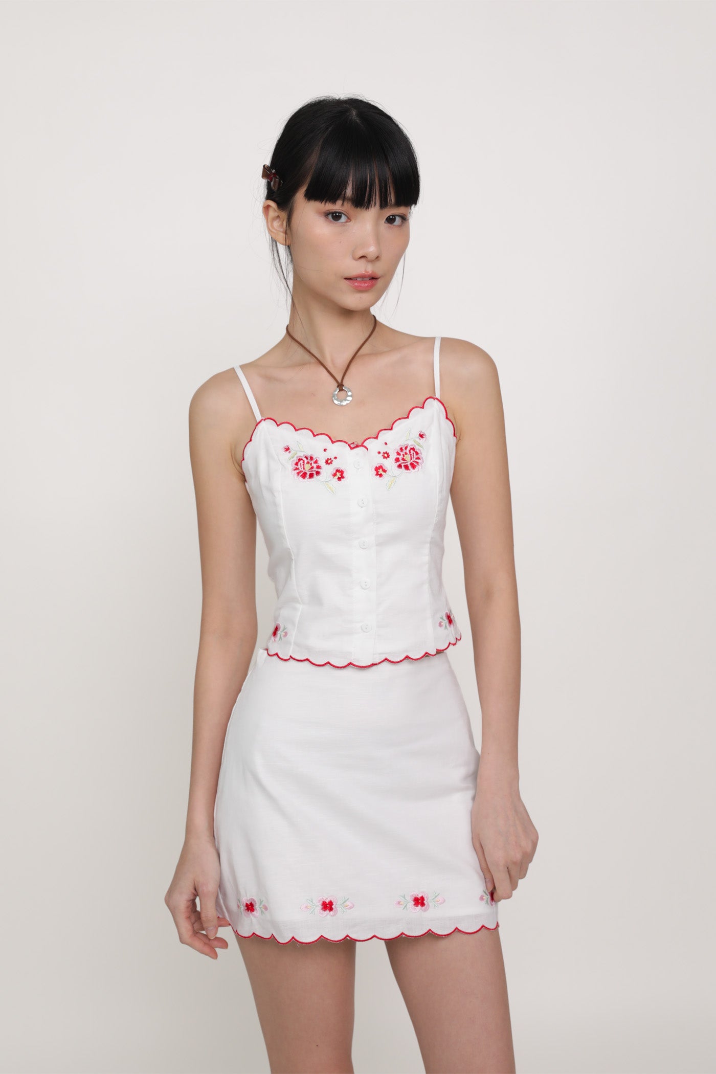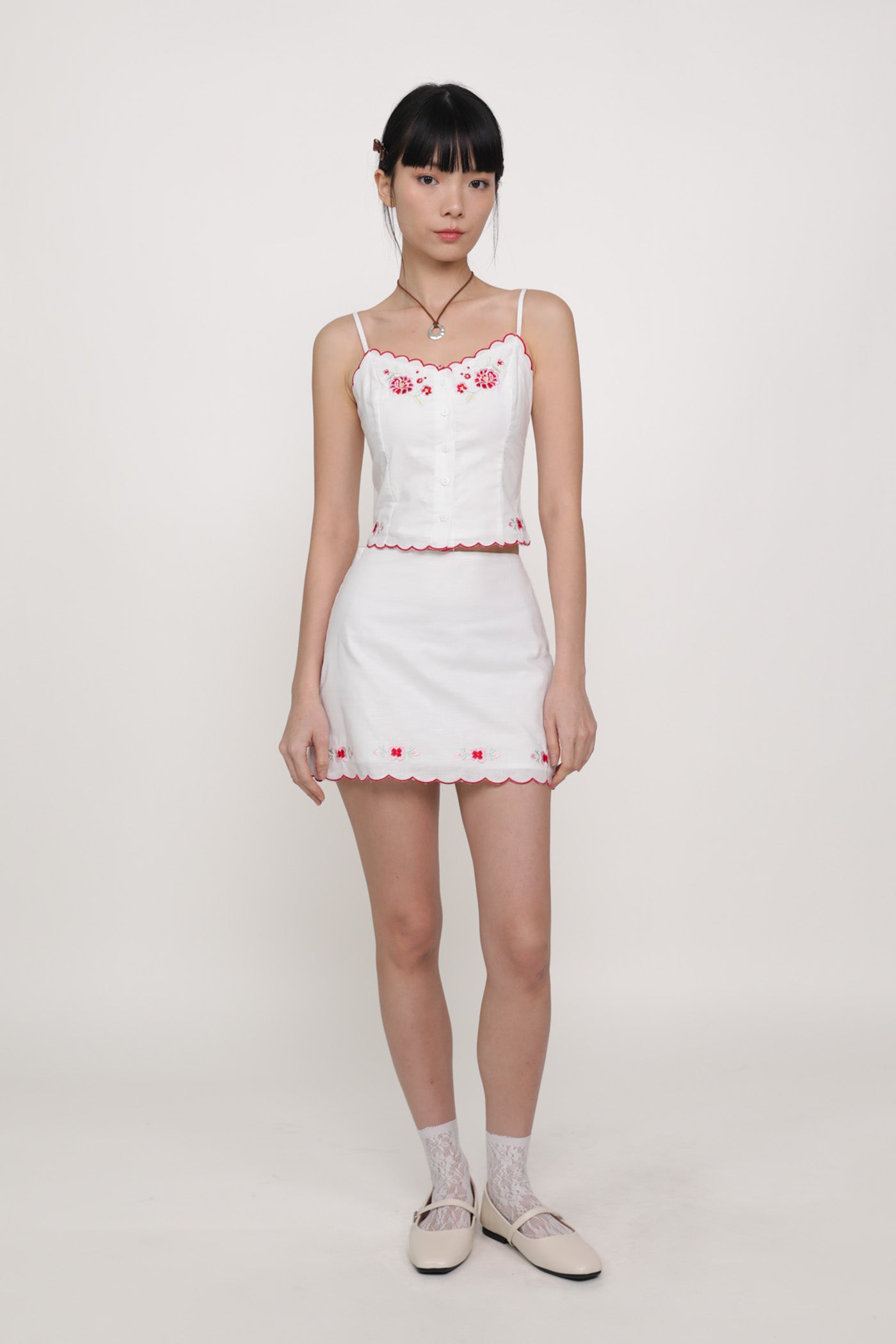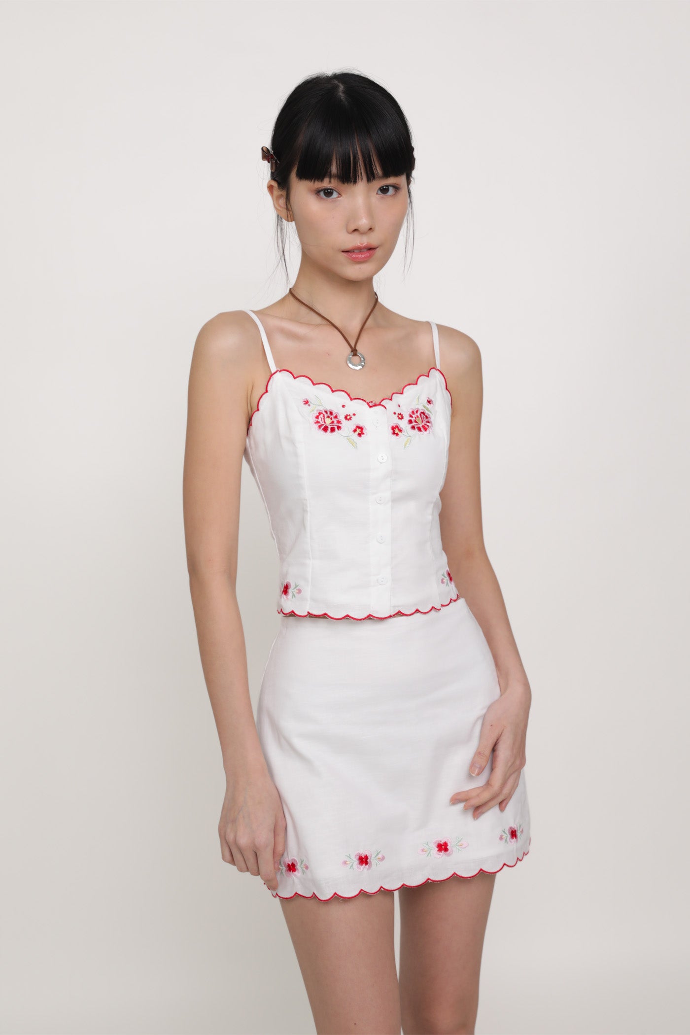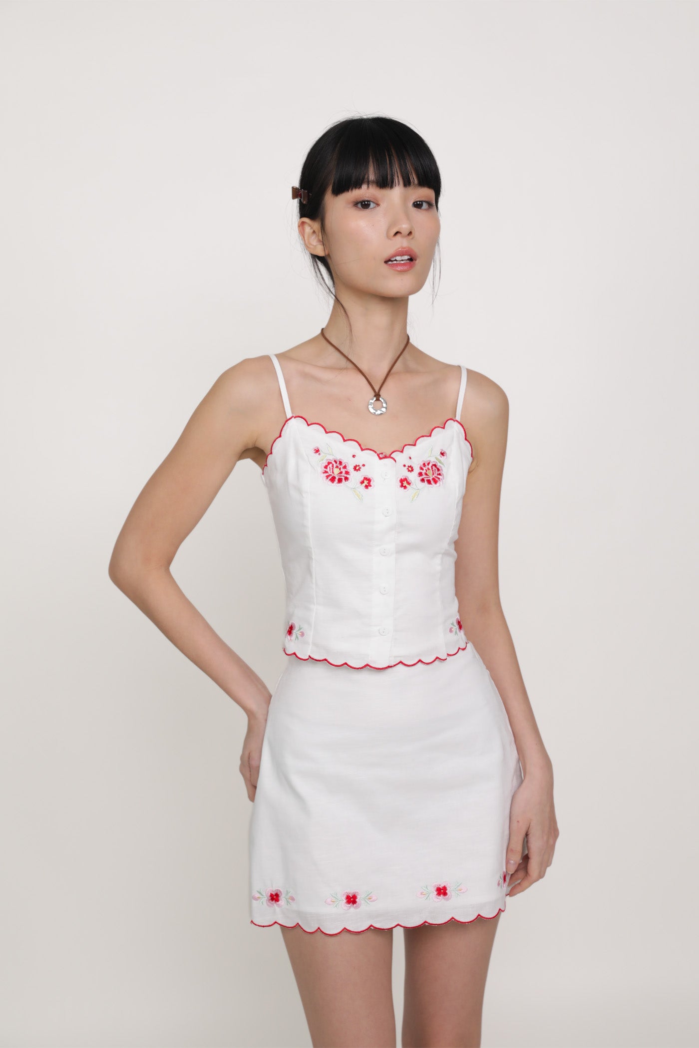 Lune Embroidery Scallop Hem Skirt is your ticket to sweet sophistication with a side of fun. This skirt boasts a contrast scallop hem and unique floral embroidery for a graceful flair. The sleek silhouette is effortlessly flattering, perfect for casual outings or dressier affairs. Complete the look with our Lilian Embroidery Scallop Hem Top for a chic combo.