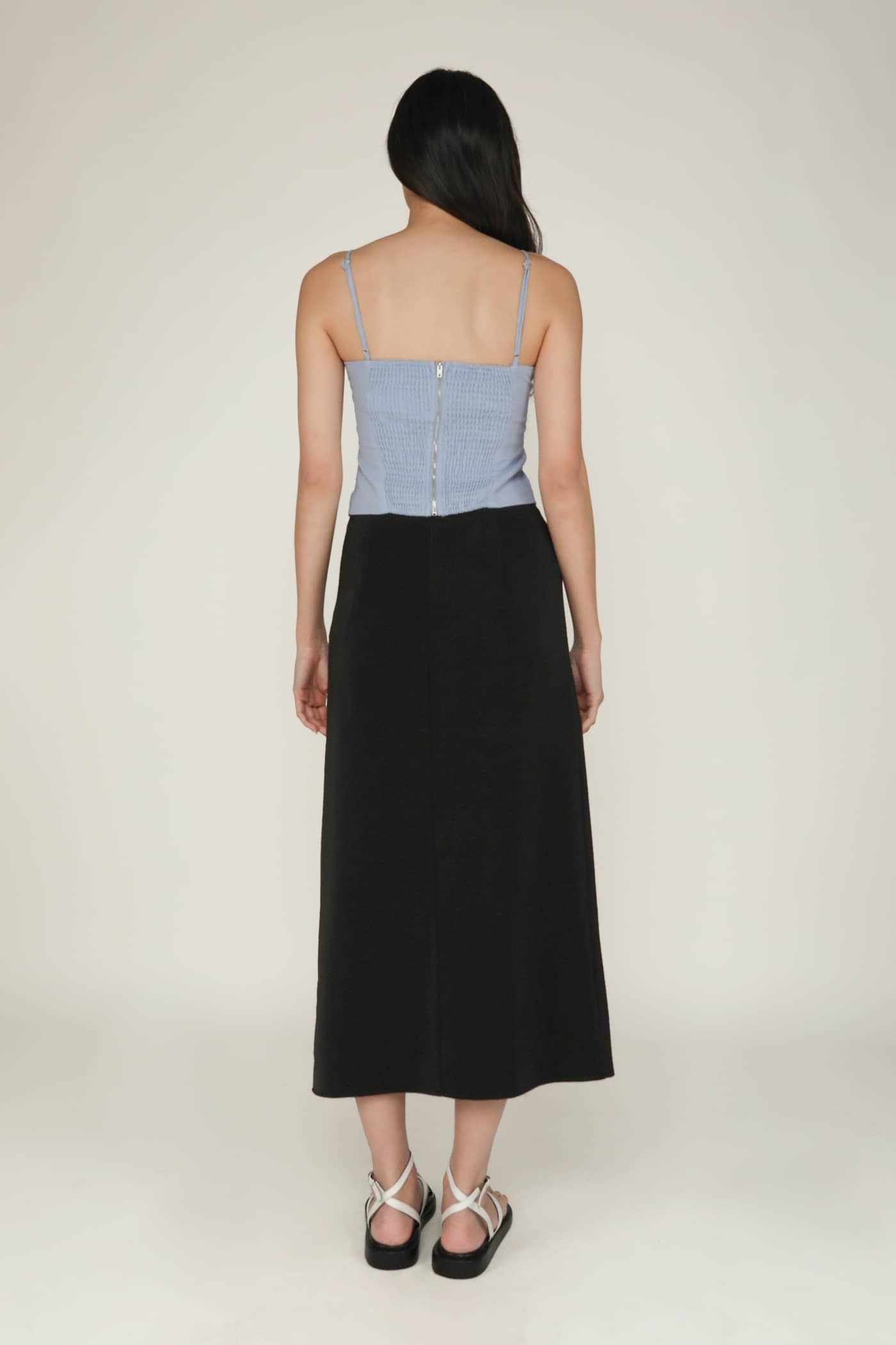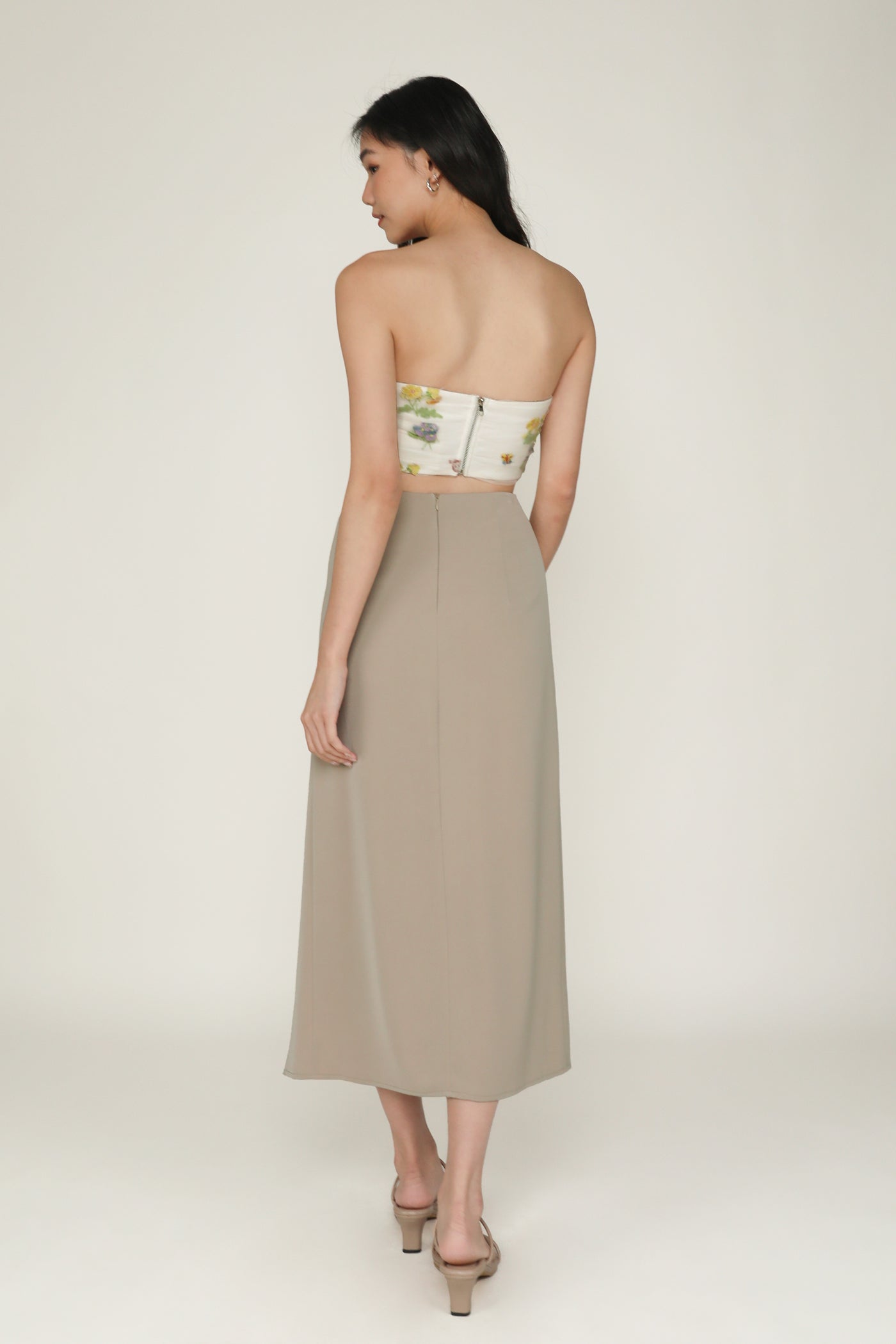 This skirt is made of inner lined polyester that is soft and smooth to the touch. It is complete with a concealed back zip and side slit.