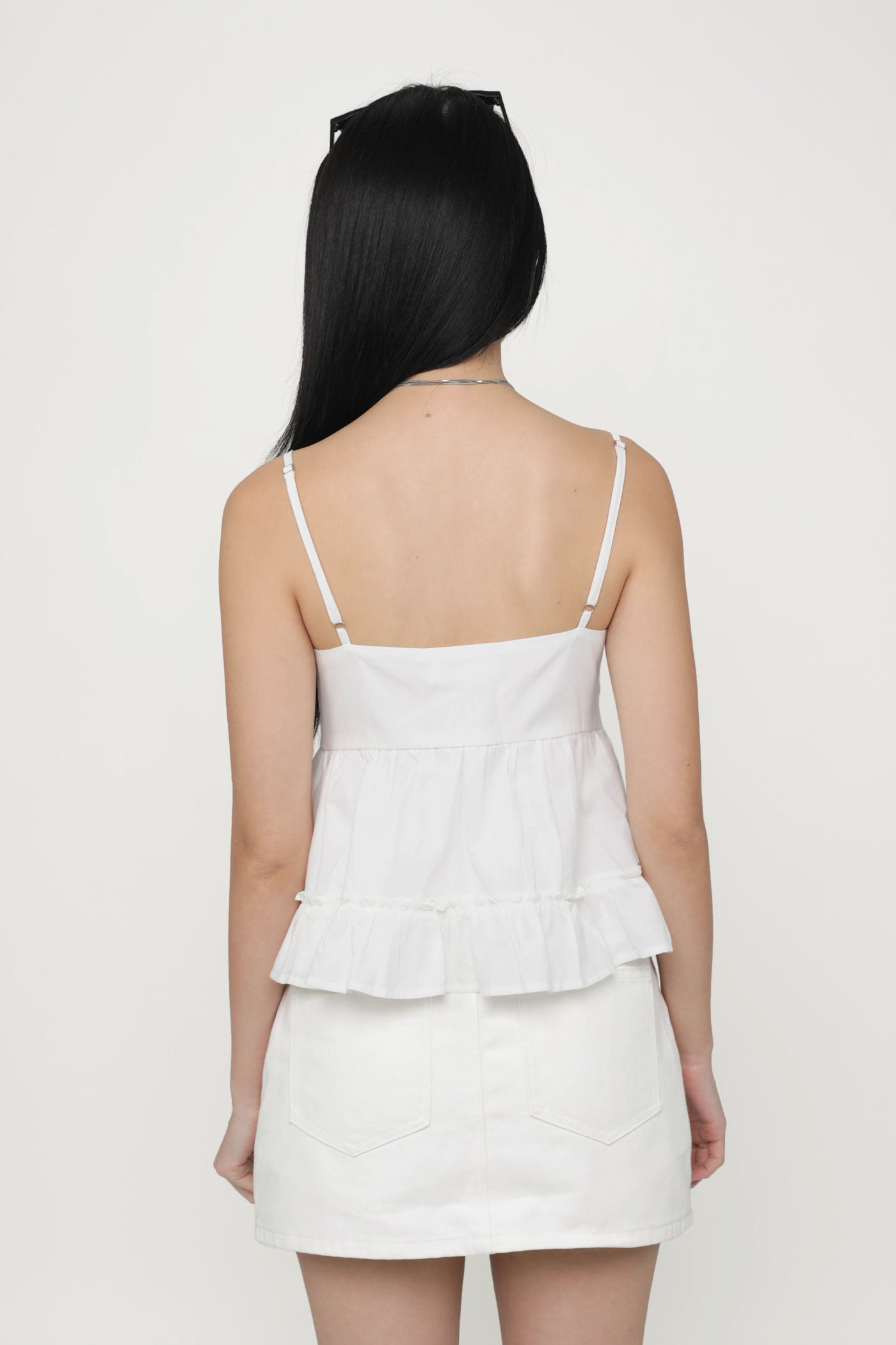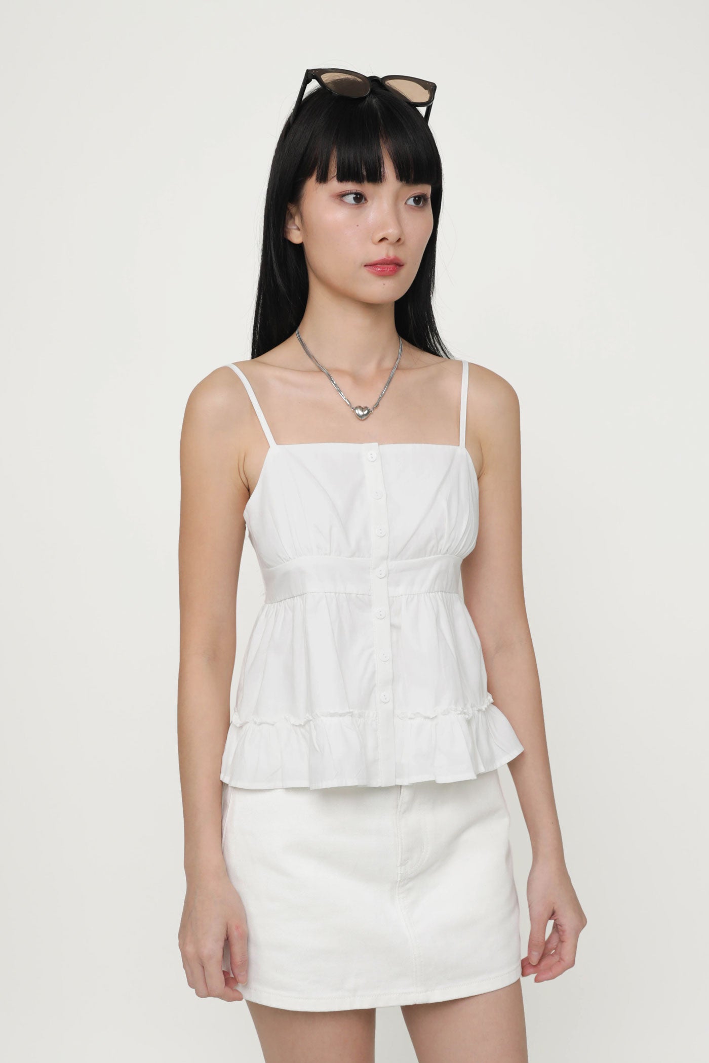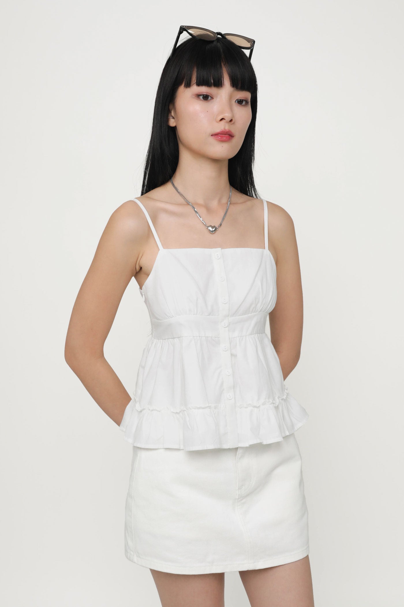 Your dream spring wardrobe needs a Fae Button Babydoll Top. Fae radiates feminine and fresh vibes with its breezy babydoll silhouette and delicate frilly trim. The buttons along the front also add a sweet charm to this casual piece. Just chuck your favorite denim or a flowy skirt, and let the spring vibes do the rest.