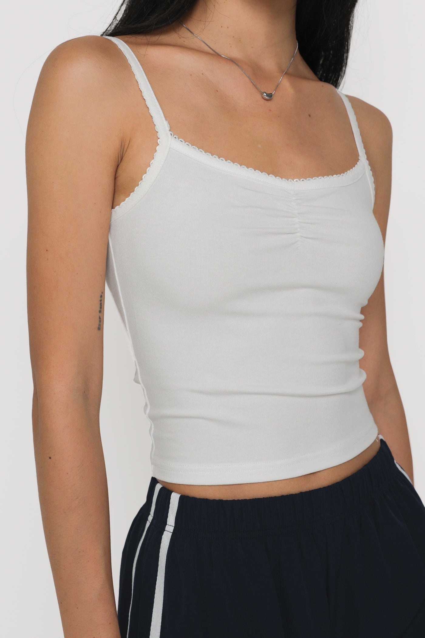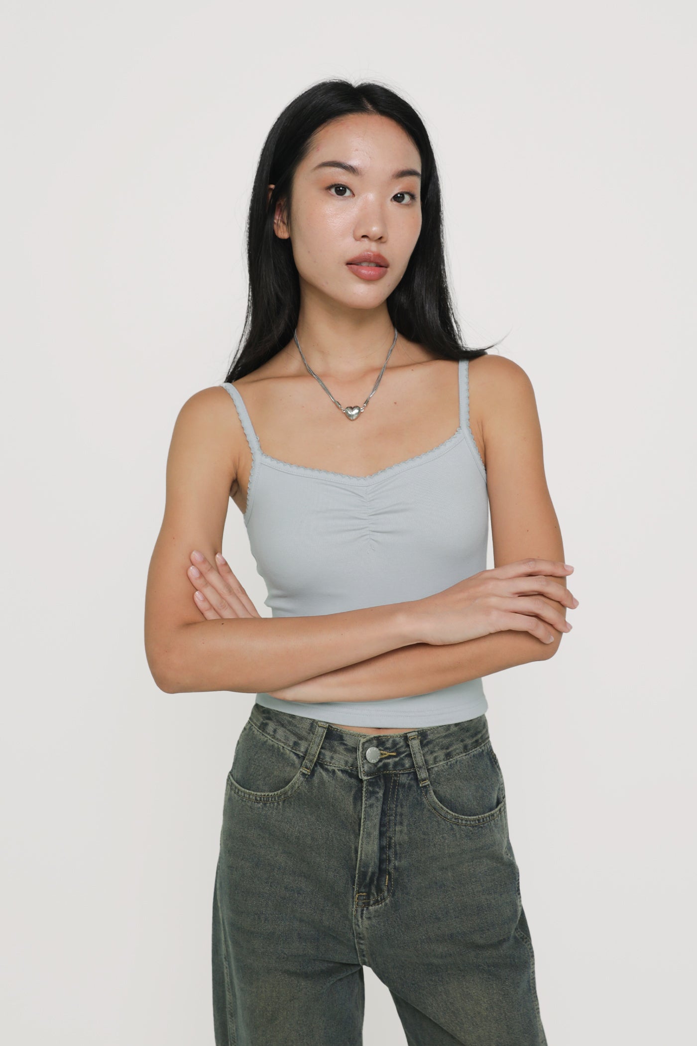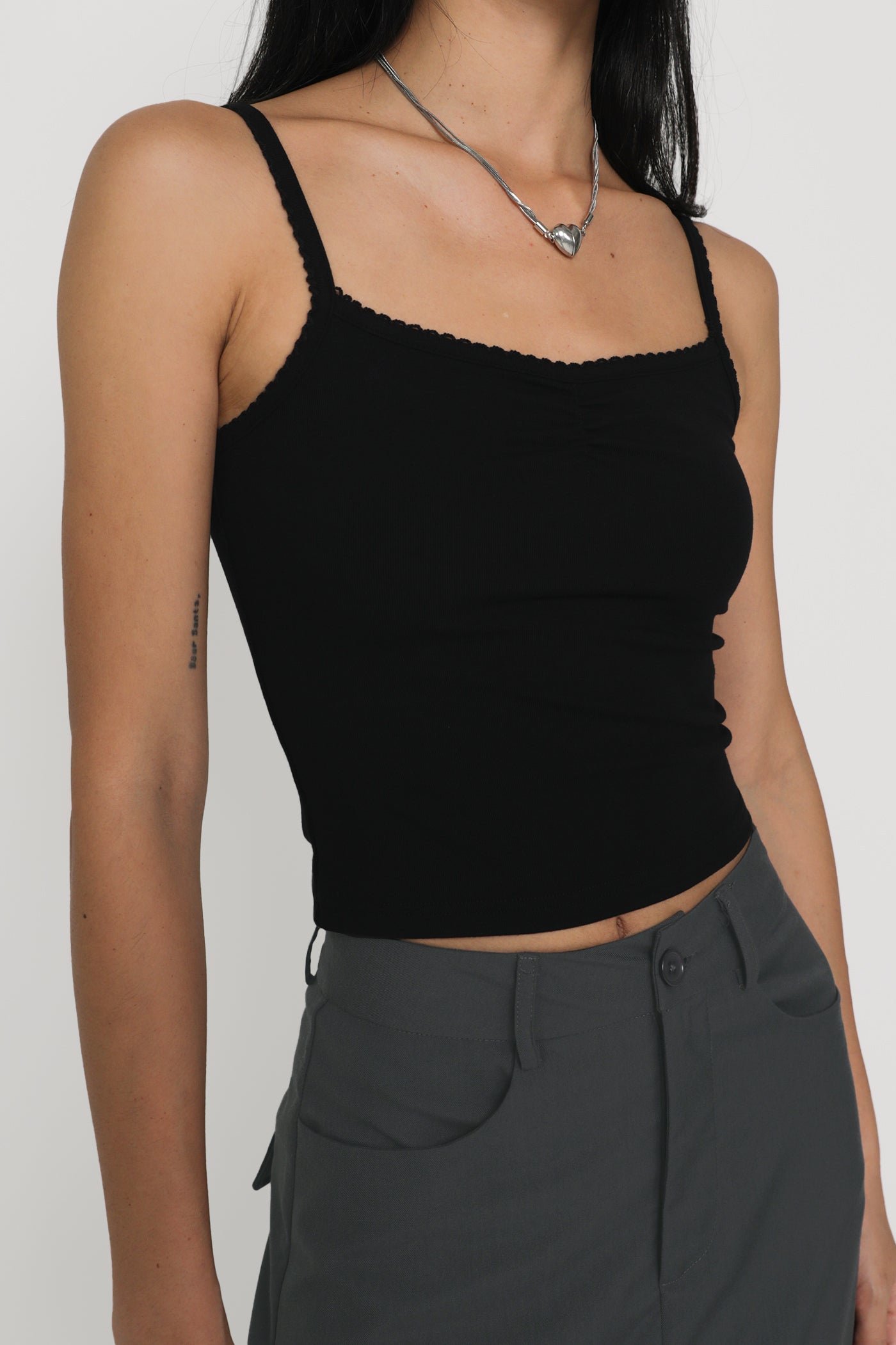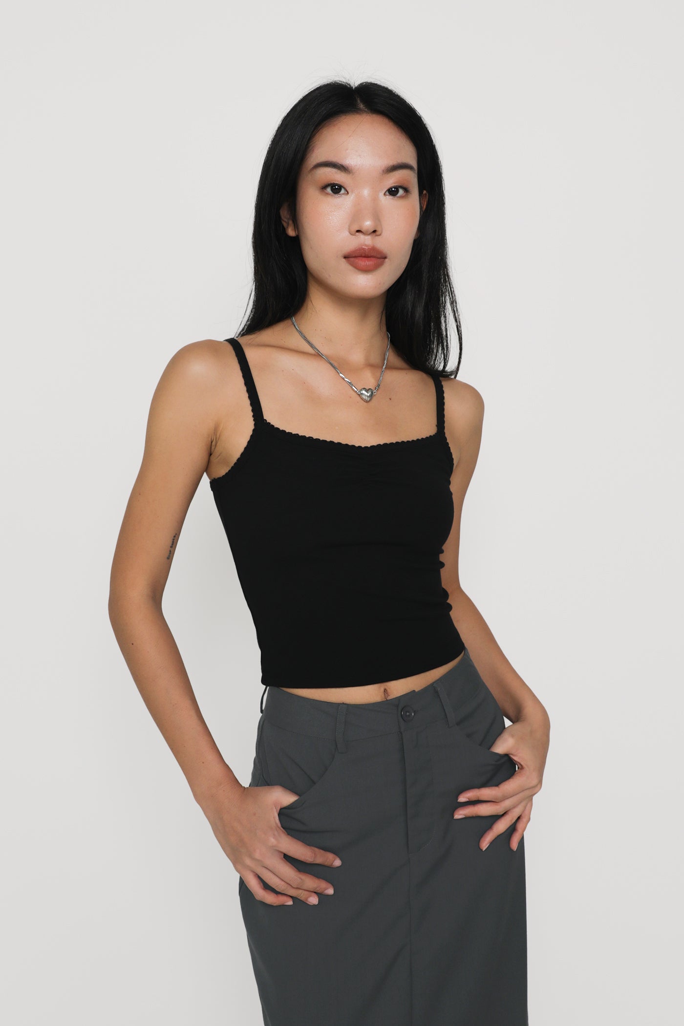 Melissa is the sweet, versatile piece your wardrobe has been waiting for. Melissa Crochet Ruched Basic Top boasts an evergreen silhouette with a subtle ruched front and delicate scallop-trimmed neckline. Pair it with your favorite jeans or a flowy skirt—no matter how you style it, Melissa brings an understated sweetness that’s just right for any occasion.