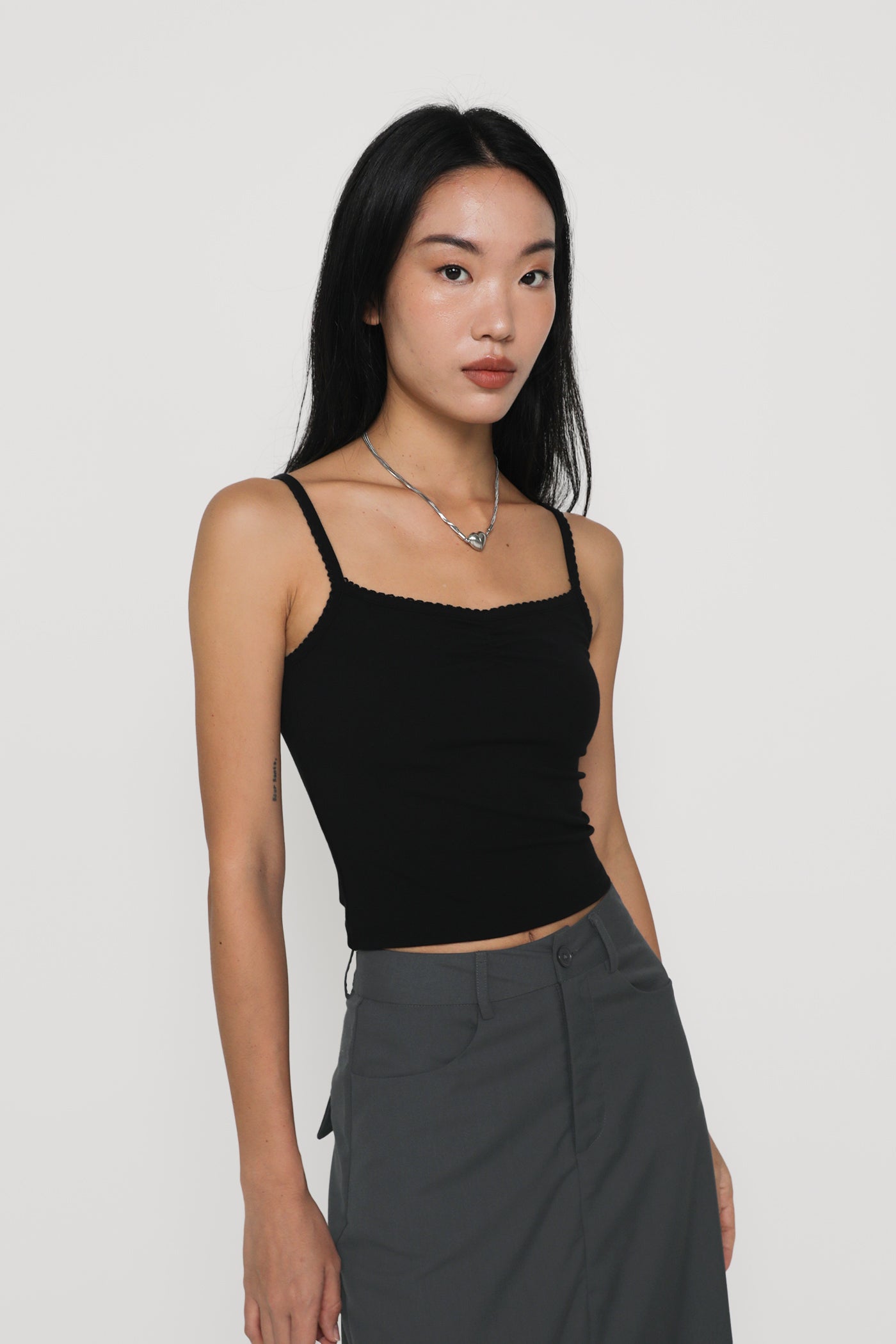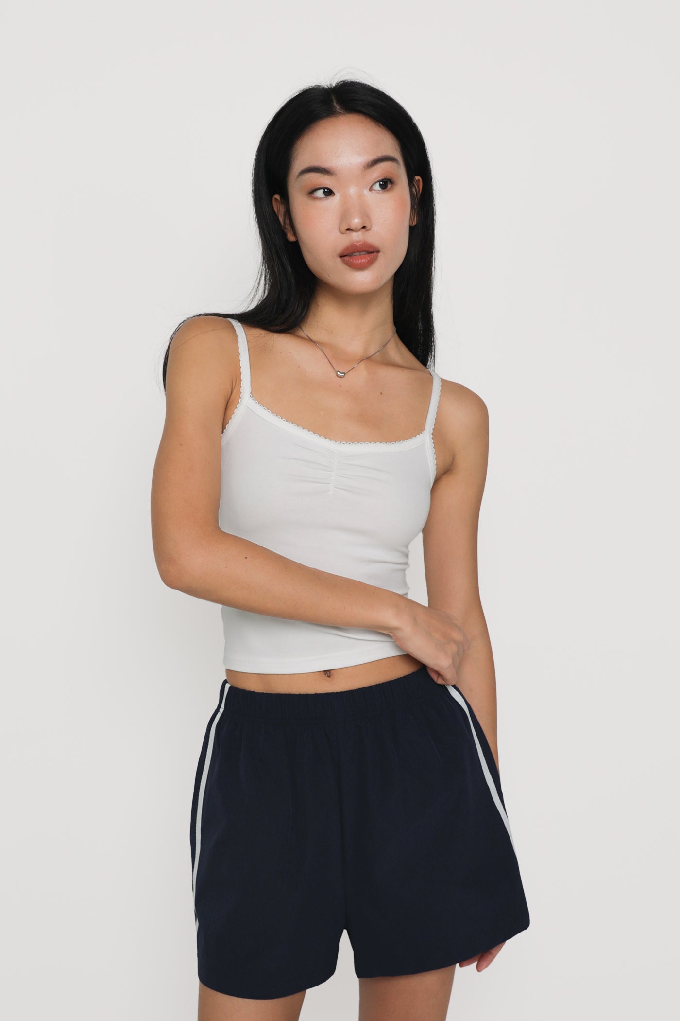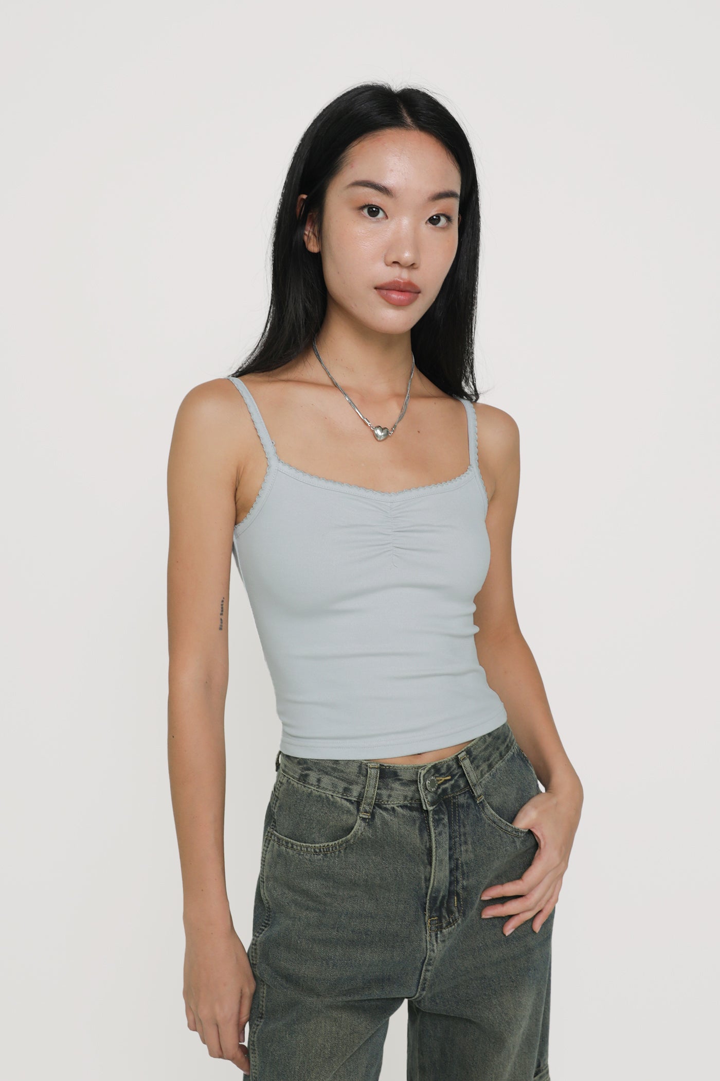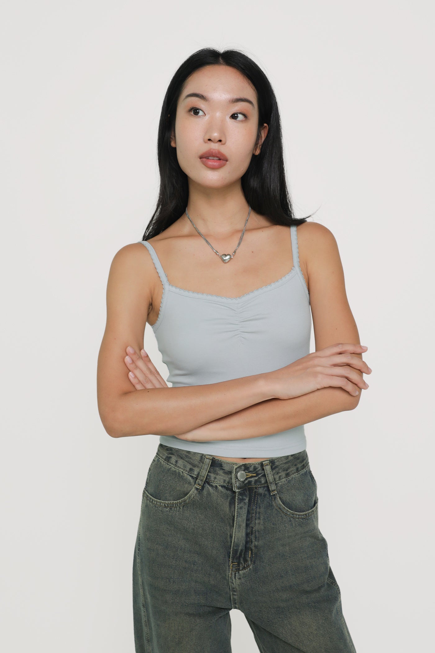 Melissa is the sweet, versatile piece your wardrobe has been waiting for. Melissa Crochet Ruched Basic Top boasts an evergreen silhouette with a subtle ruched front and delicate scallop-trimmed neckline. Pair it with your favorite jeans or a flowy skirt—no matter how you style it, Melissa brings an understated sweetness that’s just right for any occasion.