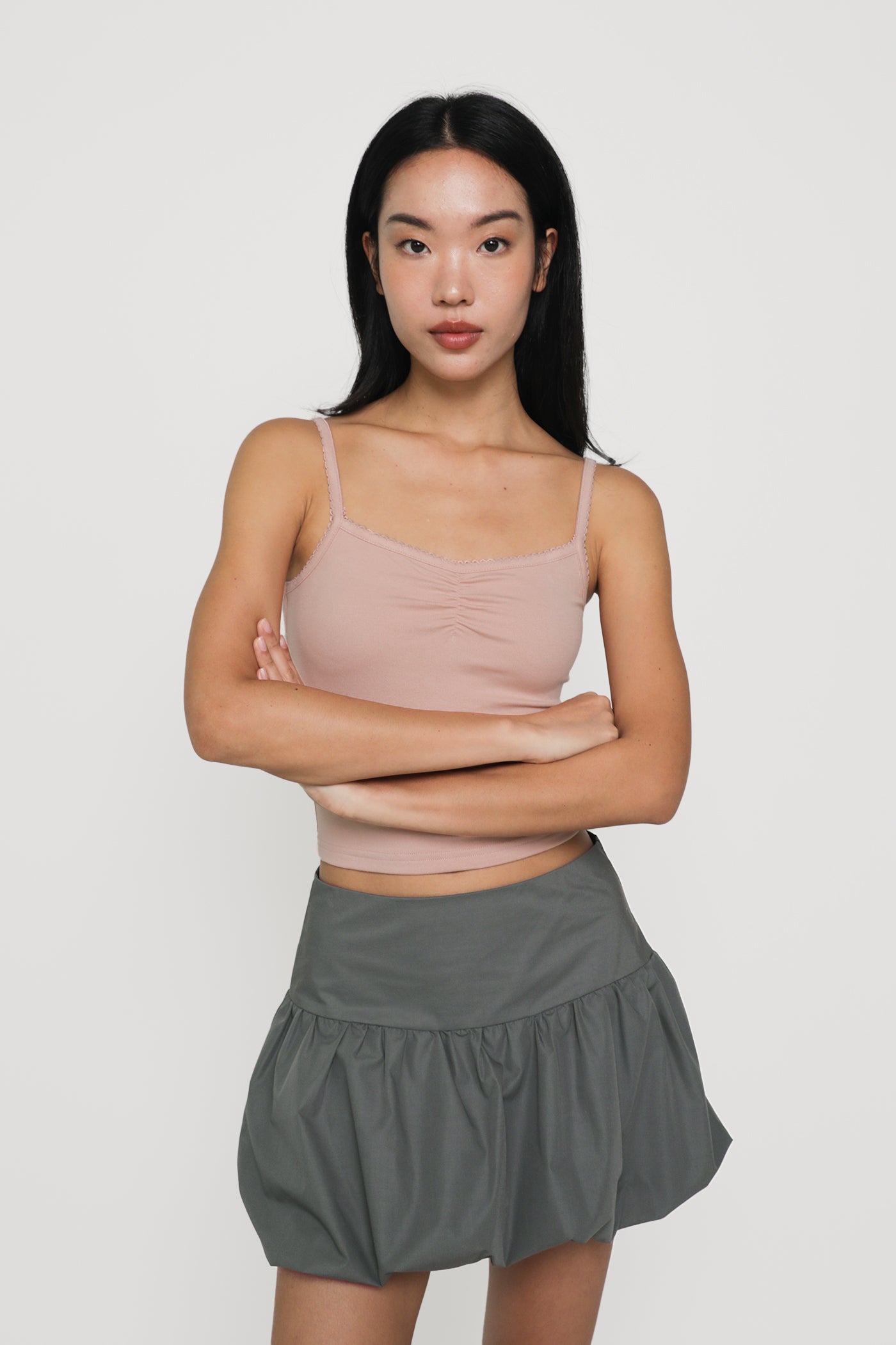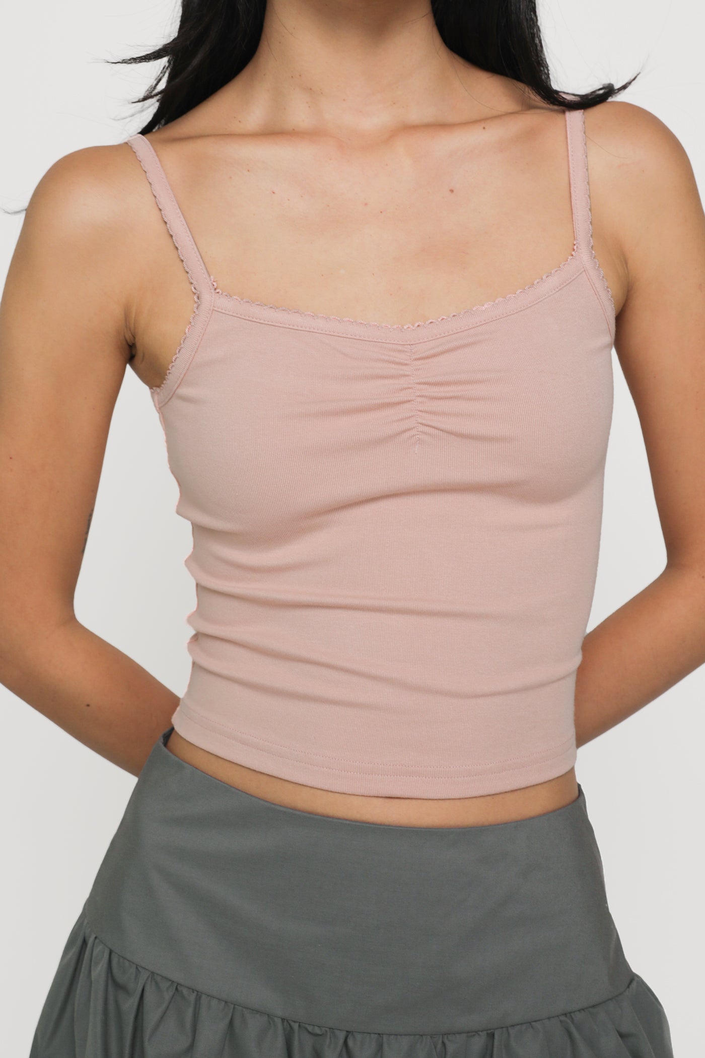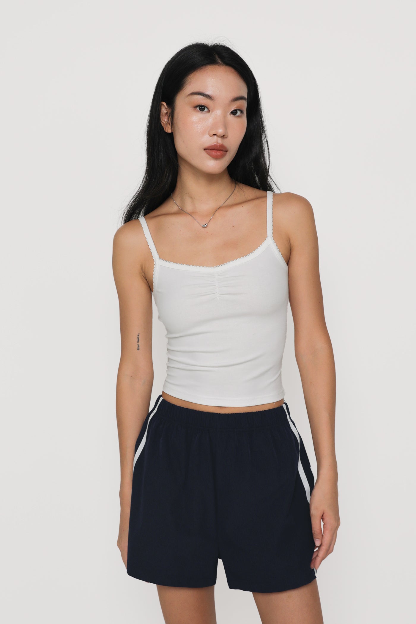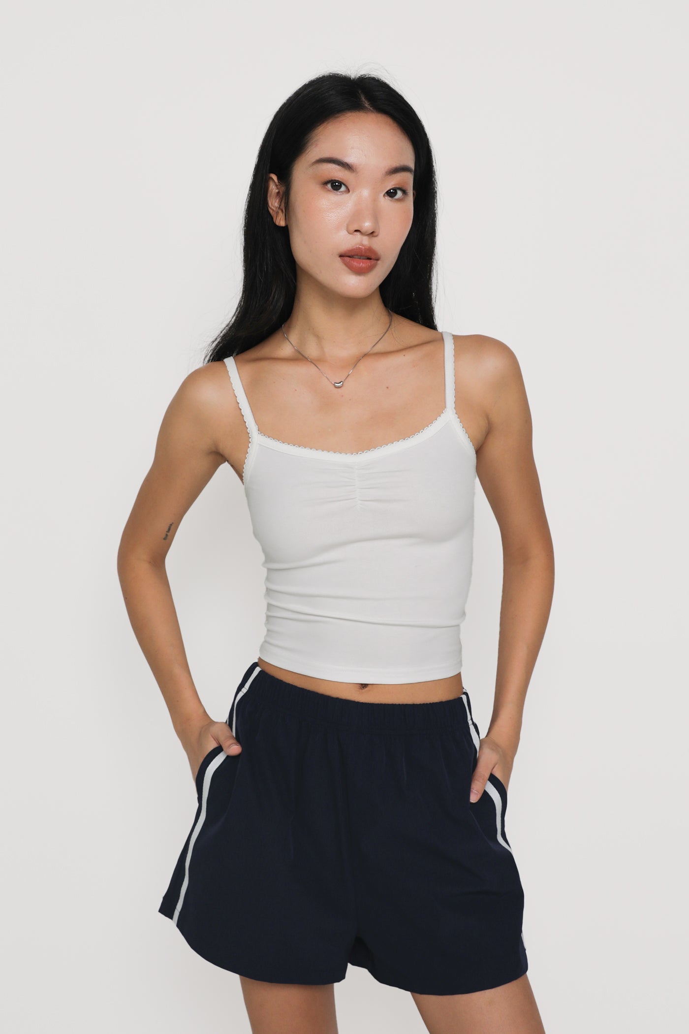 Melissa is the sweet, versatile piece your wardrobe has been waiting for. Melissa Crochet Ruched Basic Top boasts an evergreen silhouette with a subtle ruched front and delicate scallop-trimmed neckline. Pair it with your favorite jeans or a flowy skirt—no matter how you style it, Melissa brings an understated sweetness that’s just right for any occasion.