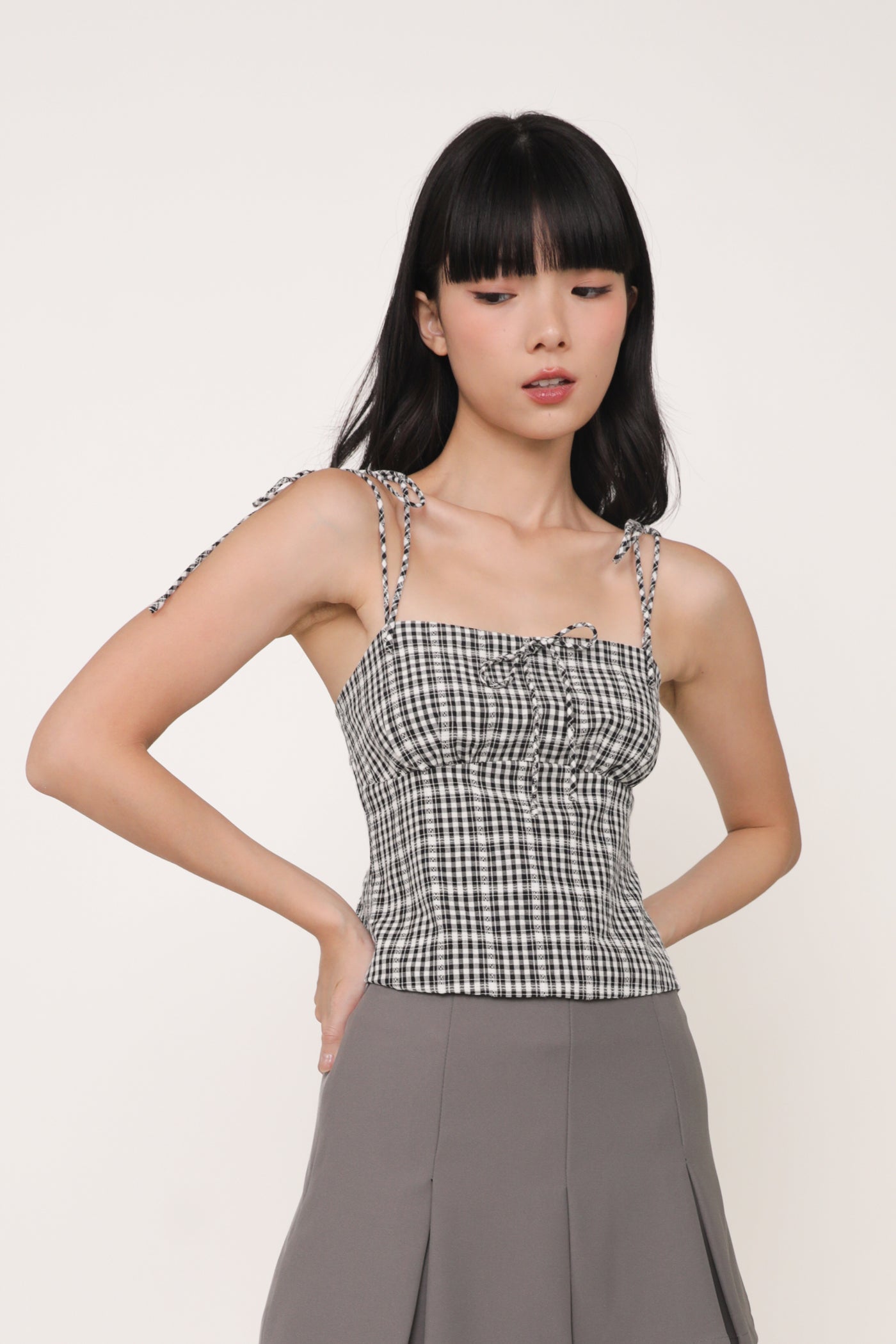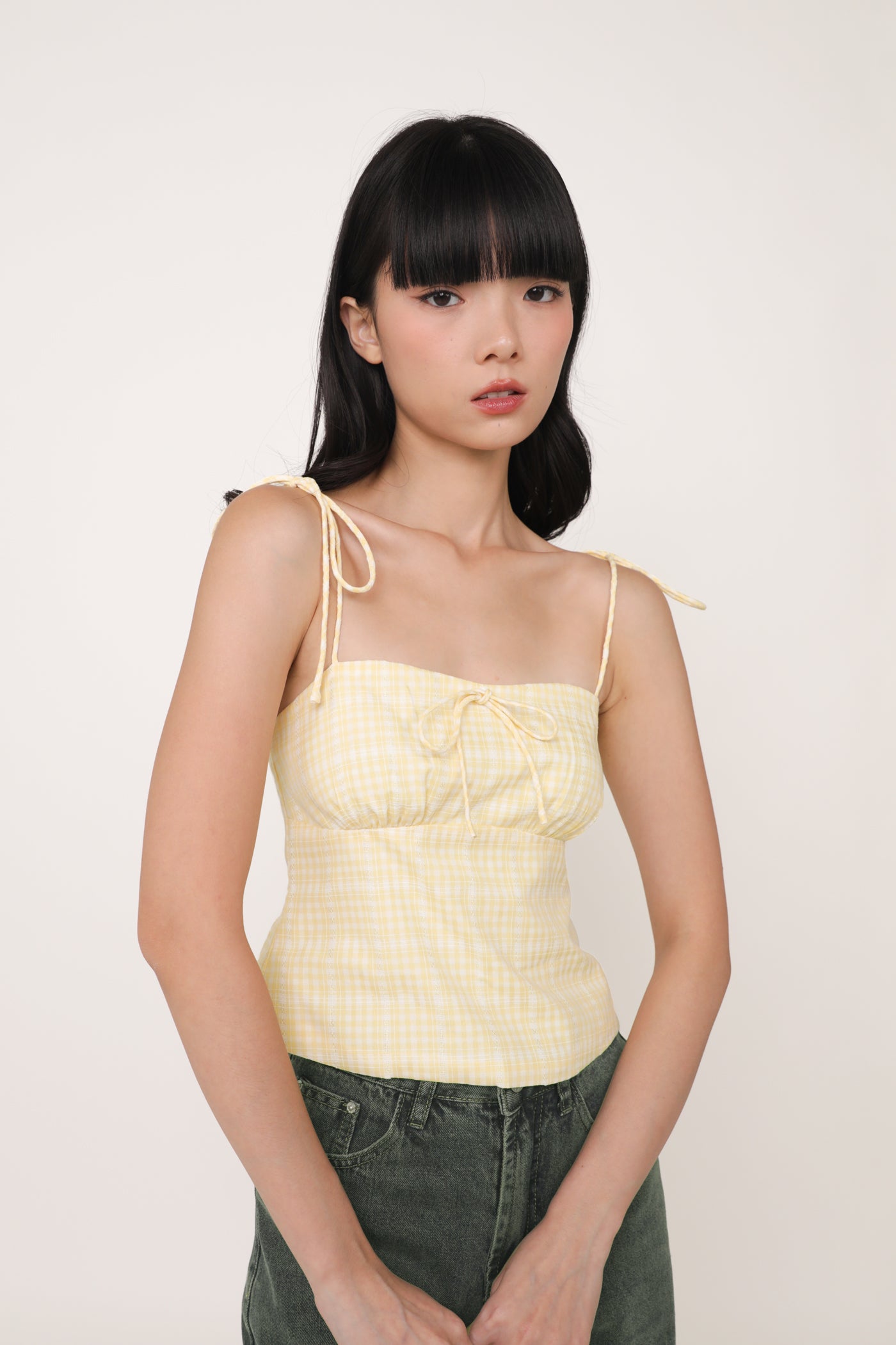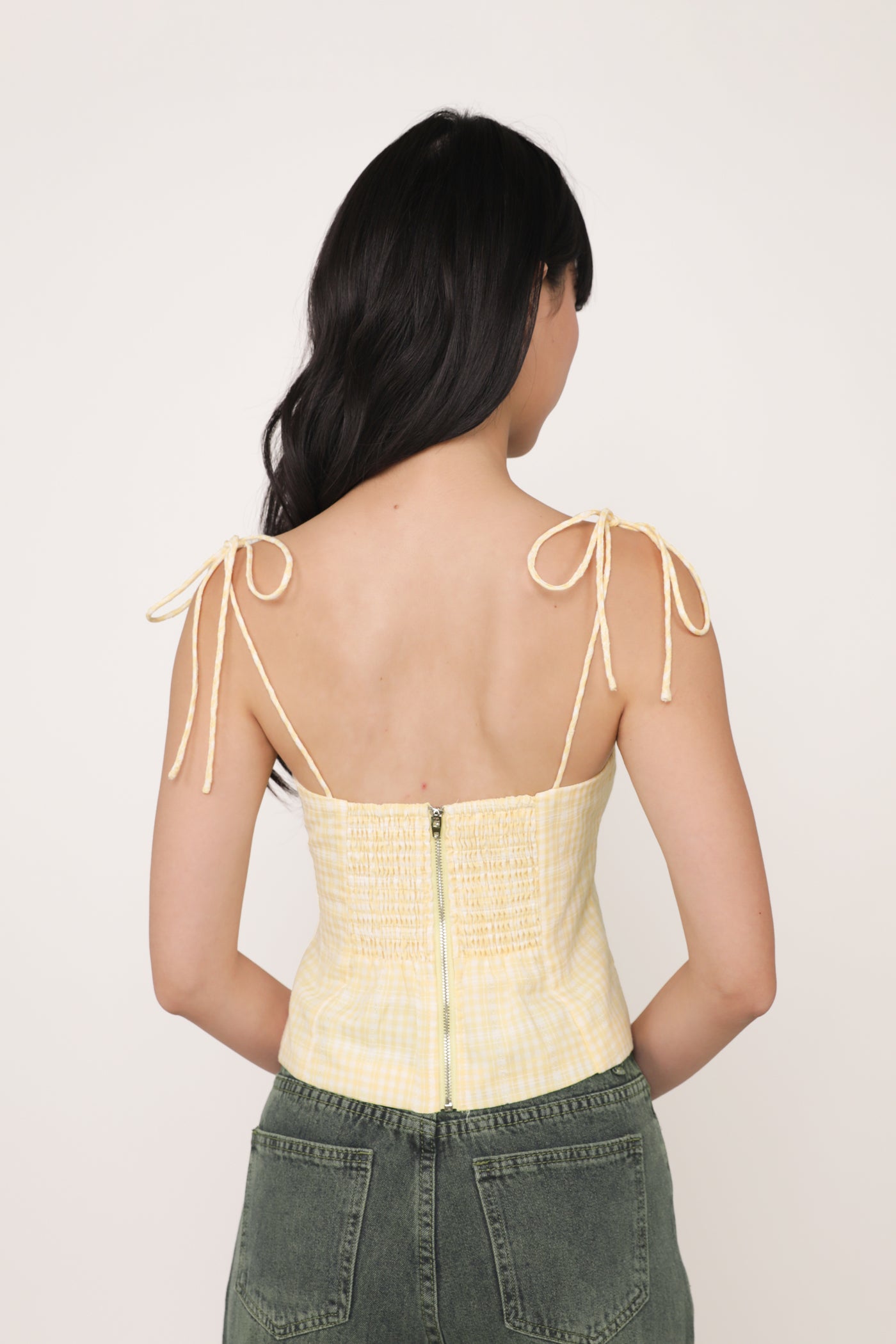 Always in a preppy mood with Eleanora. Eleanora Ribbon Top is the fresh style staple of the summer. This feminine piece flaunts a classic plaid print and delicate self-tie straps. Paired with some denim shorts or a flowy skirt, Eleanora is a fuss-free top that brings a playful flair to every outfit.