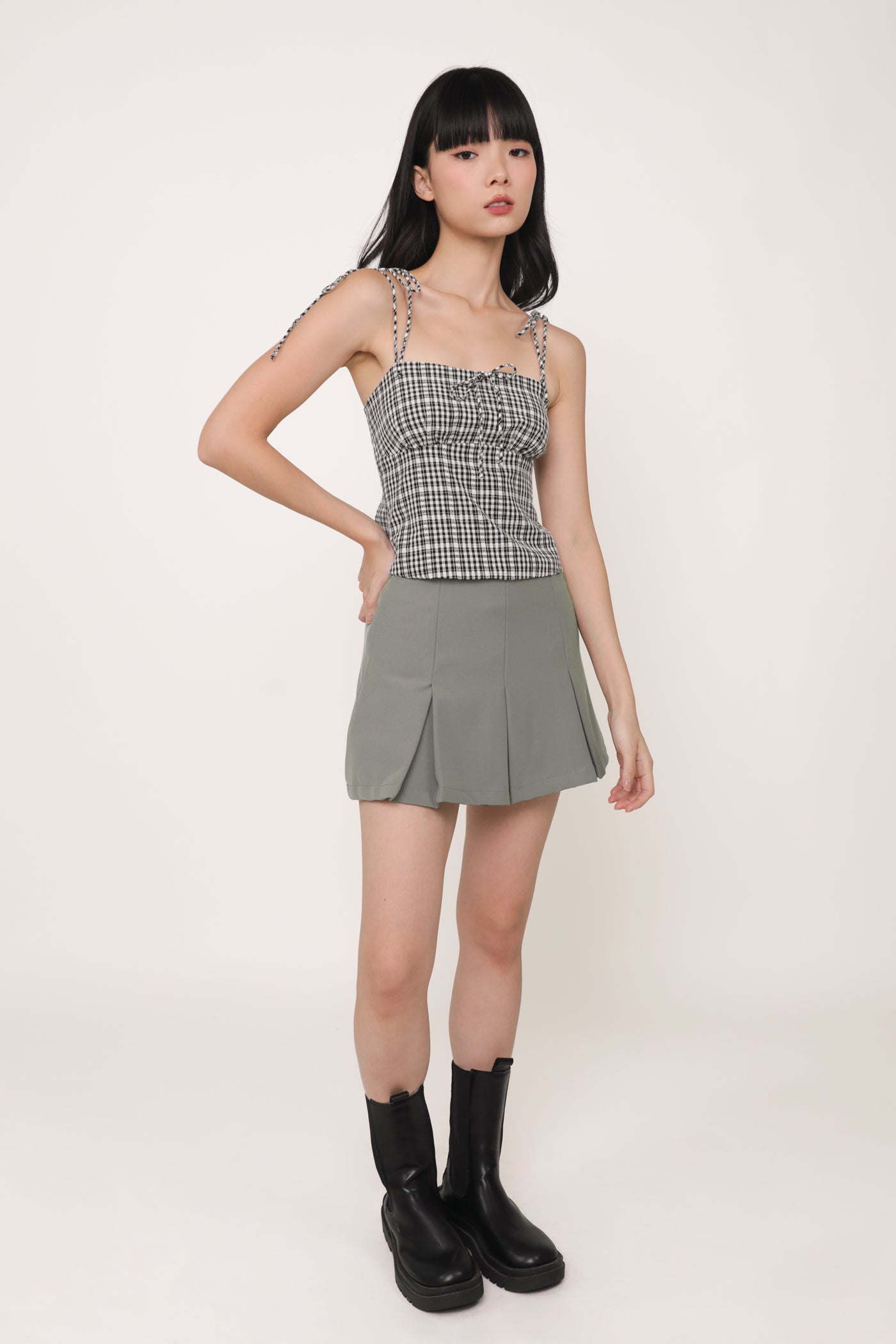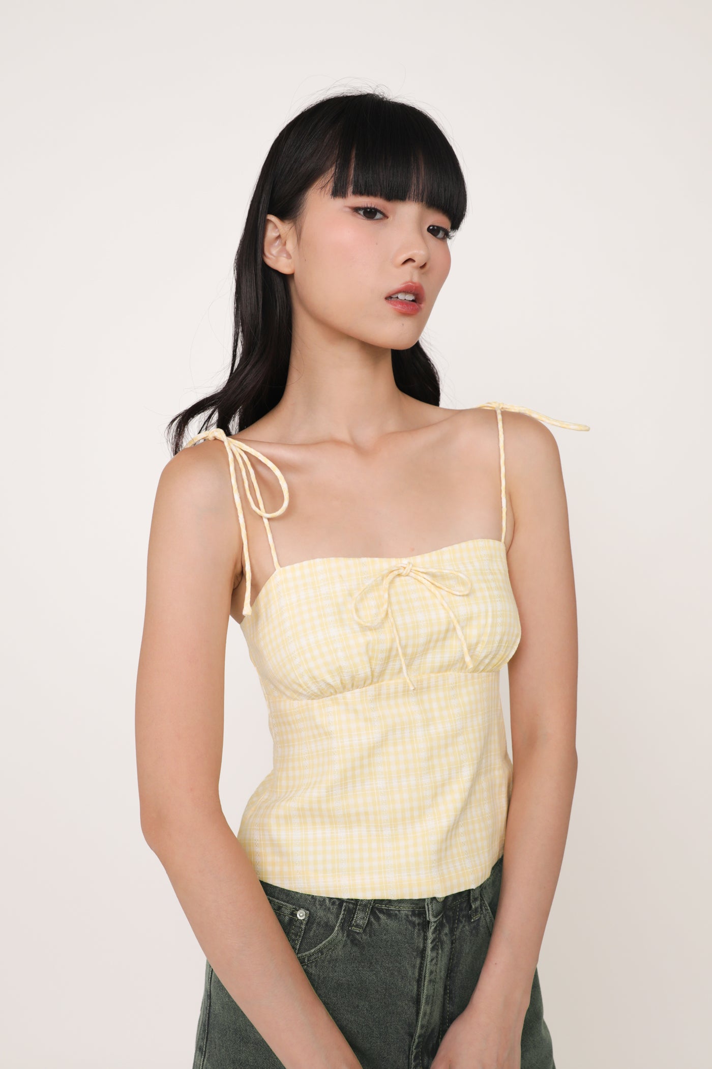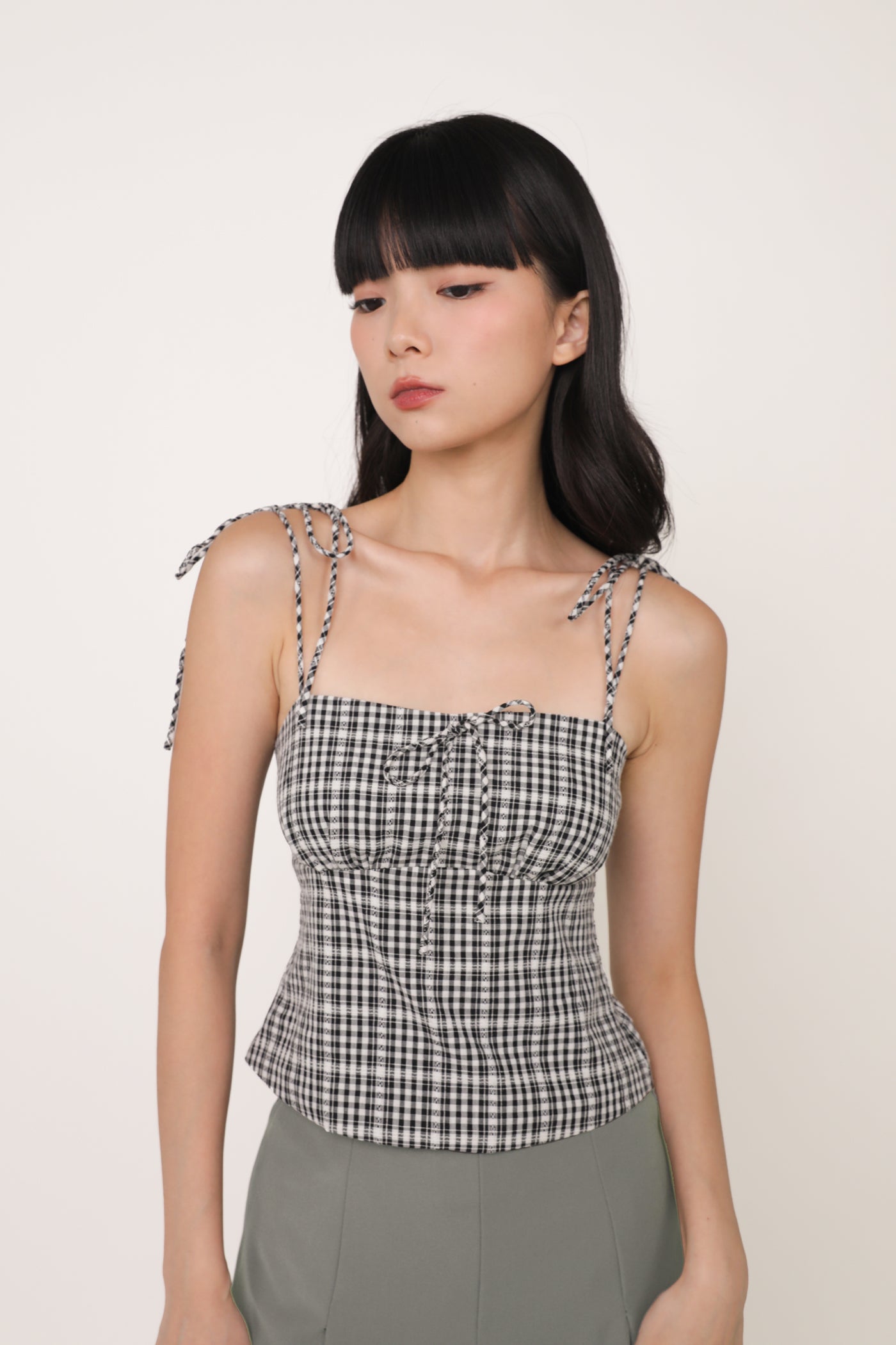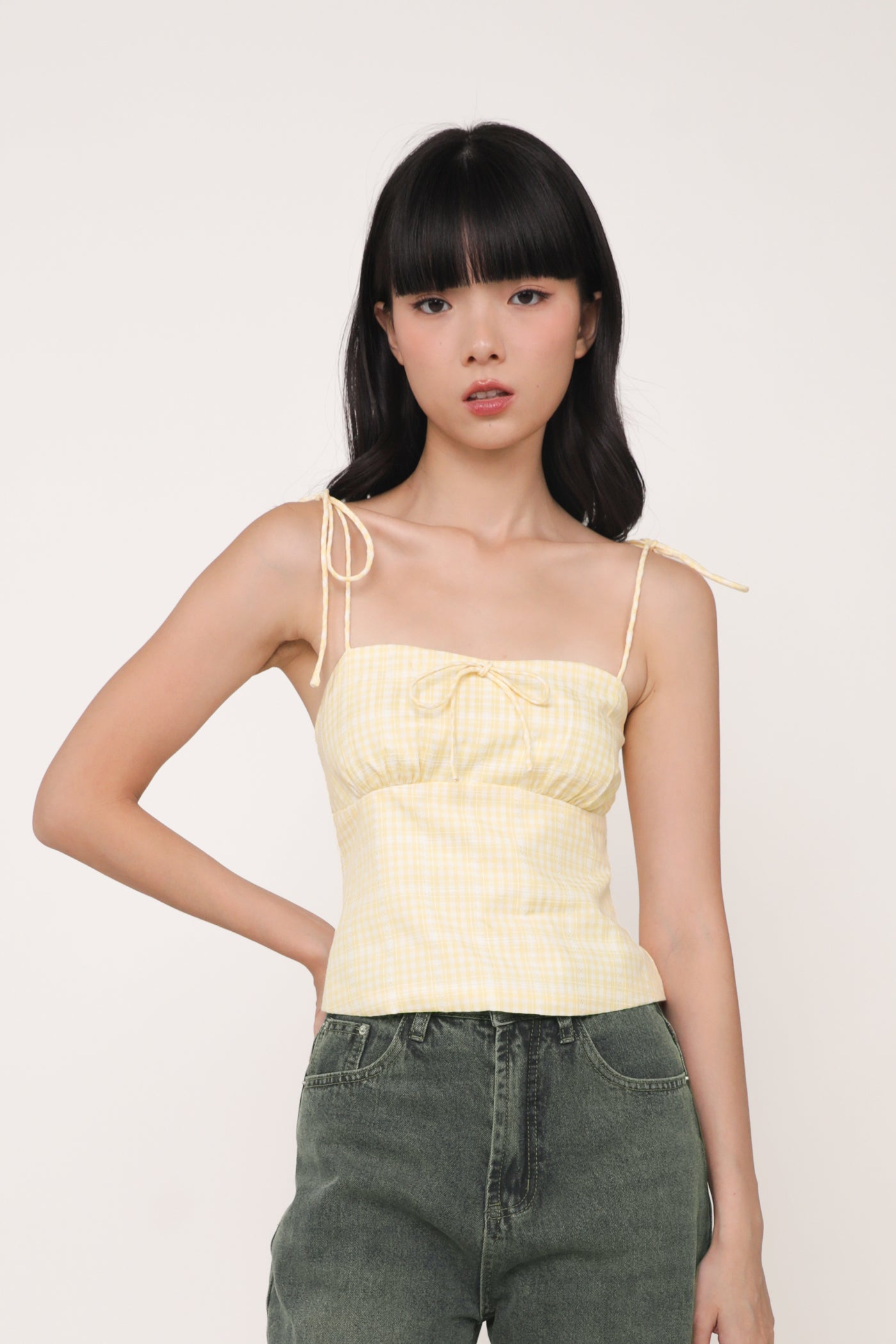 Always in a preppy mood with Eleanora. Eleanora Ribbon Top is the fresh style staple of the summer. This feminine piece flaunts a classic plaid print and delicate self-tie straps. Paired with some denim shorts or a flowy skirt, Eleanora is a fuss-free top that brings a playful flair to every outfit.