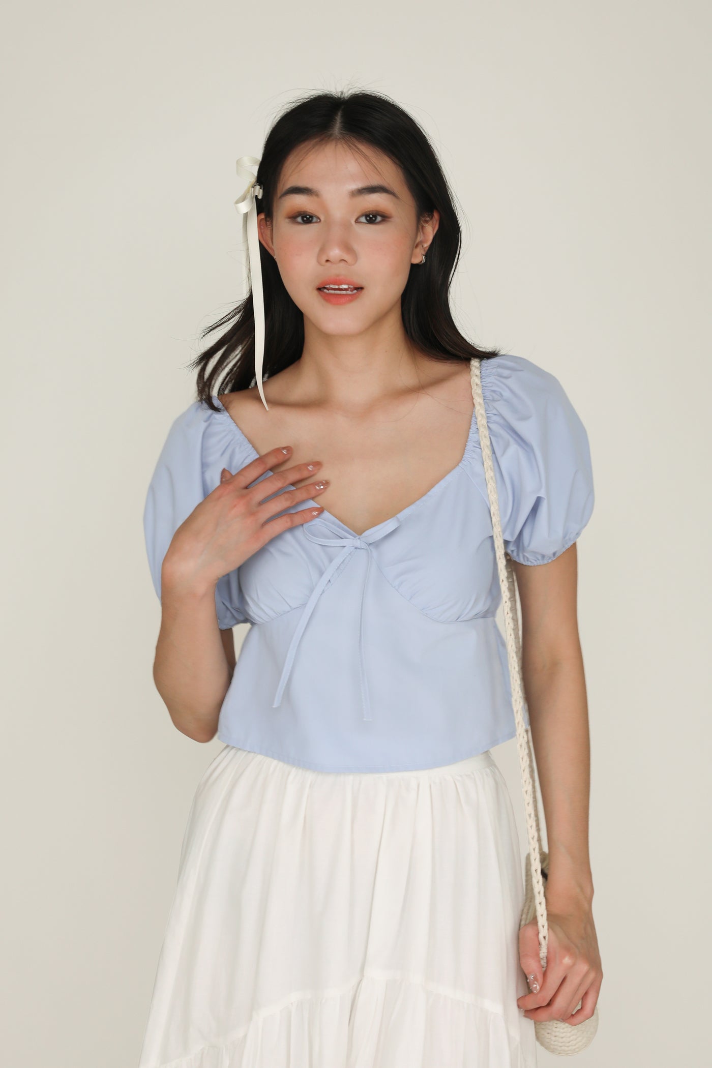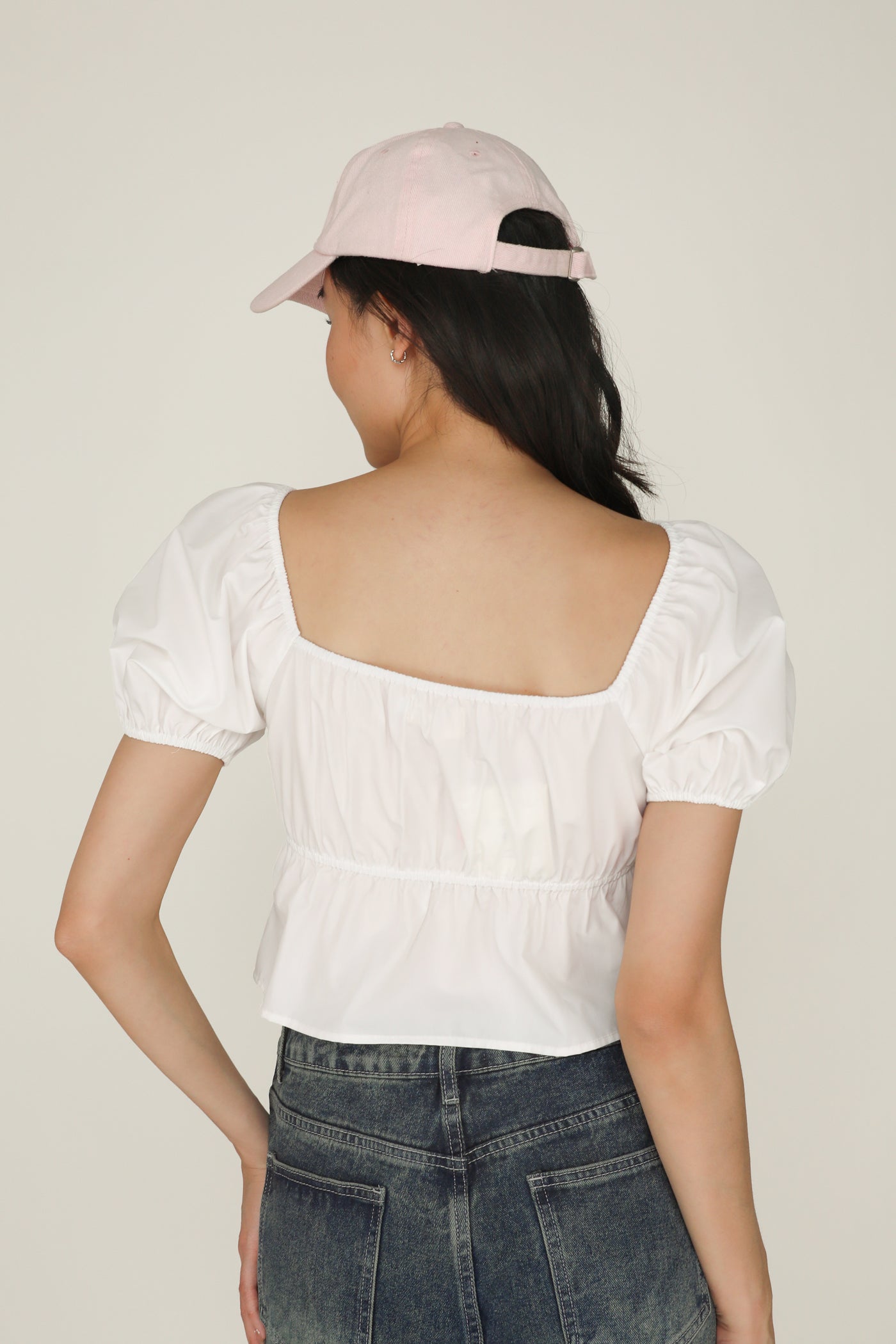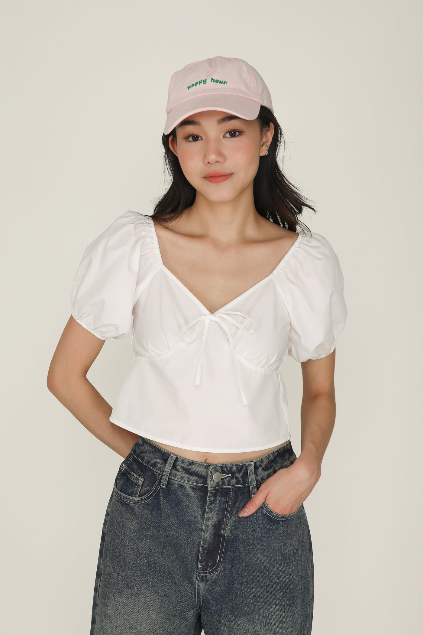 Sweeten up your wardrobe with Gracelynn. Gracelynn Babydoll Top features a relaxed silhouette with subtle puff sleeves. It flaunts a simple ribbon detail at the front for a sprinkle of cottagecore flair. For lovers of soft, feminine styles, Gracelynn is a dreamy piece to incorporate into your outfits.