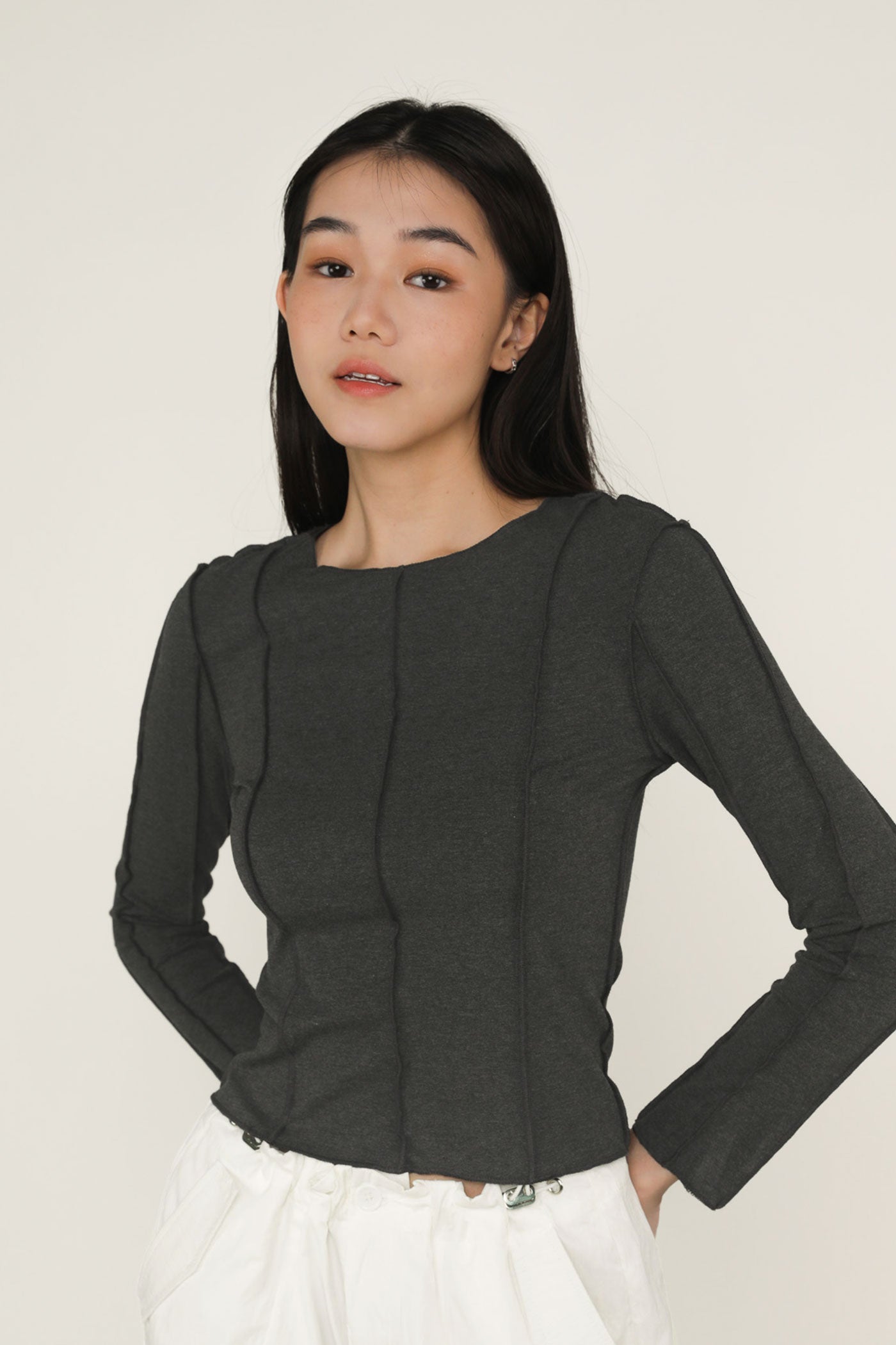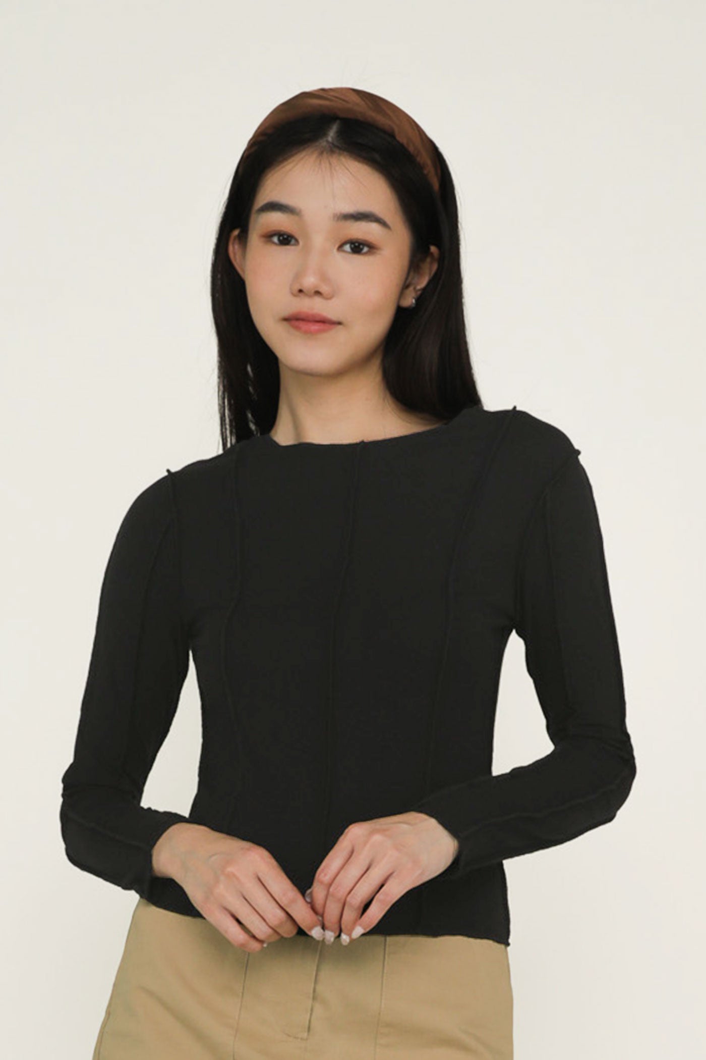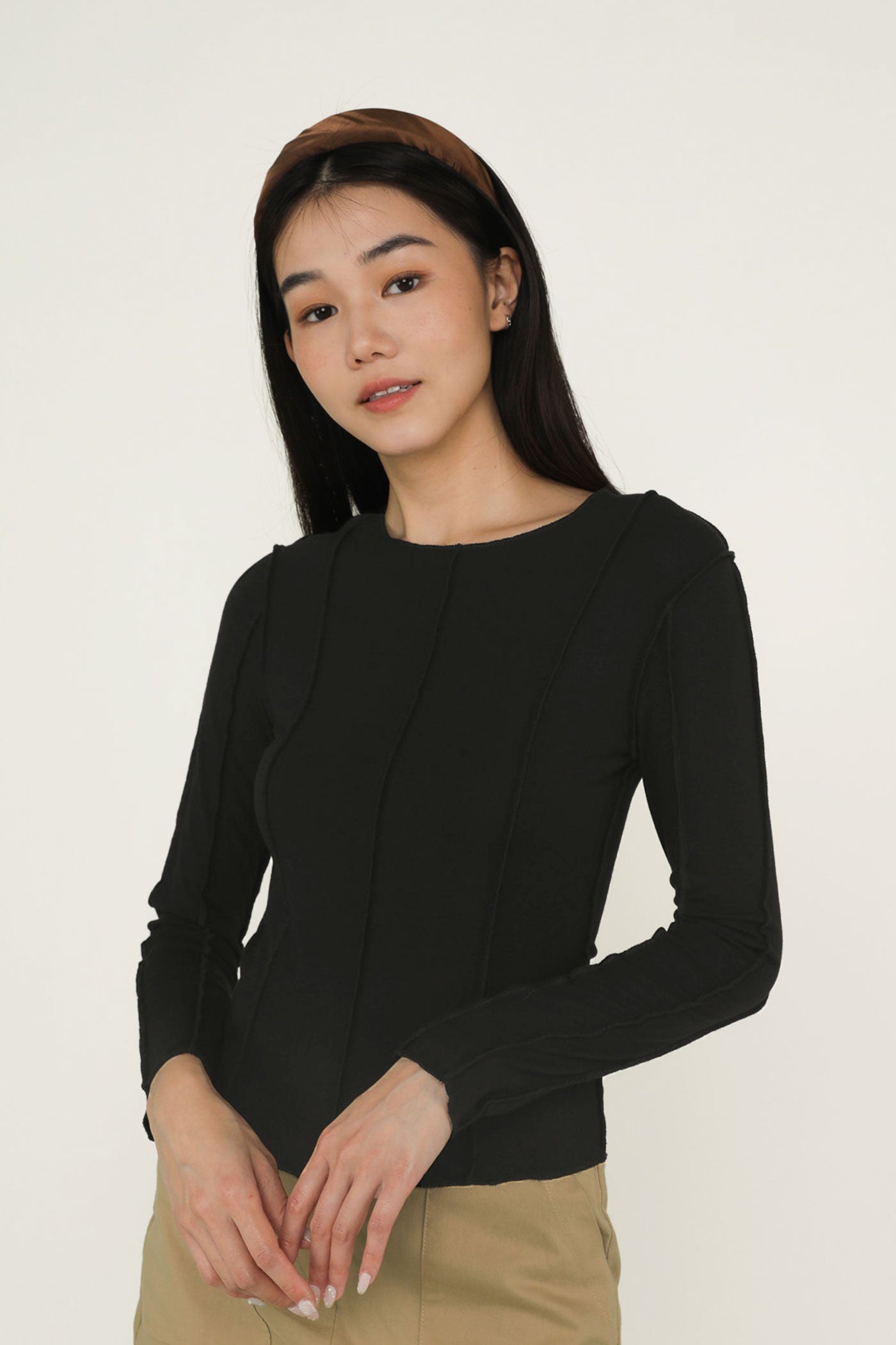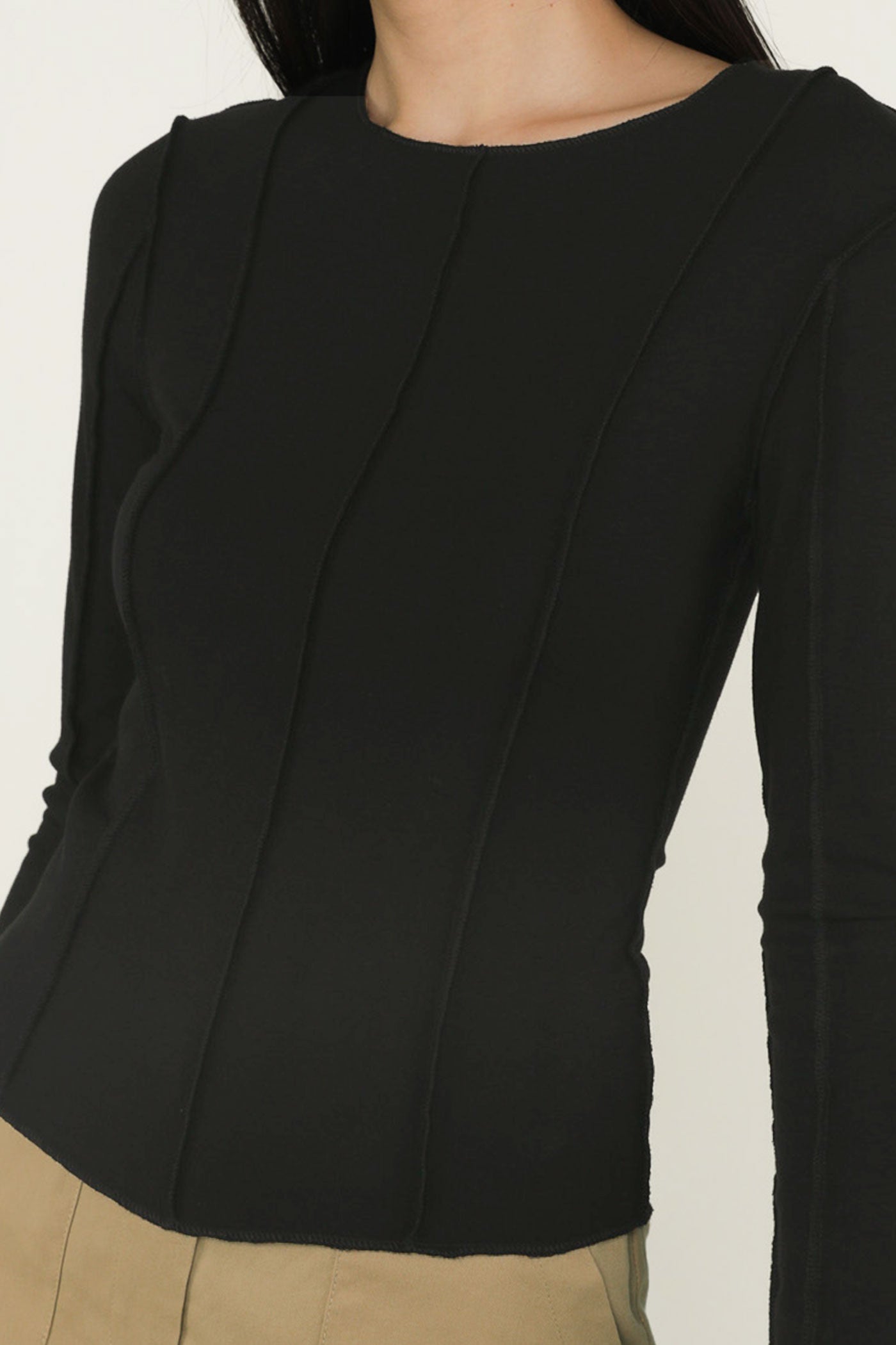 Kick your casual style up a notch with Janet. Janet Stitched Long Sleeve Top is a minimalistic favourite for a quick and effortless weekend look. This piece features a sleek silhouette decorated with exposed seam stitch details for a dash of playful texture. This wear-with anything basic is a simple yet refreshing piece to keep in your outfit rotation.