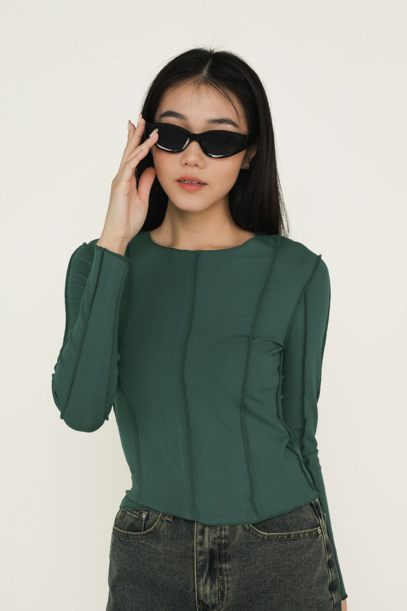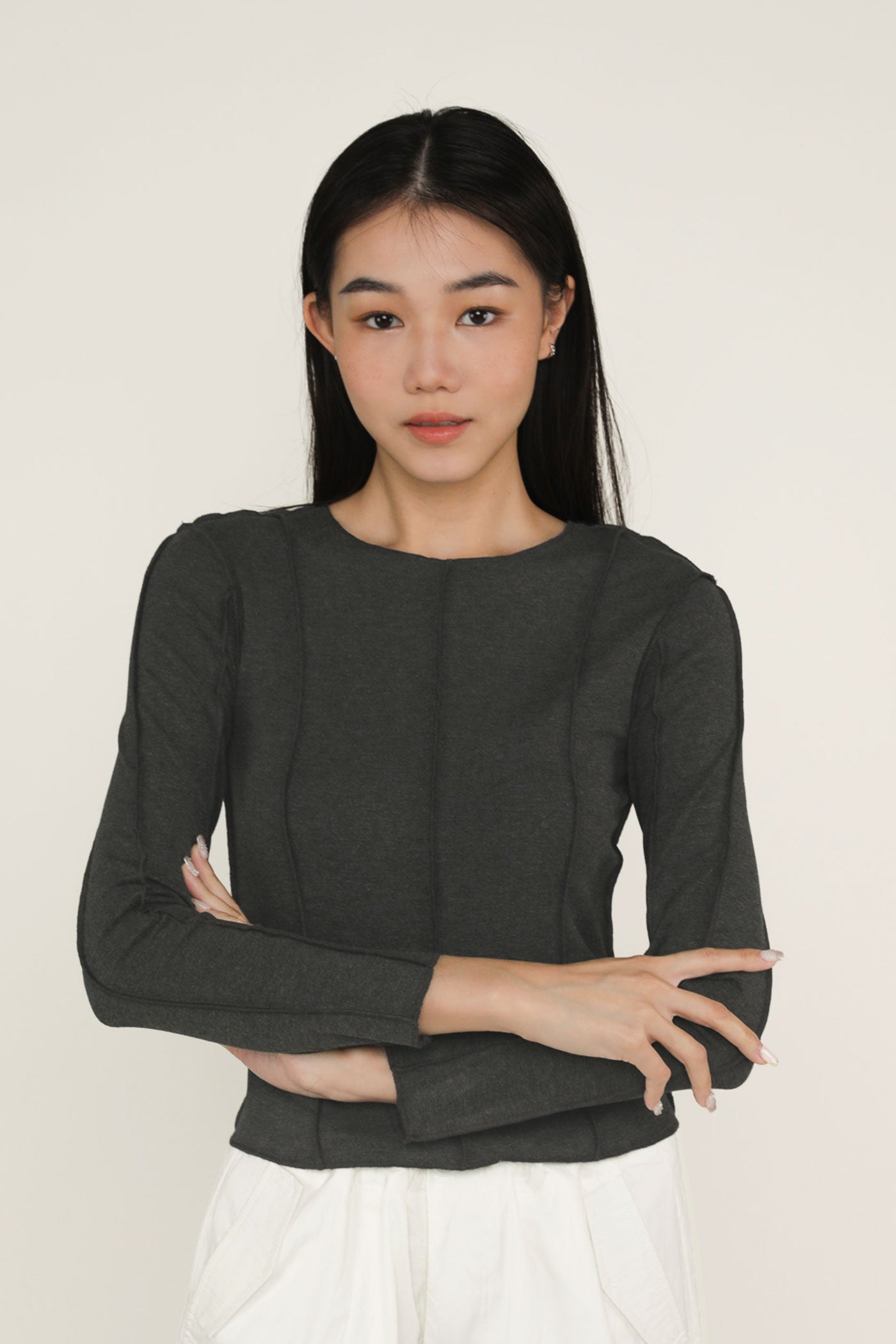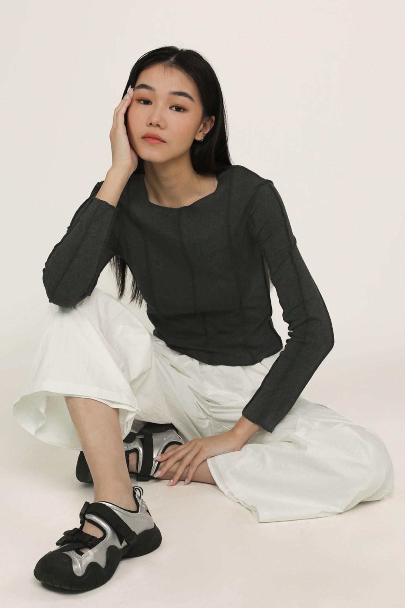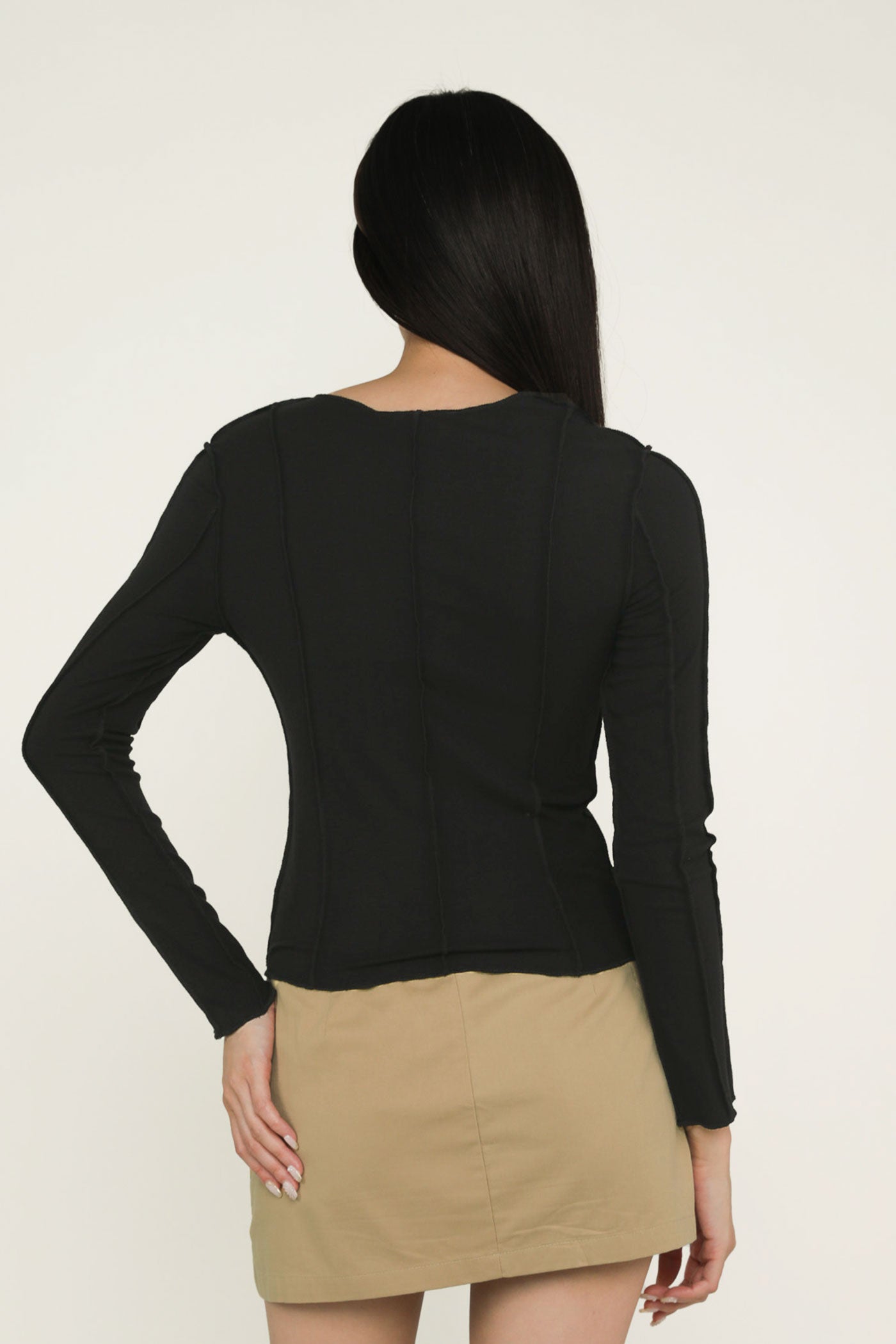 Kick your casual style up a notch with Janet. Janet Stitched Long Sleeve Top is a minimalistic favourite for a quick and effortless weekend look. This piece features a sleek silhouette decorated with exposed seam stitch details for a dash of playful texture. This wear-with anything basic is a simple yet refreshing piece to keep in your outfit rotation.
