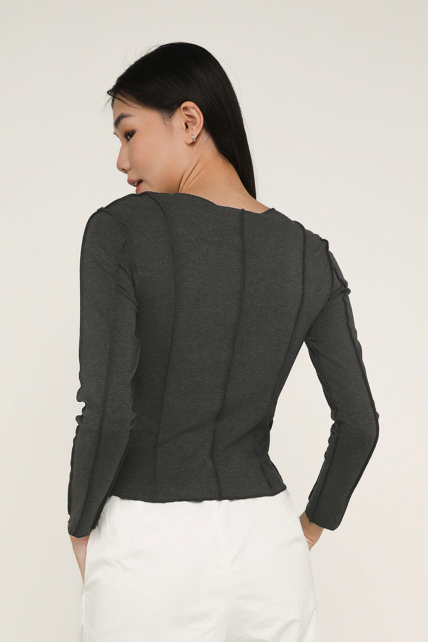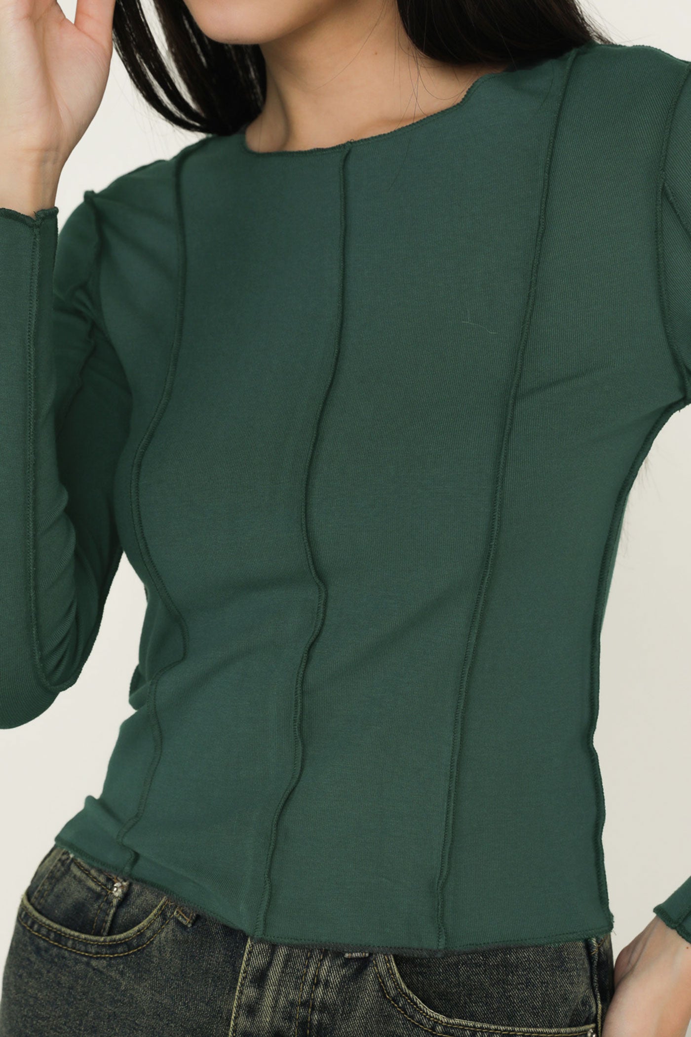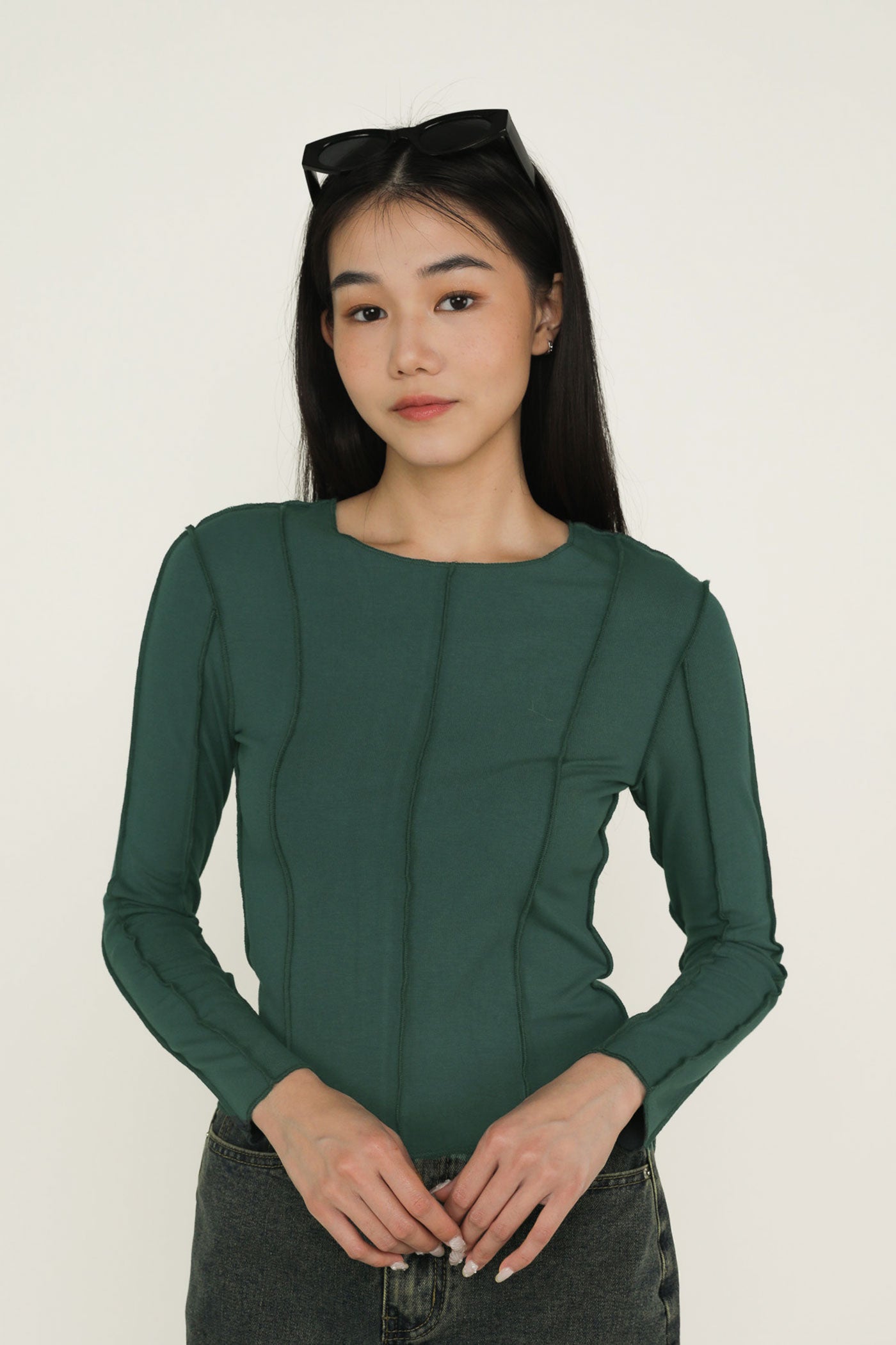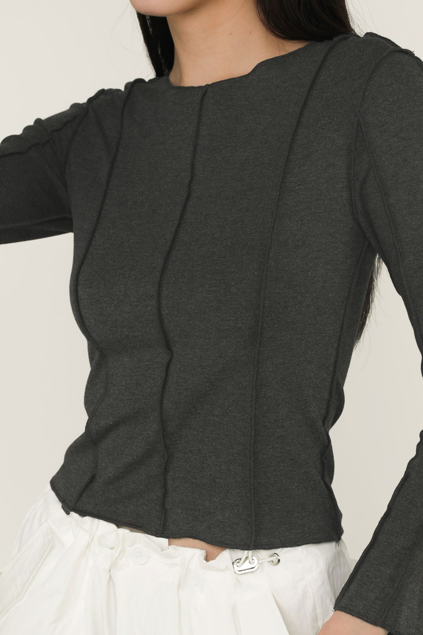 Kick your casual style up a notch with Janet. Janet Stitched Long Sleeve Top is a minimalistic favourite for a quick and effortless weekend look. This piece features a sleek silhouette decorated with exposed seam stitch details for a dash of playful texture. This wear-with anything basic is a simple yet refreshing piece to keep in your outfit rotation.