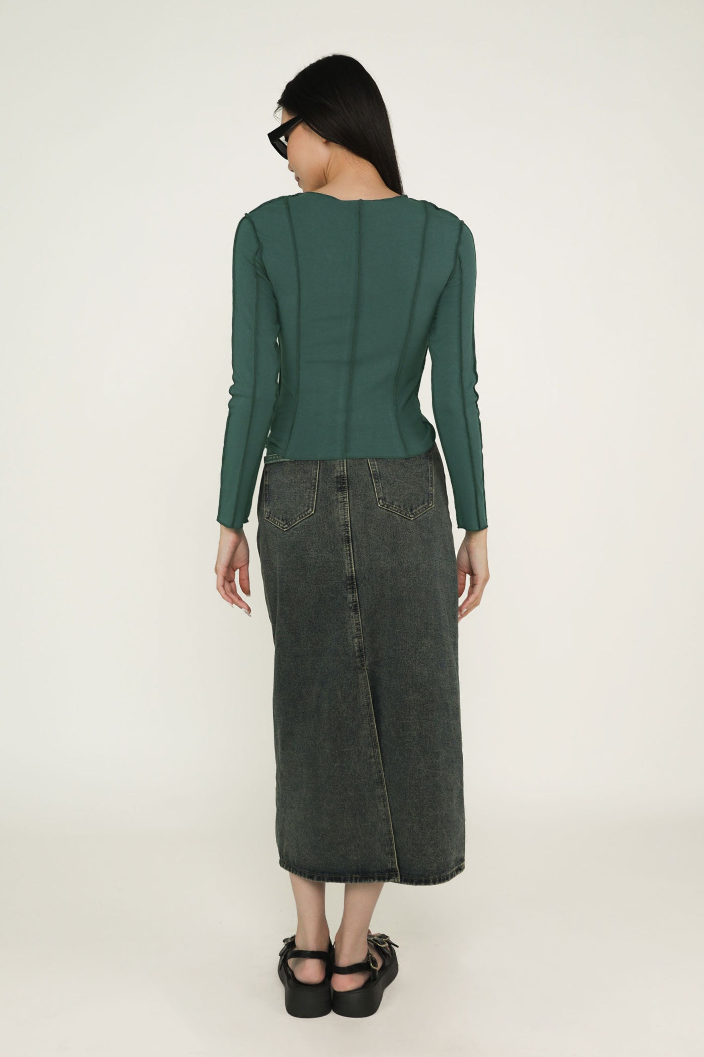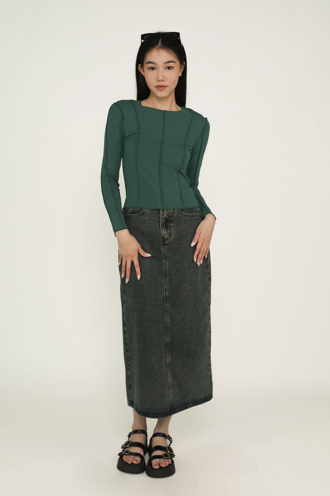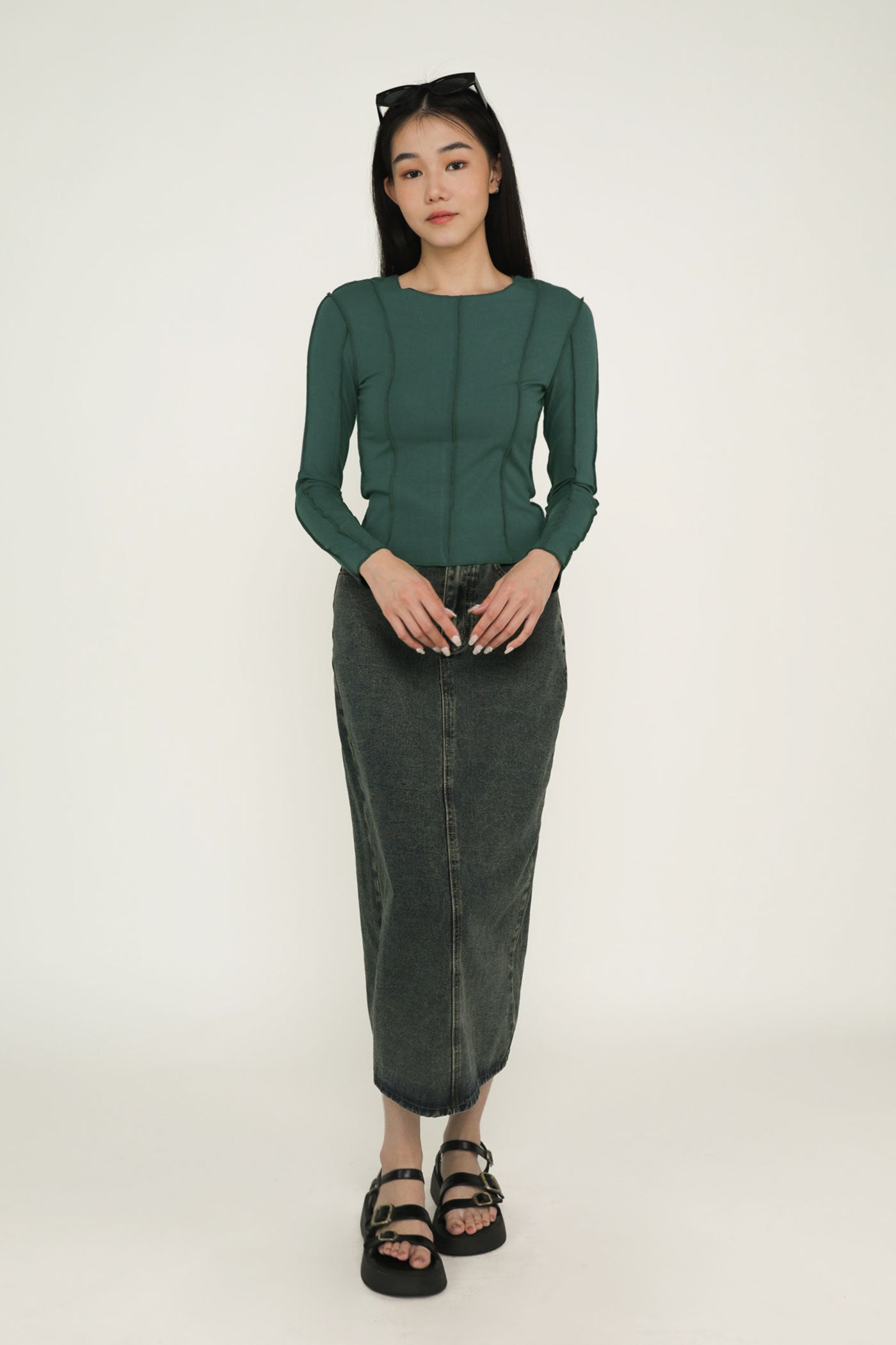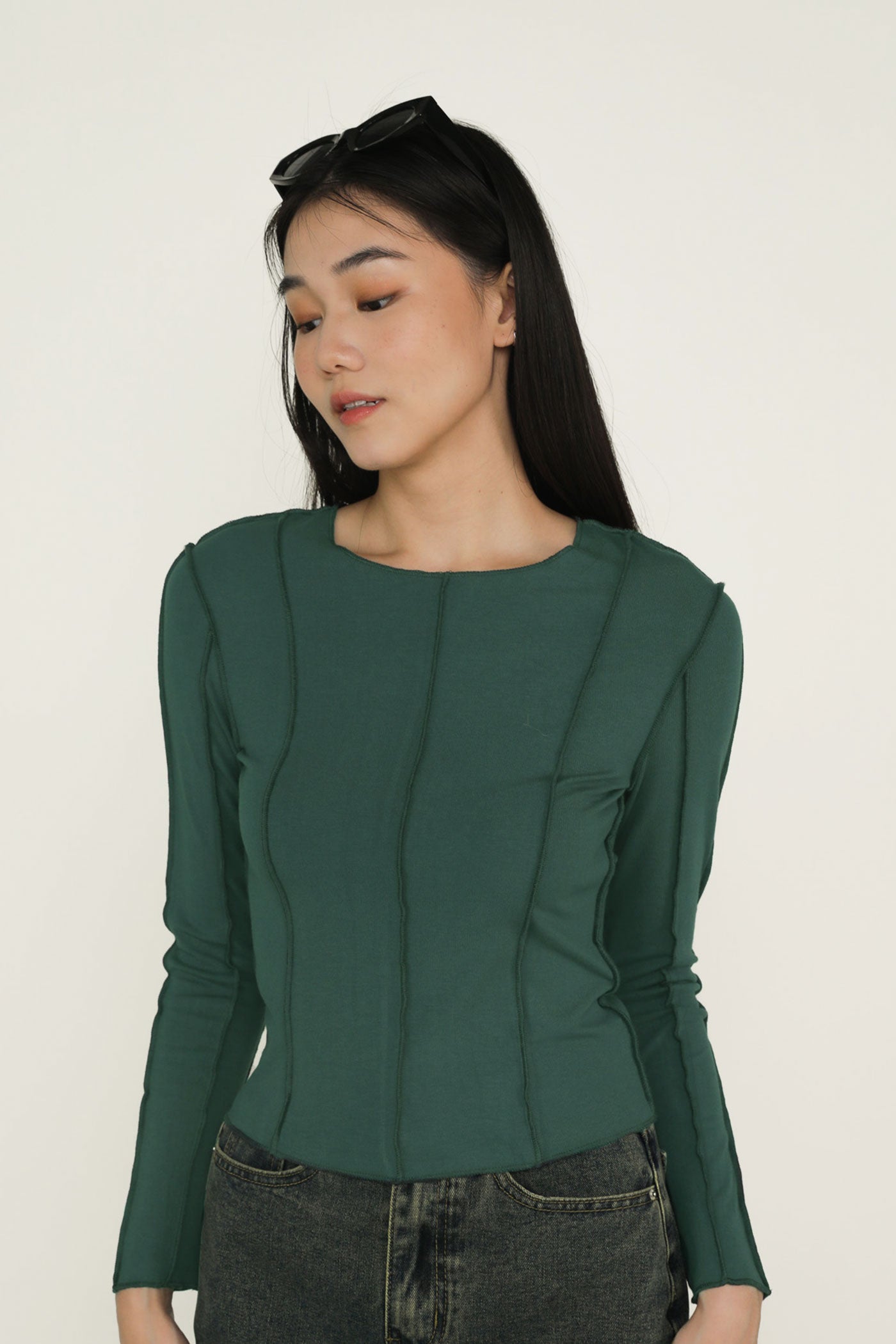 Kick your casual style up a notch with Janet. Janet Stitched Long Sleeve Top is a minimalistic favourite for a quick and effortless weekend look. This piece features a sleek silhouette decorated with exposed seam stitch details for a dash of playful texture. This wear-with anything basic is a simple yet refreshing piece to keep in your outfit rotation.