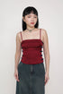 This top is made of polyester for a comfortable fit. It is complete with inner lining, adjustable straps, removable paddings, non functional side knots, a smocked back and an exposed back zip.