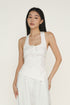 Embrace chic simplicity with Kylene. Kylene Asymmetrical Halter Top is a contemporary piece that effortlessly combines style and versatility. This top features an asymmetrical hem and a ribbon detail on the front. Whether you're dressing up for a night out or keeping it casual for brunch with friends, Kylene brings a minimalistic yet unique statement to any outfit.