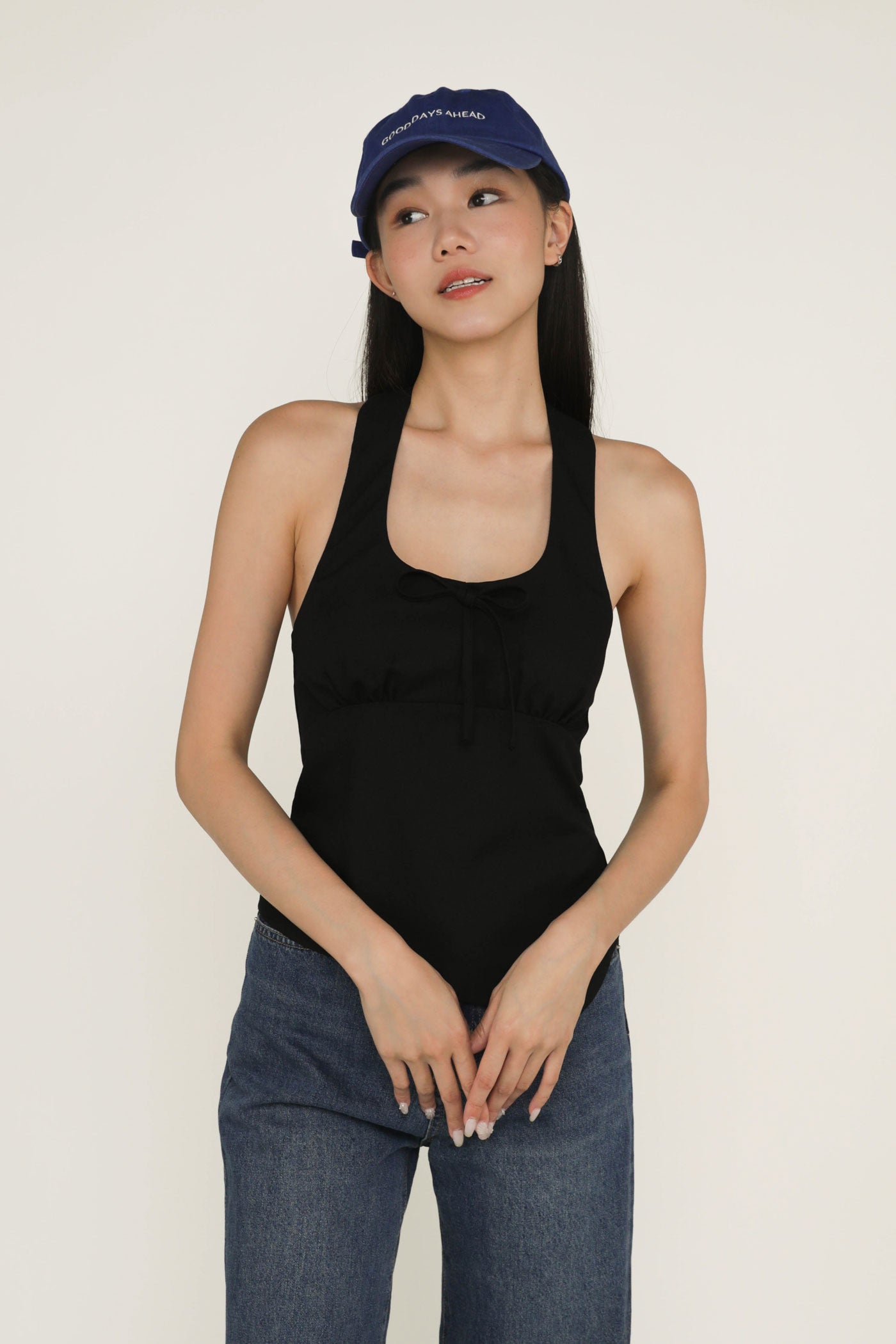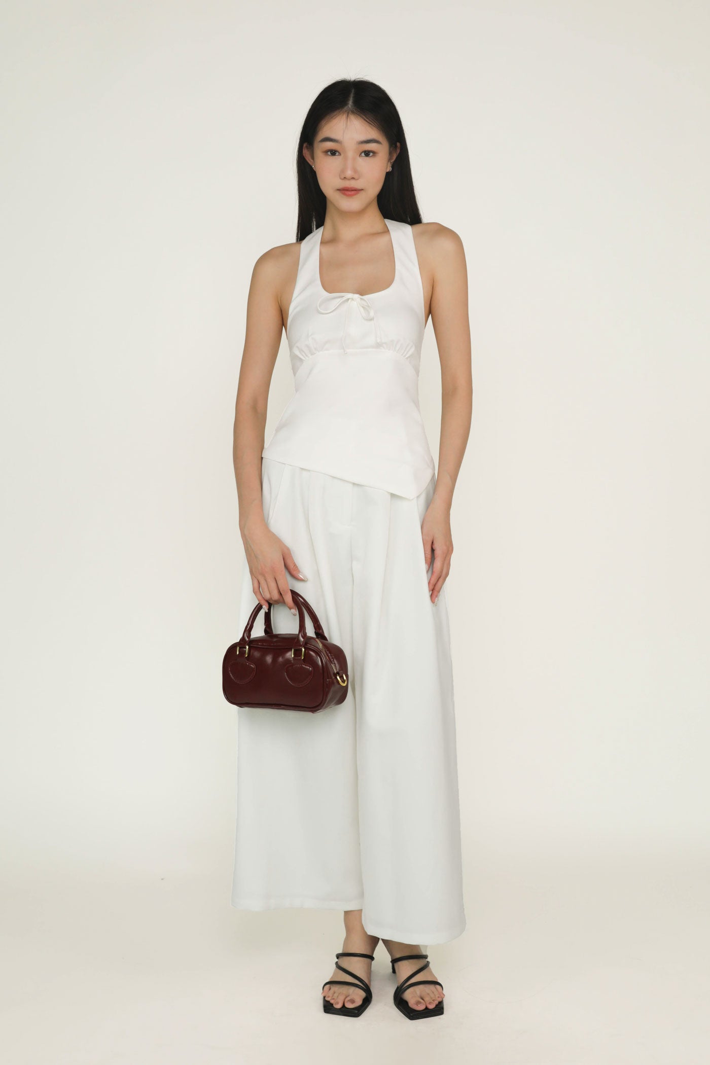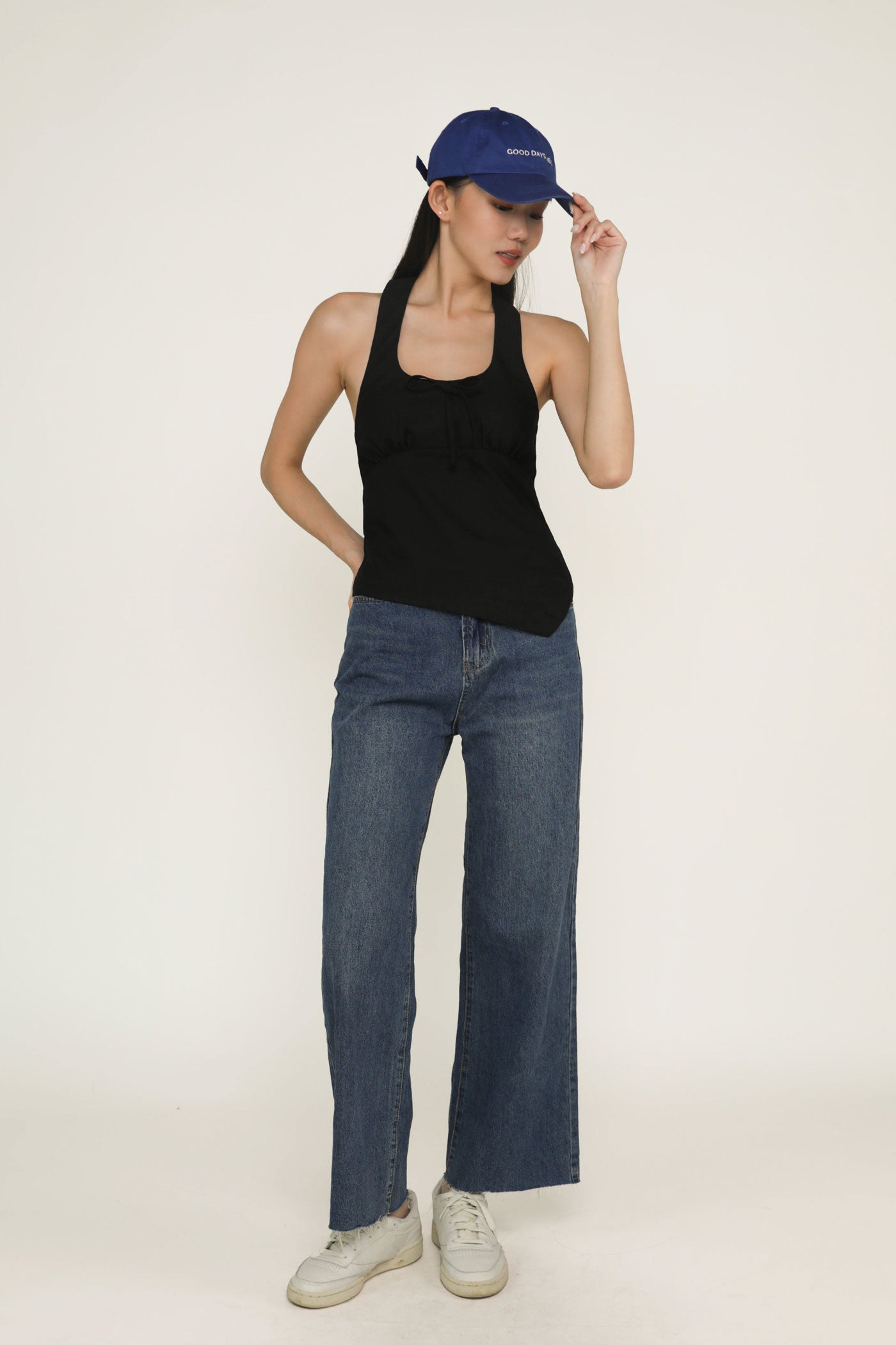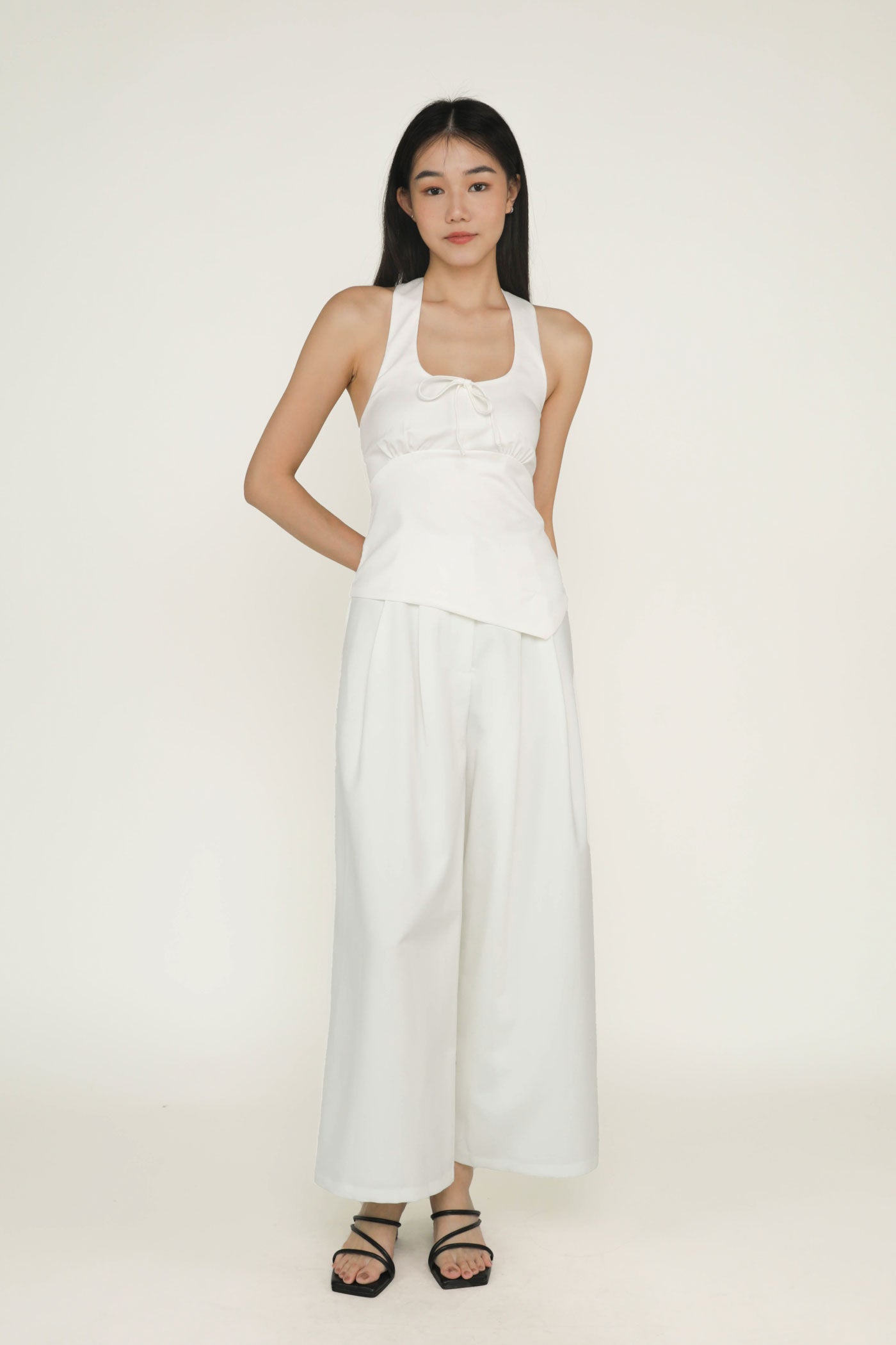 Embrace chic simplicity with Kylene. Kylene Asymmetrical Halter Top is a contemporary piece that effortlessly combines style and versatility. This top features an asymmetrical hem and a ribbon detail on the front. Whether you're dressing up for a night out or keeping it casual for brunch with friends, Kylene brings a minimalistic yet unique statement to any outfit.