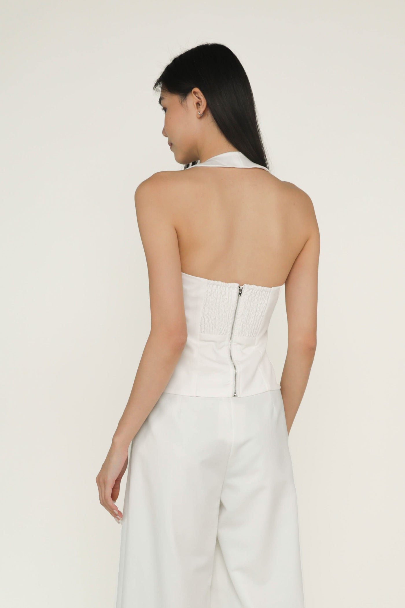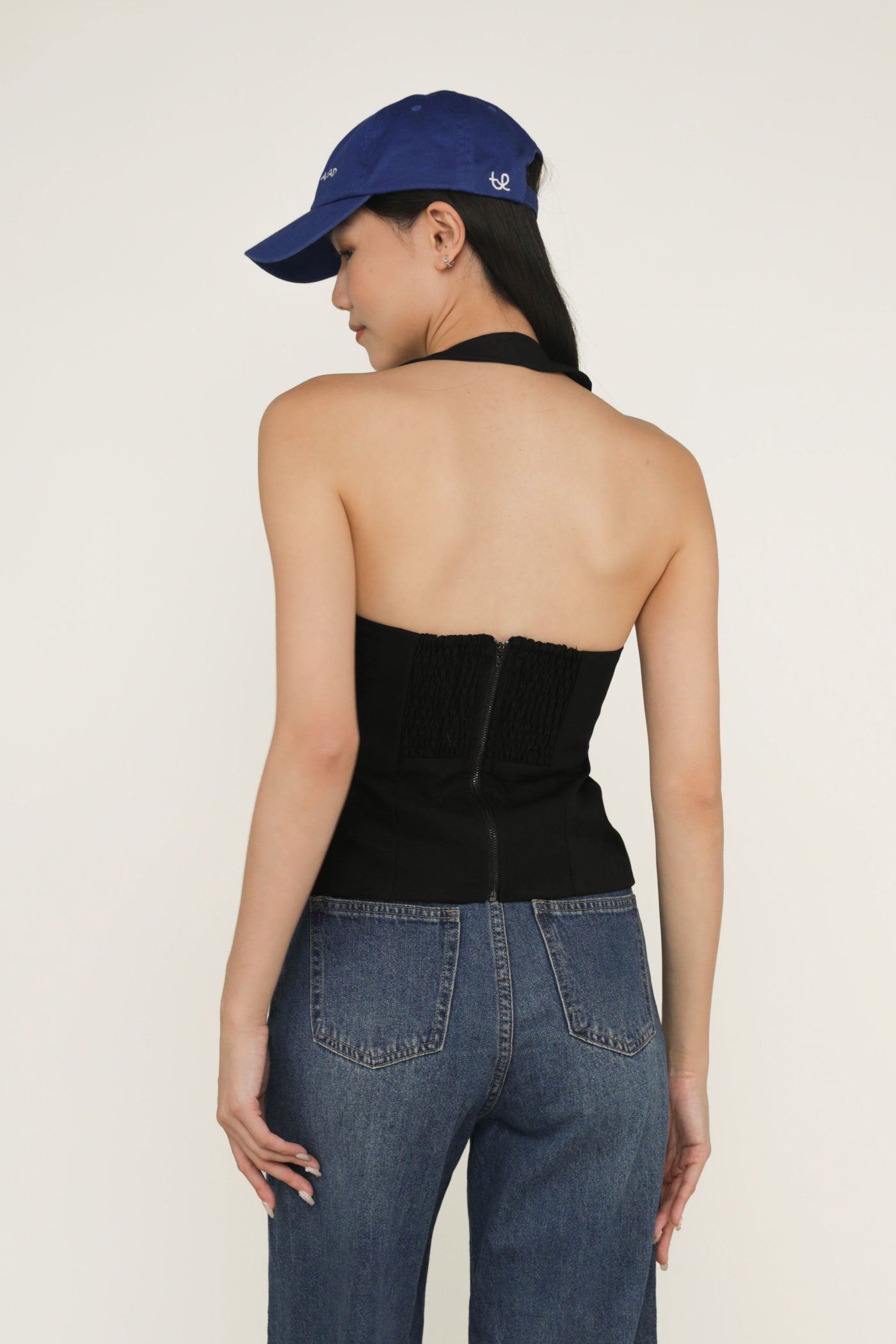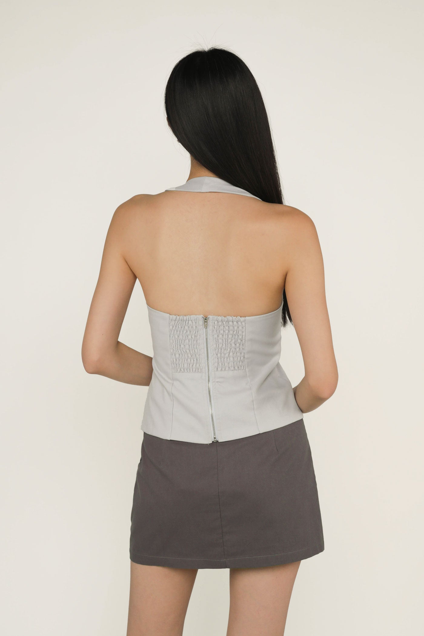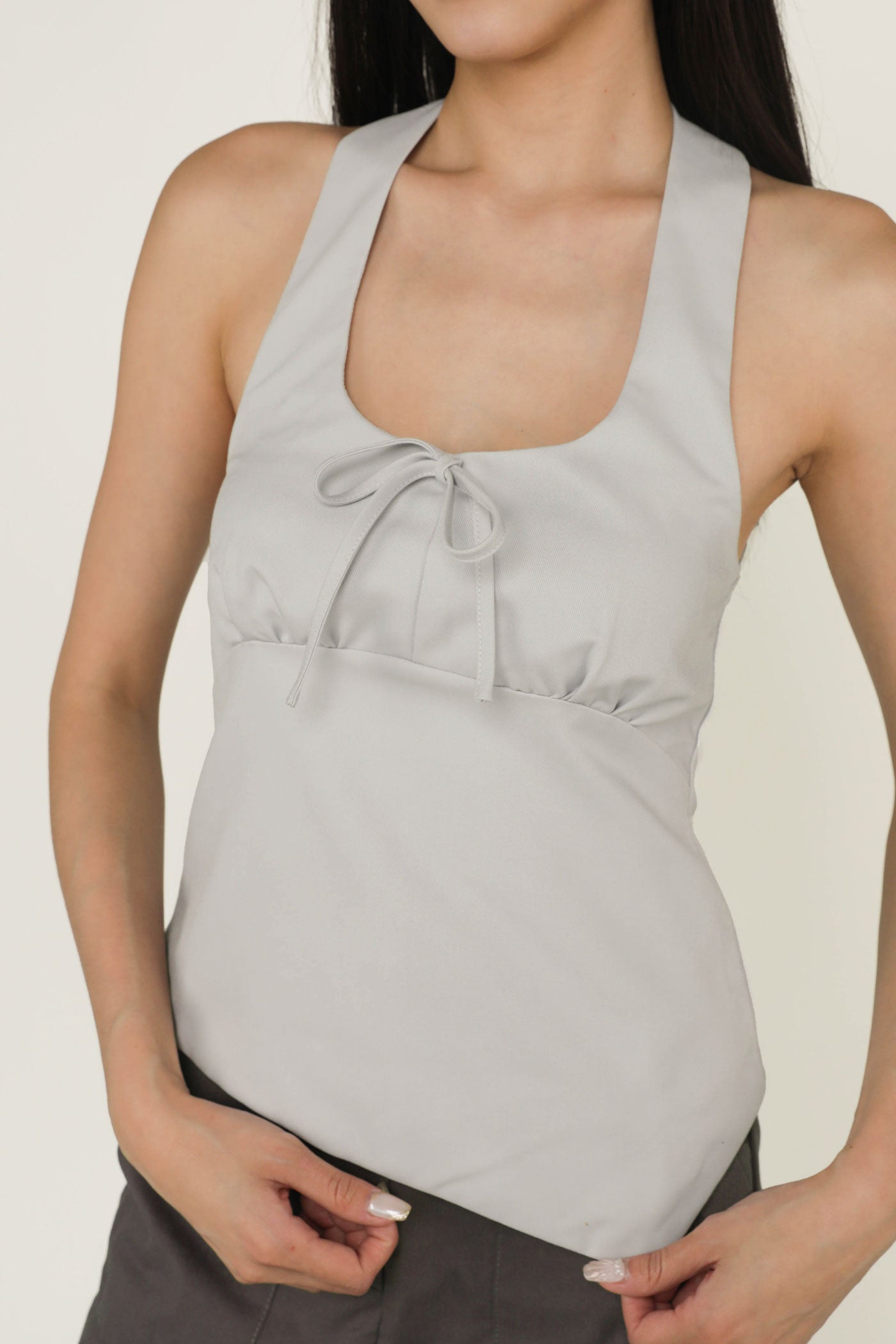 Embrace chic simplicity with Kylene. Kylene Asymmetrical Halter Top is a contemporary piece that effortlessly combines style and versatility. This top features an asymmetrical hem and a ribbon detail on the front. Whether you're dressing up for a night out or keeping it casual for brunch with friends, Kylene brings a minimalistic yet unique statement to any outfit.