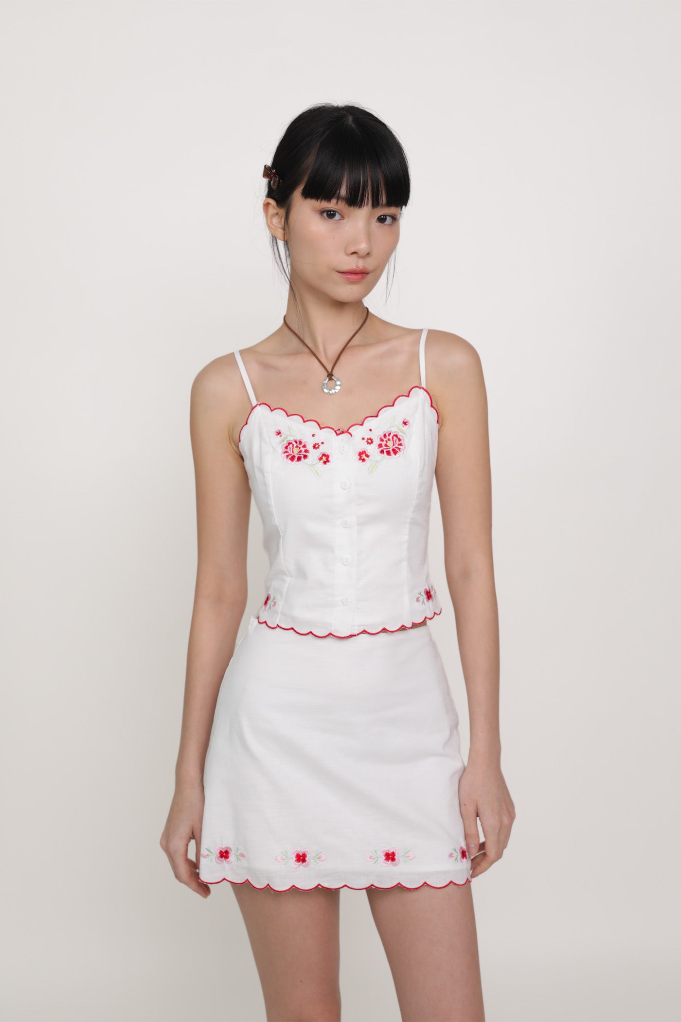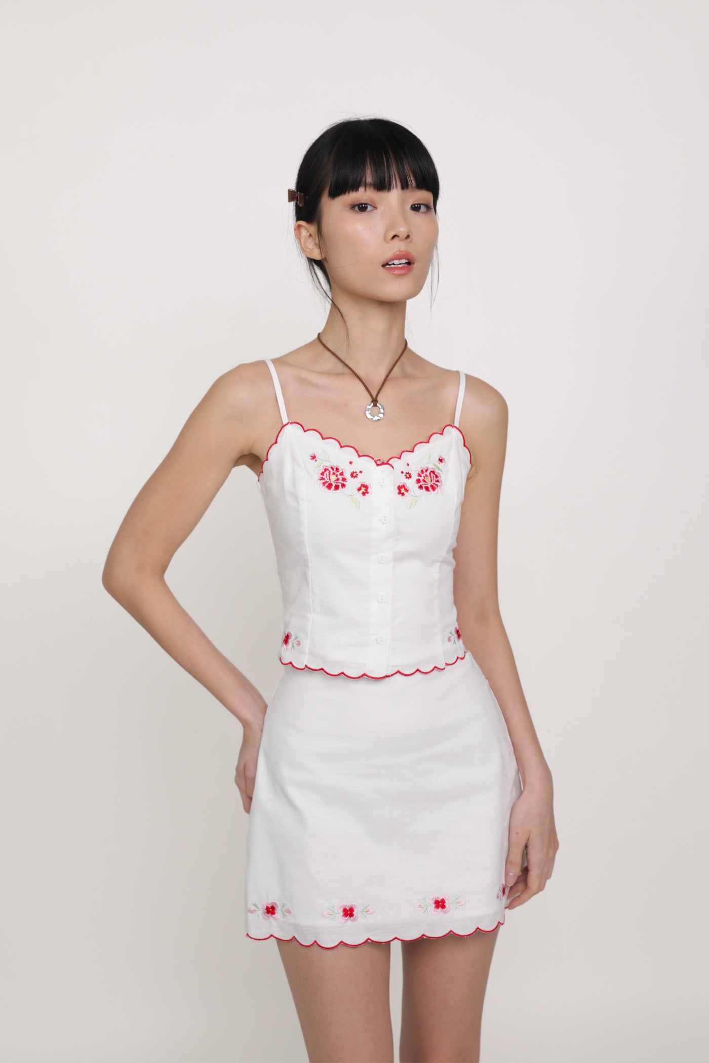 Ease into the springtime season with our Lilian Embroidery Scallop Hem Top. From its contrast scallop hem to the dainty floral embroidery, every inch is designed to enchant. Style it solo or pair it with the Lune Embroidery Scallop Hem Skirt for a feminine, refined ensemble.