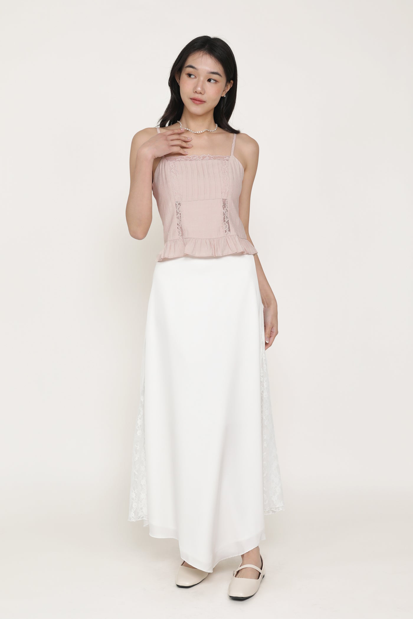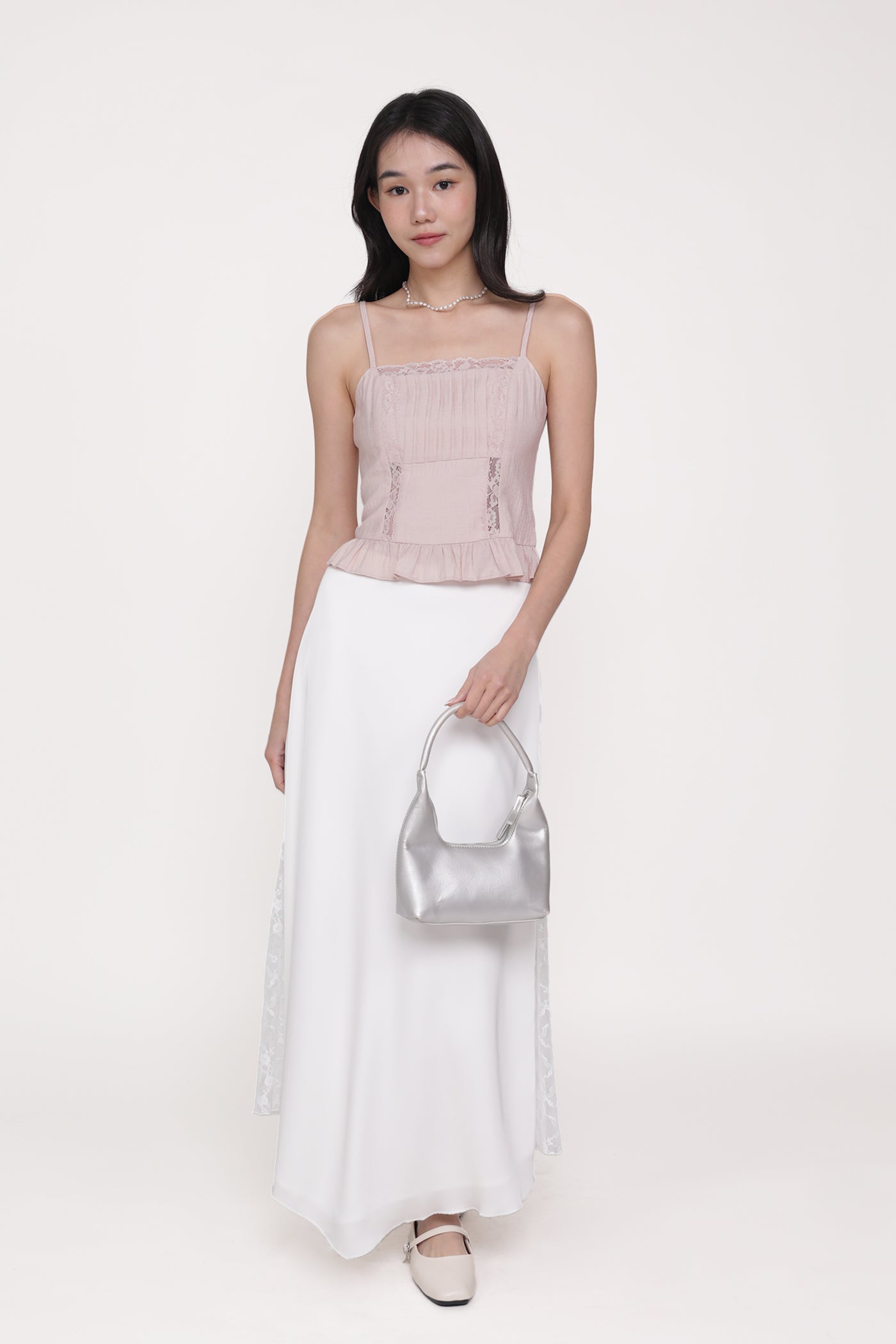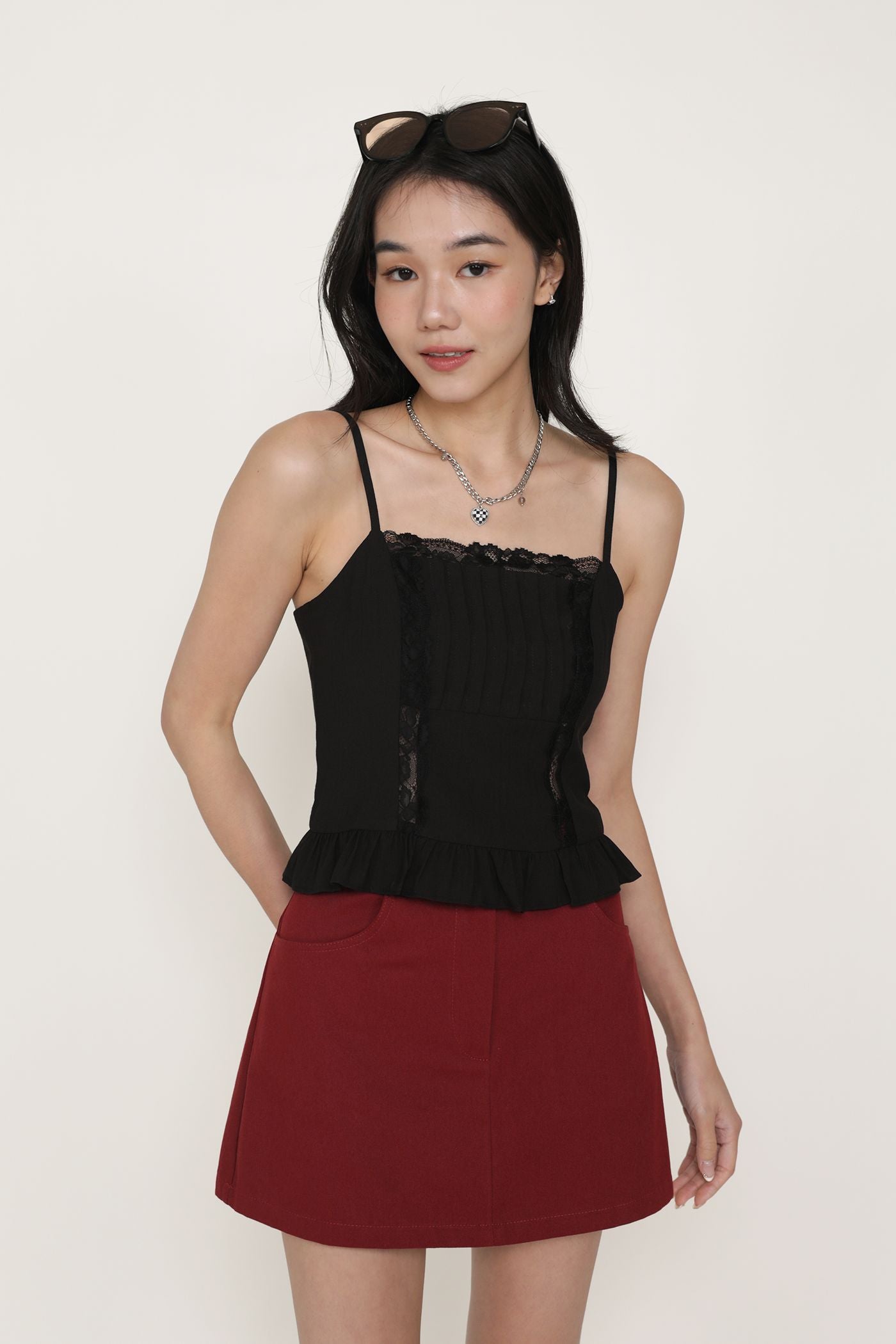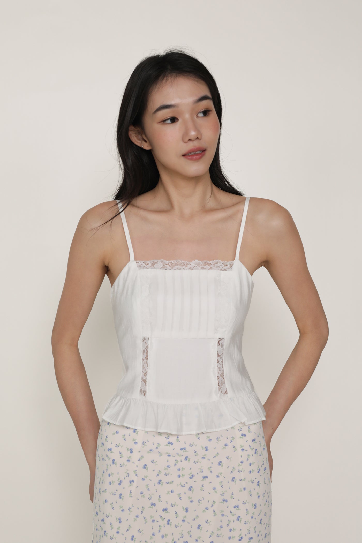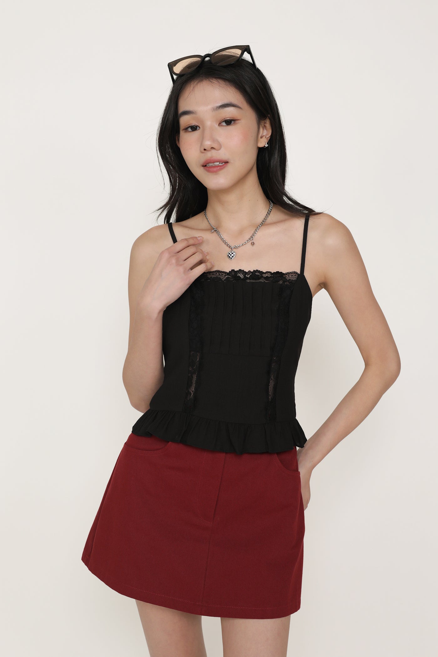 Lace, pleats, and a little bit of magic—the Majorie Lace Panelled Top is your ticket to effortless charm. Majorie features delicate lace details, a chic pleated front, and a playful ruffled hem. This sleek, feminine design keeps it light, flirty, and full of movement. Slip it on and let your outfit do all the sweet talking.