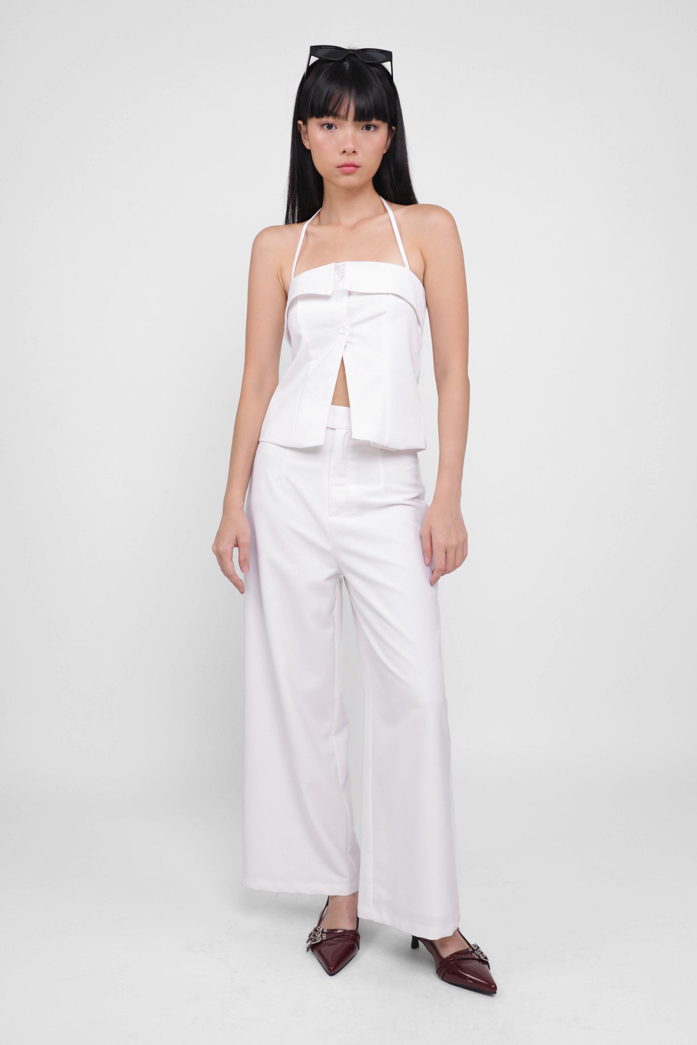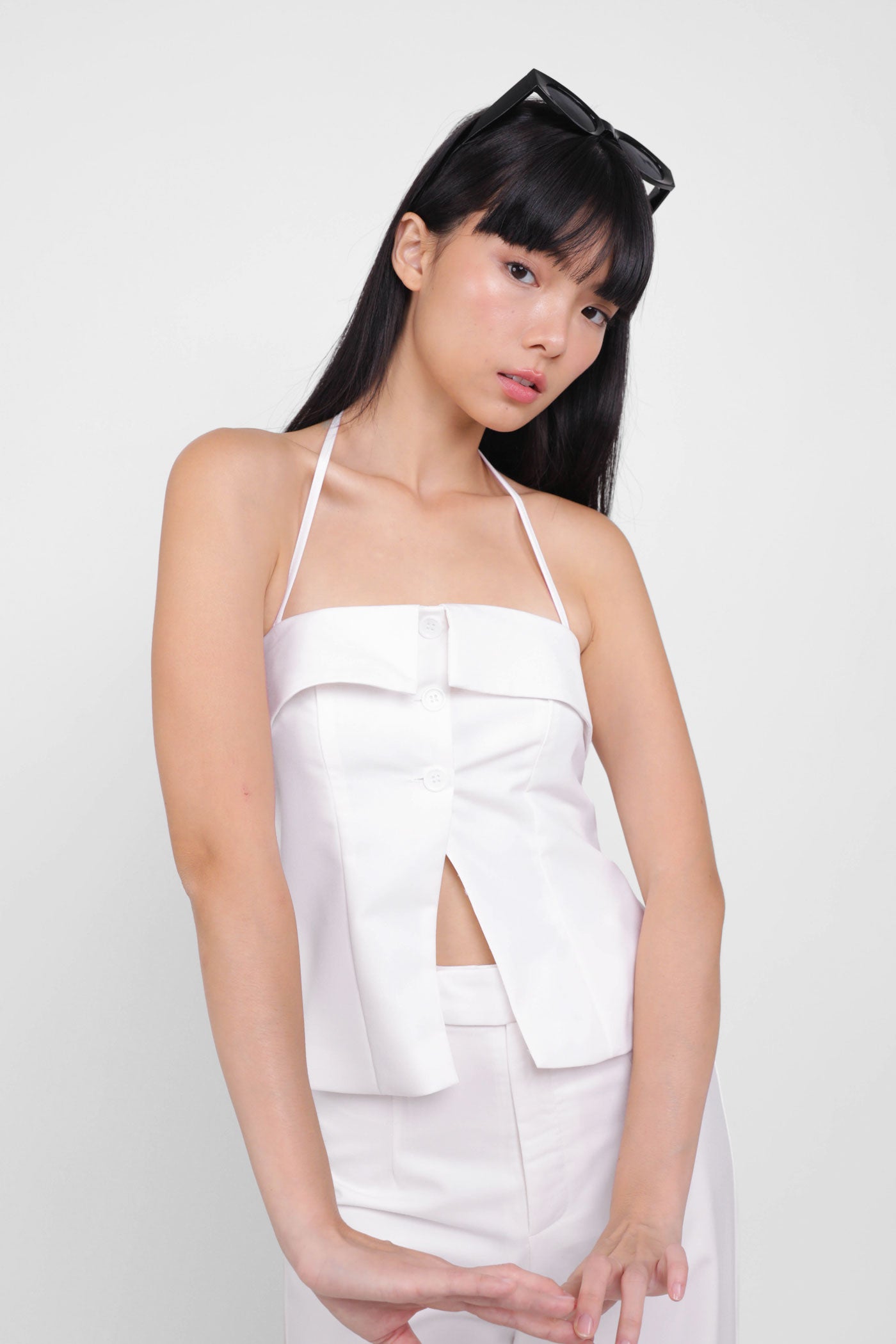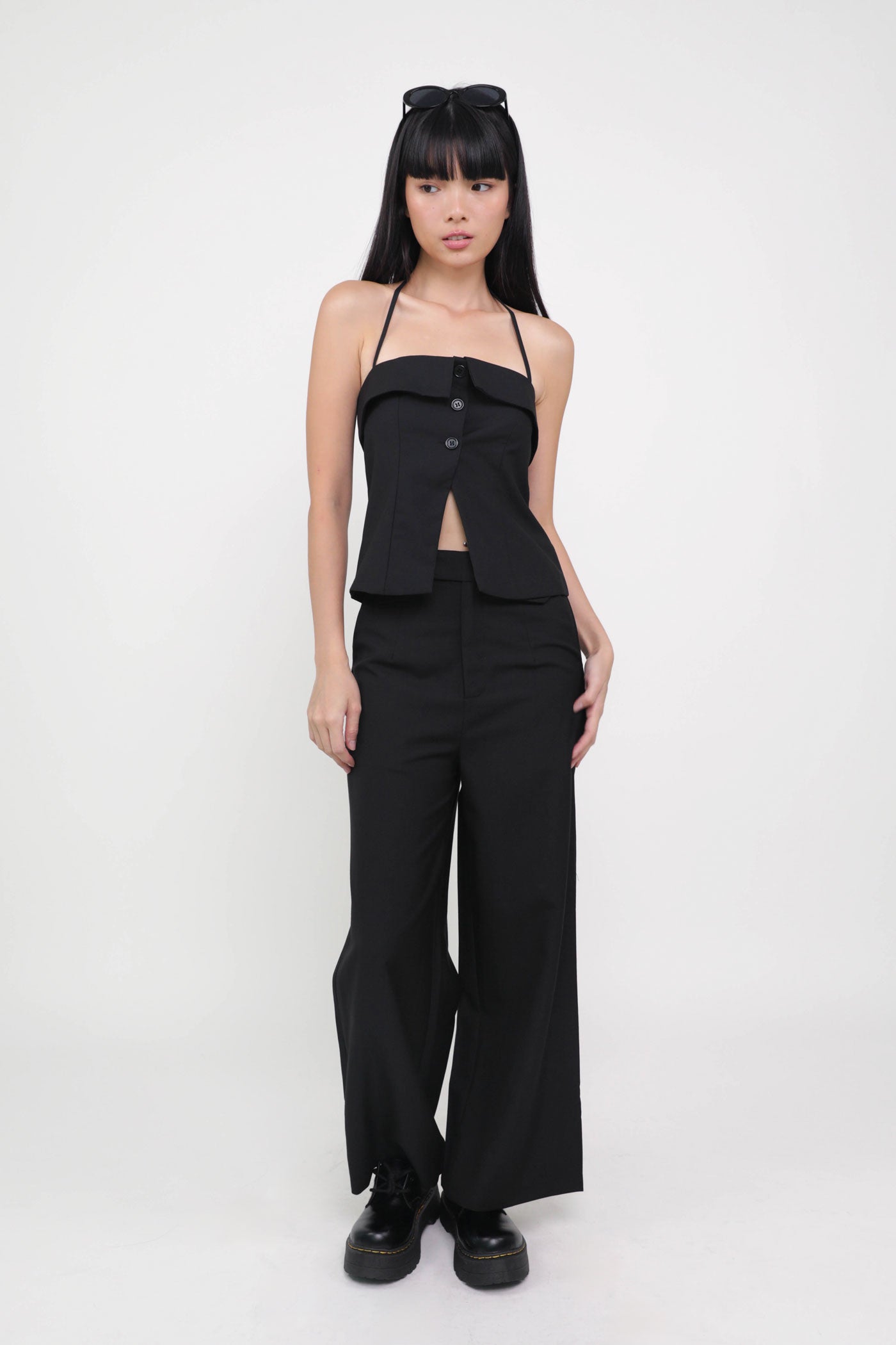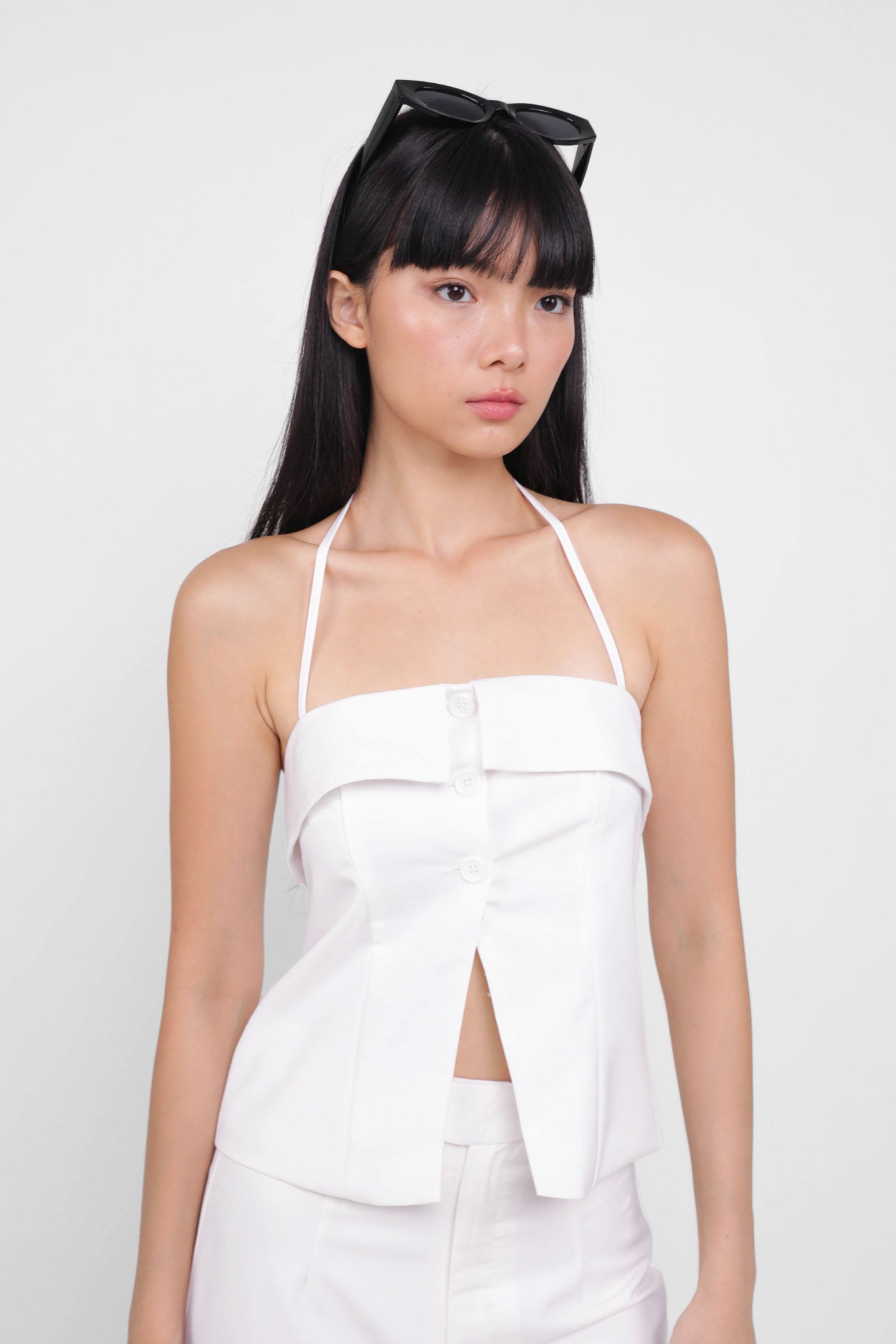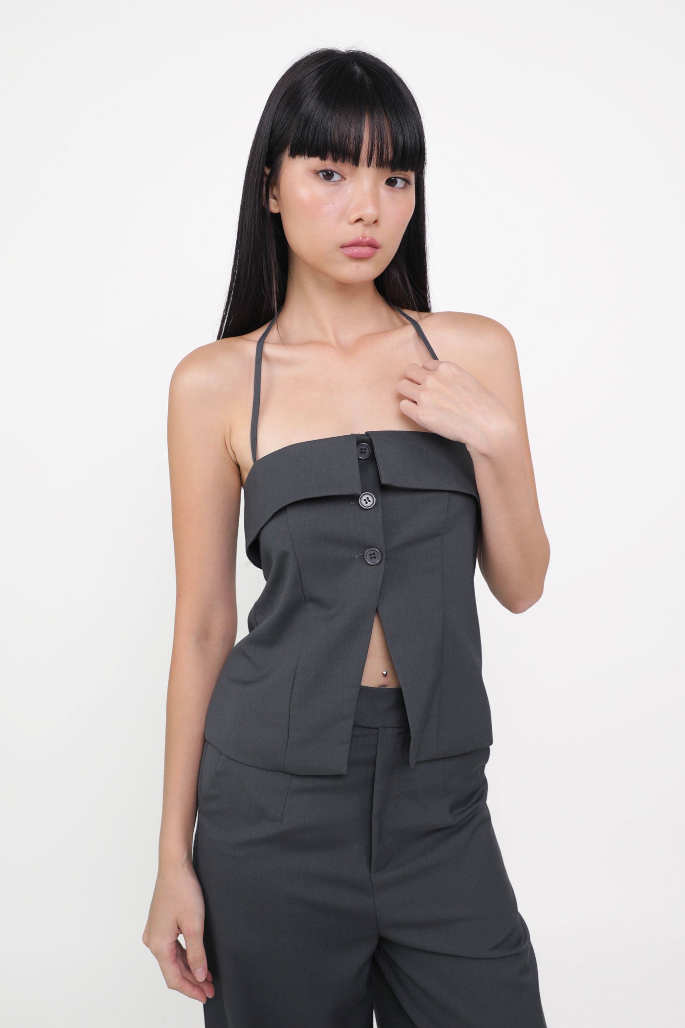 Keep things classy with Marissa. Marissa Tailored Halter Top is the epitome of chic elegance. This top features a timeless halter neckline and sleek button-up details. From office chic to first dates, this top never fails to leave a charming impression. Style it as a co-ord with our Harold Tailored Pants.