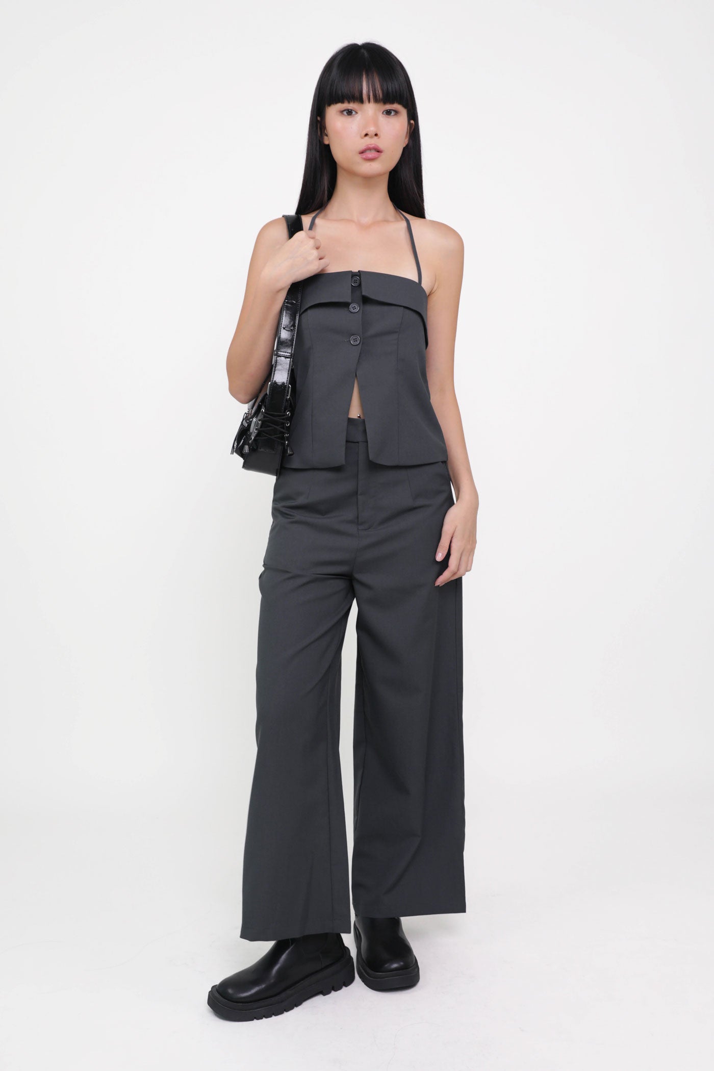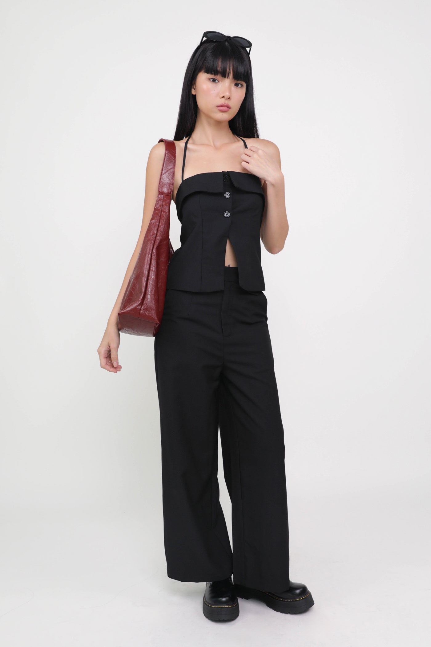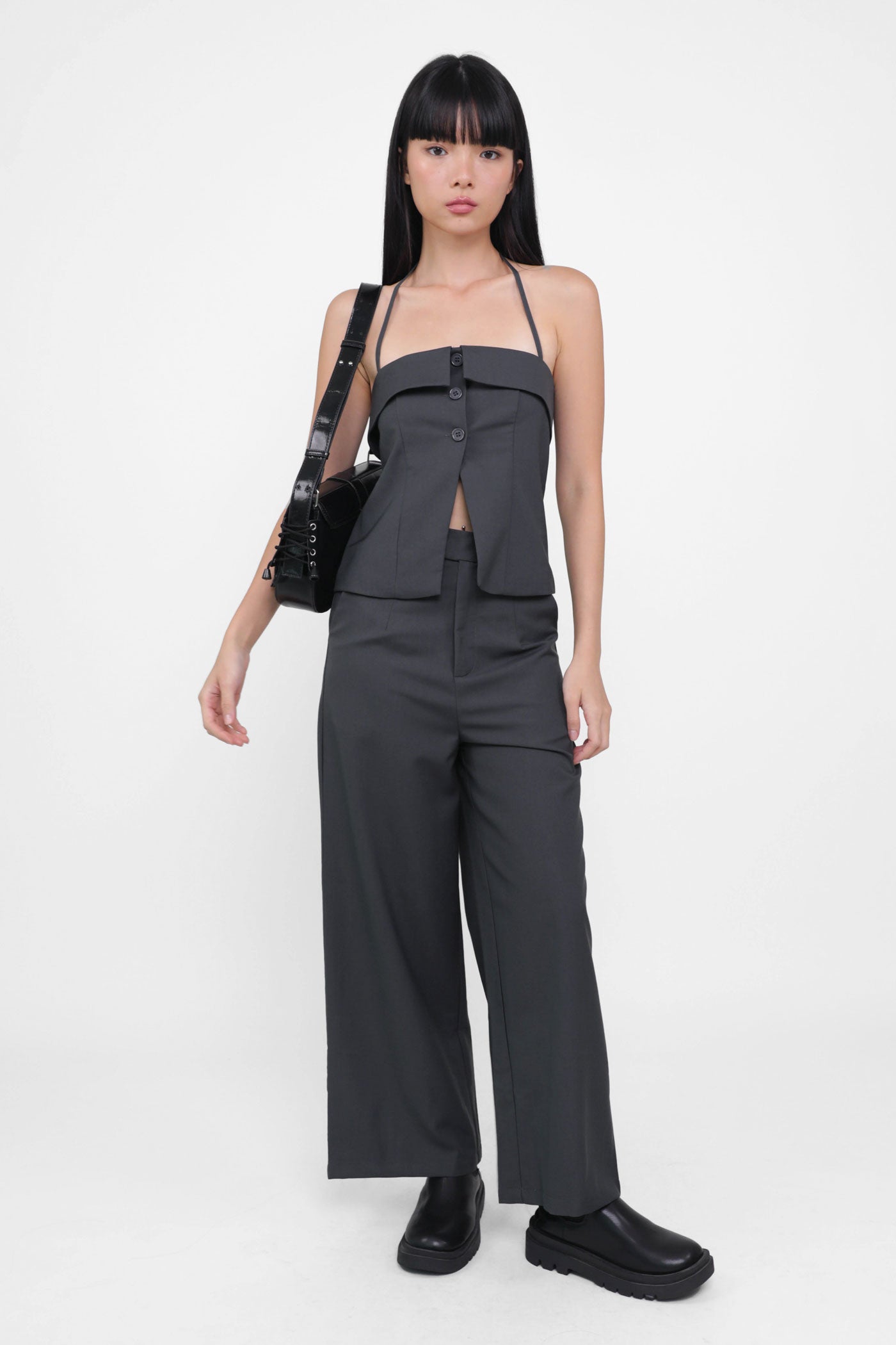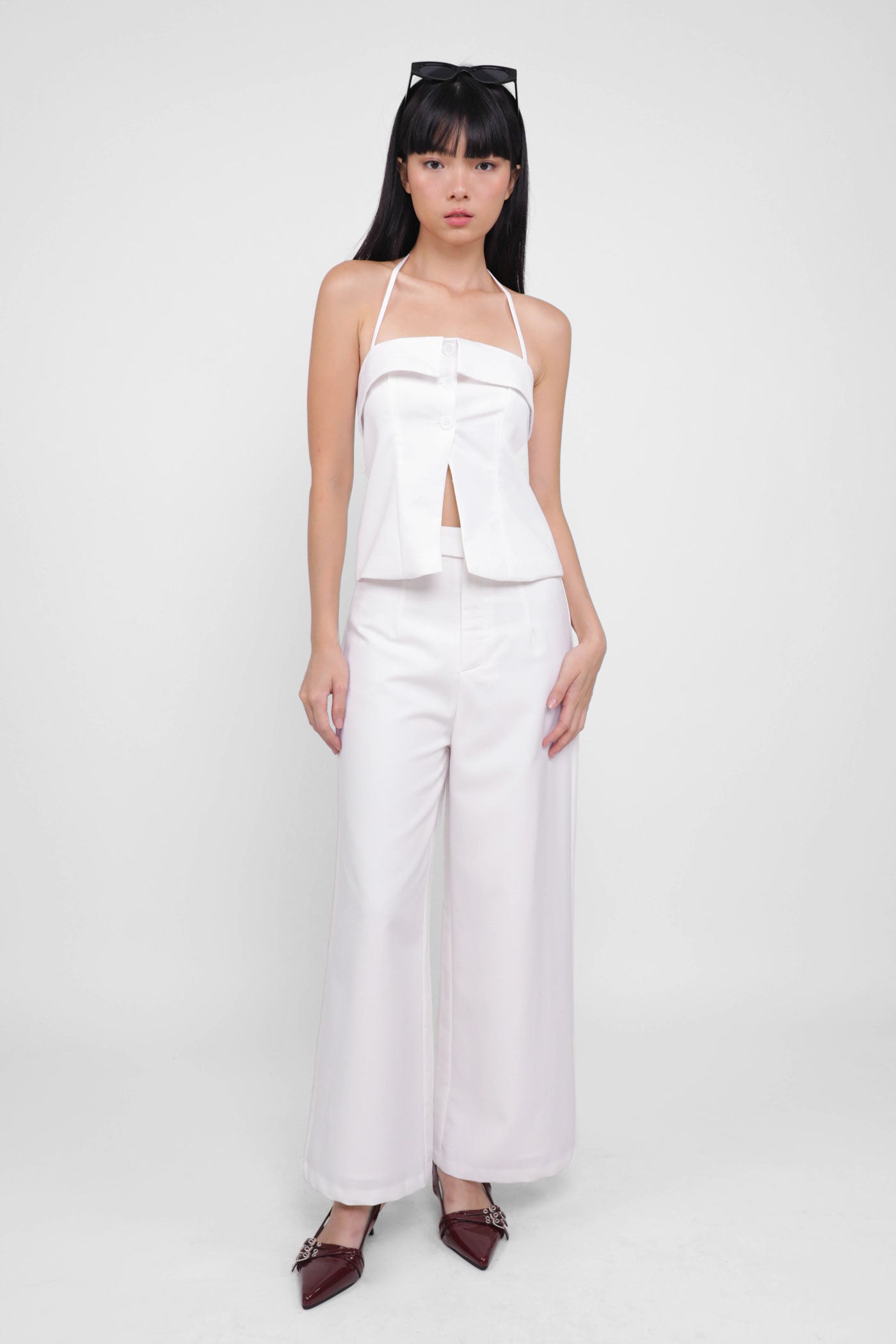 Keep things classy with Marissa. Marissa Tailored Halter Top is the epitome of chic elegance. This top features a timeless halter neckline and sleek button-up details. From office chic to first dates, this top never fails to leave a charming impression. Style it as a co-ord with our Harold Tailored Pants.