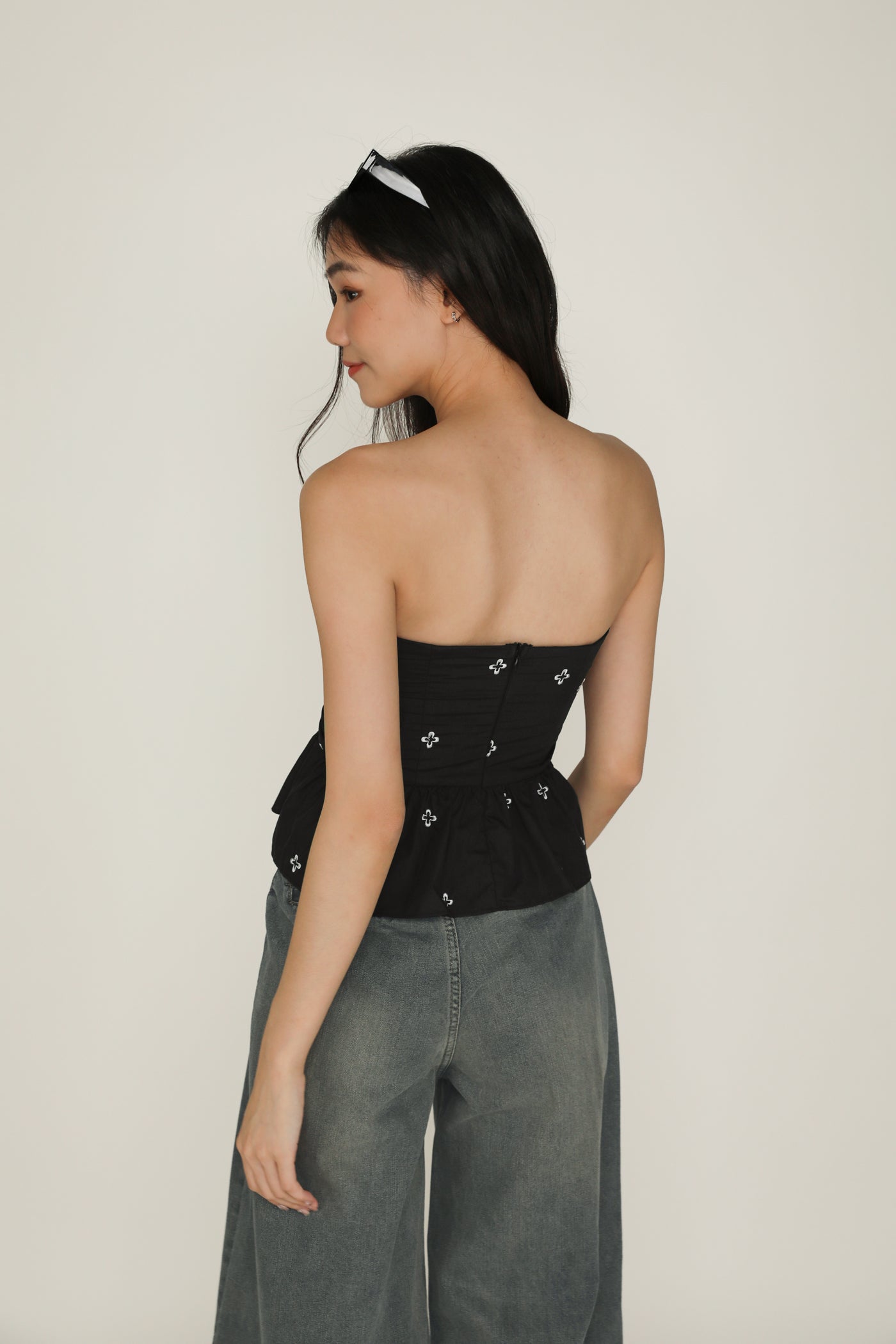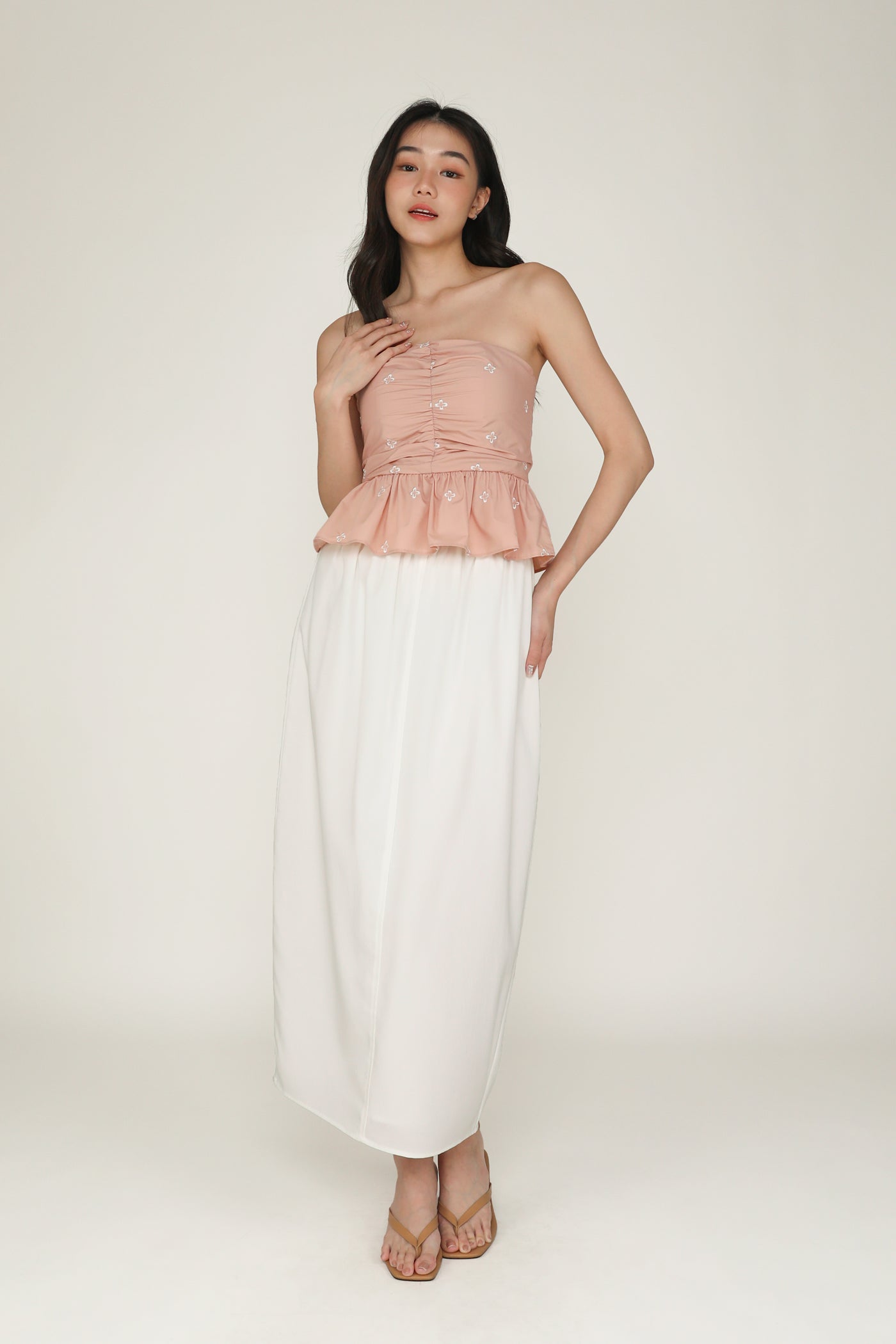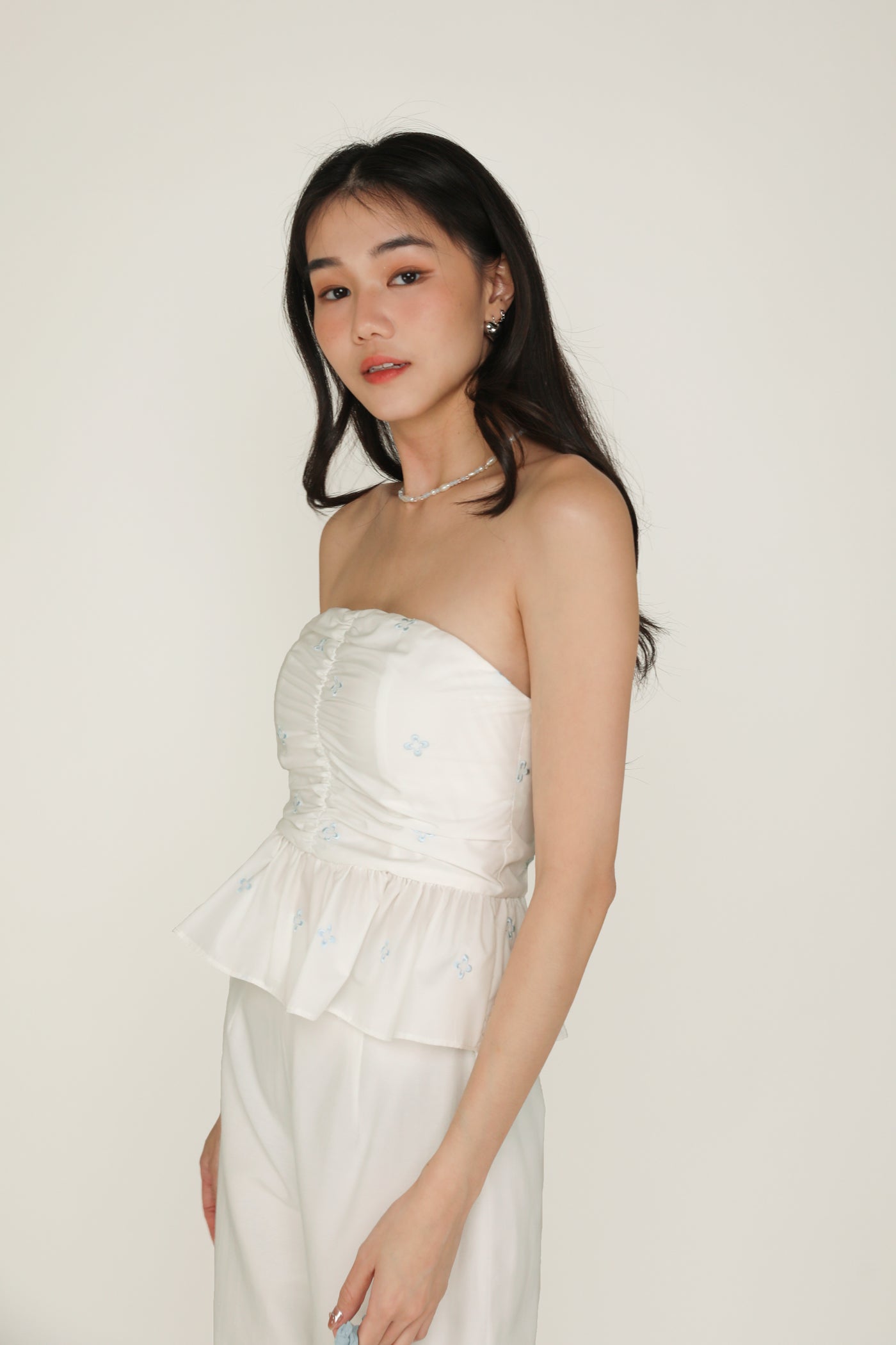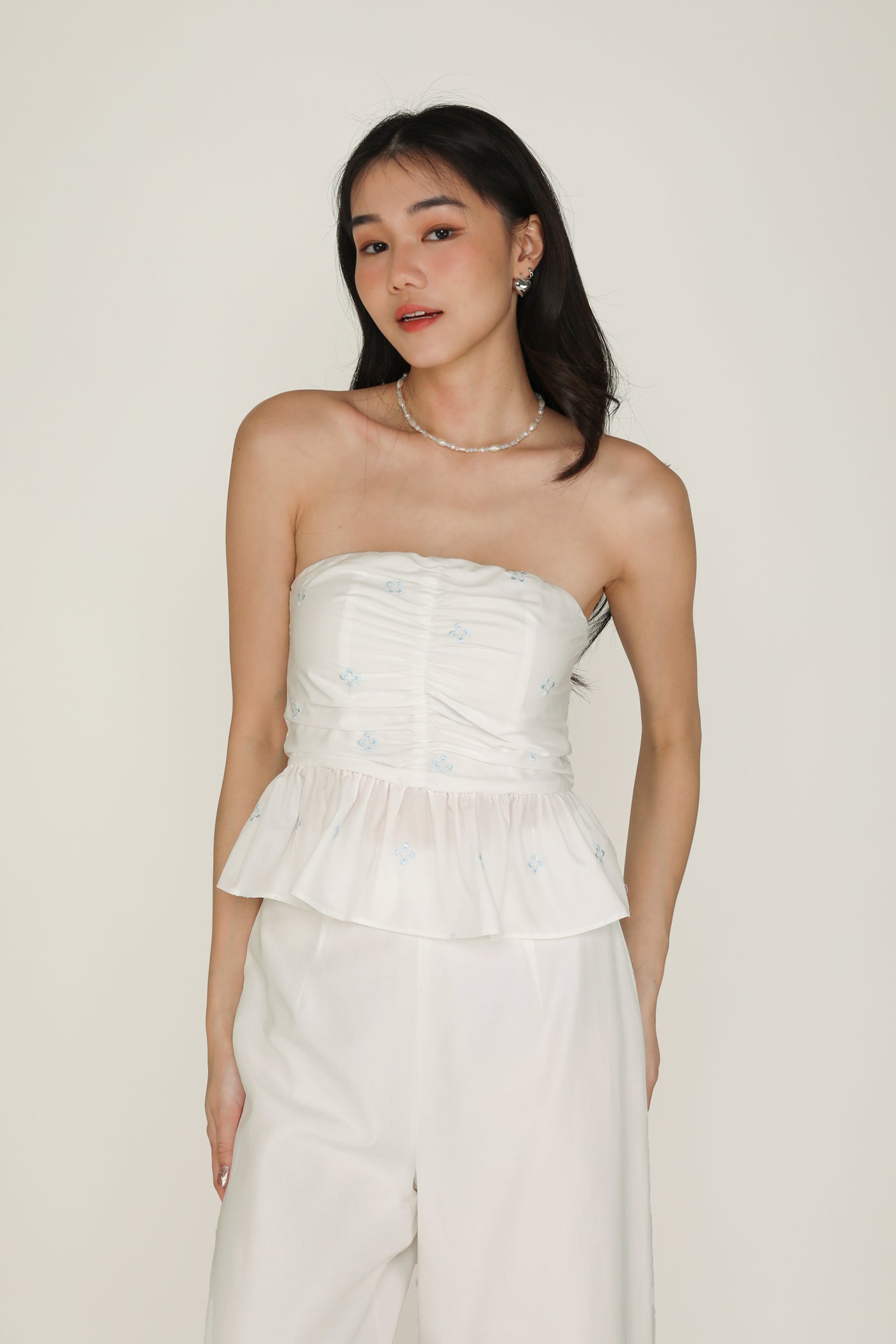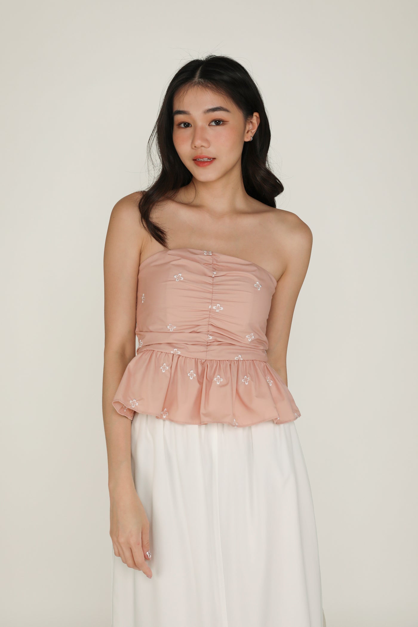 Nina Embroidery Padded Babydoll Tube Top