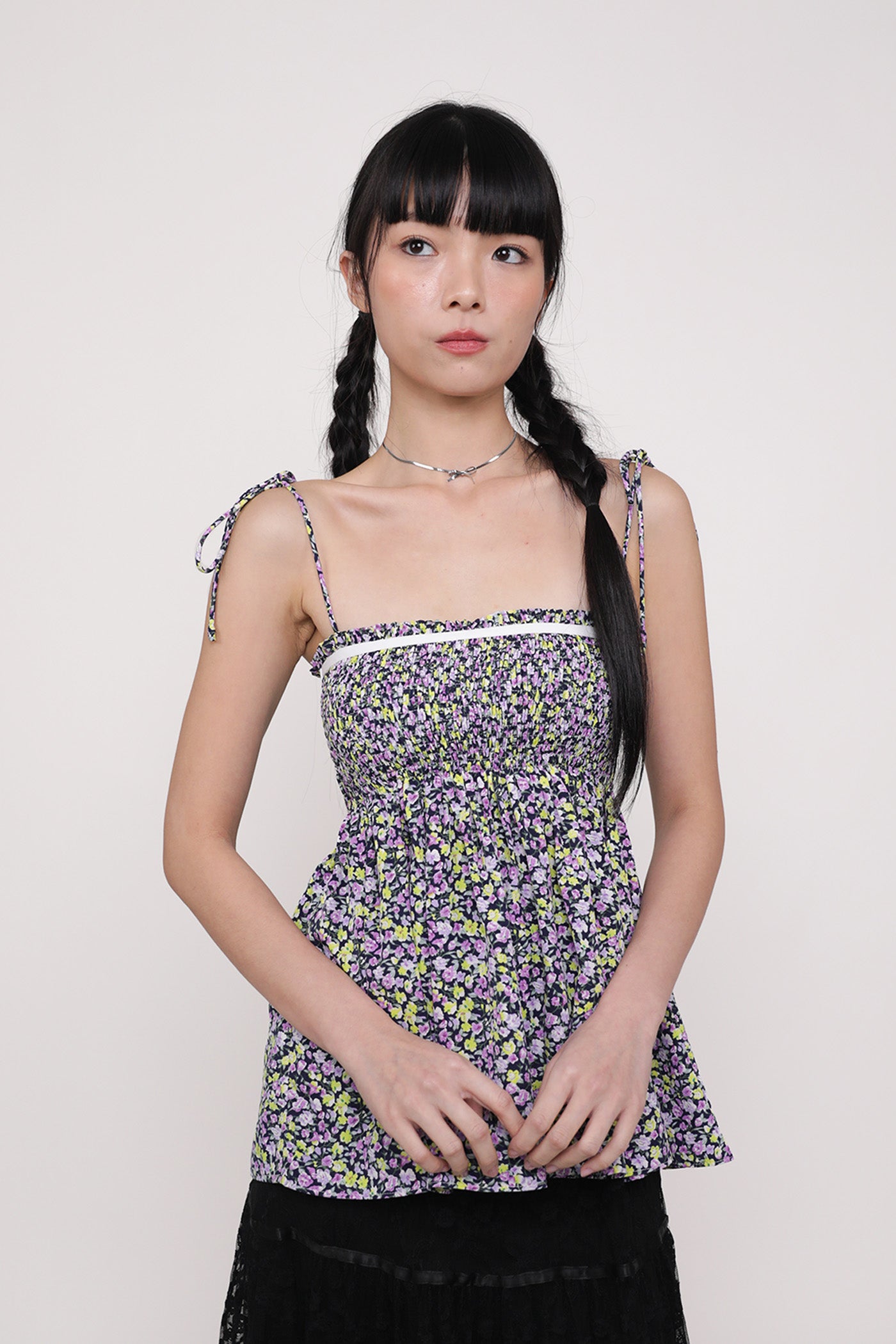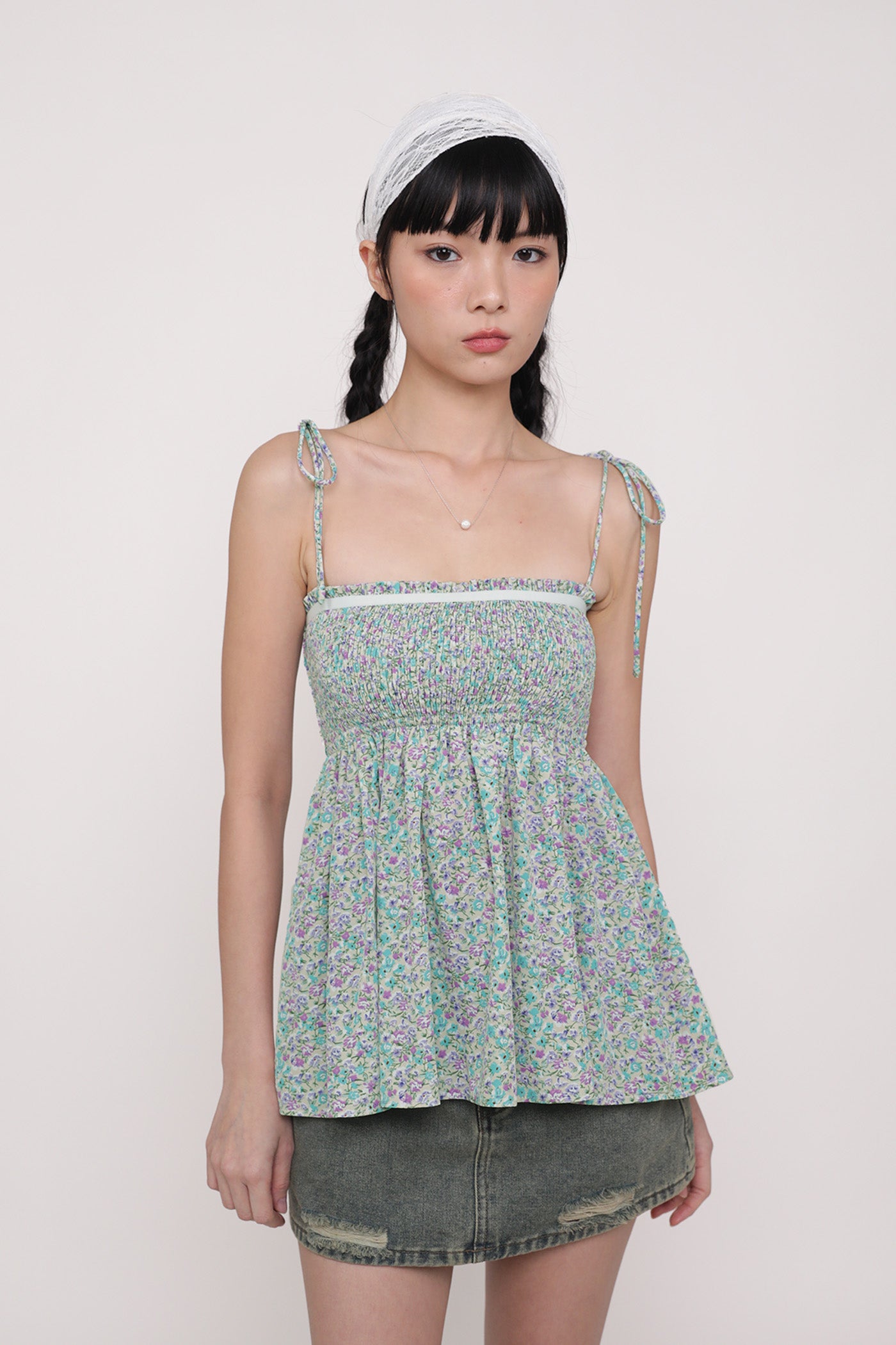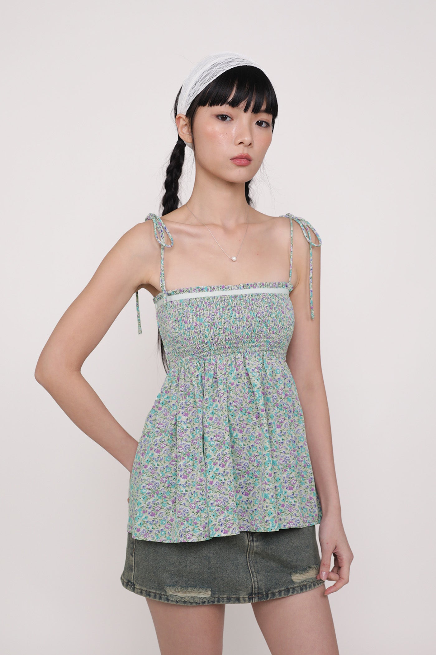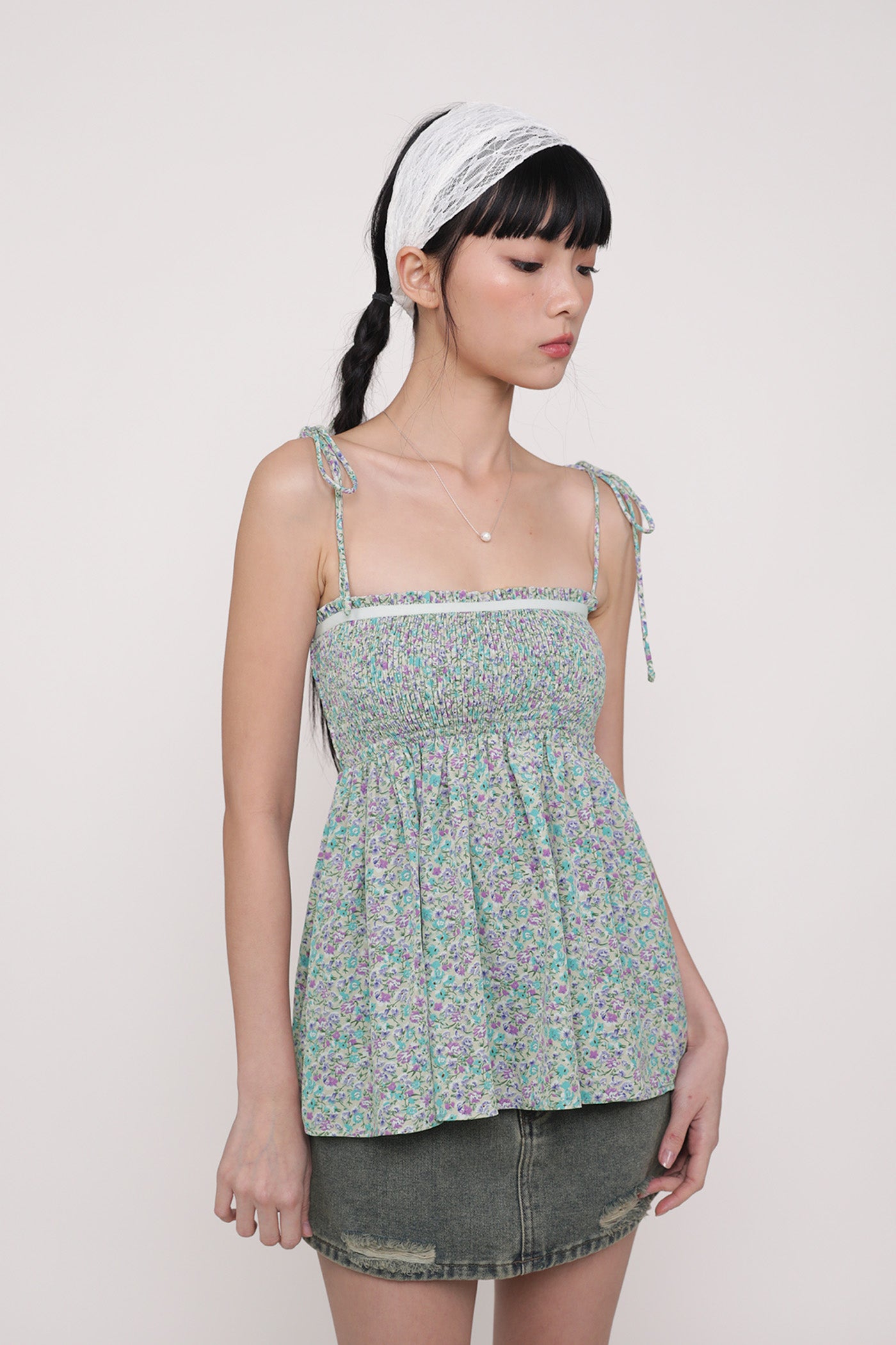 Sprinkle a touch of romance into your outfits with our Kyrie Smocked Babydoll Top. This top features delicate self-tie ribbon straps and a smocked bust. It is decorated in a floral print for the ultimate springtime charm. Whether you're off to brunch or a weekend adventure, this versatile piece makes dressing up feel extra easy.