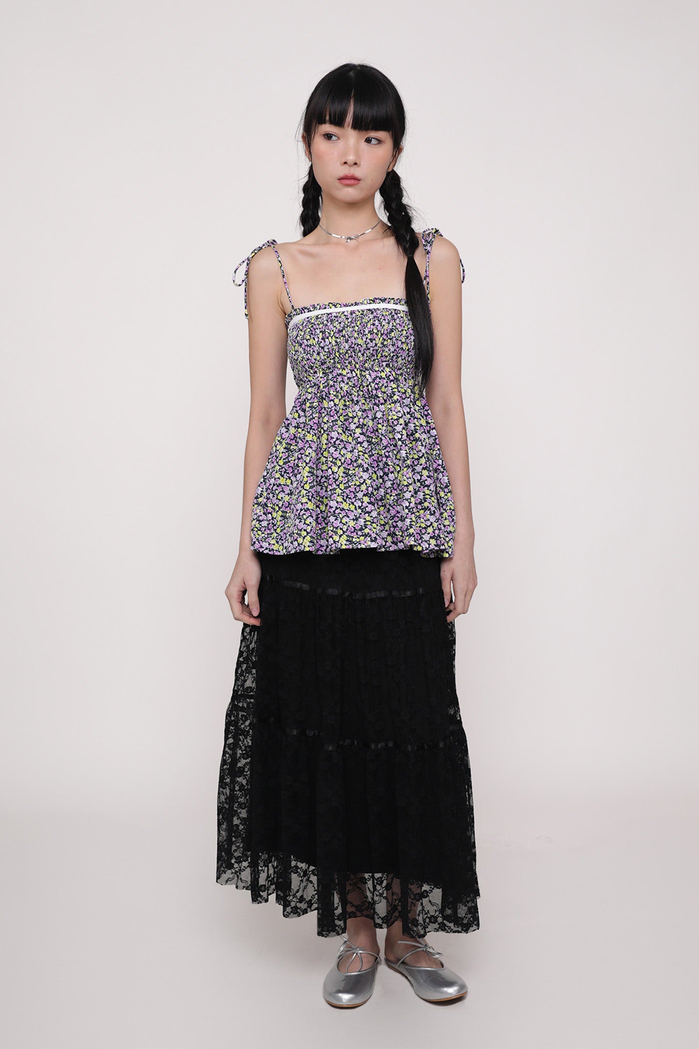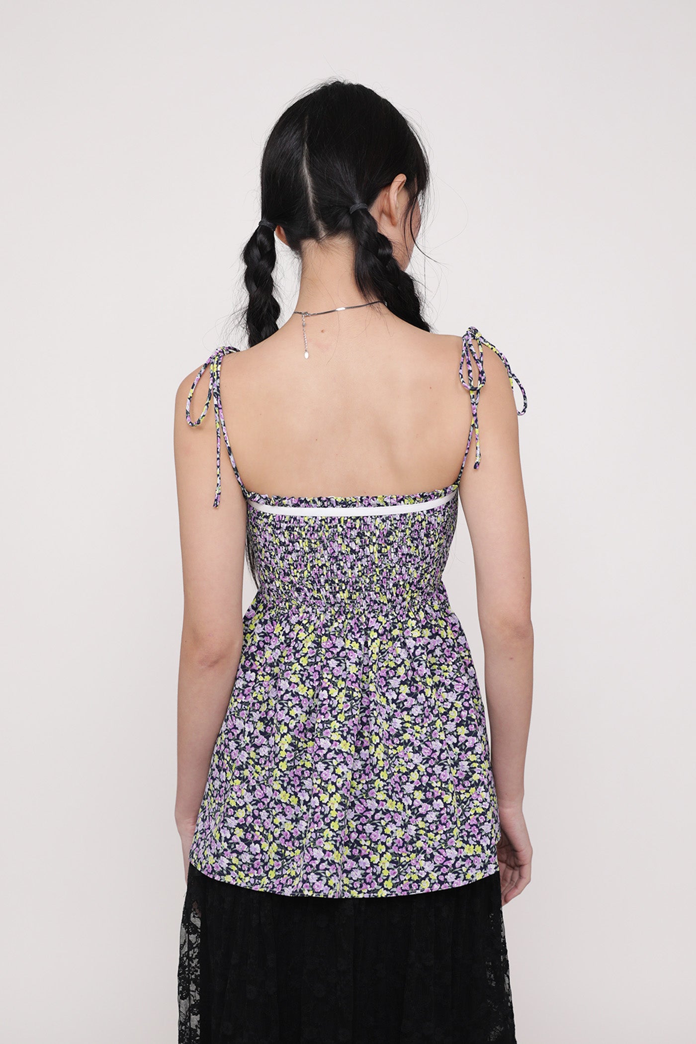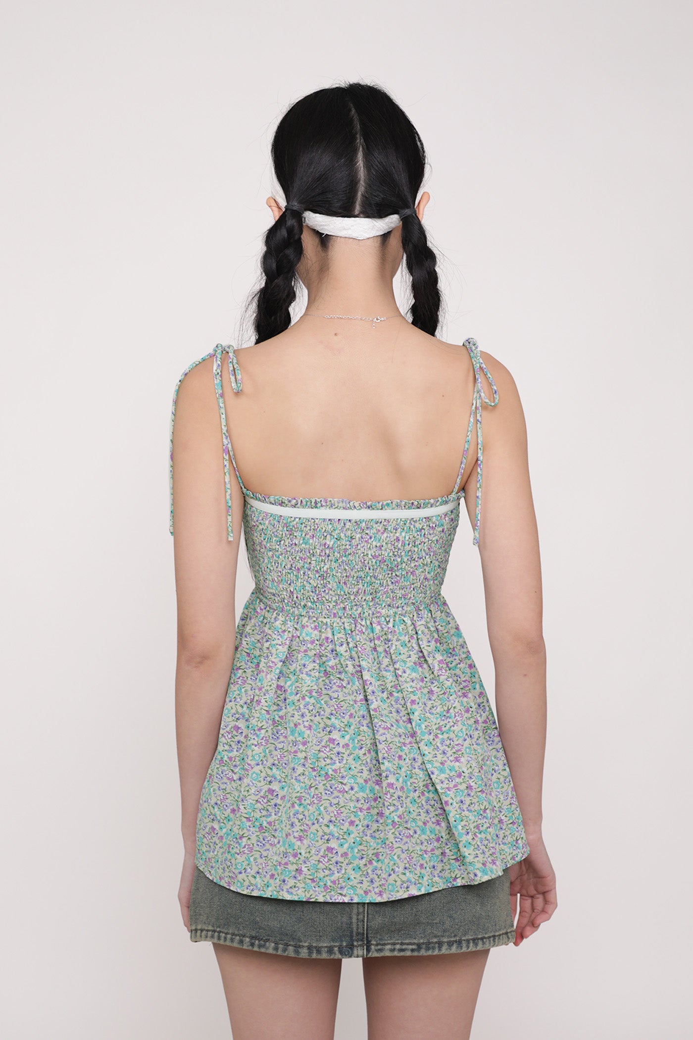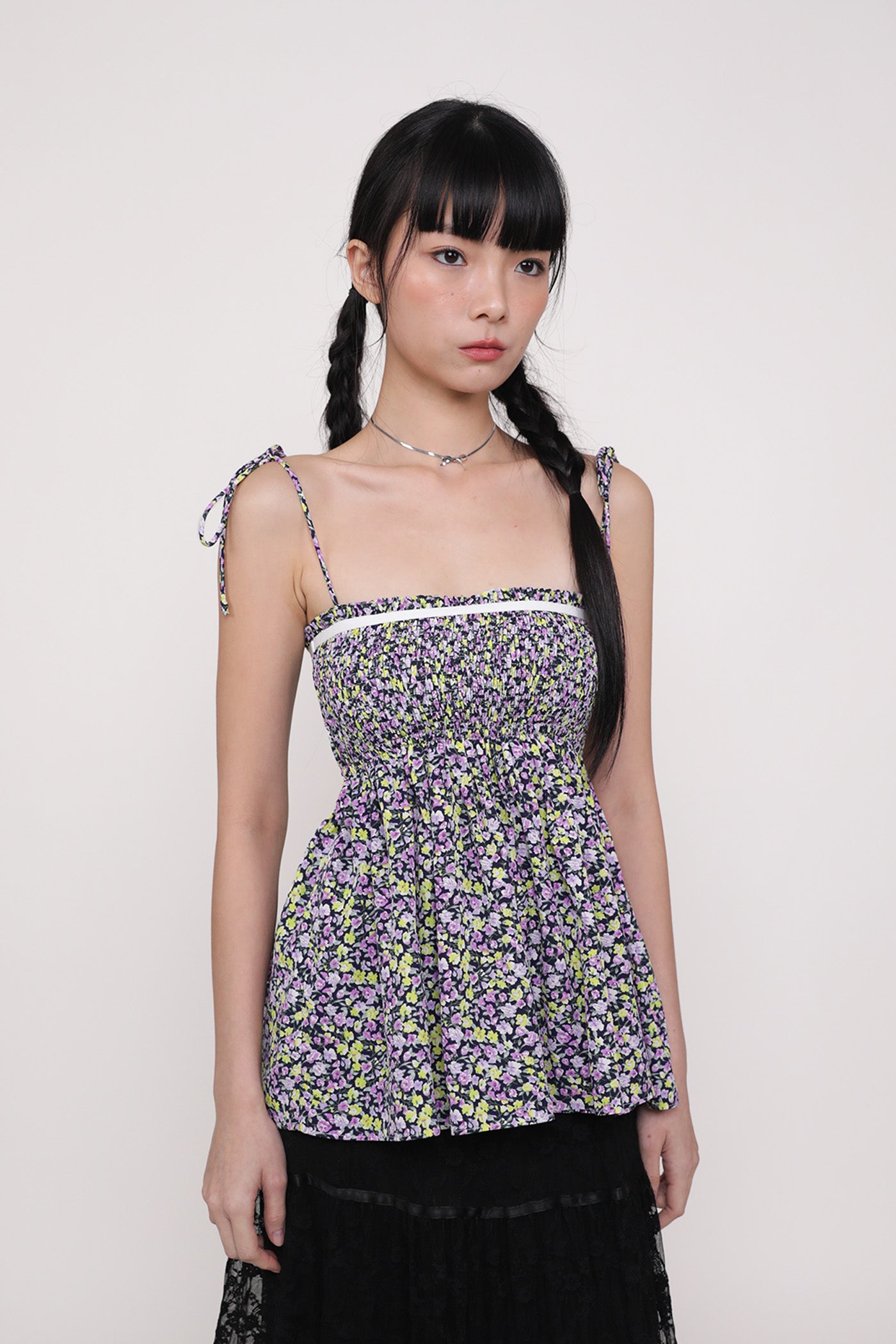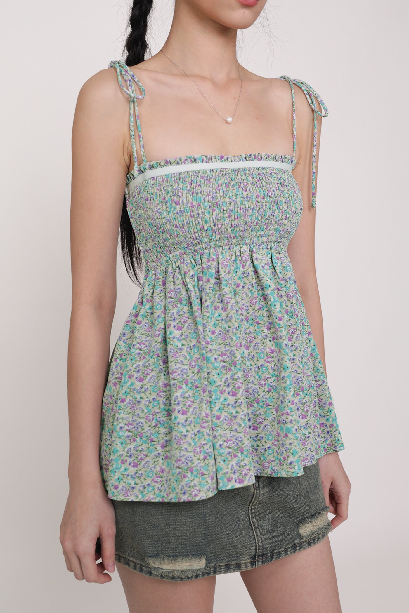 Sprinkle a touch of romance into your outfits with our Kyrie Smocked Babydoll Top. This top features delicate self-tie ribbon straps and a smocked bust. It is decorated in a floral print for the ultimate springtime charm. Whether you're off to brunch or a weekend adventure, this versatile piece makes dressing up feel extra easy.