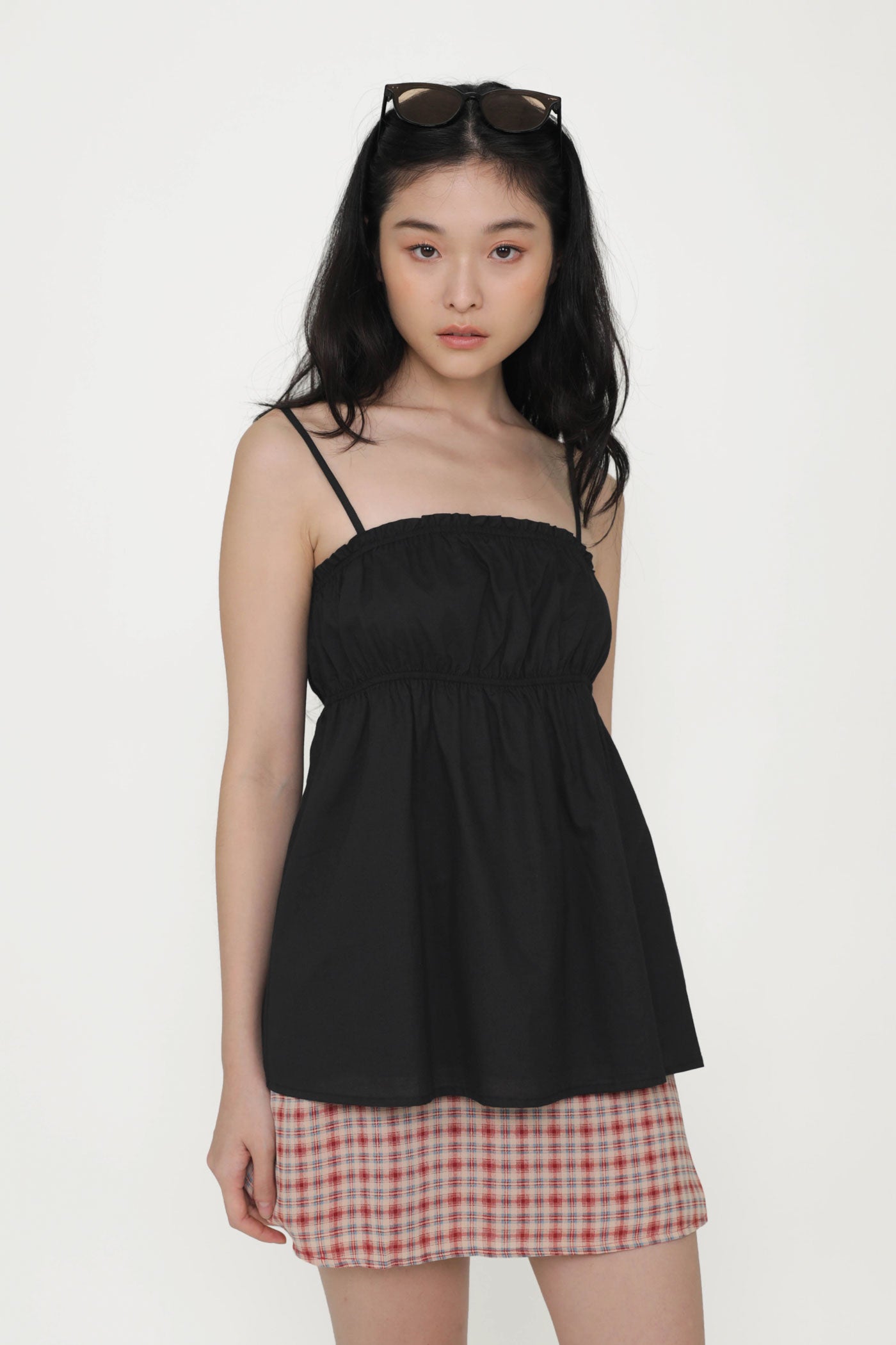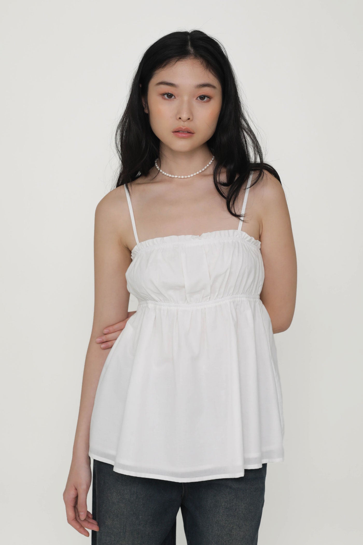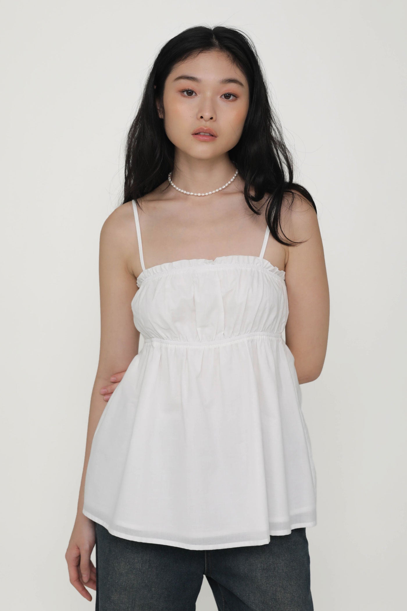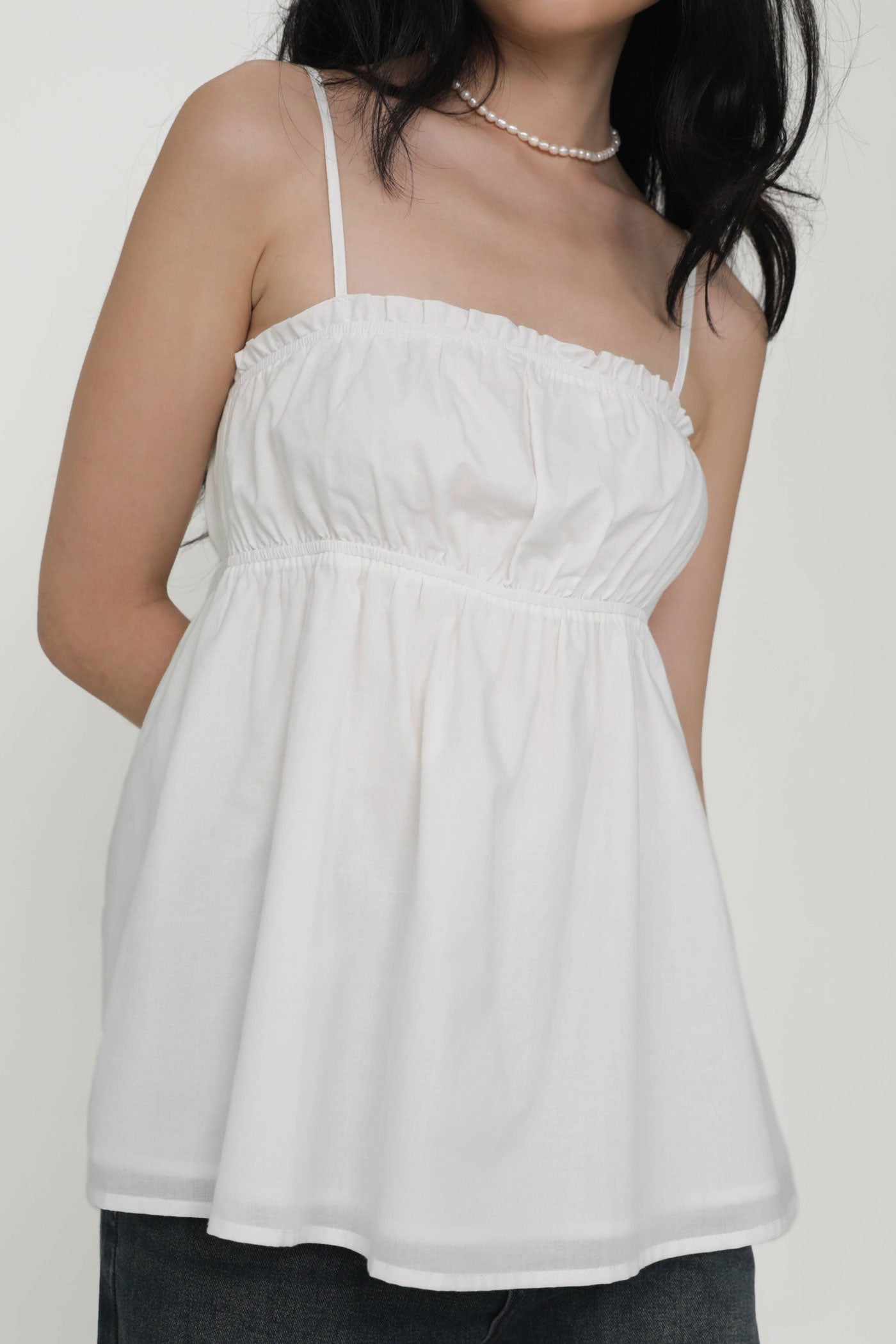 Flirty, fun, and just the right amount of ruffle—Tara's the top you never knew you needed. Tara Ruffles Babydoll Top boasts a breezy fit, ruffled trim neckline, and chic babydoll silhouette, bringing effortless style to your spring fits. Casual yet versatile, it pairs perfectly with jeans or skirts for a casual and fun look.