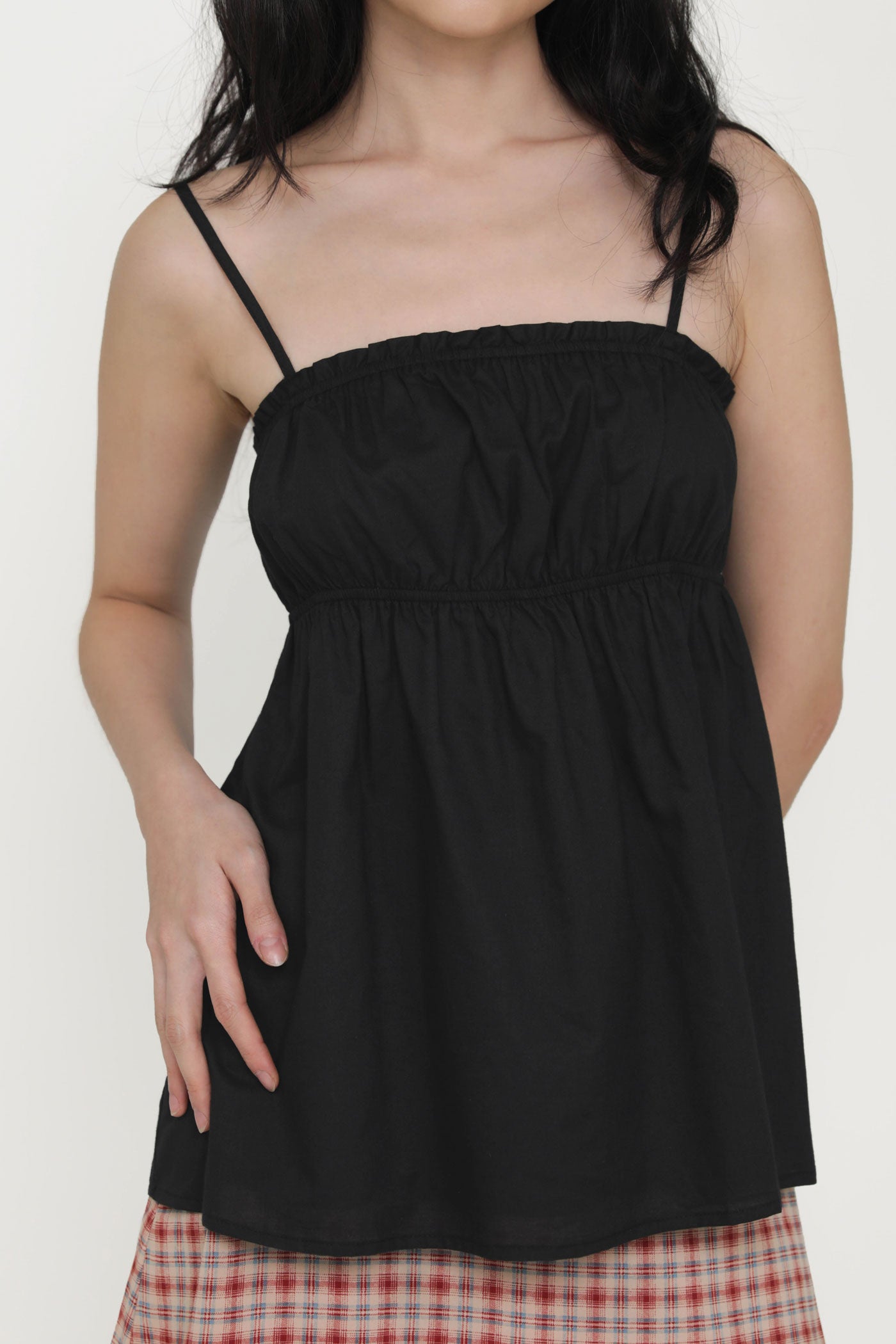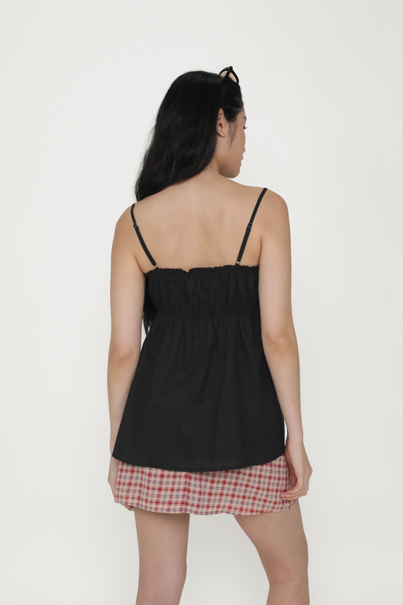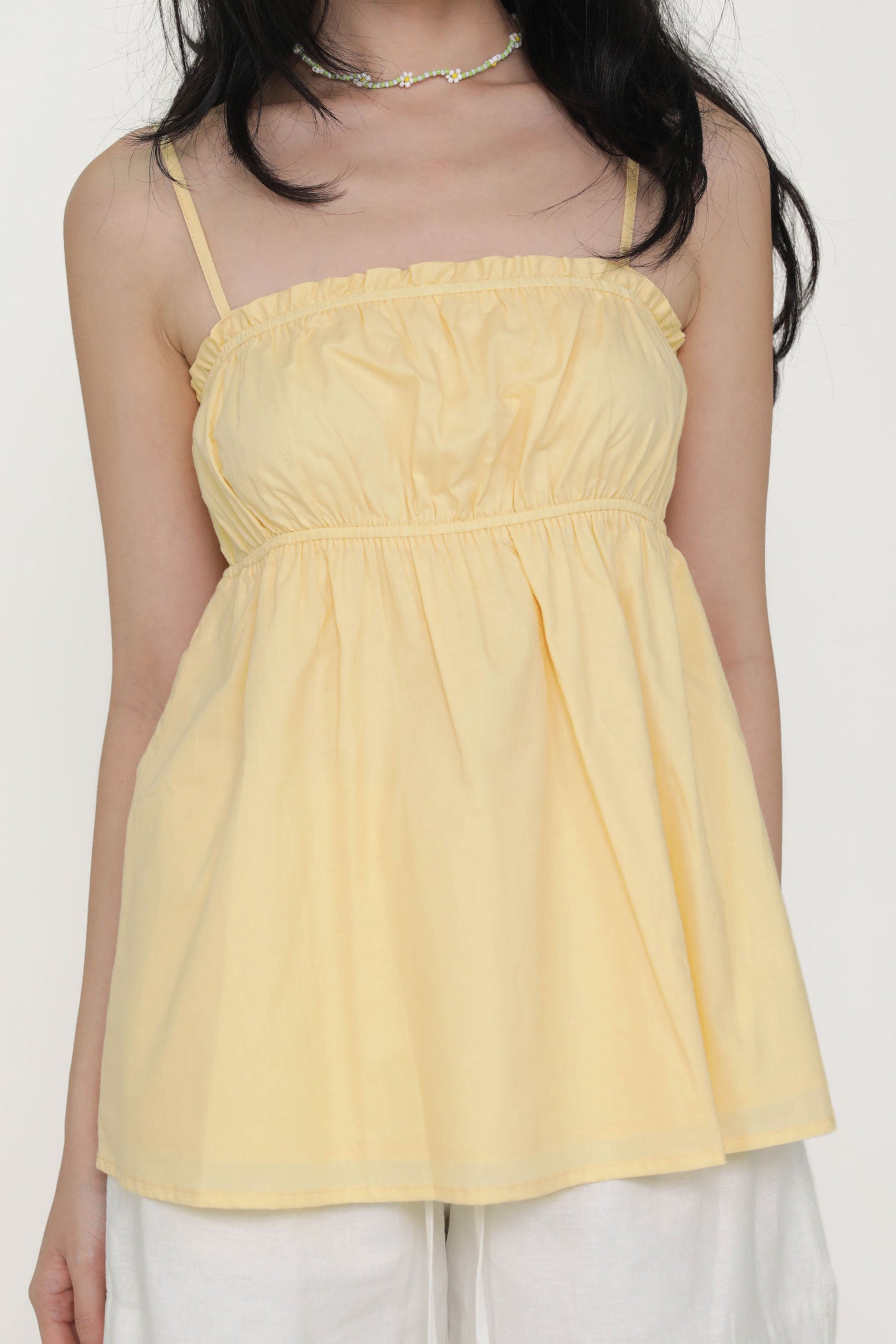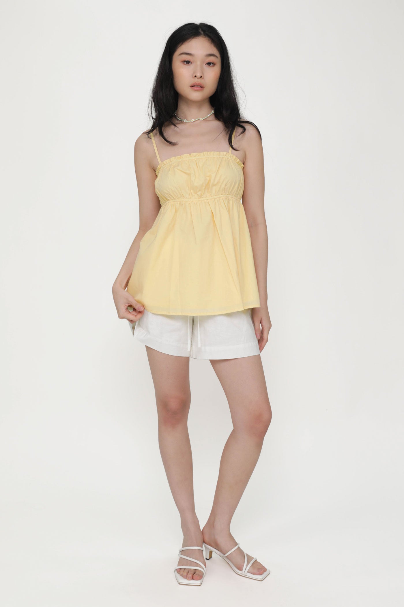 Flirty, fun, and just the right amount of ruffle—Tara's the top you never knew you needed. Tara Ruffles Babydoll Top boasts a breezy fit, ruffled trim neckline, and chic babydoll silhouette, bringing effortless style to your spring fits. Casual yet versatile, it pairs perfectly with jeans or skirts for a casual and fun look.