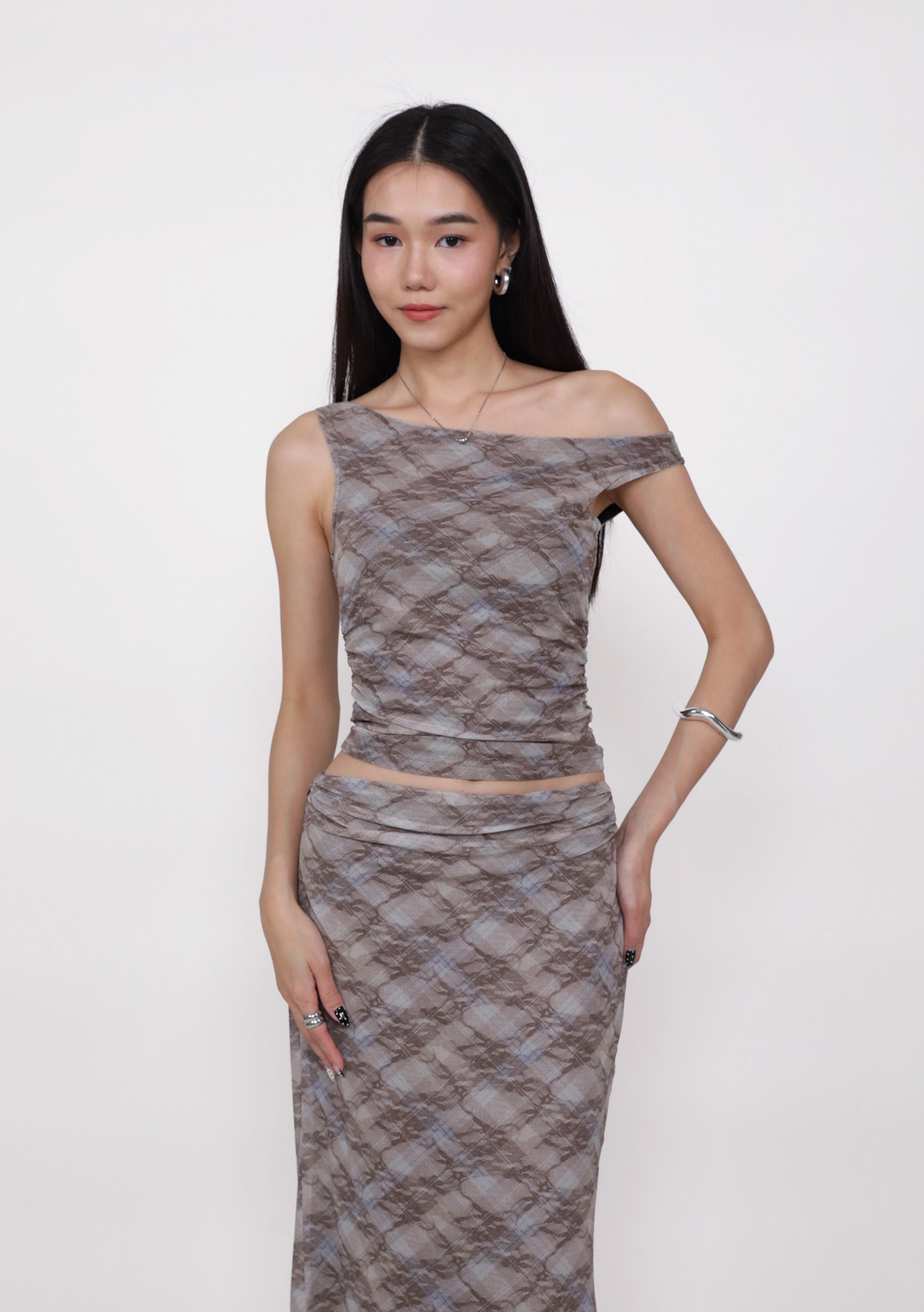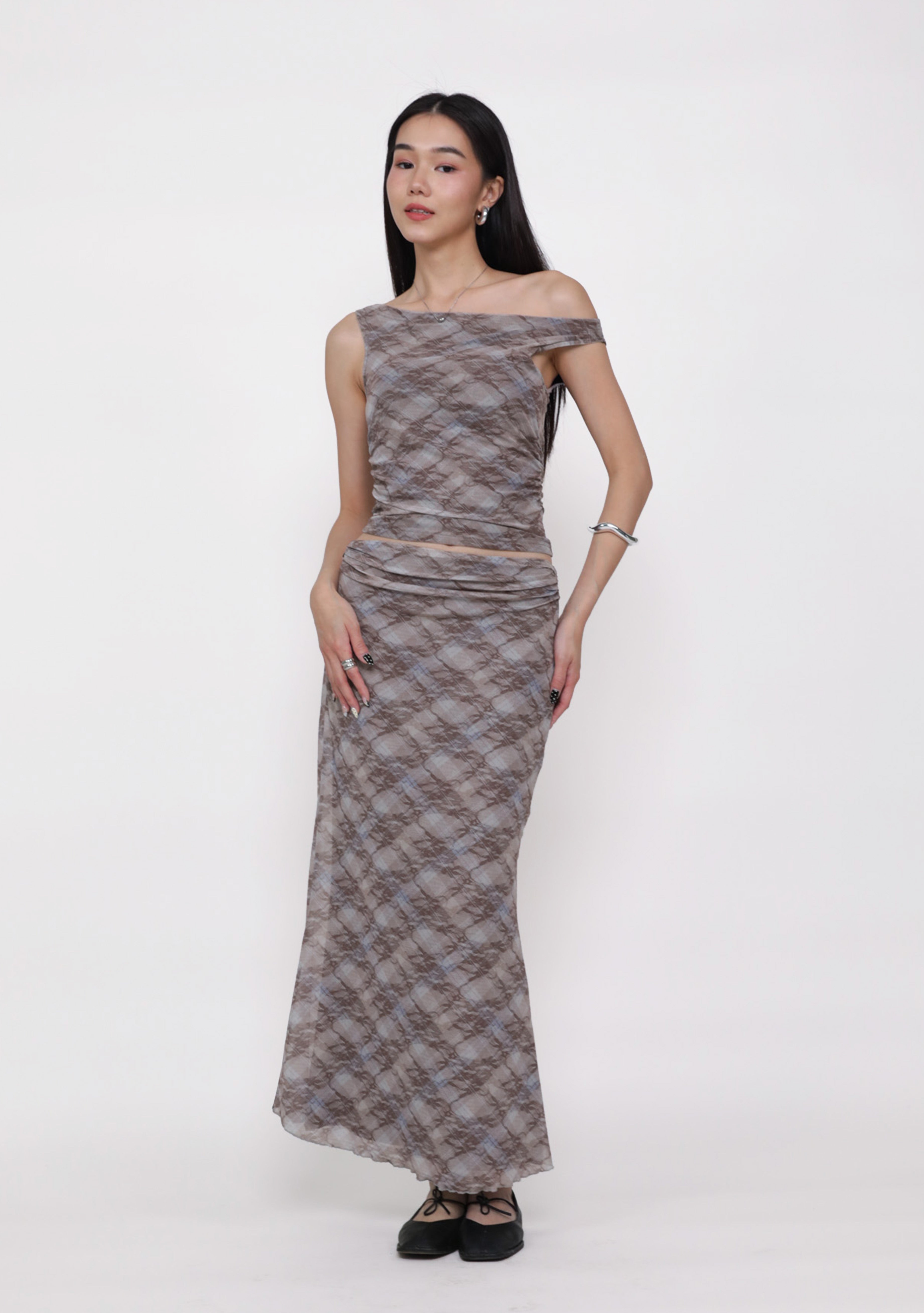 Terra is sleek, modern, and quietly striking. Designed with a flattering boat neckline, this mesh top frames the shoulders beautifully while keeping the silhouette clean and minimal. The inner lining provides coverage, while removable paddings offer easy, fuss-free wear. Lightweight and versatile, Terra pairs effortlessly with high-waisted skirts or tailored pants for a polished, contemporary look.