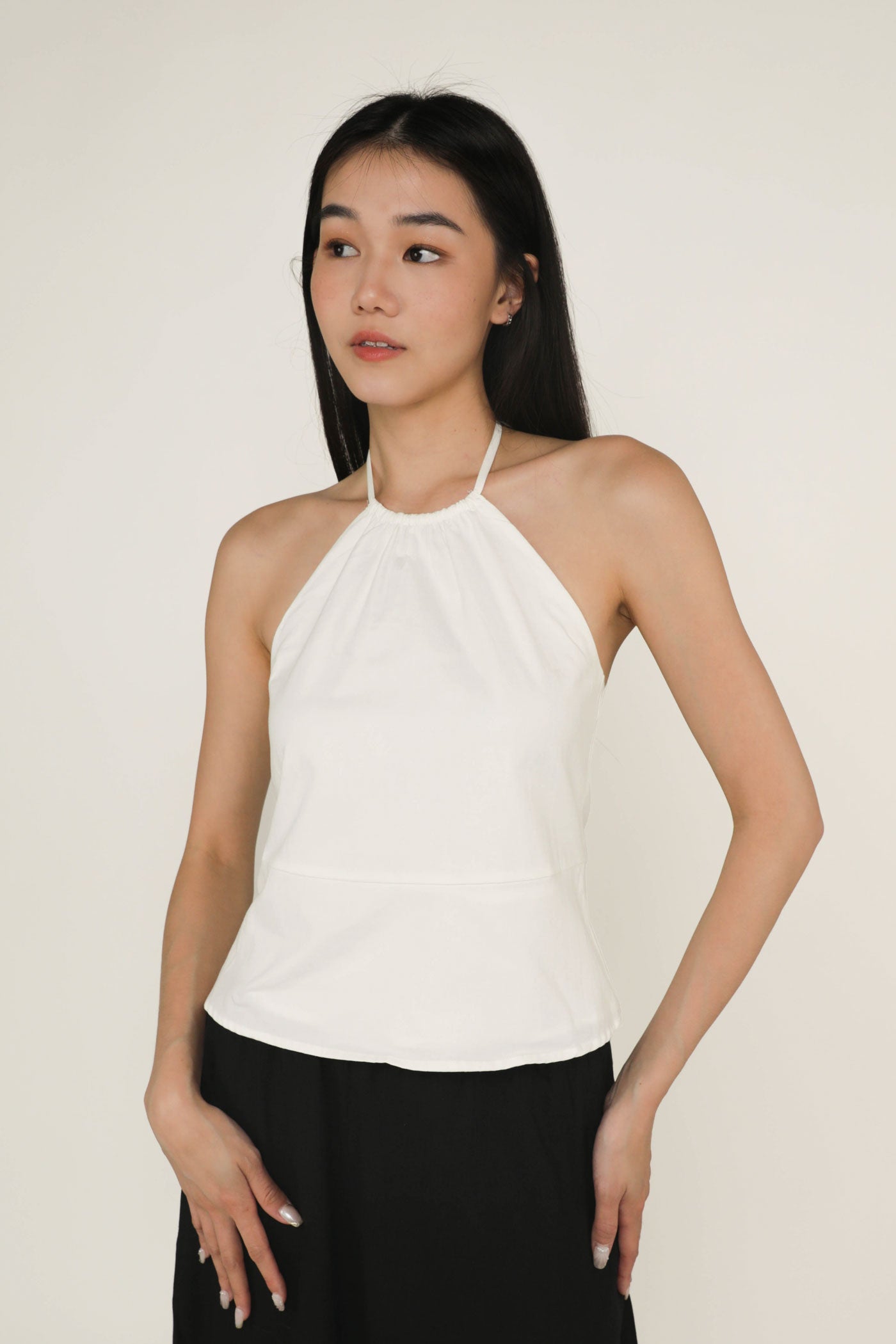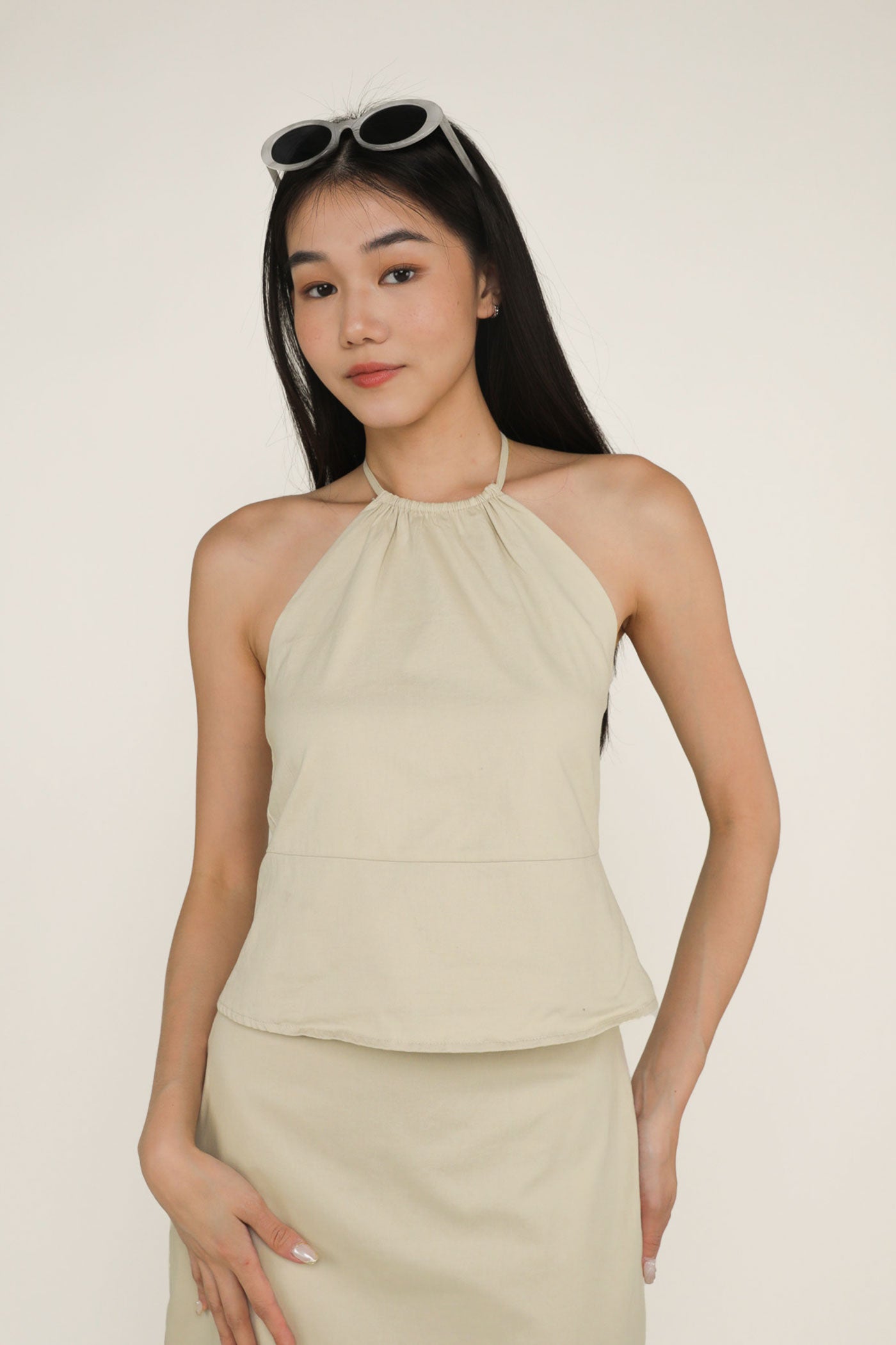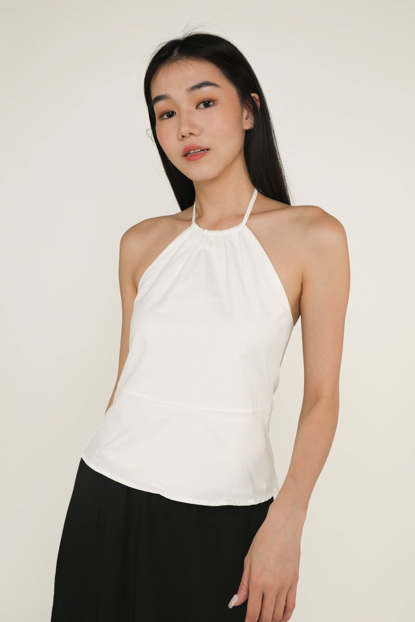 Let's get classy with Tiffany. For minimalistic style enthusiasts, Tiffany Halter Top is a chic piece that belongs in your weekly rotation. This top flaunts a sleek halter neckline, elegant backless design, and timeless flared silhouette. Available in your favourite neutral colours, Tiffany is your gateway to achieve easy elegance.